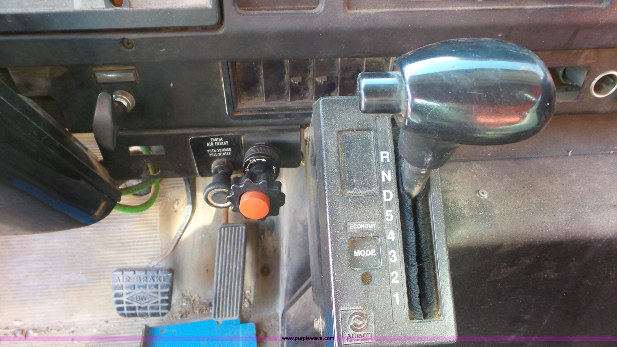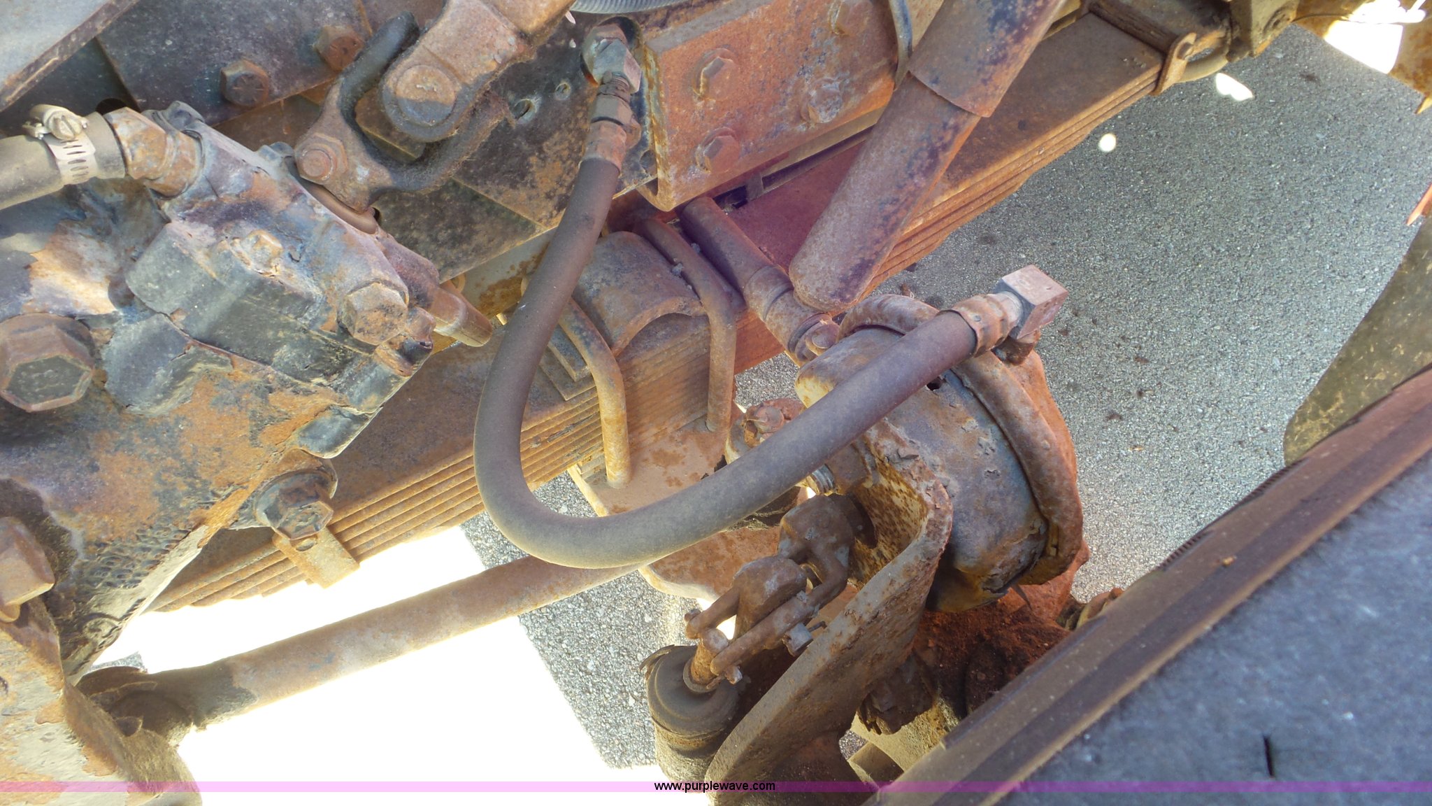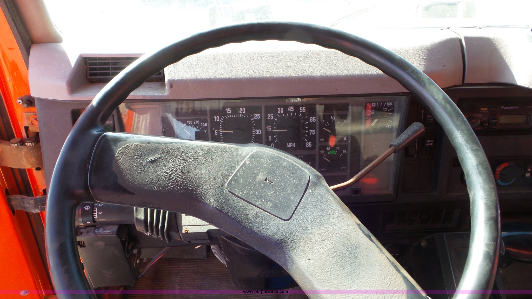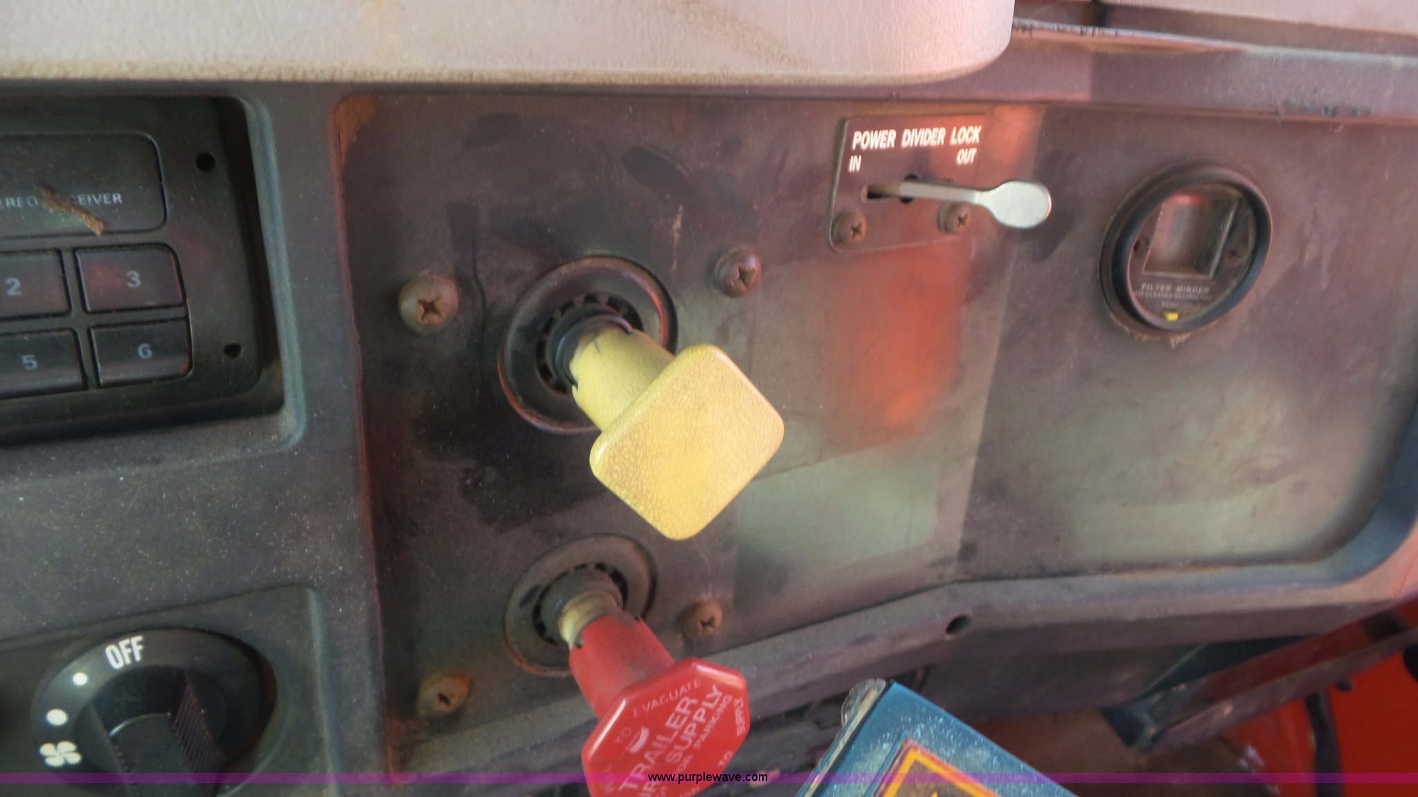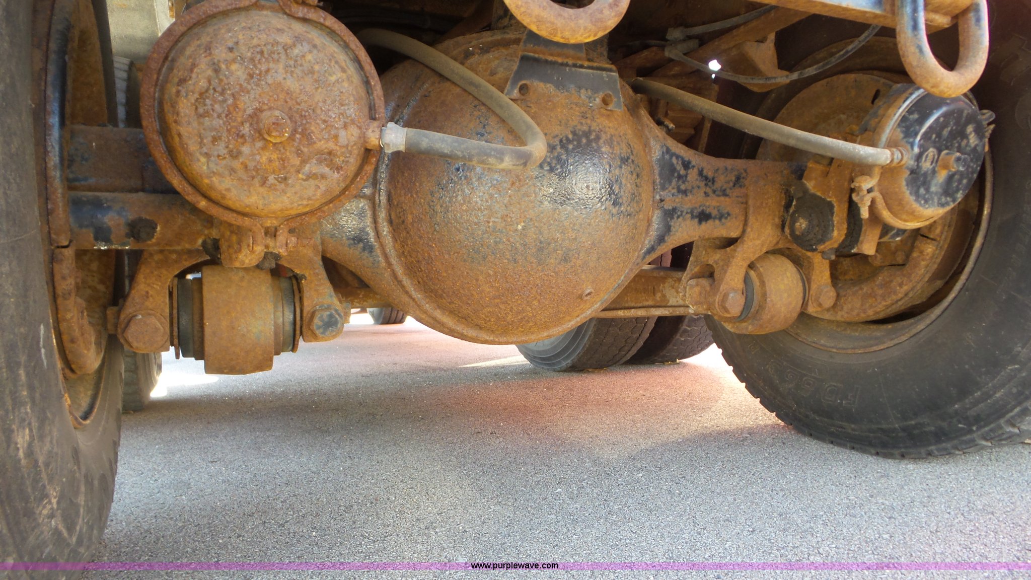 Purple Wave is selling a used Construction Dump Truck in Kansas. This item is a 1997 International 4900 dump truck with the following: 165,207 miles on odometer, International DT466 7.6L L6 turbo diesel engine, Automatic transmission, Tandem axle, AC and heat, AM/FM, Air suspension seat, Trailer brake controller, PTO, 13'L steel bed, Single fuel tank, Rear glad hand couplers, Side hydraulic couplers, Air operated end gate, Spring suspension, Air brakes, 275/80R22.5 front tires, 295/75R22.5 rear tires, Batteries weak, KDOT ID 264-2016