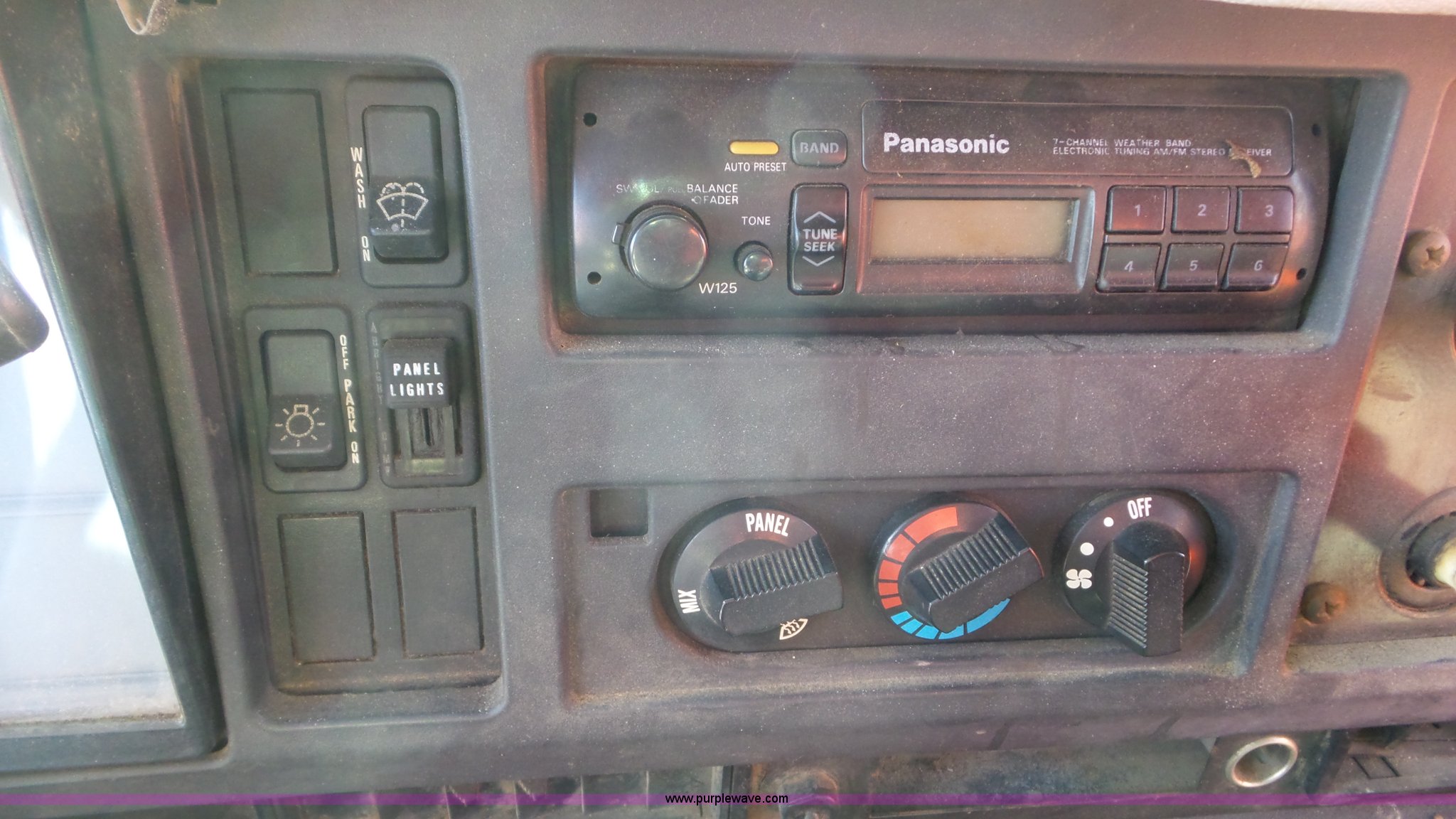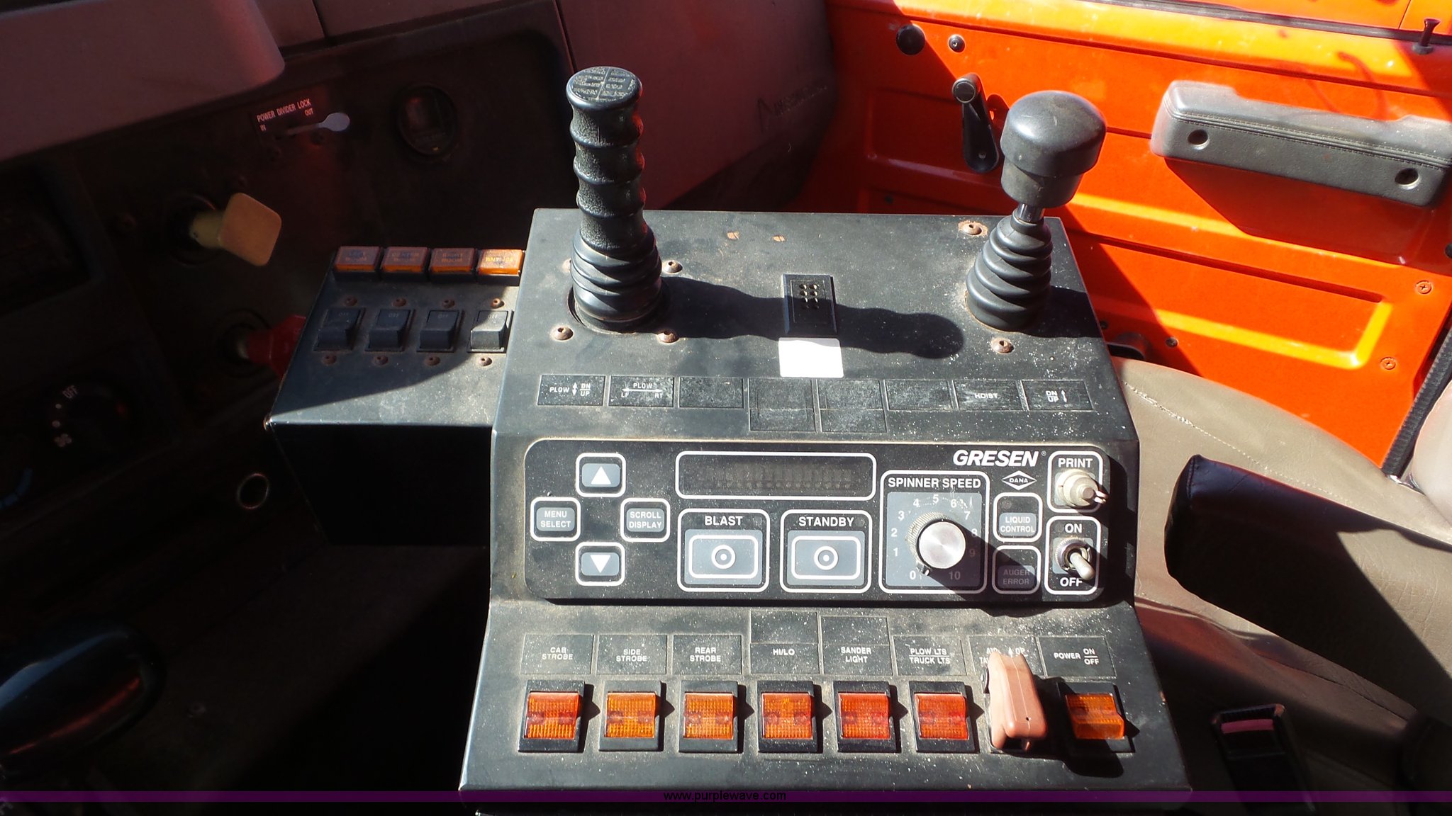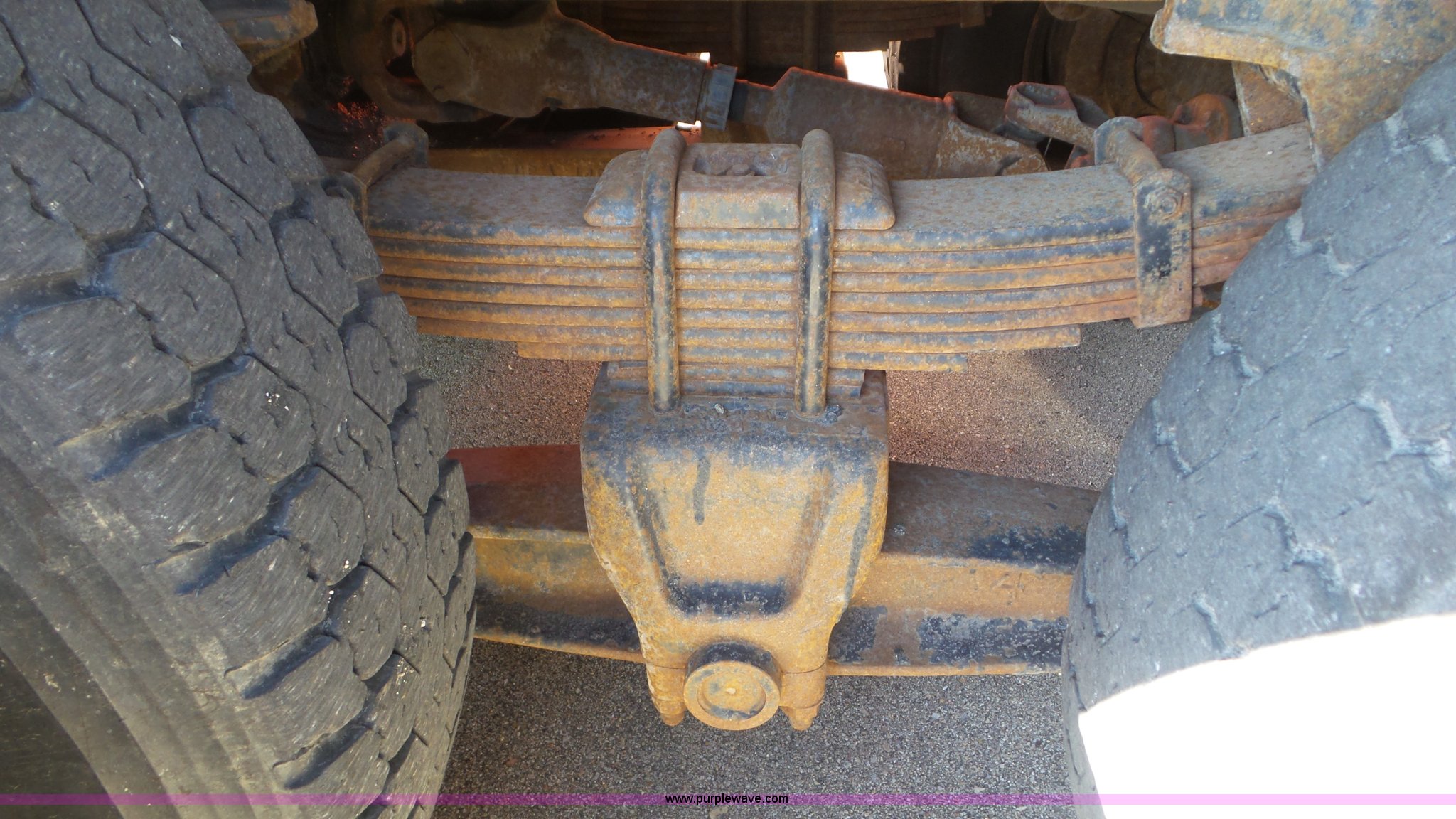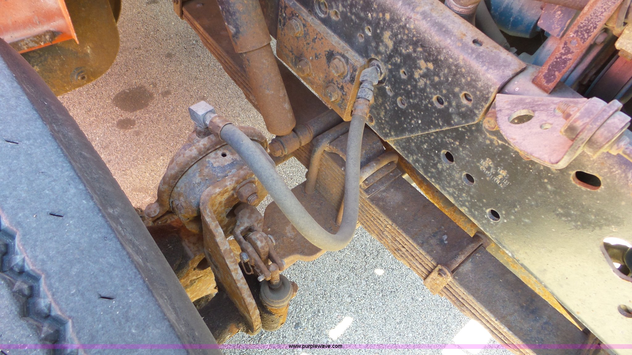 Purple Wave is selling a used Construction Dump Truck in Kansas. This item is a 1997 International 4900 dump truck with the following: 165,207 miles on odometer, International DT466 7.6L L6 turbo diesel engine, Automatic transmission, Tandem axle, AC and heat, AM/FM, Air suspension seat, Trailer brake controller, PTO, 13'L steel bed, Single fuel tank, Rear glad hand couplers, Side hydraulic couplers, Air operated end gate, Spring suspension, Air brakes, 275/80R22.5 front tires, 295/75R22.5 rear tires, Batteries weak, KDOT ID 264-2016