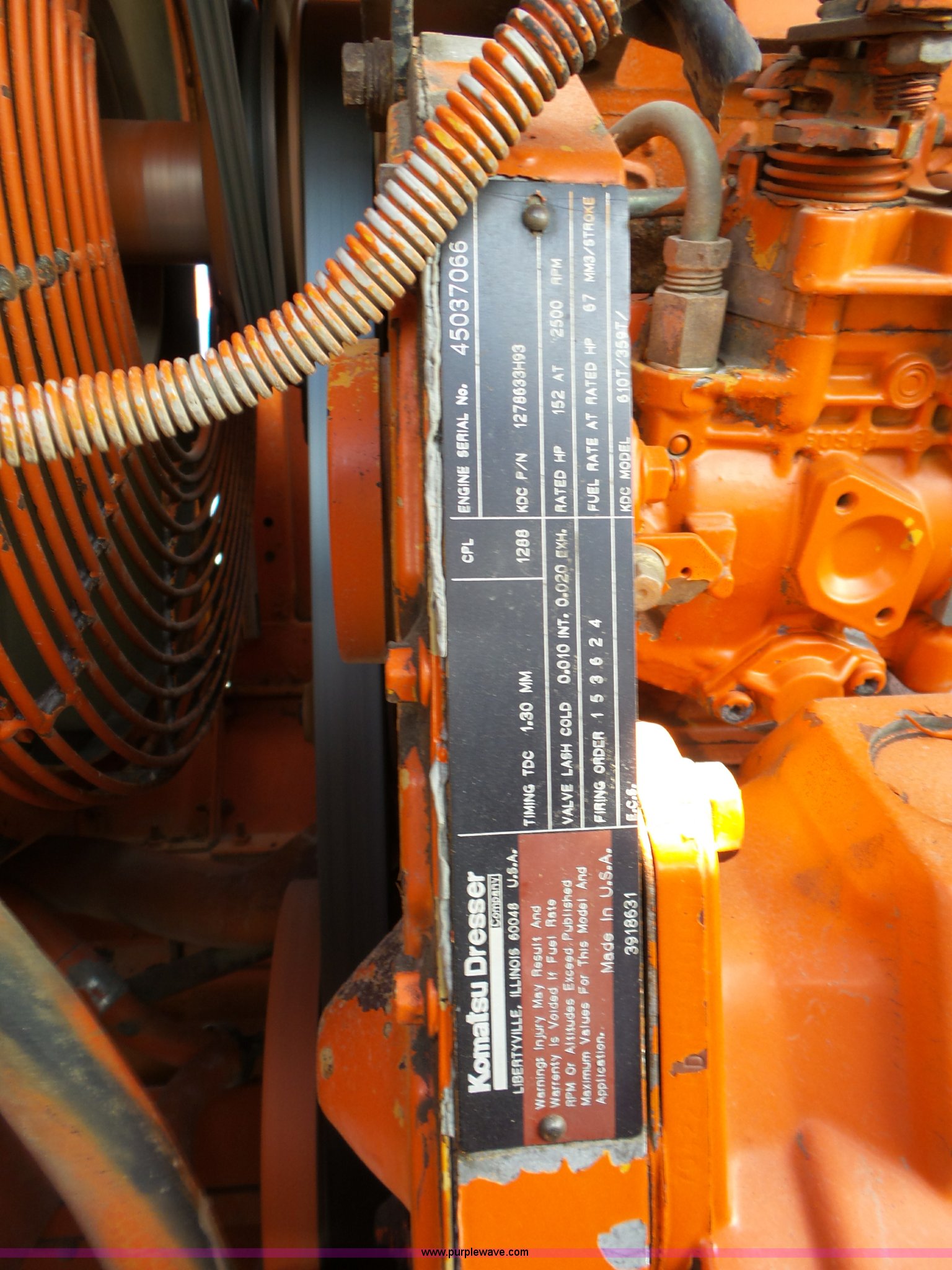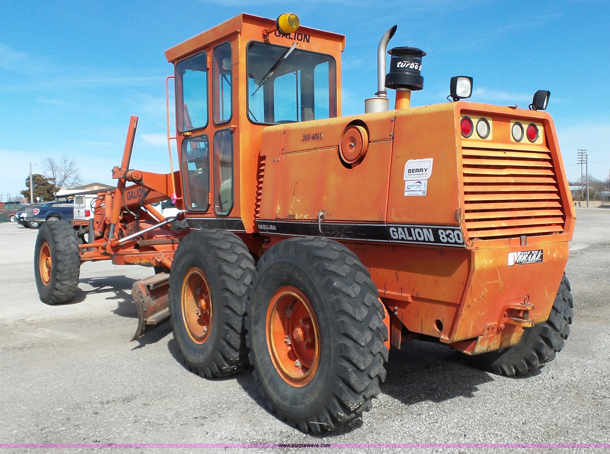 Purple Wave is selling a used Motor Grader in Kansas. This item is a 1995 Galion 830 motor grader with the following: 4,718 hours on meter, Komatsu 610T six cylinder turbo diesel engine, 152 HP, Serial 45037066, Powershift transmission, 6F-3R gears, EROPS, AC and heat, AM/FM, Suspension seat, Front and rear work lights, 12'W moldboard, Tip control, Side shift, Dymax front mounted lift group, Mid mounted scarifier, (8) teeth, 14.00R24 tires, Shop manuals included, Serial 201207, KDOT ID 305-4065