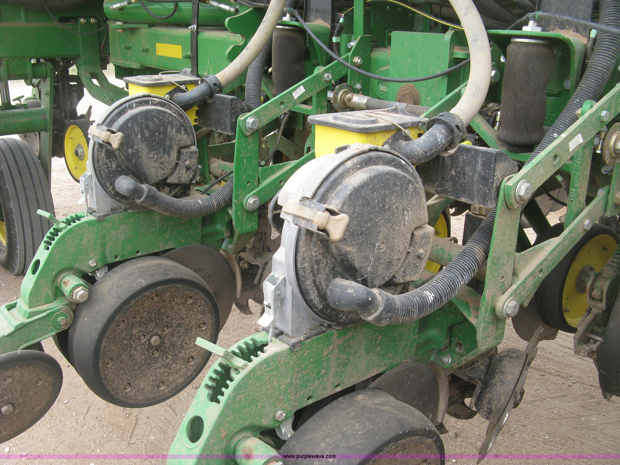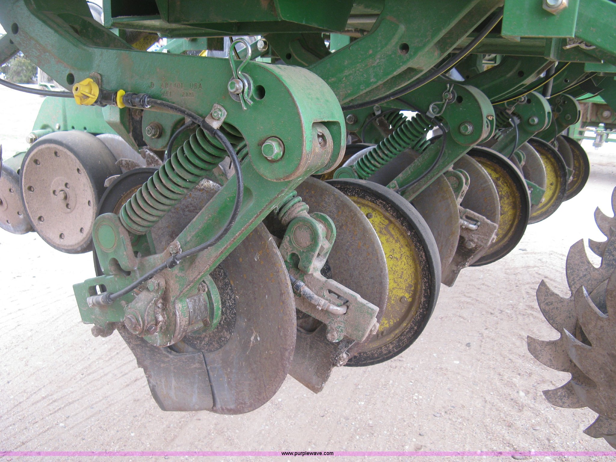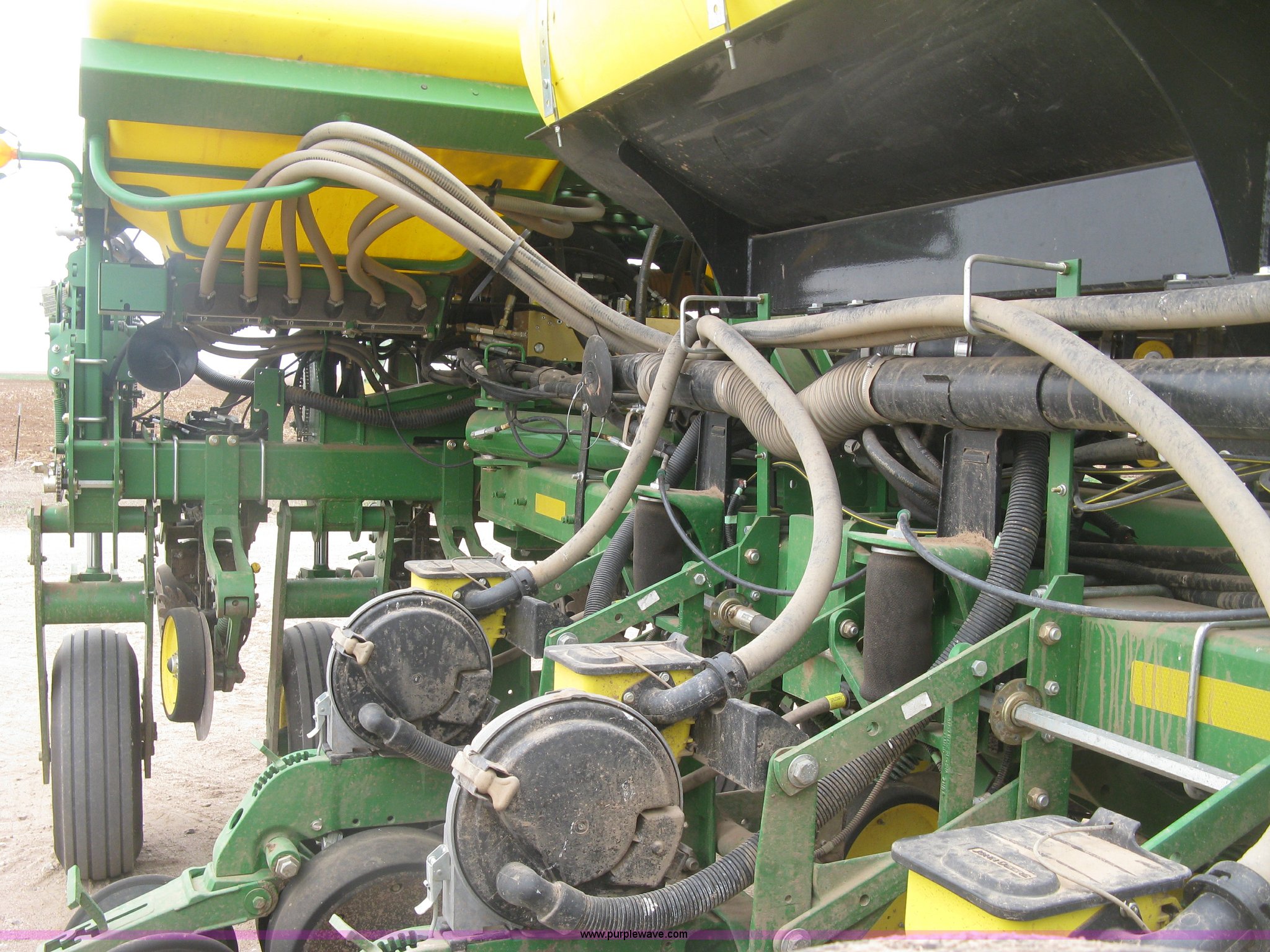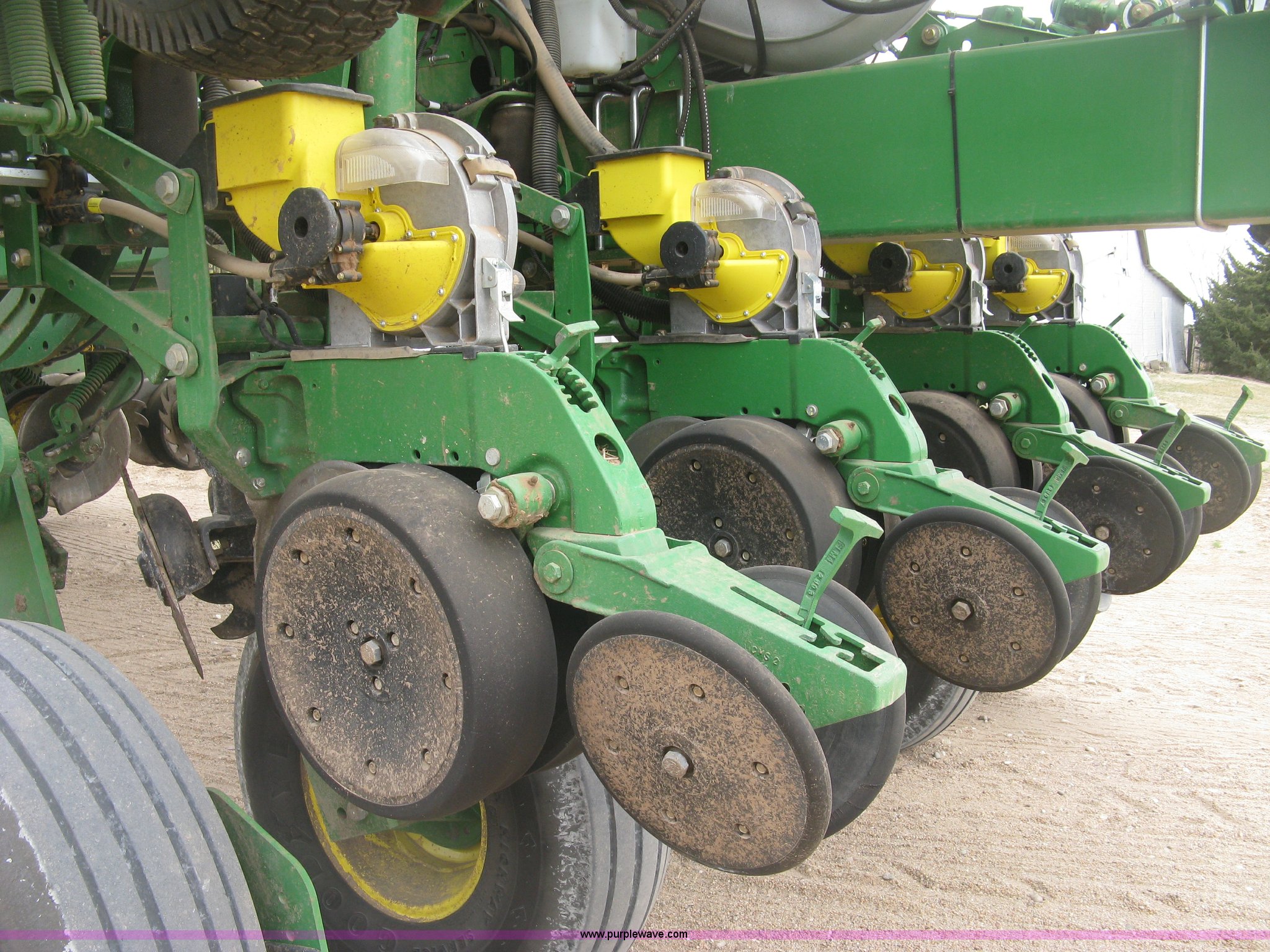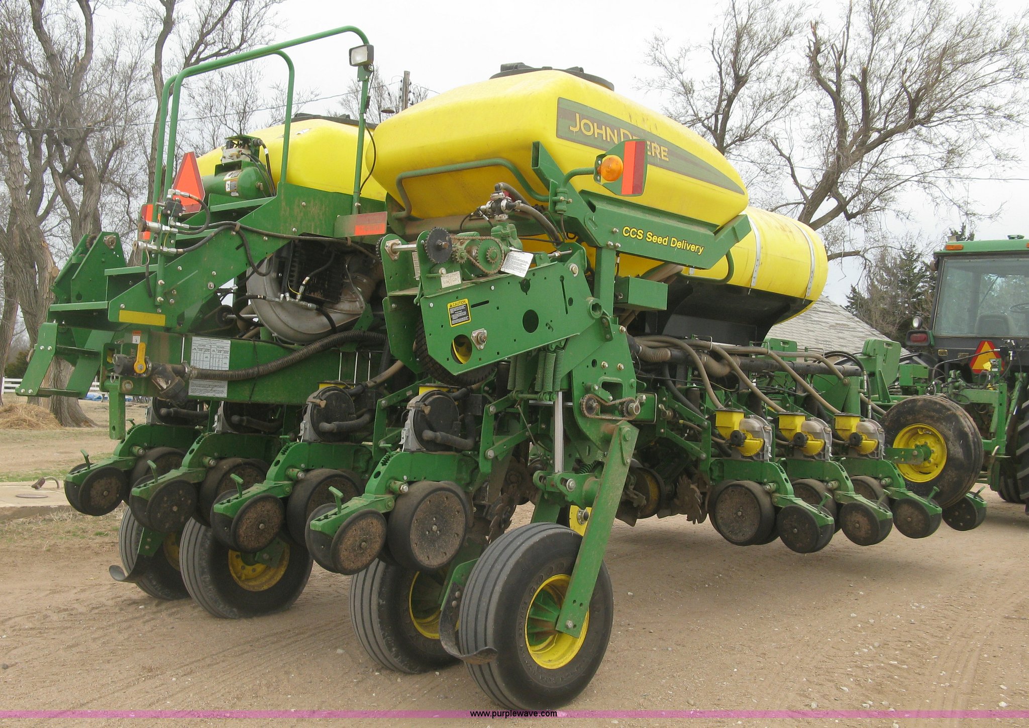 Purple Wave is selling a used Planter in Kansas. This item is a 2013 John Deere 1770NT CCS no-till planter with the following: 12 rows, 30" row spacing, Hydraulic front fold, Bulk fill system, (2) 50 bu. capacity, CCS seed delivery, Vacuum metering, Ground meter drive, (12) corn seed meters, (12) soybeans seed meters, (12) sorghum seed meters, Pneumatic down pressure, Row cleaners, No-till coulters, Double disk openers, Double gauge wheels, Double rubber closing system, 500 liquid fertilizer tank, Coulter application, John Deere piston pump, Hydraulic fold control box, Three point, Rear hitch, Auxiliary hydraulics, Seven pin outlet, Liquid fertilizer supply line, Rear platform/access steps, (6) 10.00-15FI transport tires, (2) Mud scraper/outside tandem, 16x6.50-8 NHS pump drive and meter drive tire, Manual, One owner, Stored inside, Monitor not included, Serial 1A01770ZTCM750153