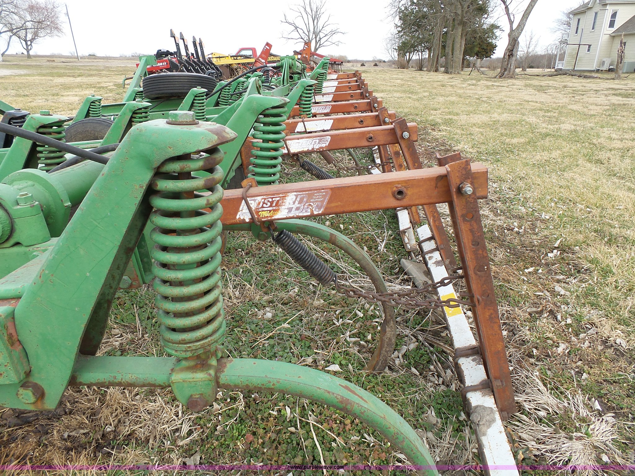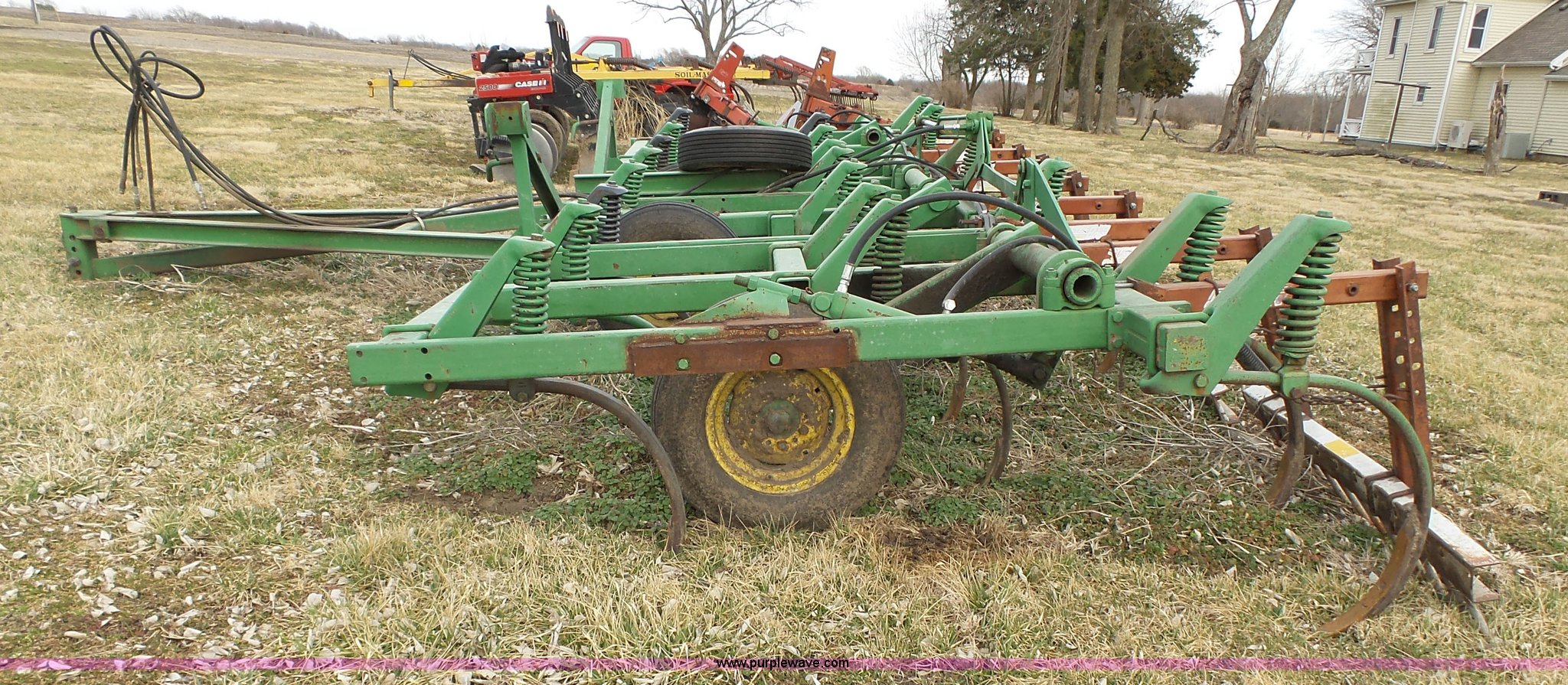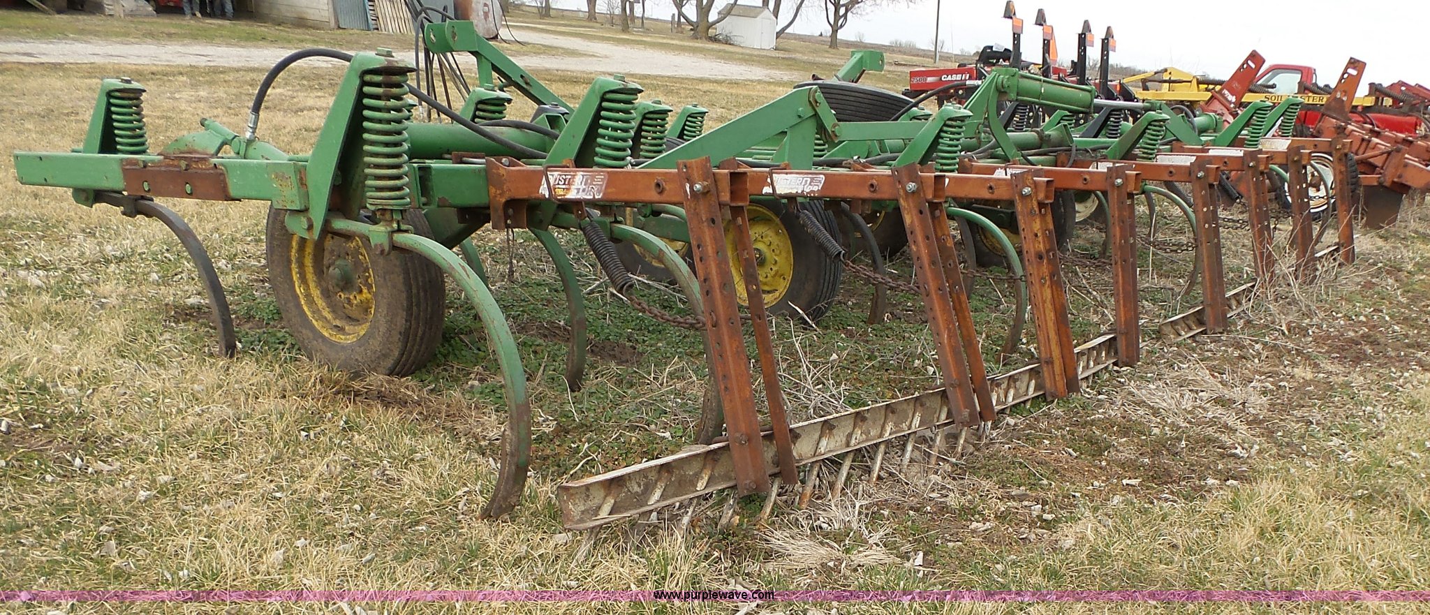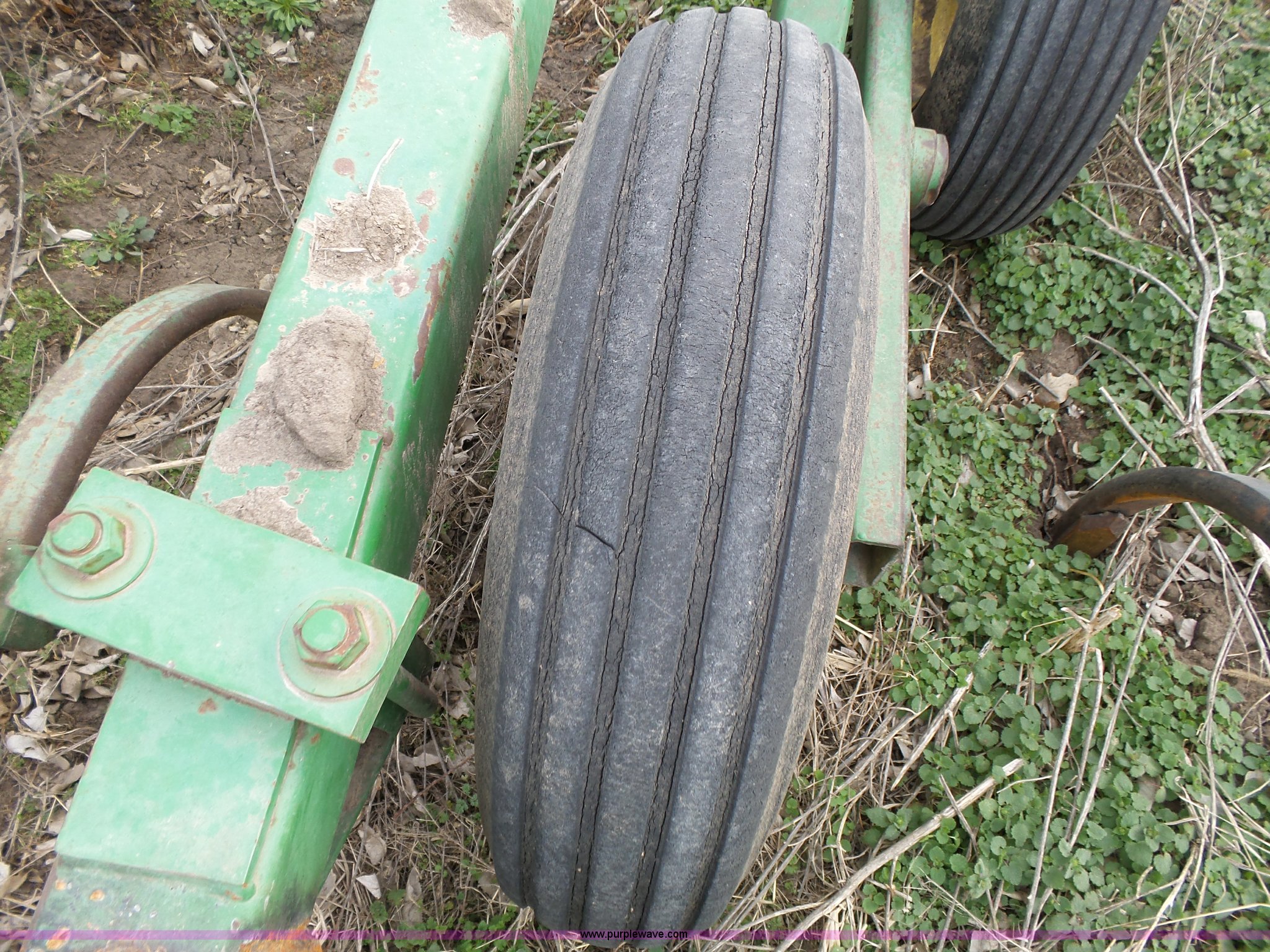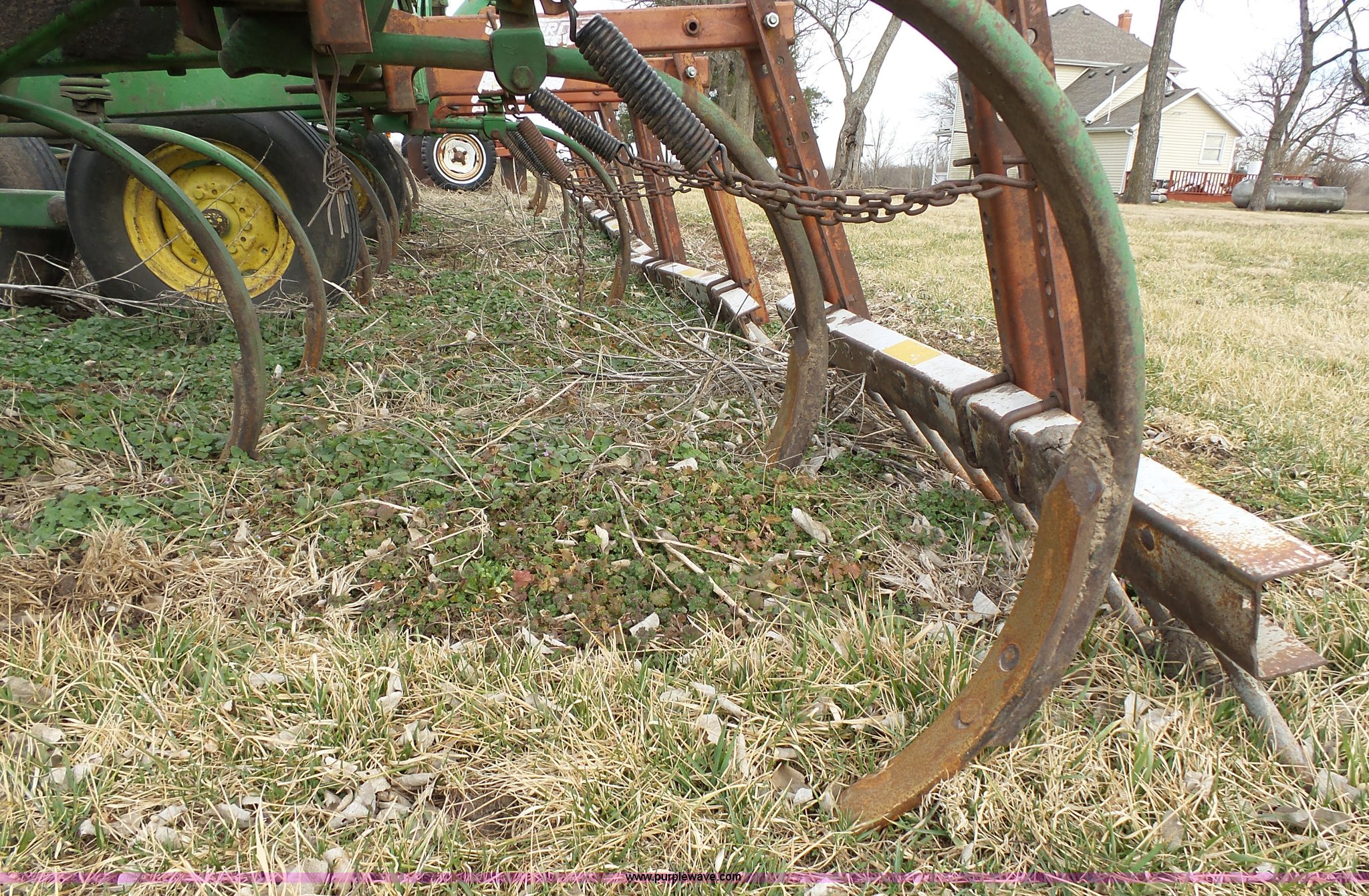 Purple Wave is selling a used Chisel in Kansas. This item is a John Deere 1600 chisel with the following: 24'W, Midwest rear harrow system, Hydraulics, Pin hitch, (6) 15" tires, Additional 15" tire, Weld repairs