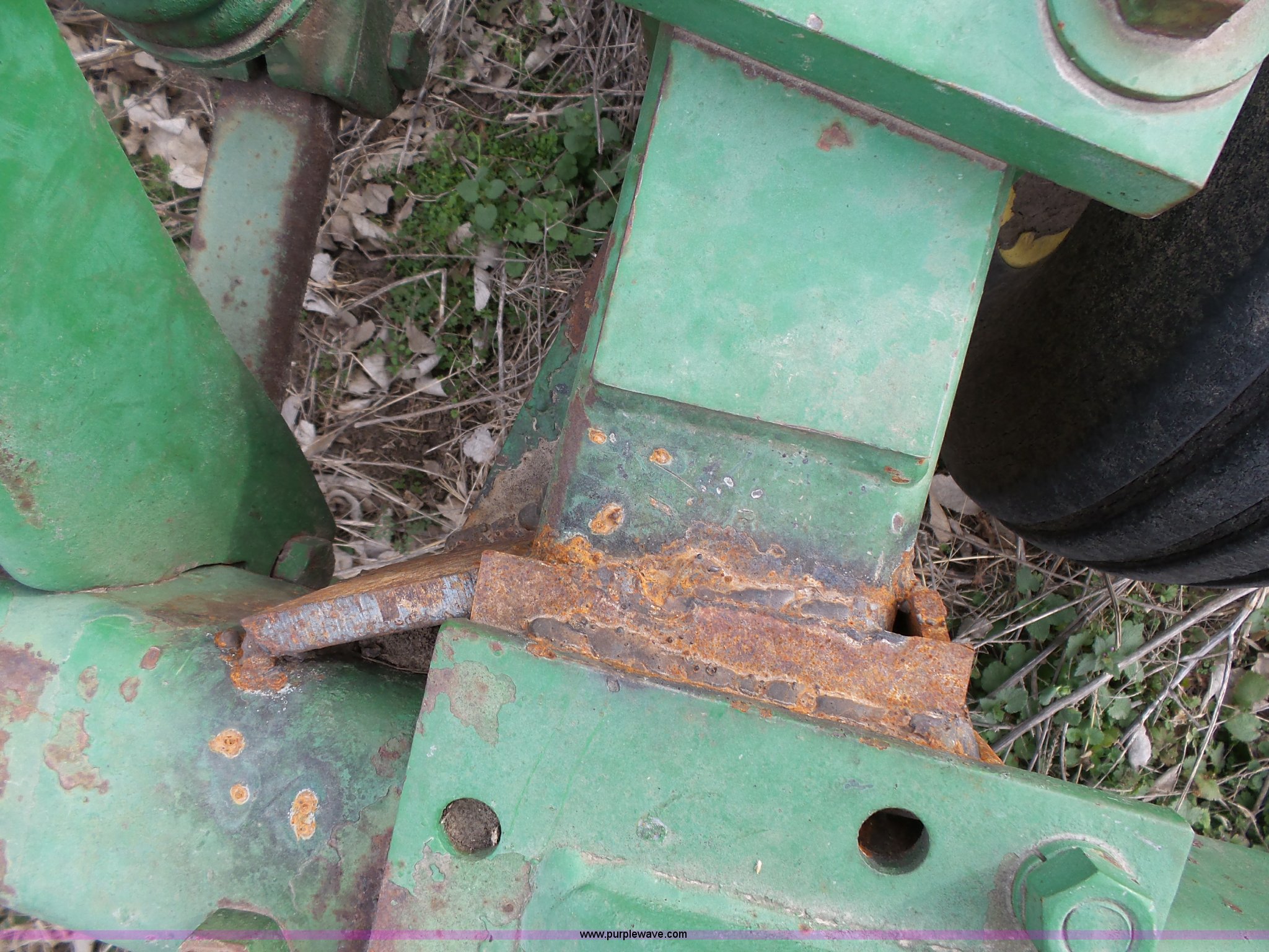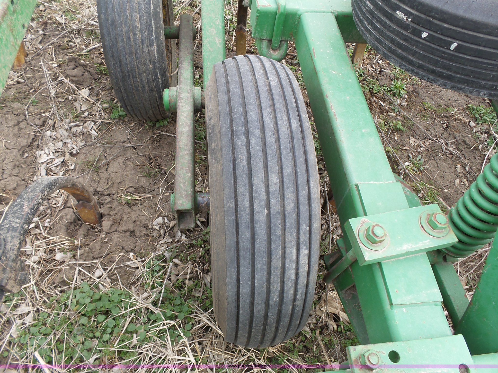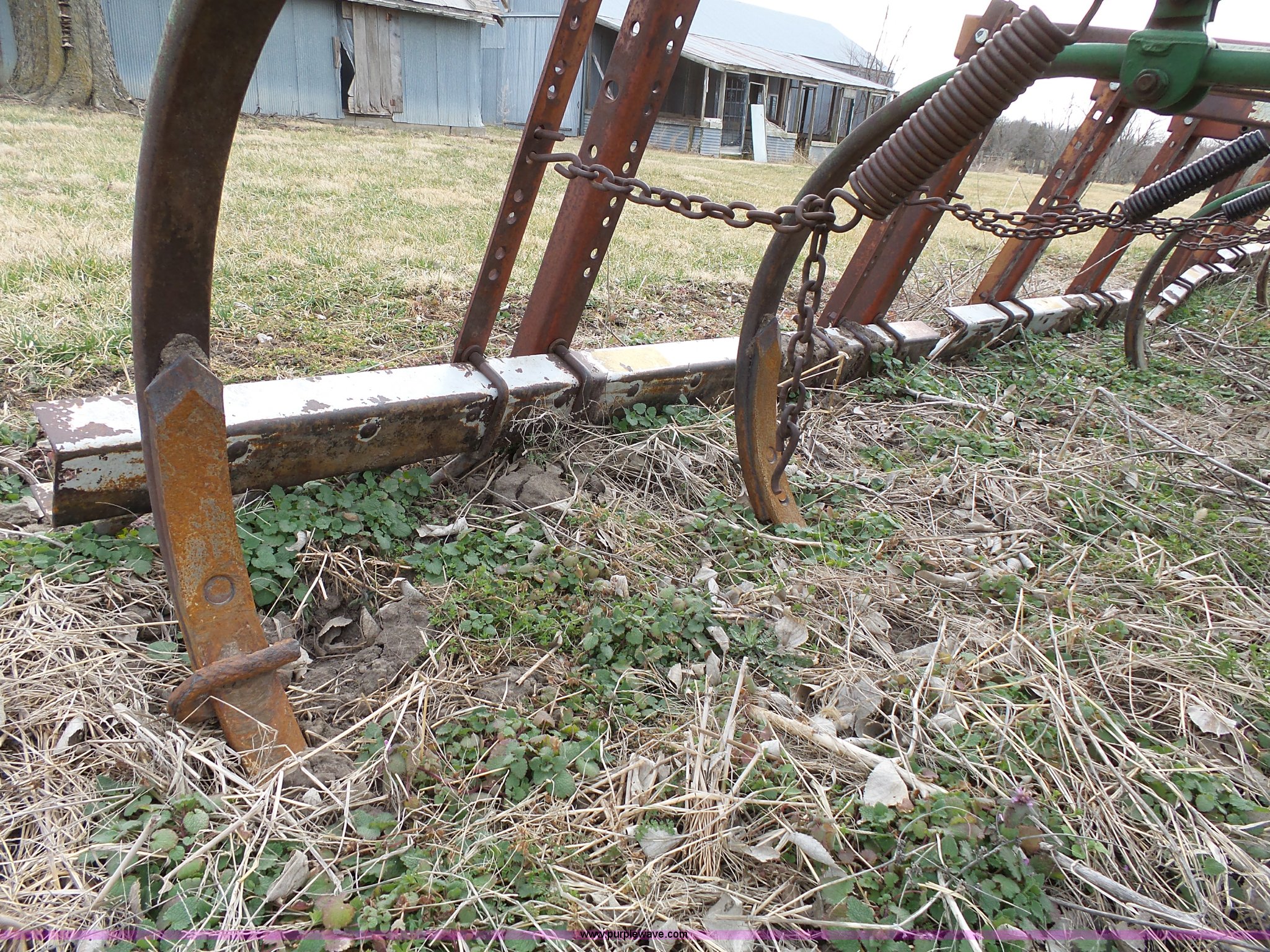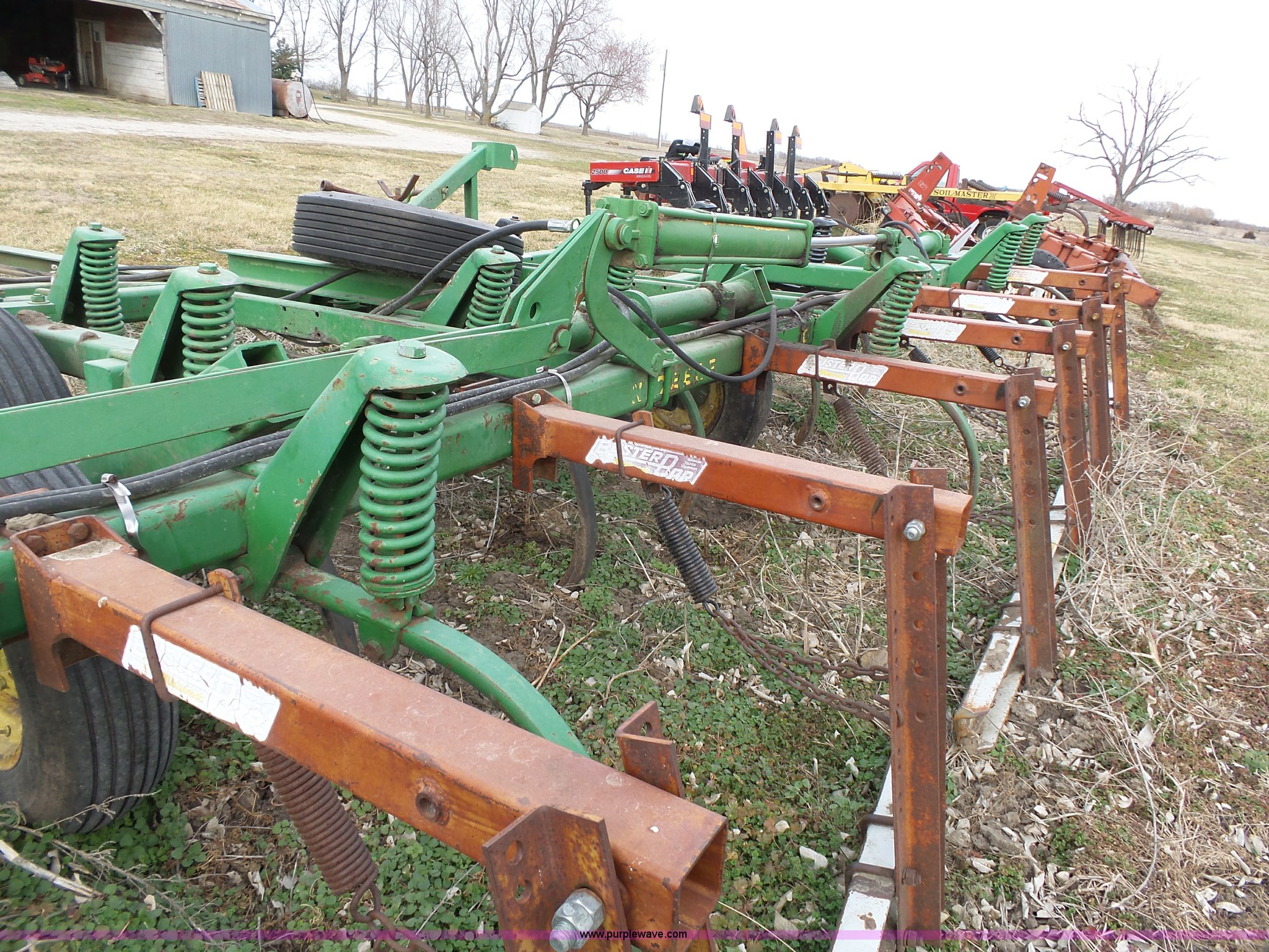 Purple Wave is selling a used Chisel in Kansas. This item is a John Deere 1600 chisel with the following: 24'W, Midwest rear harrow system, Hydraulics, Pin hitch, (6) 15" tires, Additional 15" tire, Weld repairs