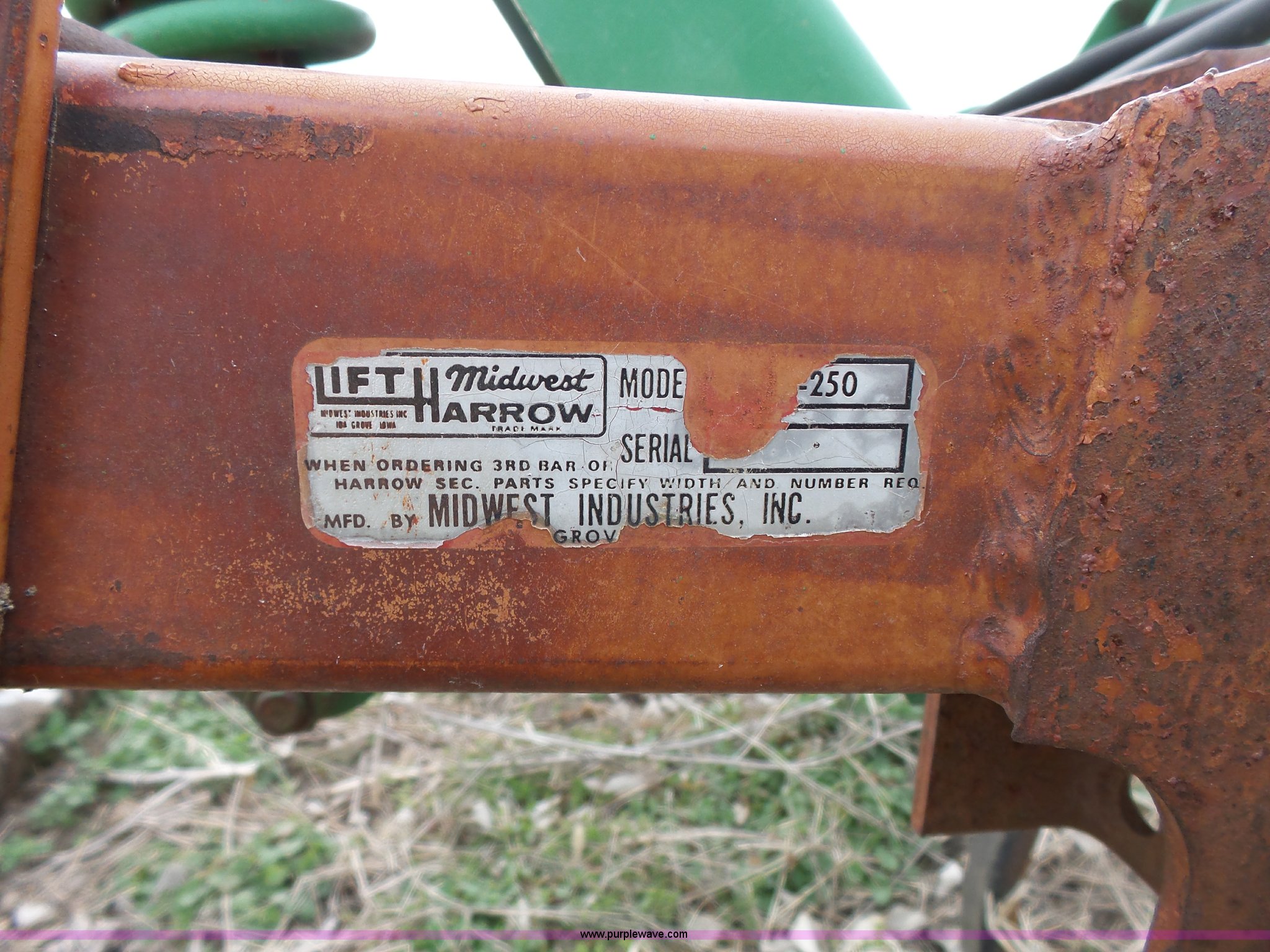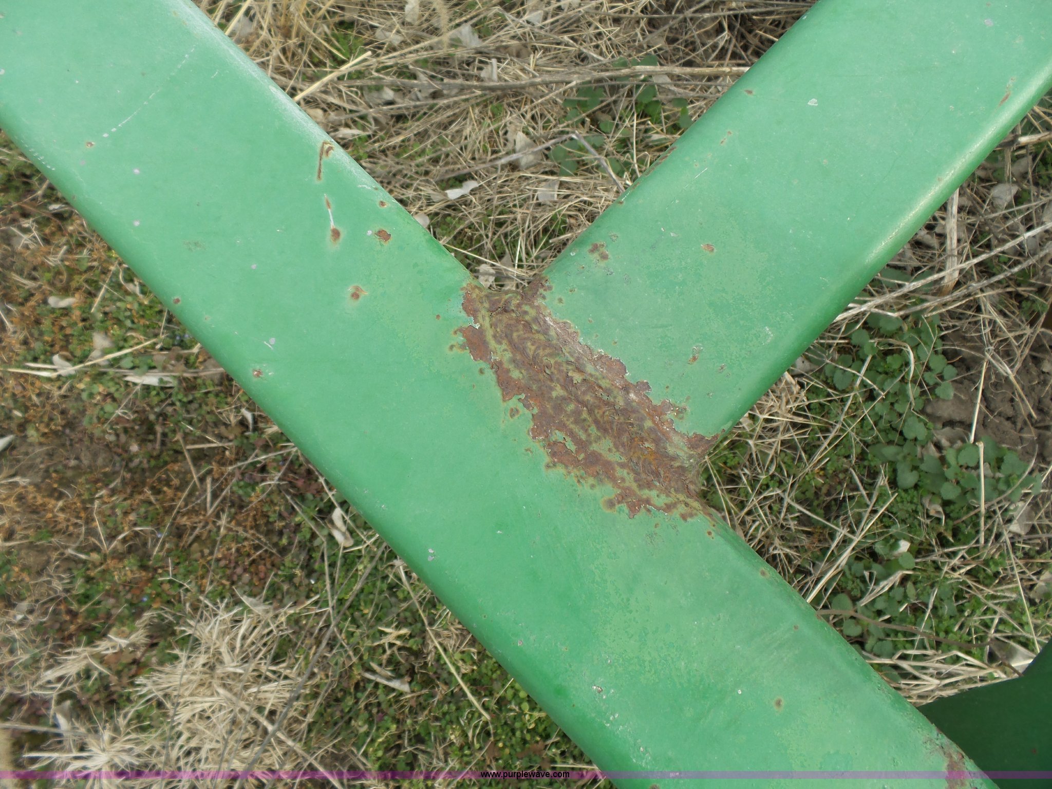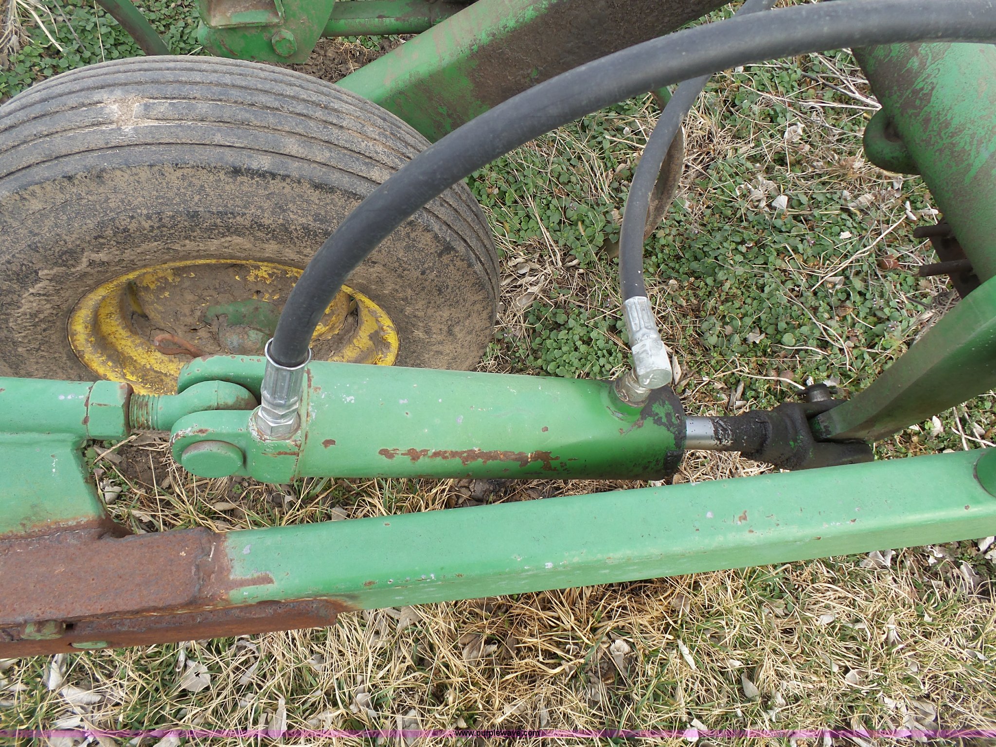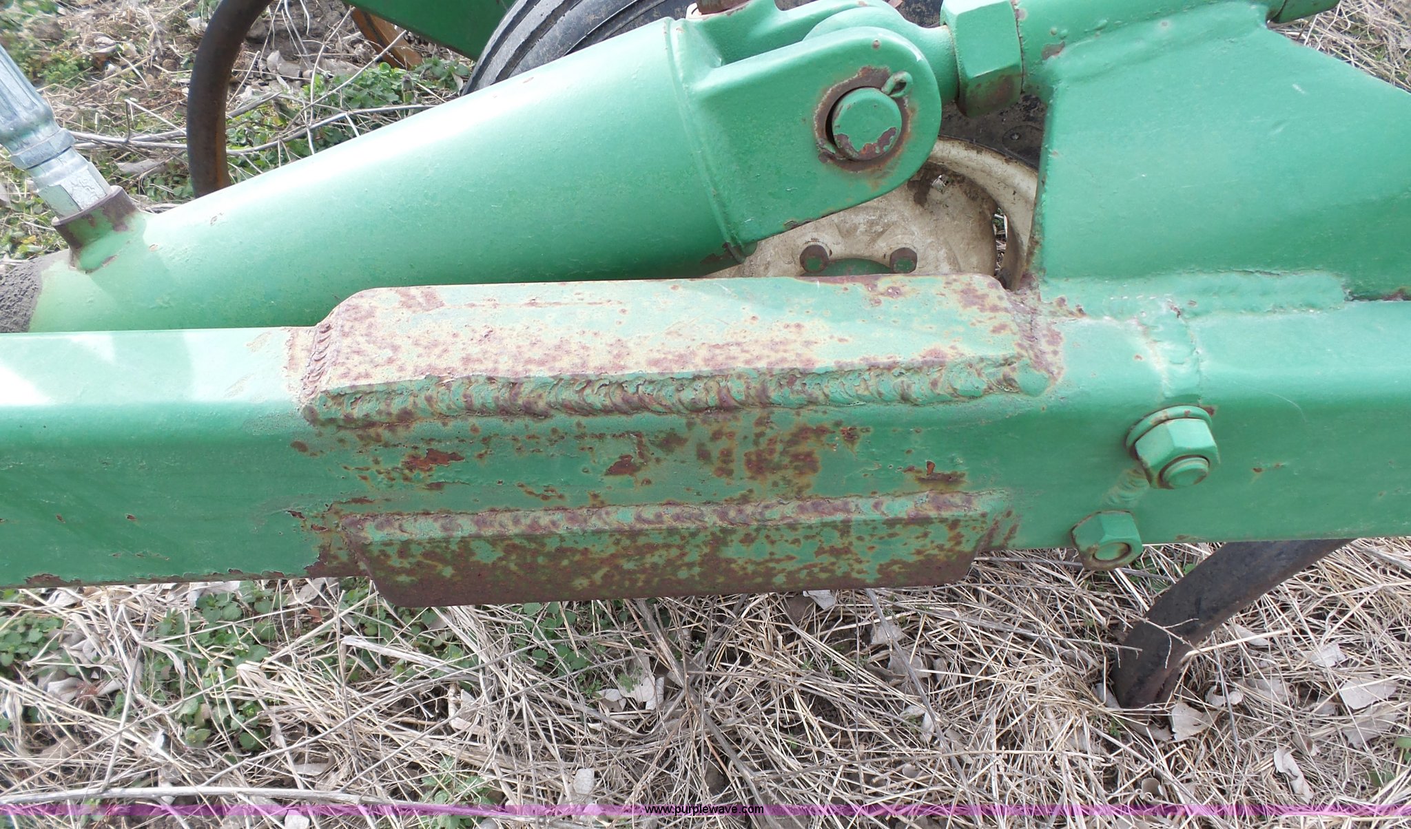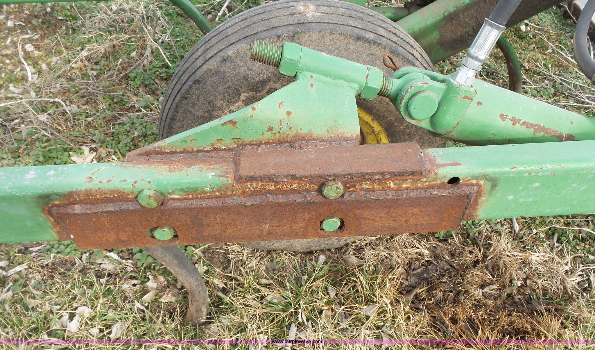 Purple Wave is selling a used Chisel in Kansas. This item is a John Deere 1600 chisel with the following: 24'W, Midwest rear harrow system, Hydraulics, Pin hitch, (6) 15" tires, Additional 15" tire, Weld repairs