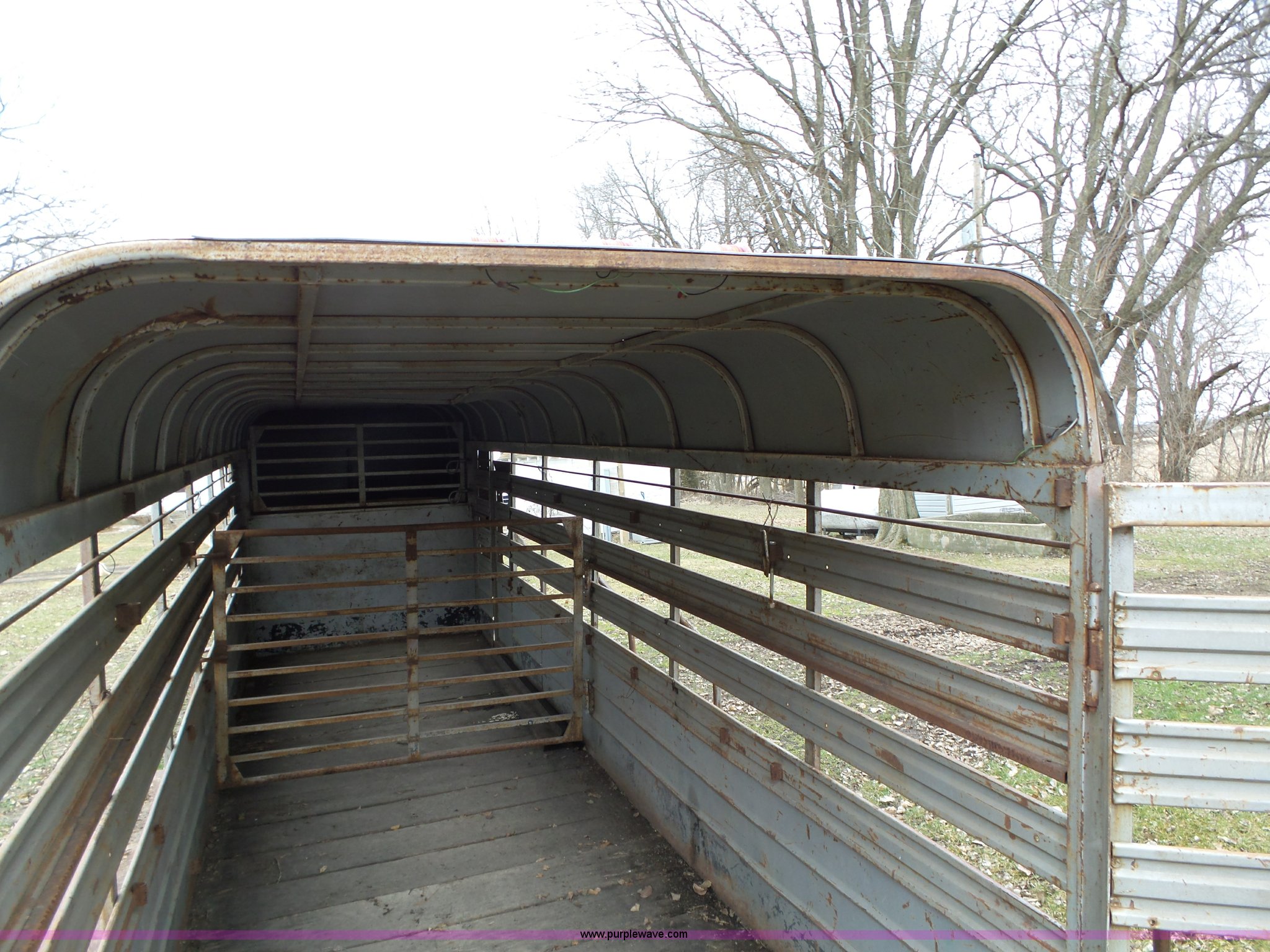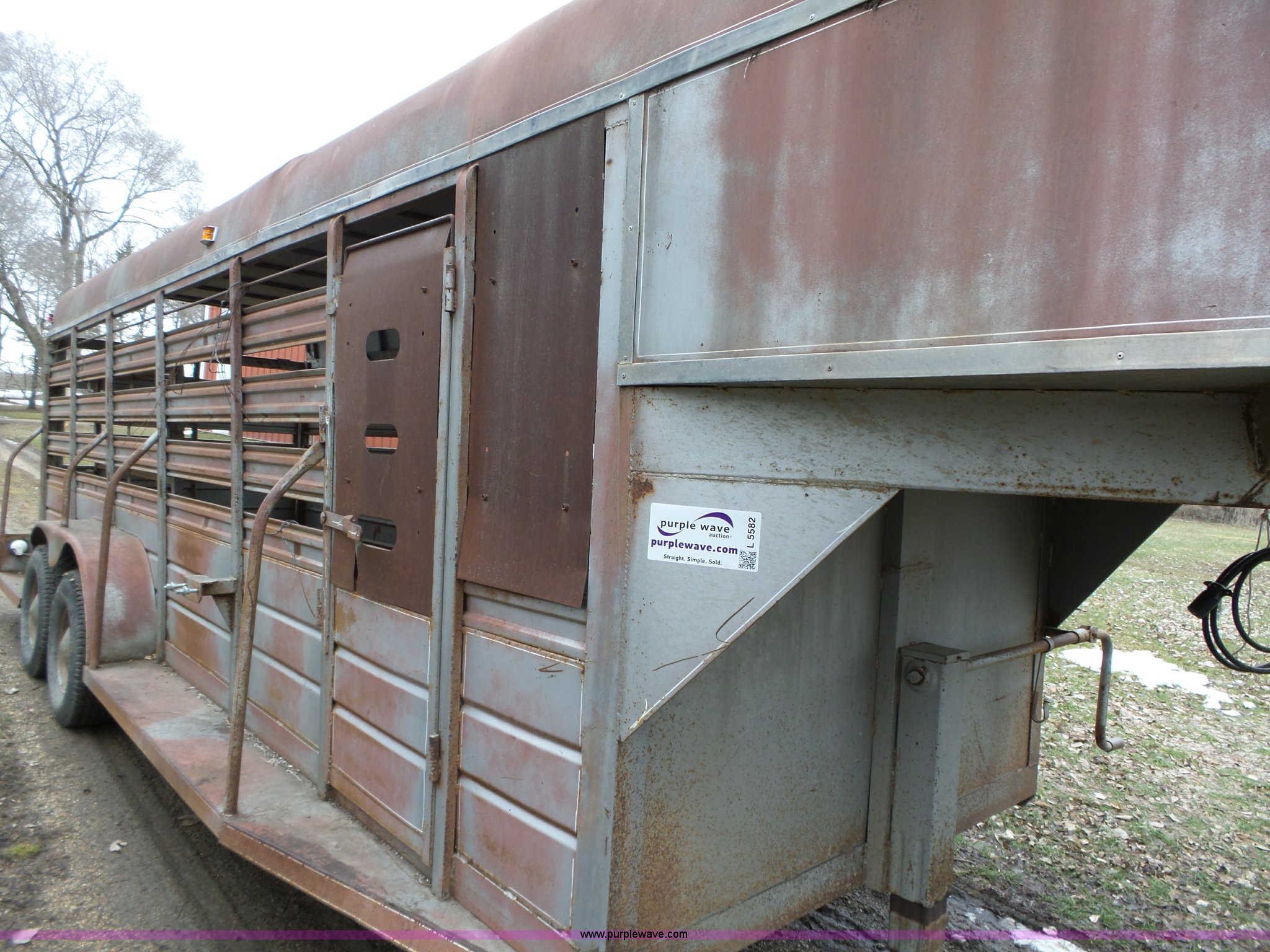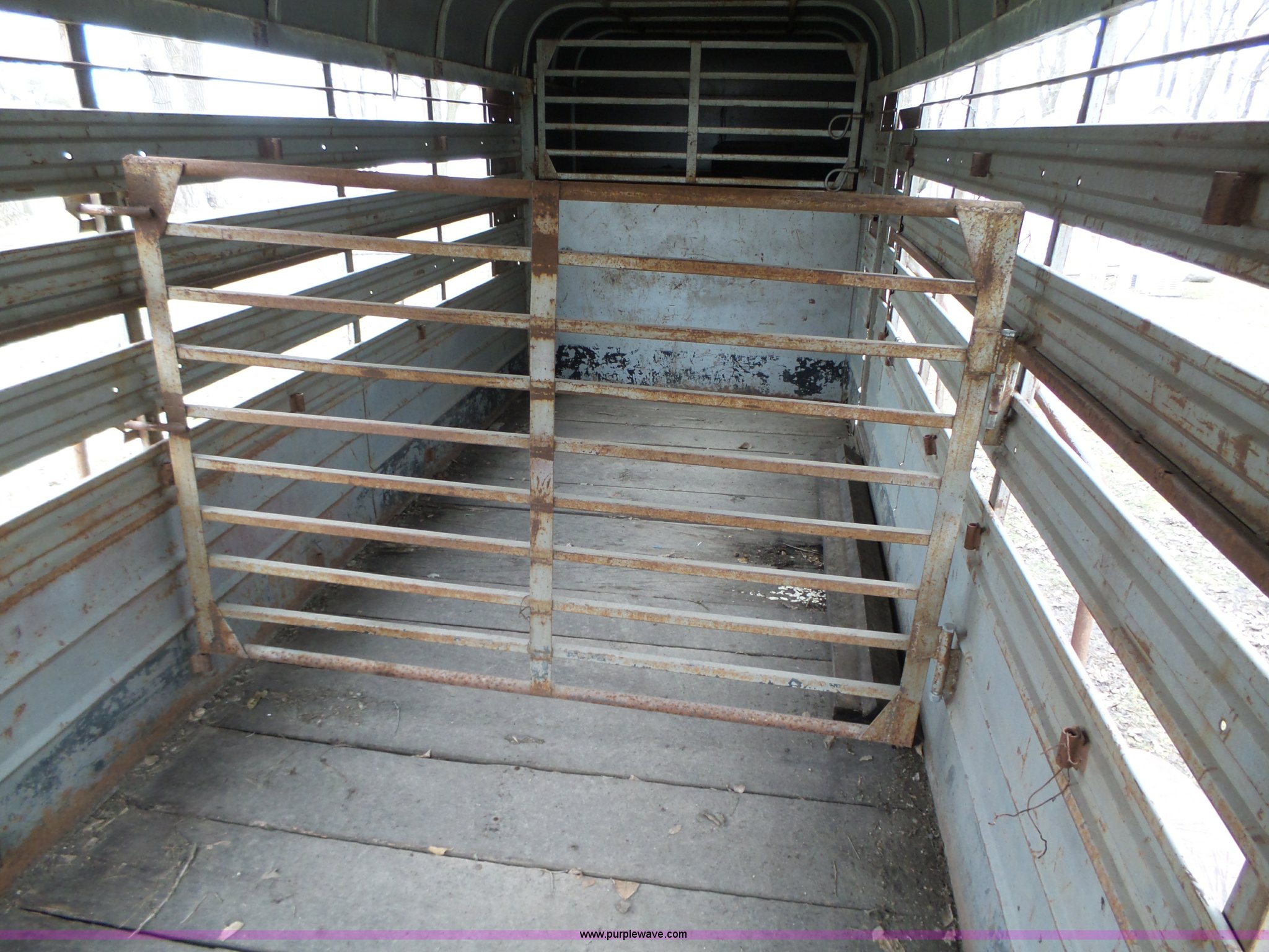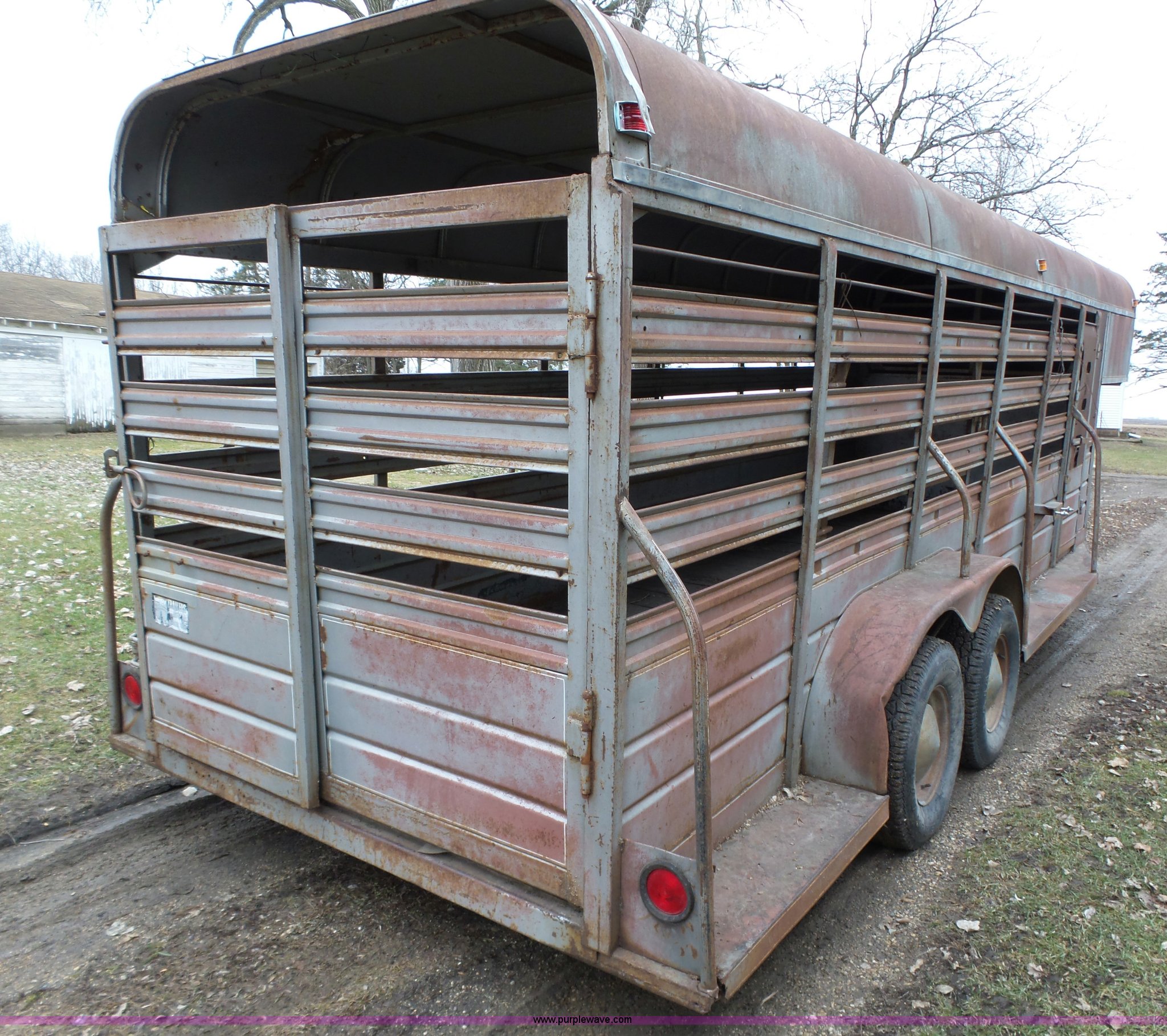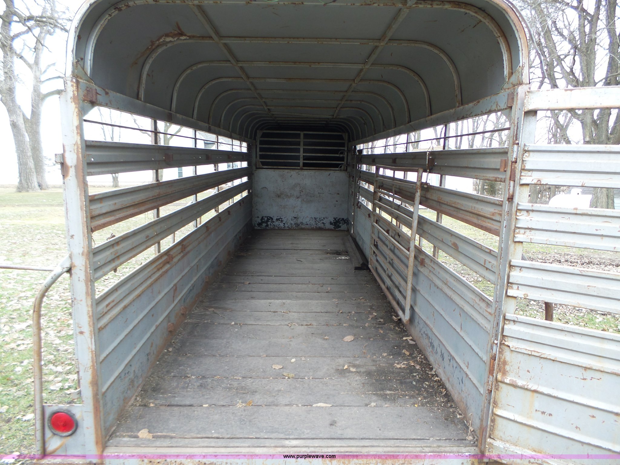 Purple Wave is selling a used Livestock Trailer in Iowa. This item is a 1980 WW livestock trailer with the following: 28'L x 95"W overall, 20' x 6' holding bay, Rear sliding gate, Center cut gate, Right side entry door, Wood floor, Gooseneck hitch, Single jack stand, Seven pin electrical connector, Spring suspension, Electric brakes, LT245/75R15 tires, Recently replaced electrical wiring