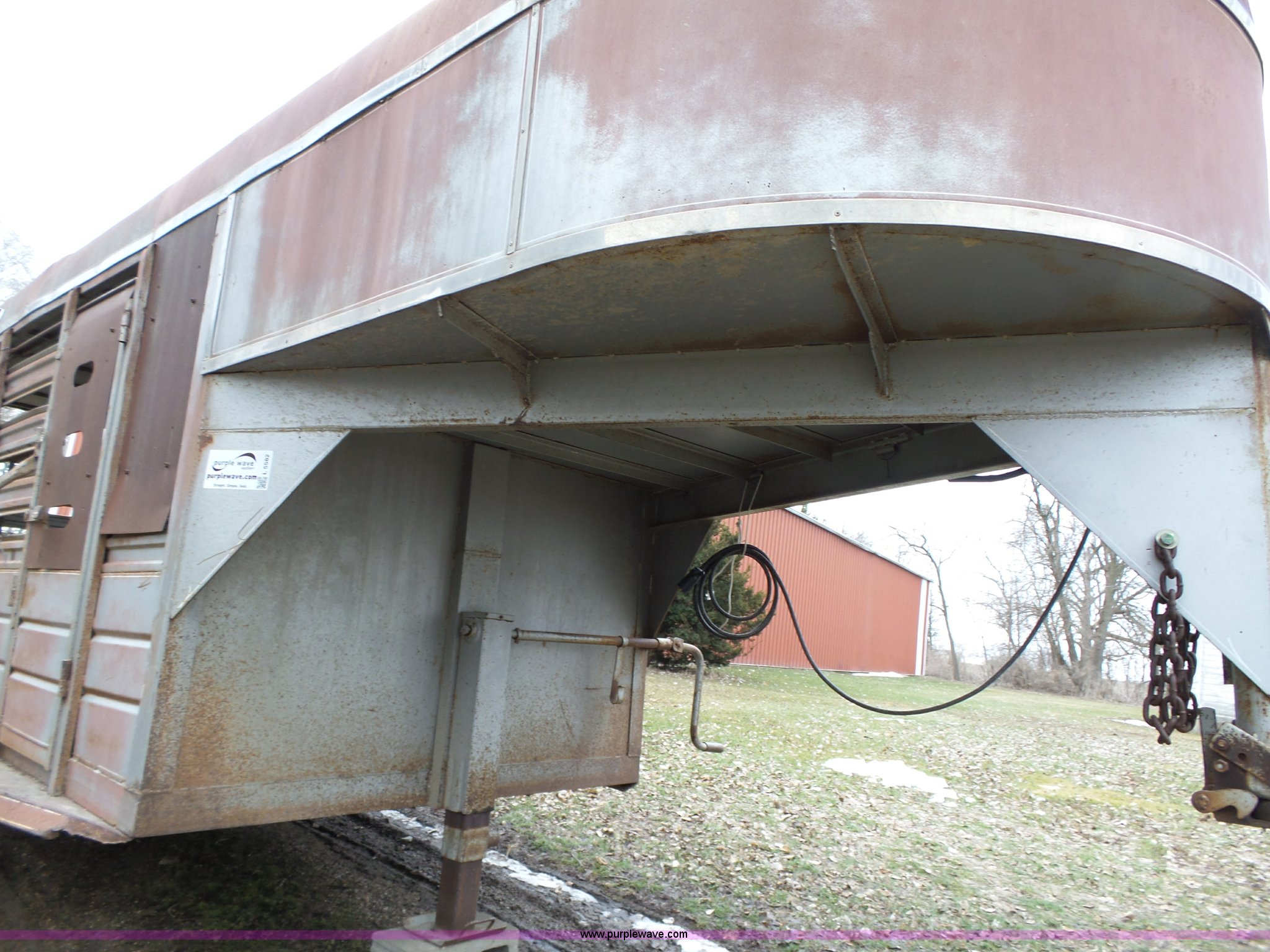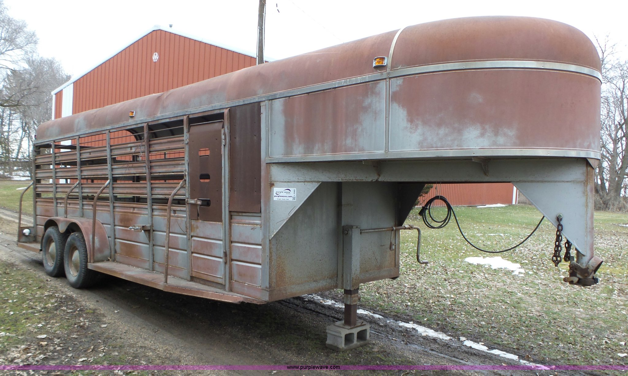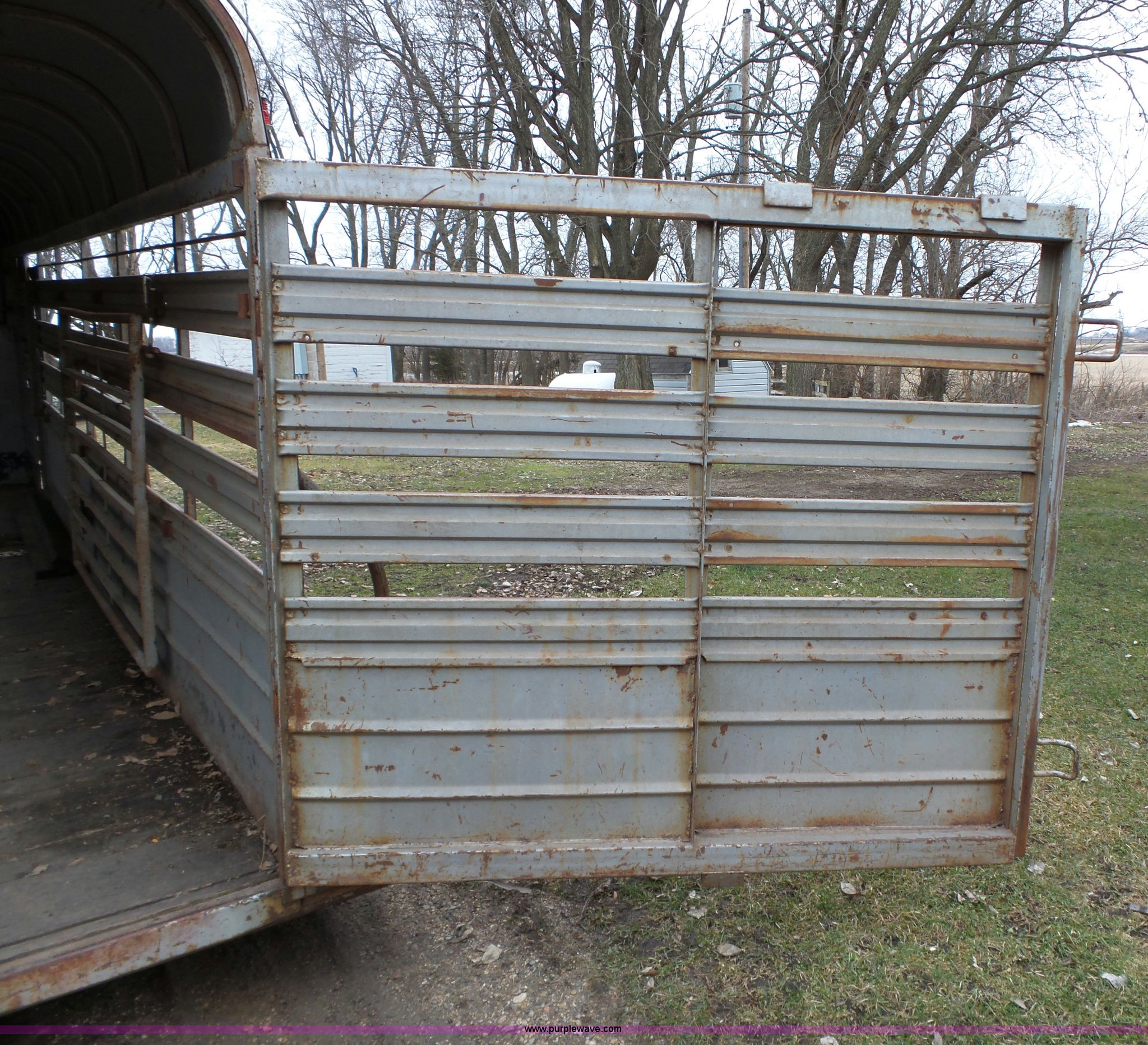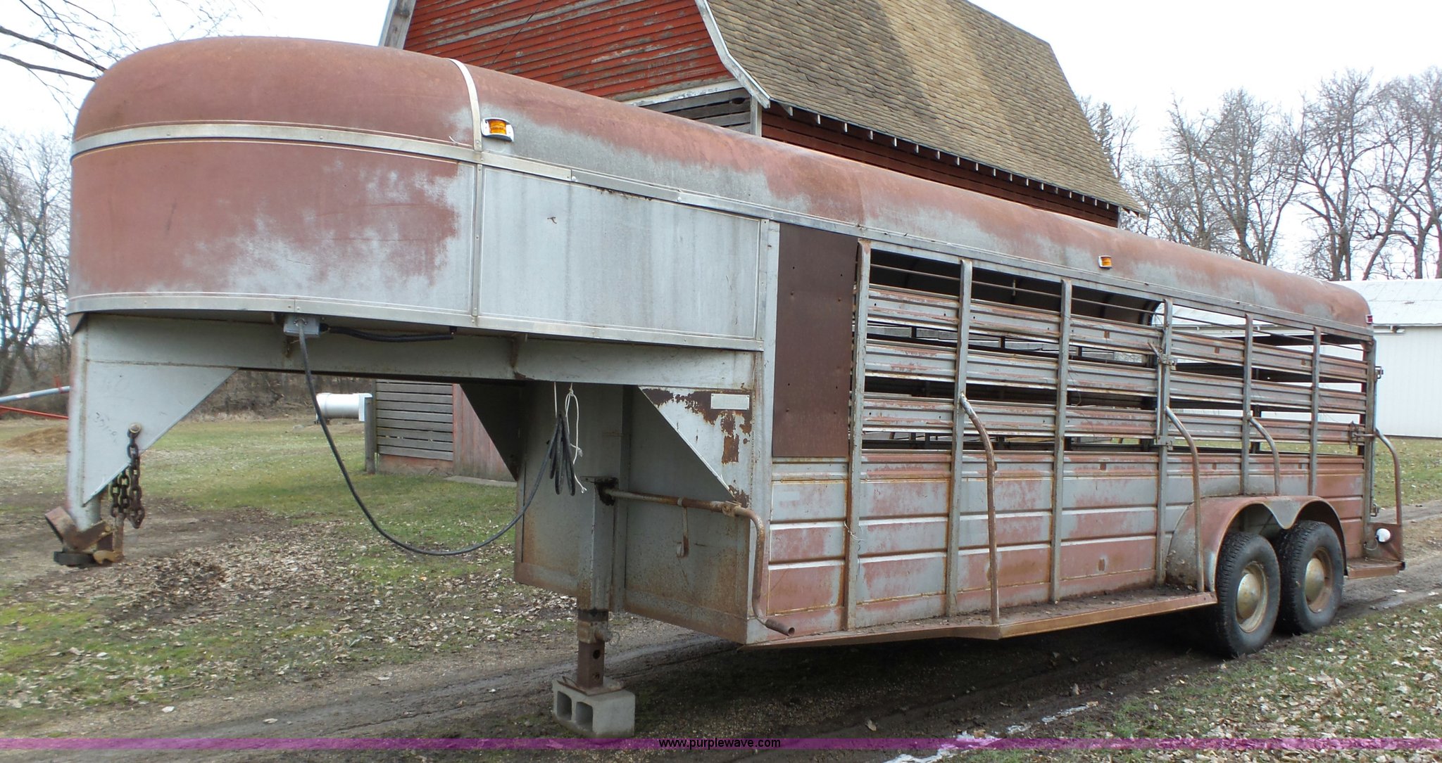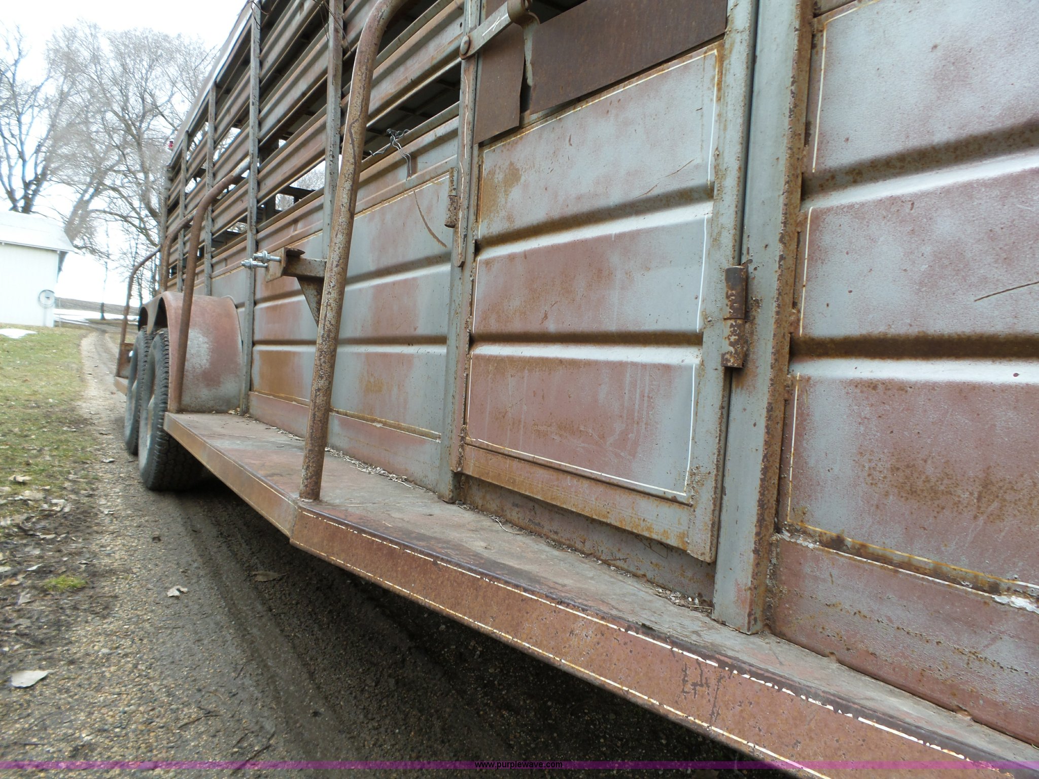 Purple Wave is selling a used Livestock Trailer in Iowa. This item is a 1980 WW livestock trailer with the following: 28'L x 95"W overall, 20' x 6' holding bay, Rear sliding gate, Center cut gate, Right side entry door, Wood floor, Gooseneck hitch, Single jack stand, Seven pin electrical connector, Spring suspension, Electric brakes, LT245/75R15 tires, Recently replaced electrical wiring