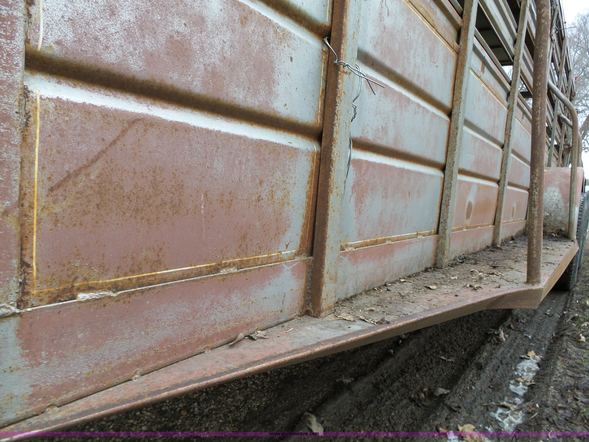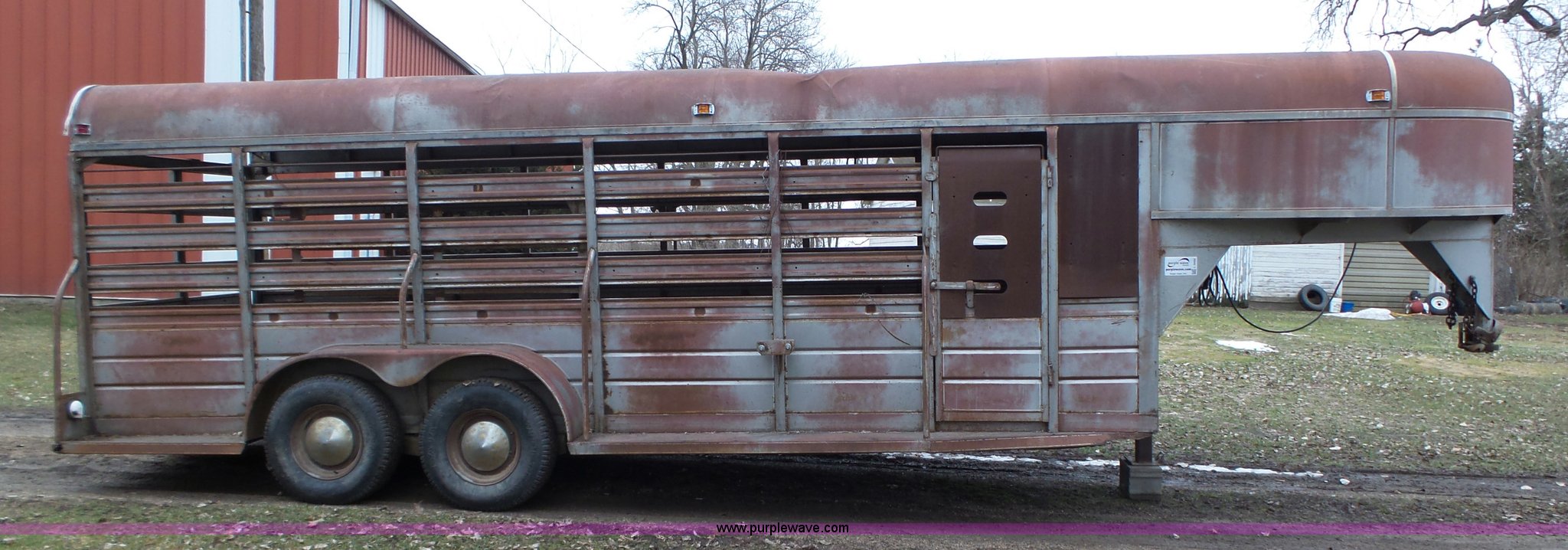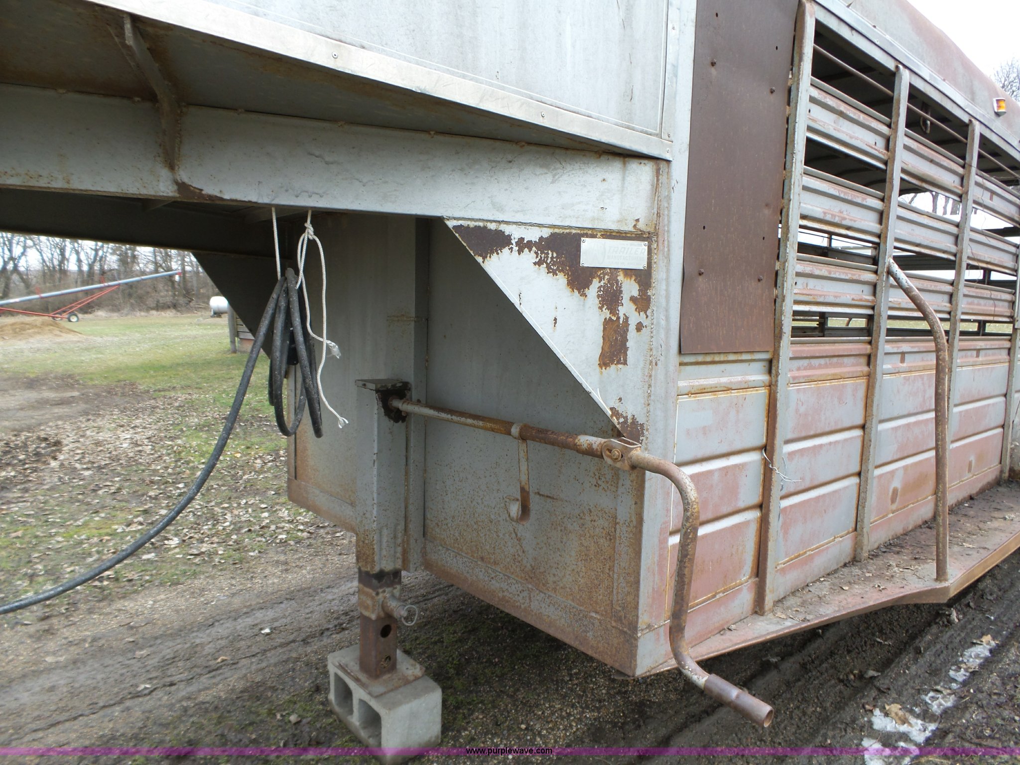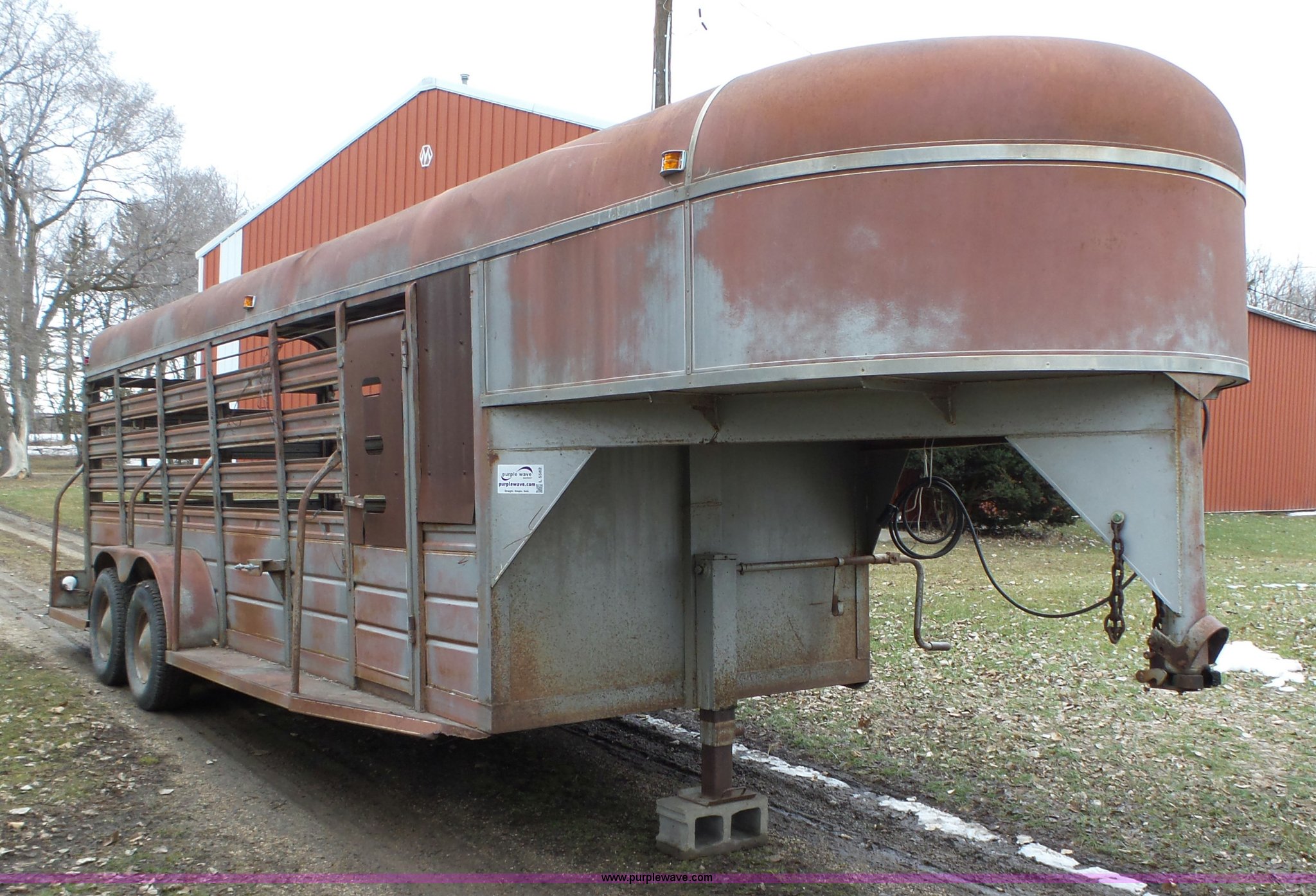 Purple Wave is selling a used Livestock Trailer in Iowa. This item is a 1980 WW livestock trailer with the following: 28'L x 95"W overall, 20' x 6' holding bay, Rear sliding gate, Center cut gate, Right side entry door, Wood floor, Gooseneck hitch, Single jack stand, Seven pin electrical connector, Spring suspension, Electric brakes, LT245/75R15 tires, Recently replaced electrical wiring