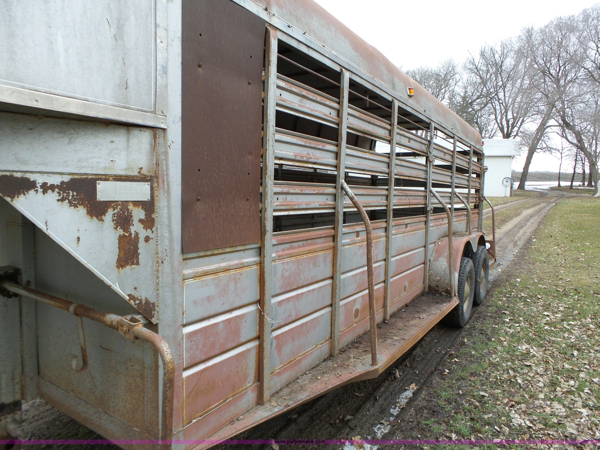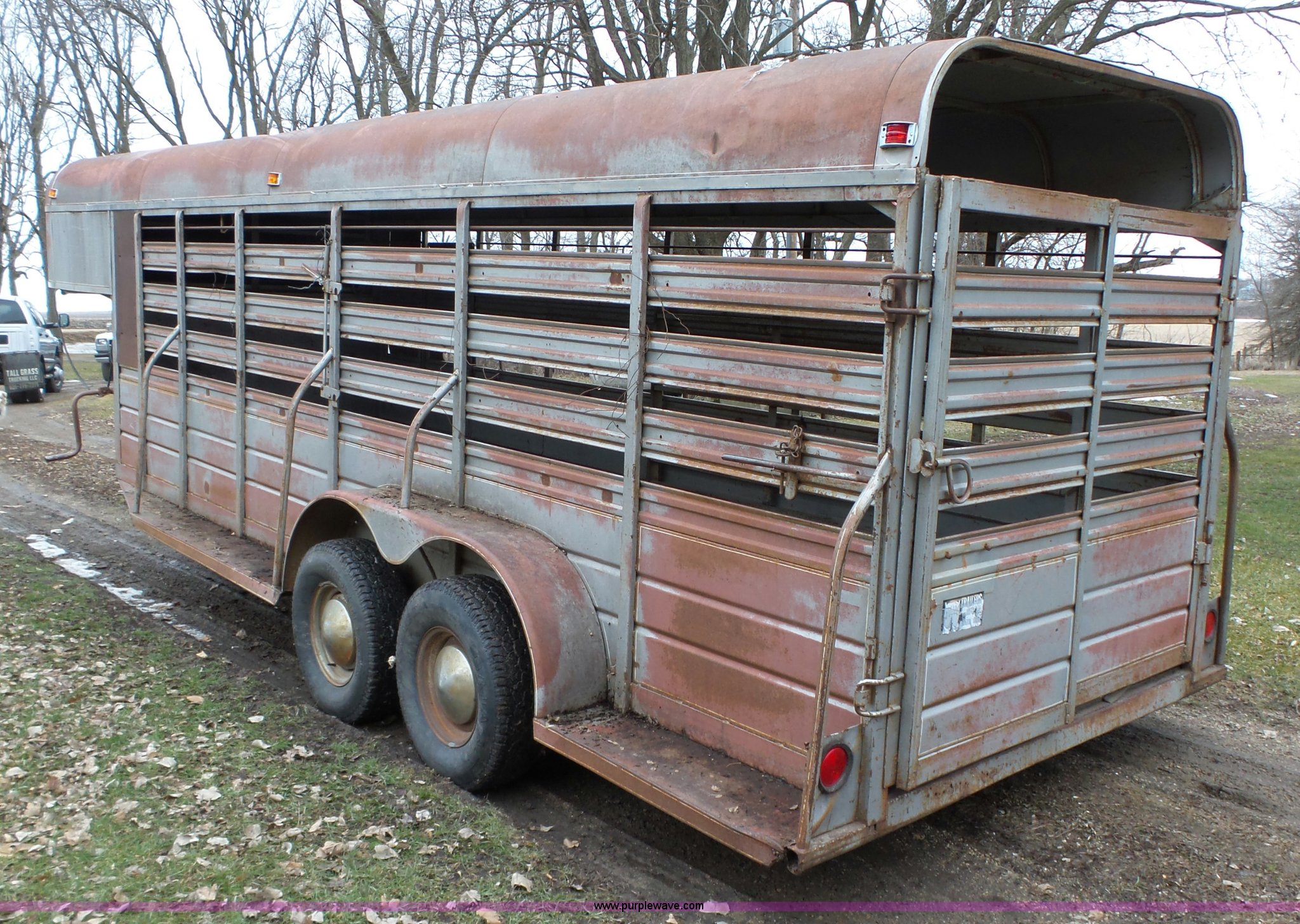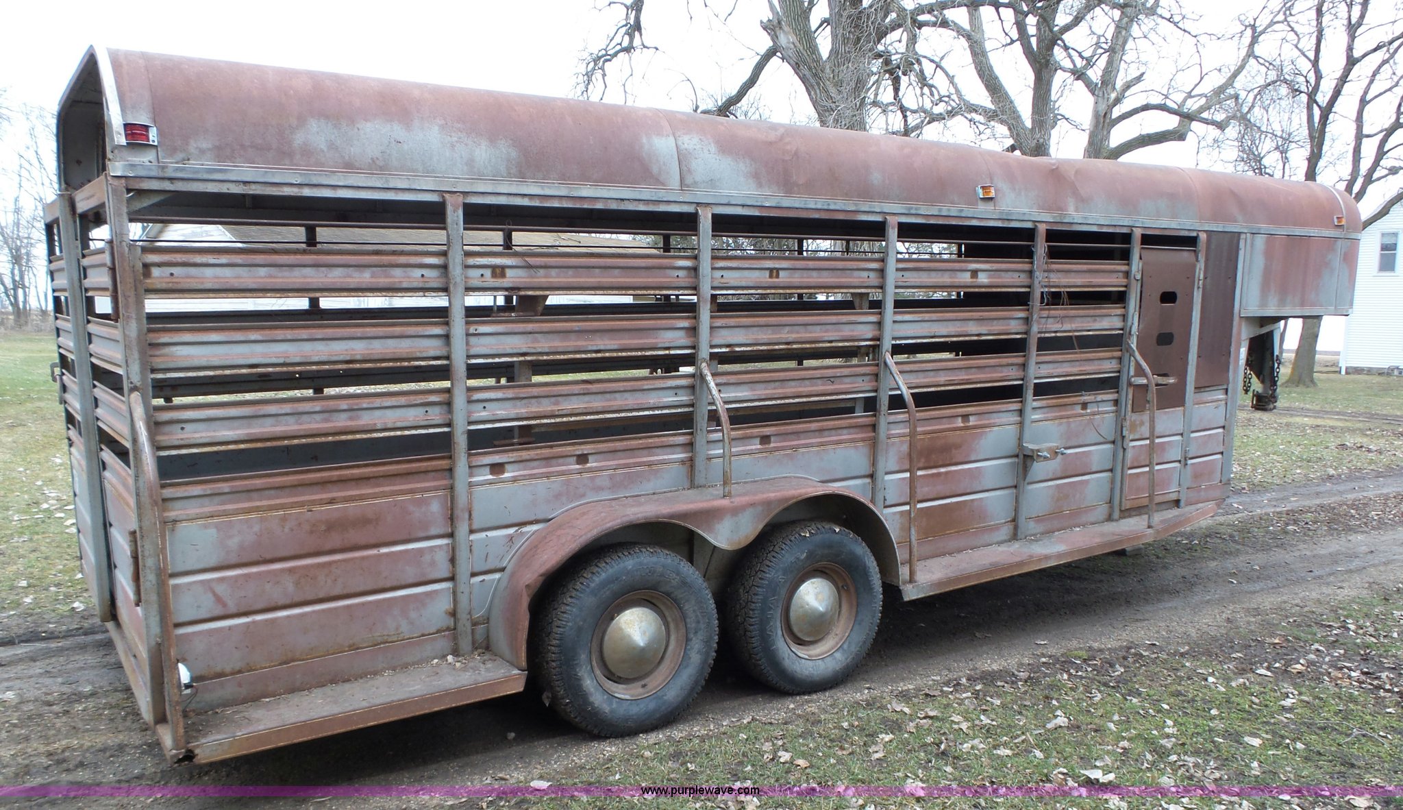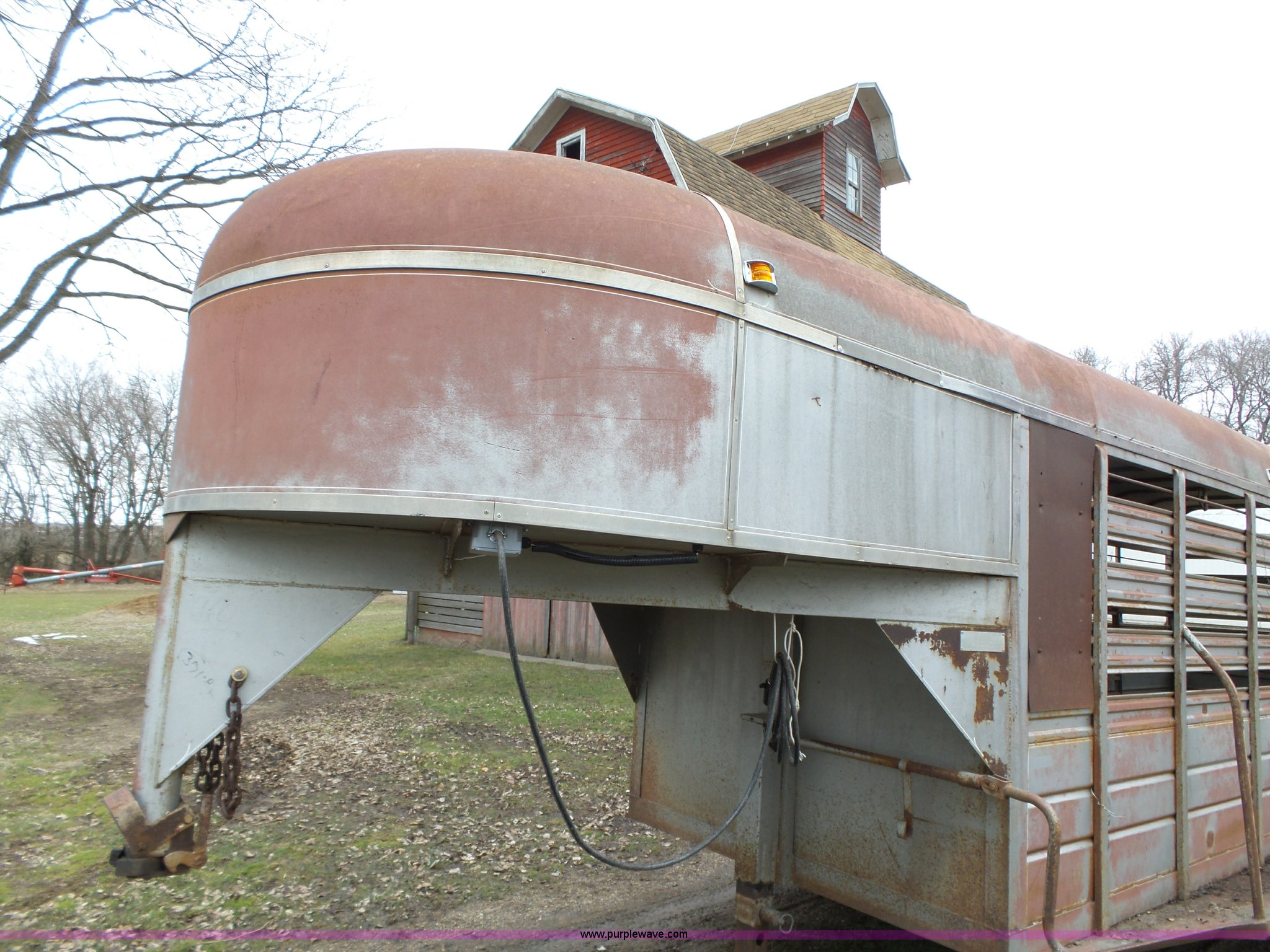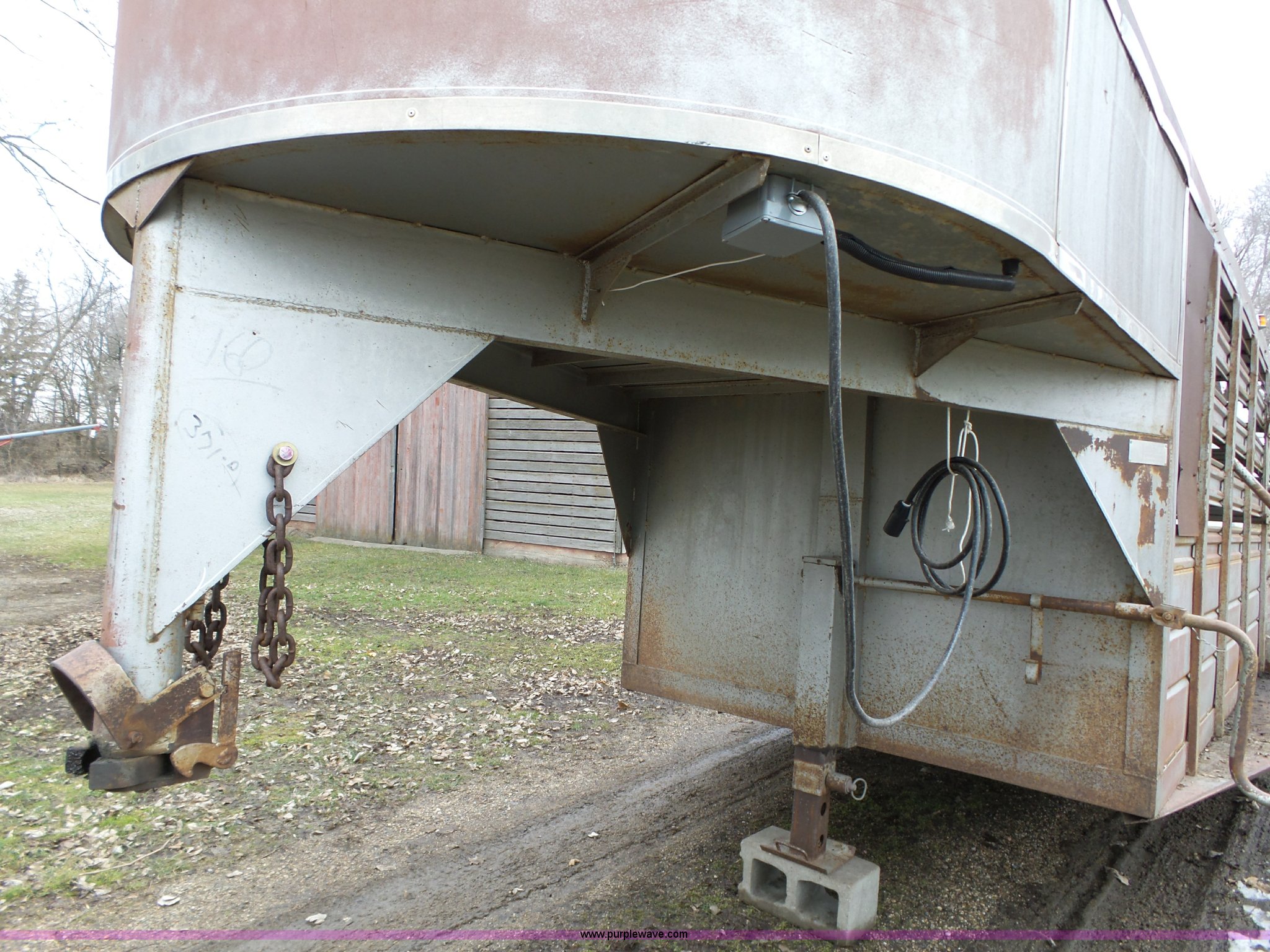 Purple Wave is selling a used Livestock Trailer in Iowa. This item is a 1980 WW livestock trailer with the following: 28'L x 95"W overall, 20' x 6' holding bay, Rear sliding gate, Center cut gate, Right side entry door, Wood floor, Gooseneck hitch, Single jack stand, Seven pin electrical connector, Spring suspension, Electric brakes, LT245/75R15 tires, Recently replaced electrical wiring