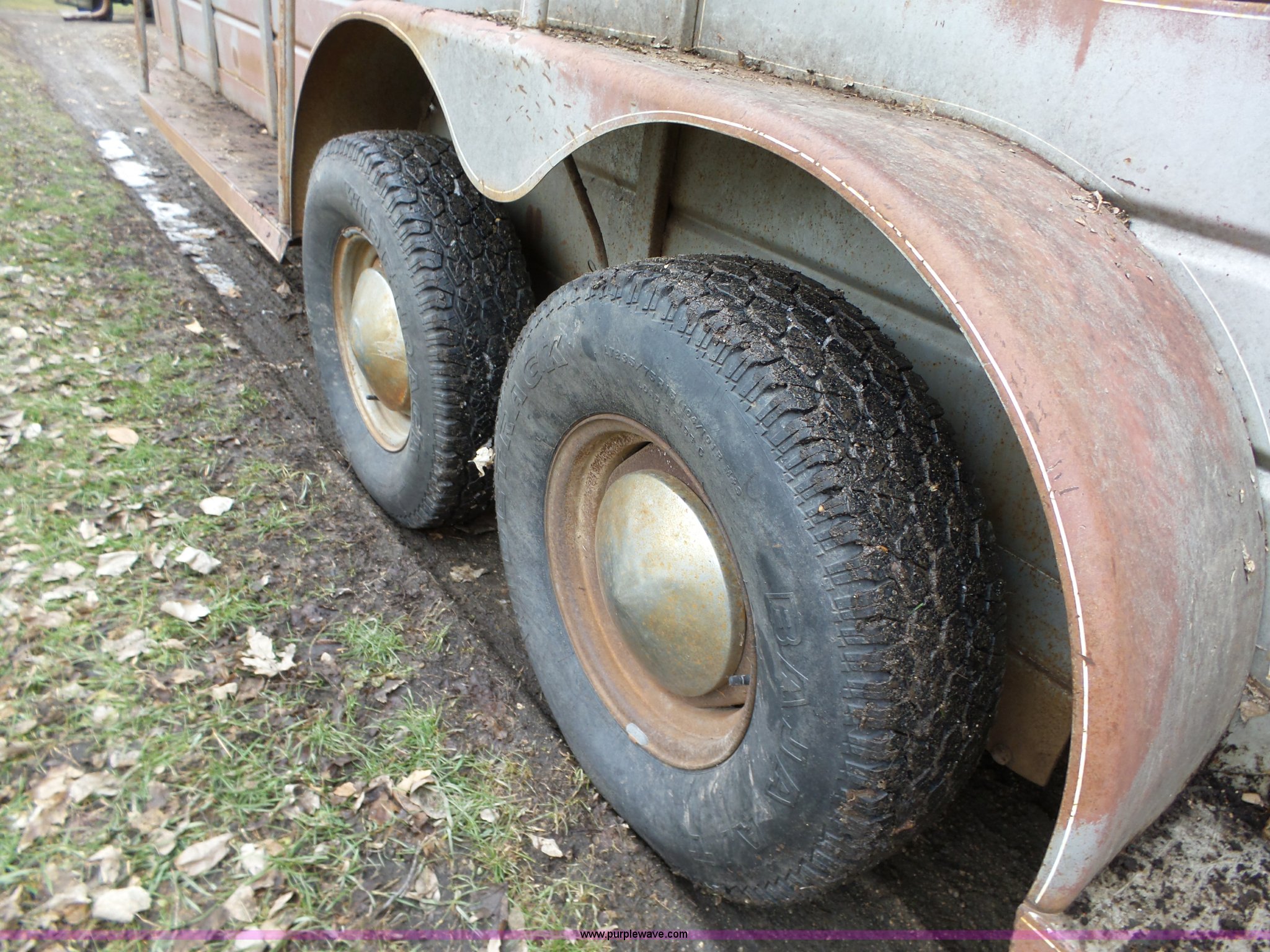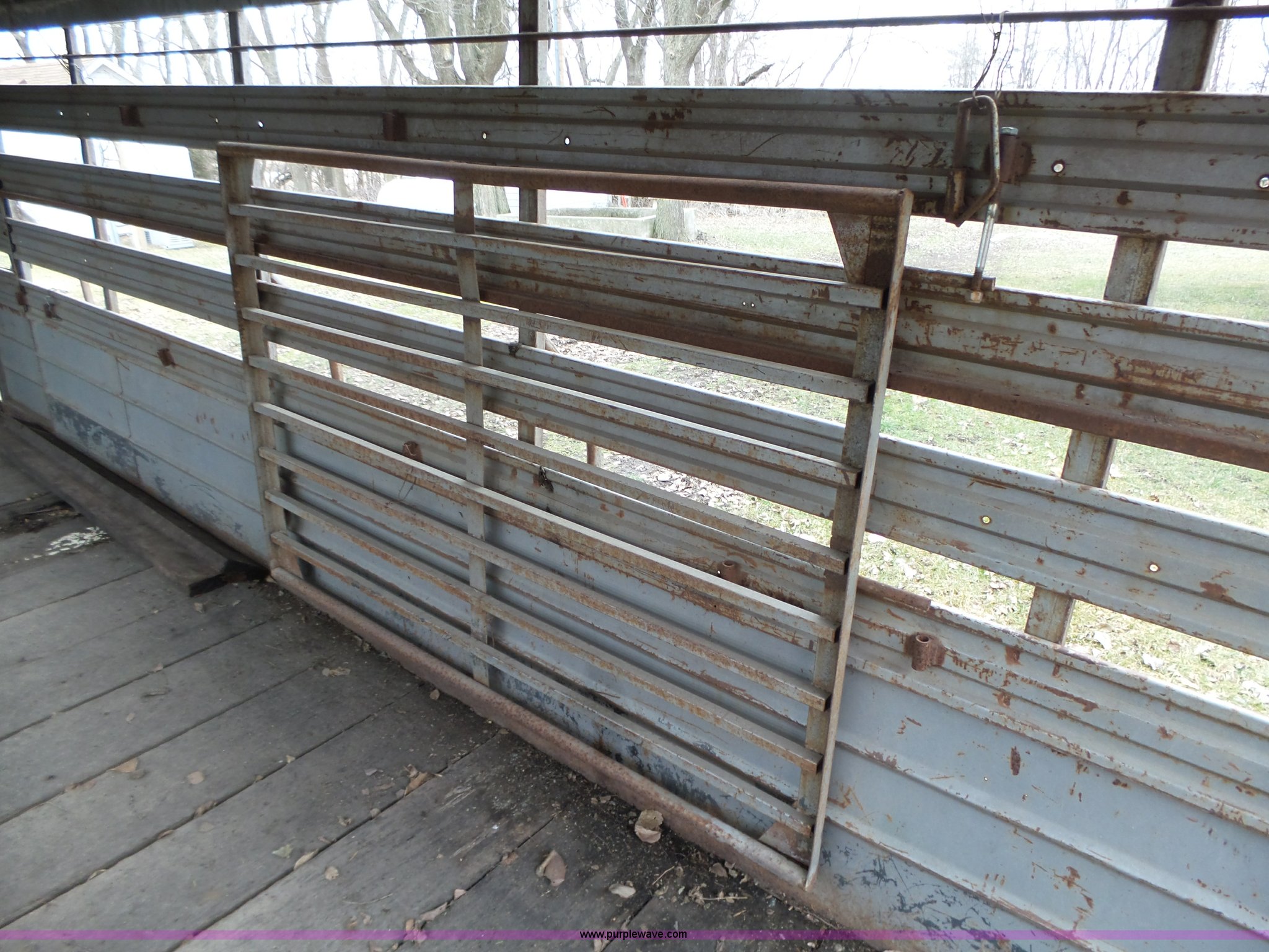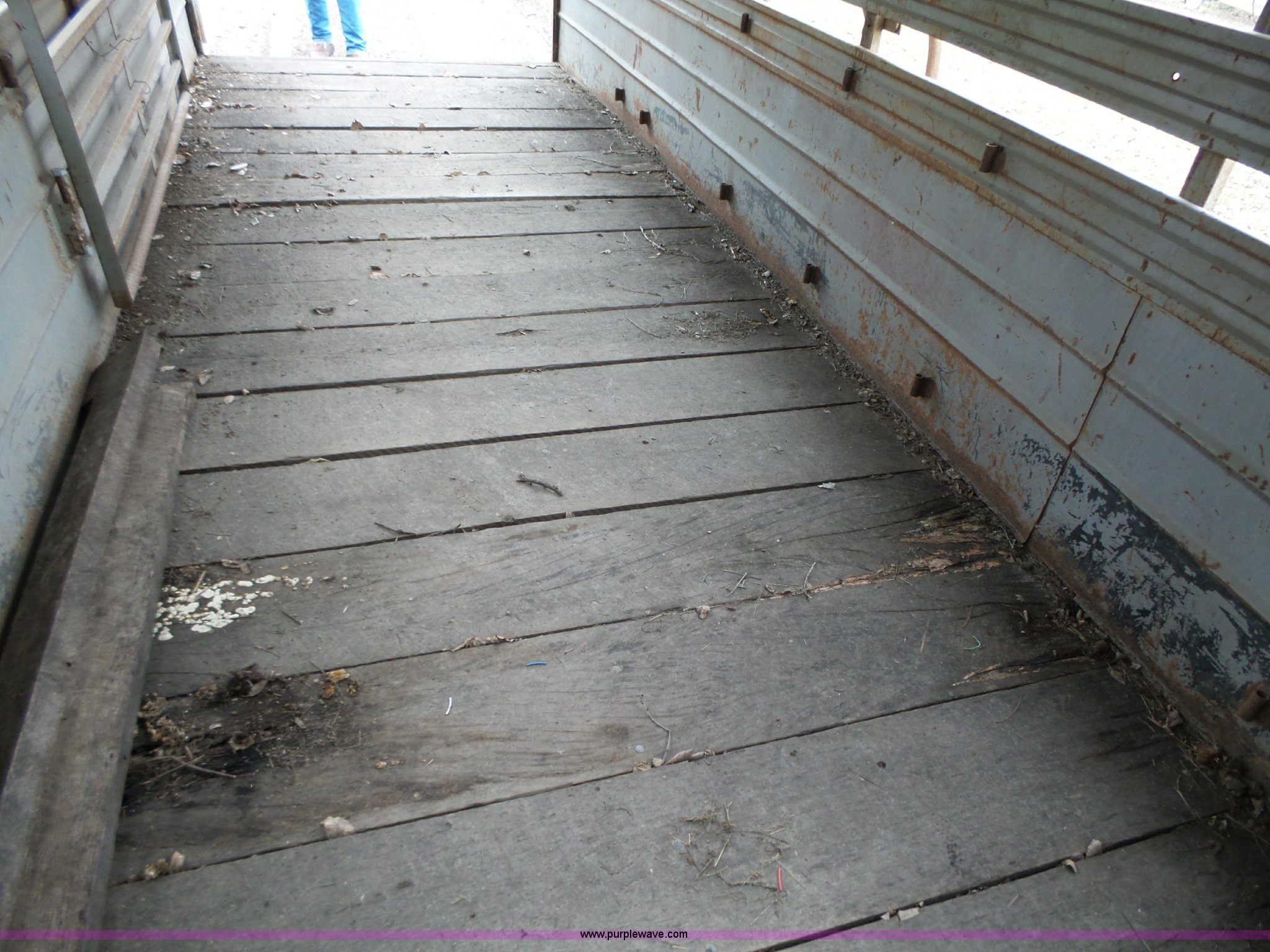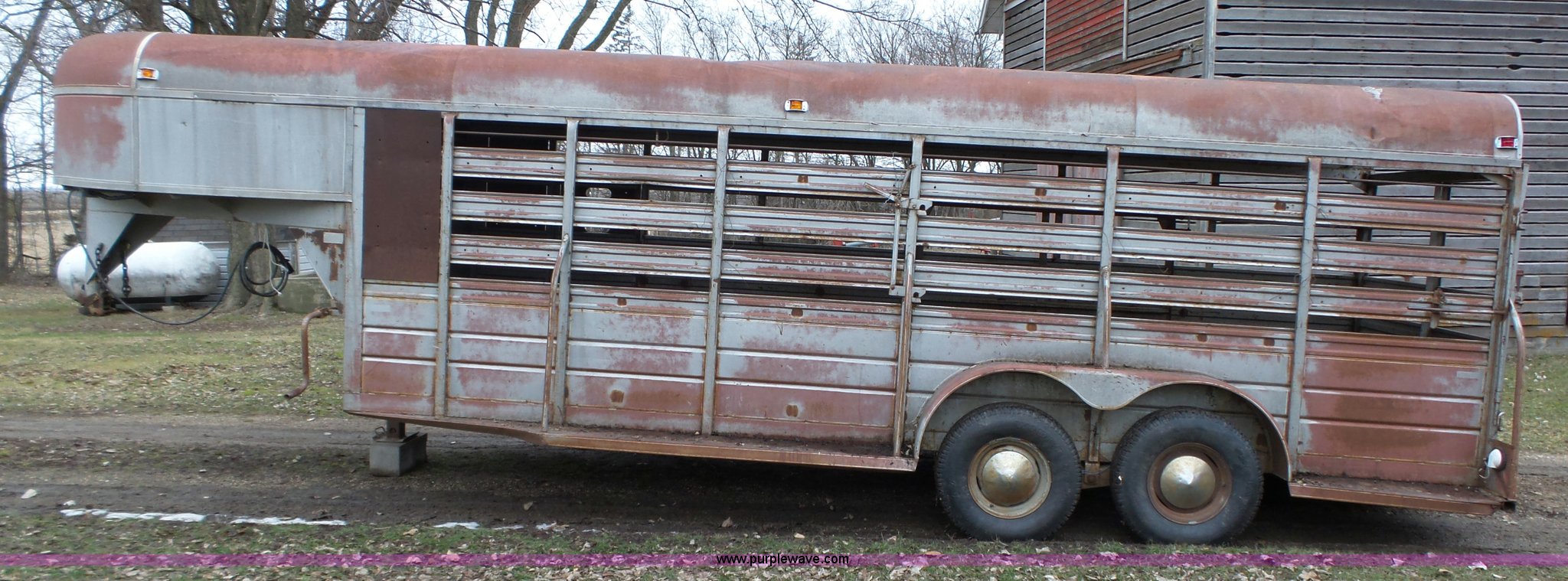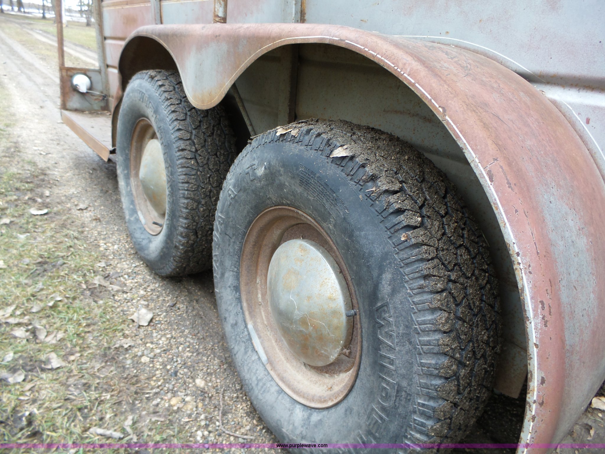 Purple Wave is selling a used Livestock Trailer in Iowa. This item is a 1980 WW livestock trailer with the following: 28'L x 95"W overall, 20' x 6' holding bay, Rear sliding gate, Center cut gate, Right side entry door, Wood floor, Gooseneck hitch, Single jack stand, Seven pin electrical connector, Spring suspension, Electric brakes, LT245/75R15 tires, Recently replaced electrical wiring