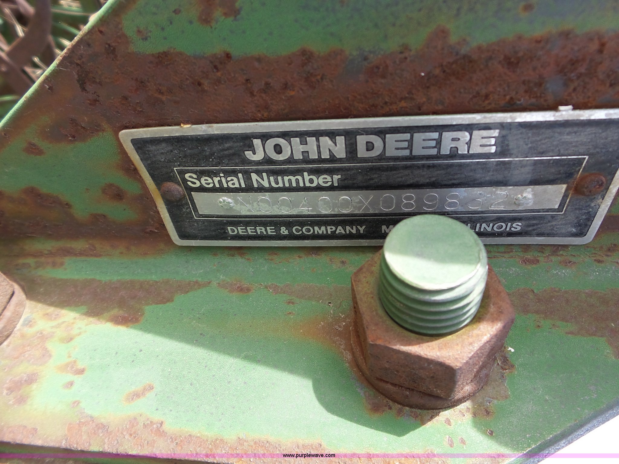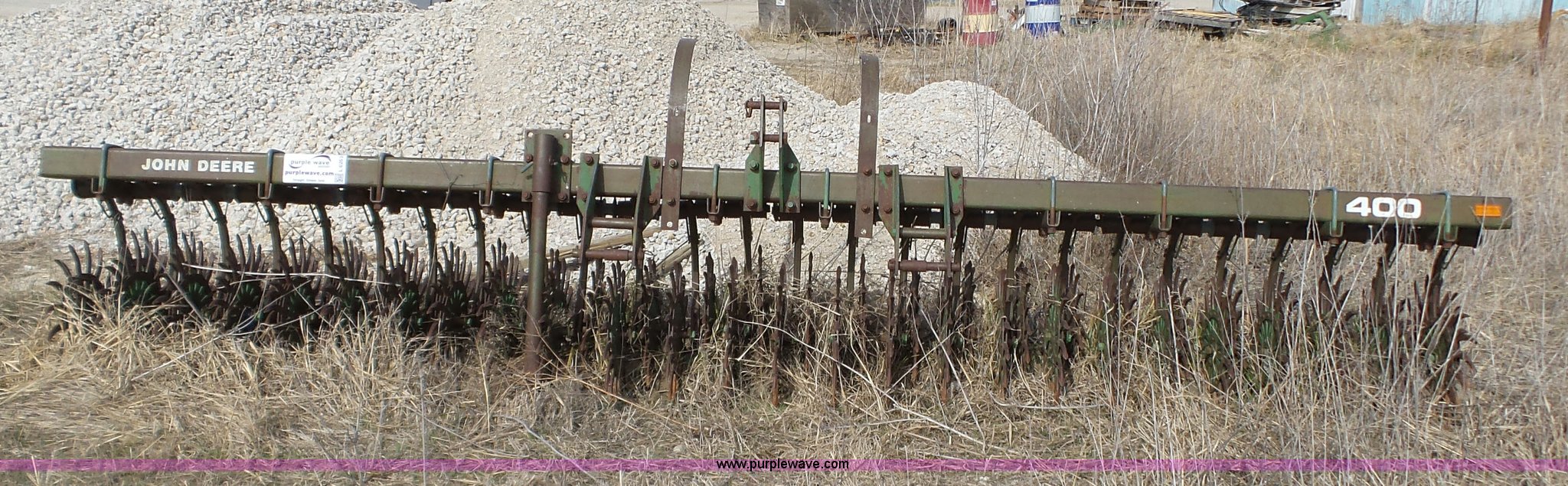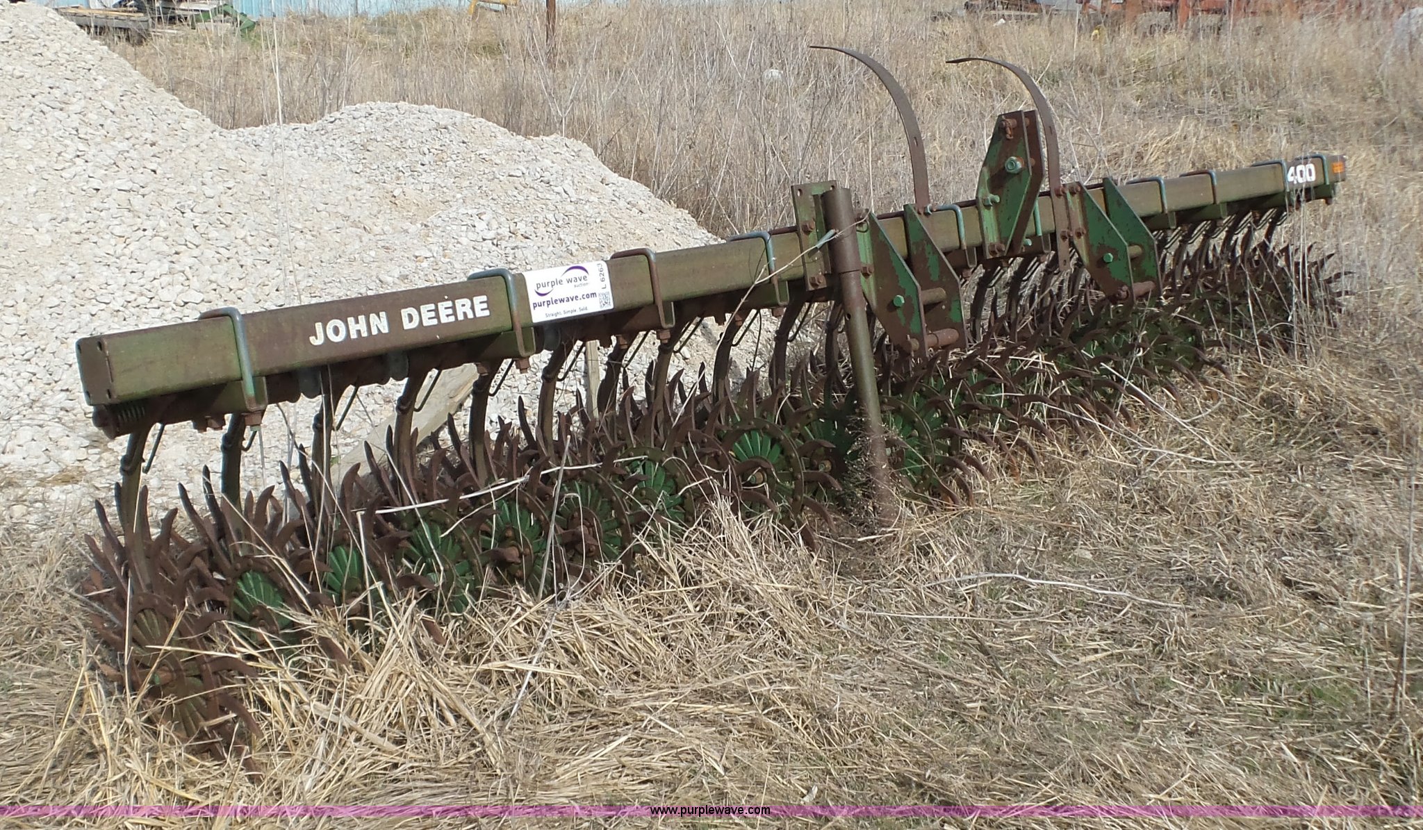Purple Wave is selling a used Rotary Tillage in Kansas. This item is a John Deere 400 rotary hoe with the following: 15'5"W, 20" diameter blades, 4" spacing, Three point, Serial N00400X089832