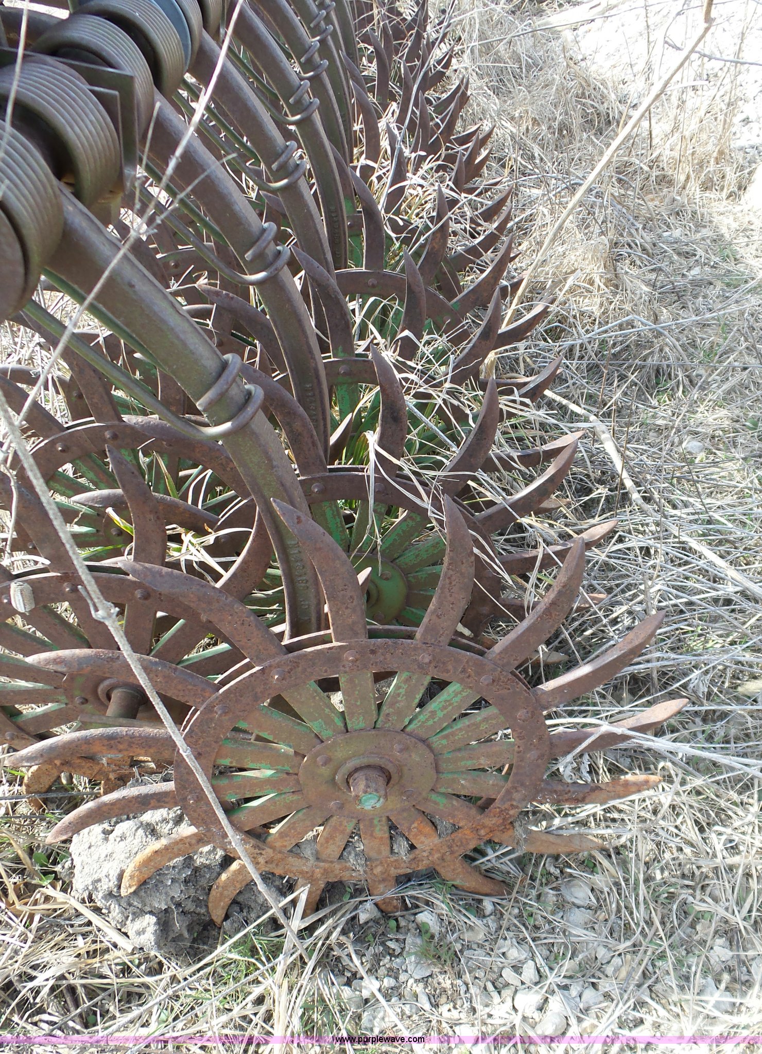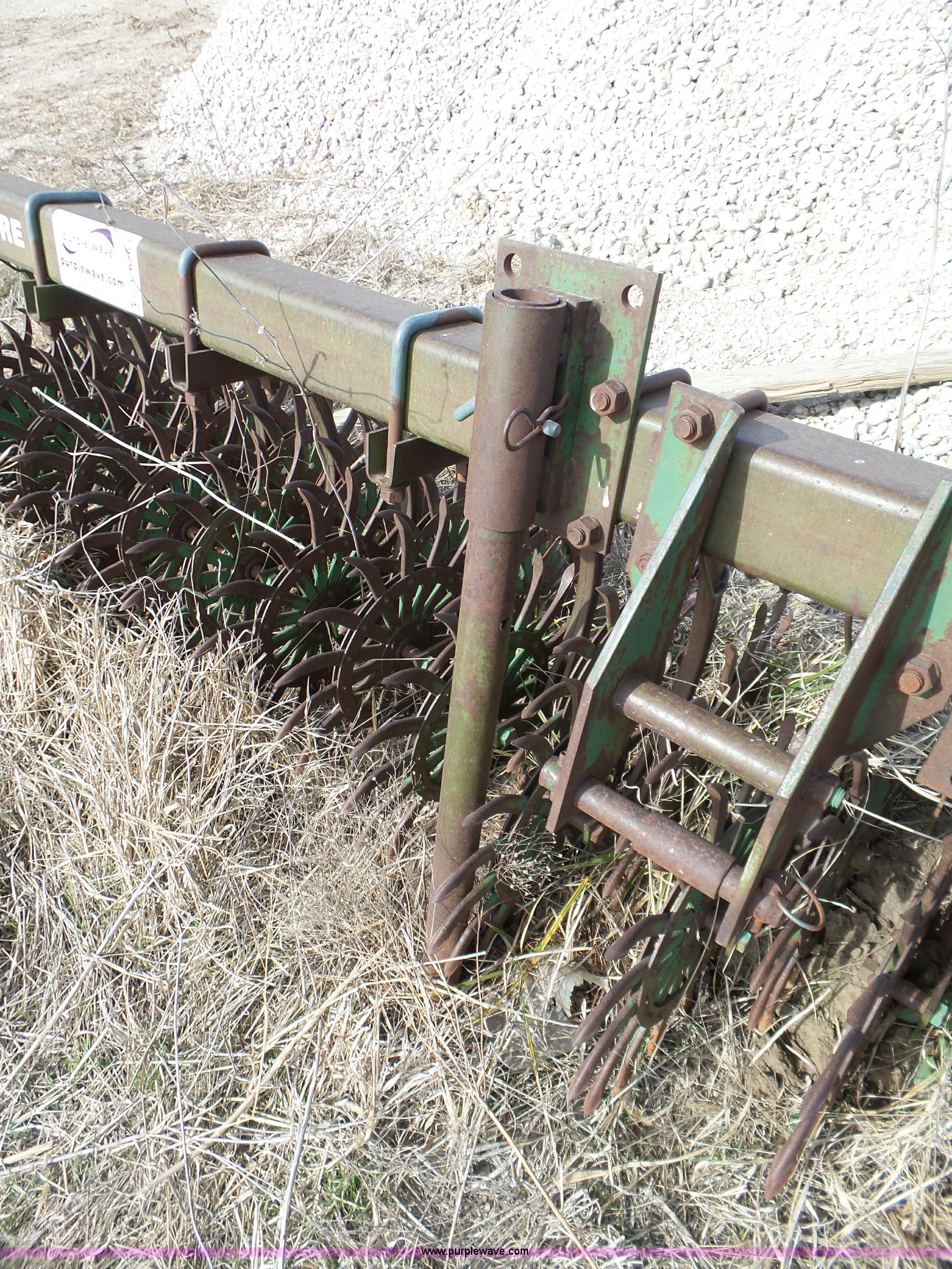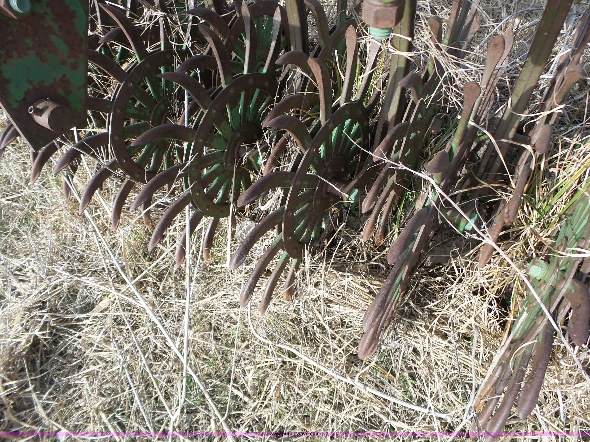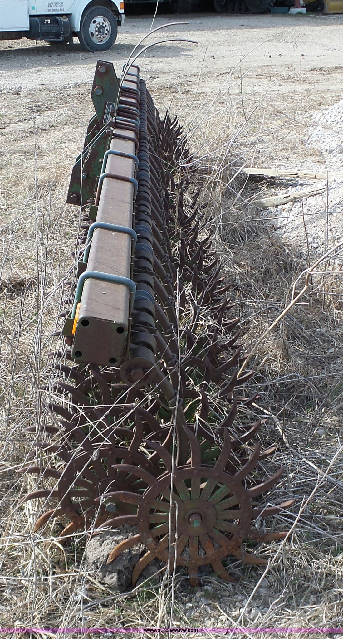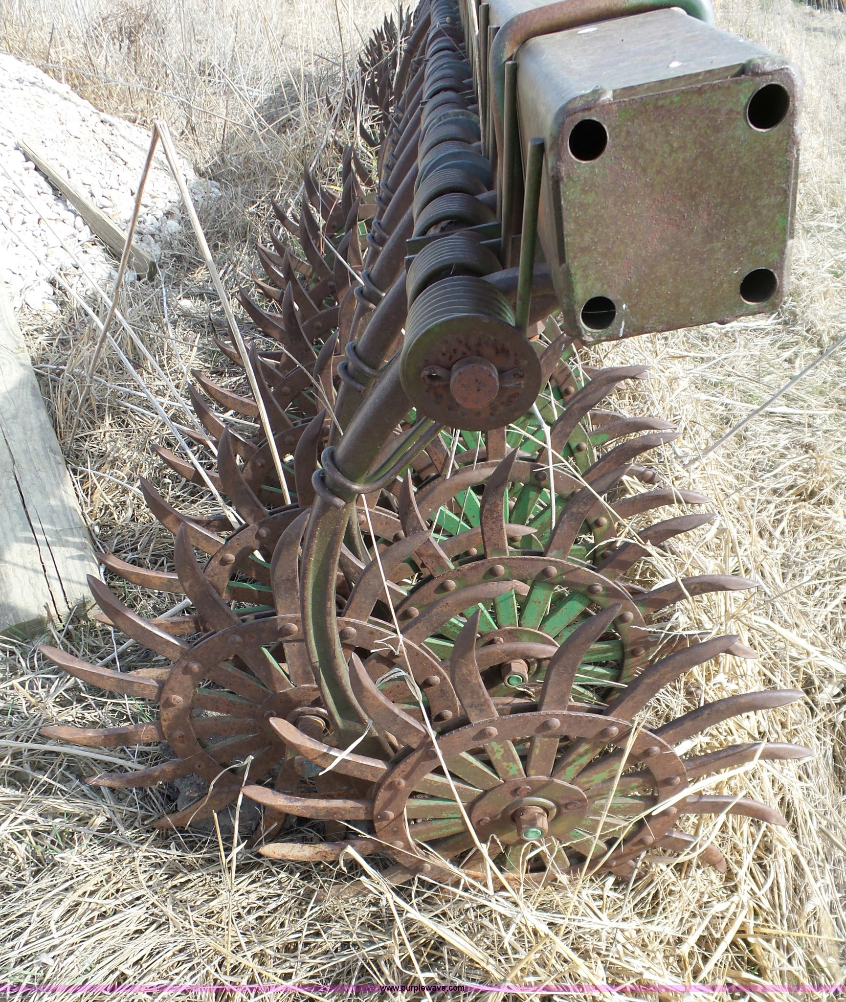 John Deere 400 rotary hoe. 15'5"W, 20" diameter blades, 4" spacing, Three point, Serial N00400X089832. Hughes Grain and Cattle. 8405 30th Rd. Galesburg, KS 66740