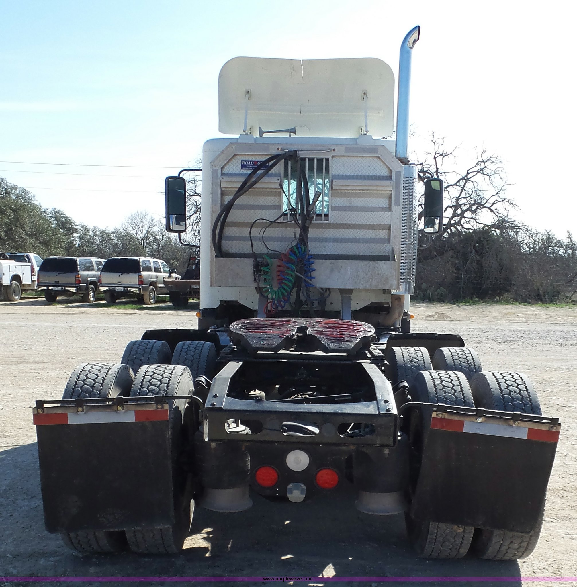 Purple Wave is selling a used Truck Tractor in Texas. This item is a 2007 Freightliner Columbia semi truck with the following: 585,030 miles on odometer, 19,138 hours on meter, Mercedes-Benz MBE4000 12.8L L6 turbo diesel engine, Serial 6MBXL-12BRJB, Eaton Fuller 10 speed manual transmission, Tandem axle, AC and heat, Tilt, Telescoping steering wheel, AM/FM/CD, Power windows, Heated mirrors, Air suspension seat, Air ride cab, PTO, Wet kit, Exterior visor, Single rear exhaust stack, Side toolboxes, Aluminum deck plate, Air operated sliding fifth wheel plate, Dual fuel tanks, Quarter fenders, Mud flaps, Air suspension, Air brakes, 191" wheelbase, 295/75R22.5 tires, GVWR 52,000 lbs, FAWR 12,000 lbs, IAWR 20,000 lbs, RAWR 20,000 lbs