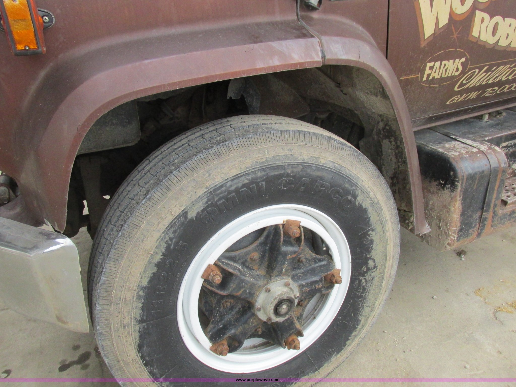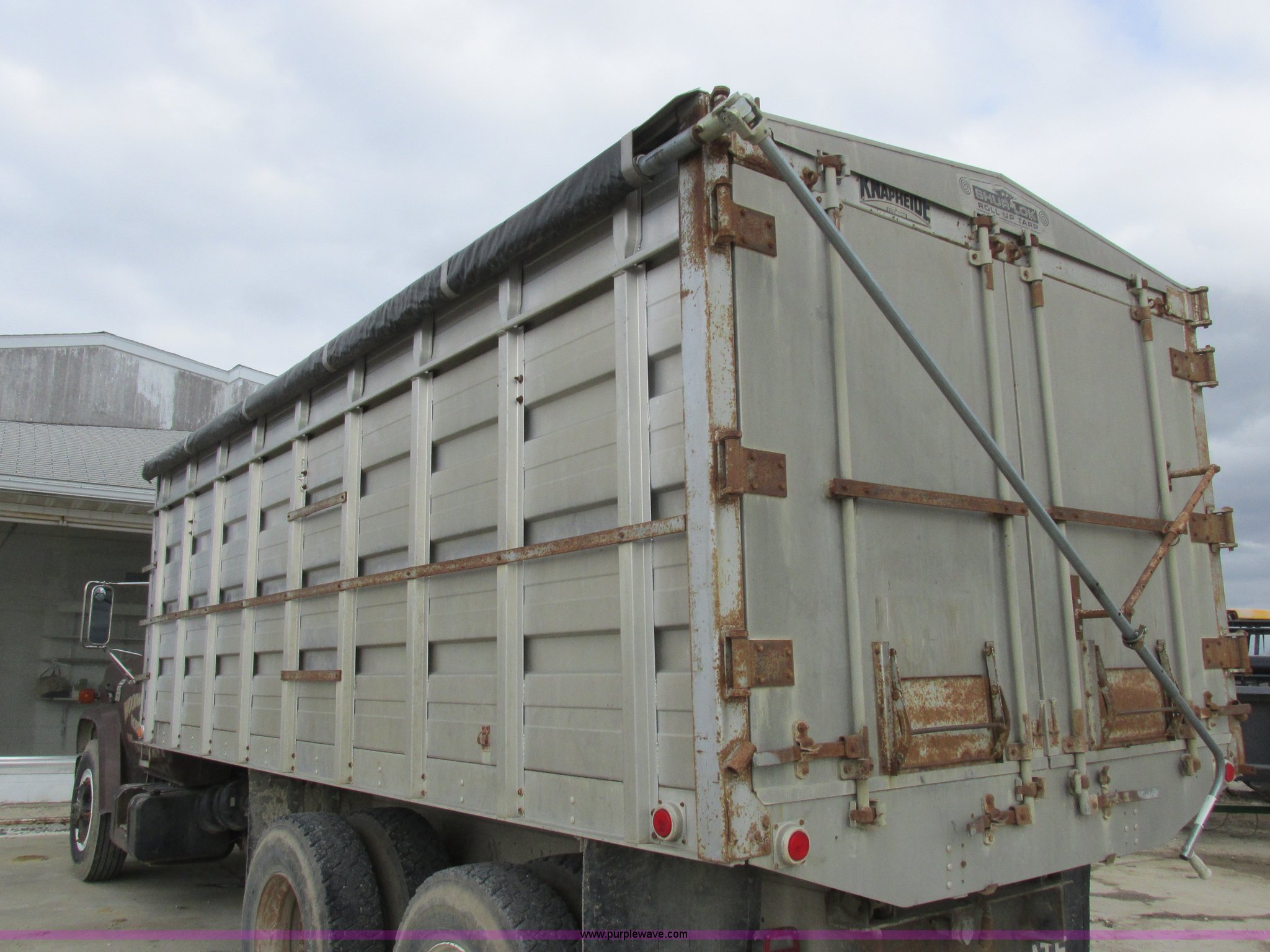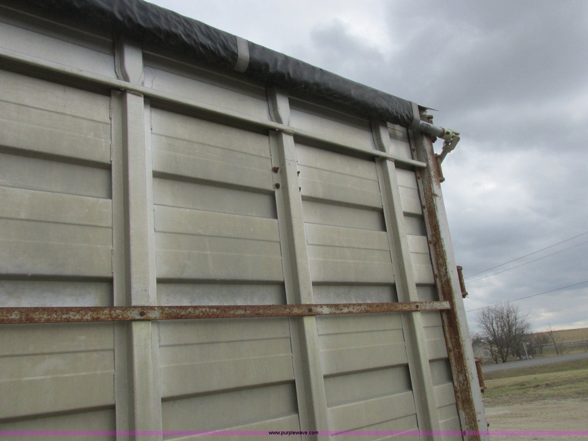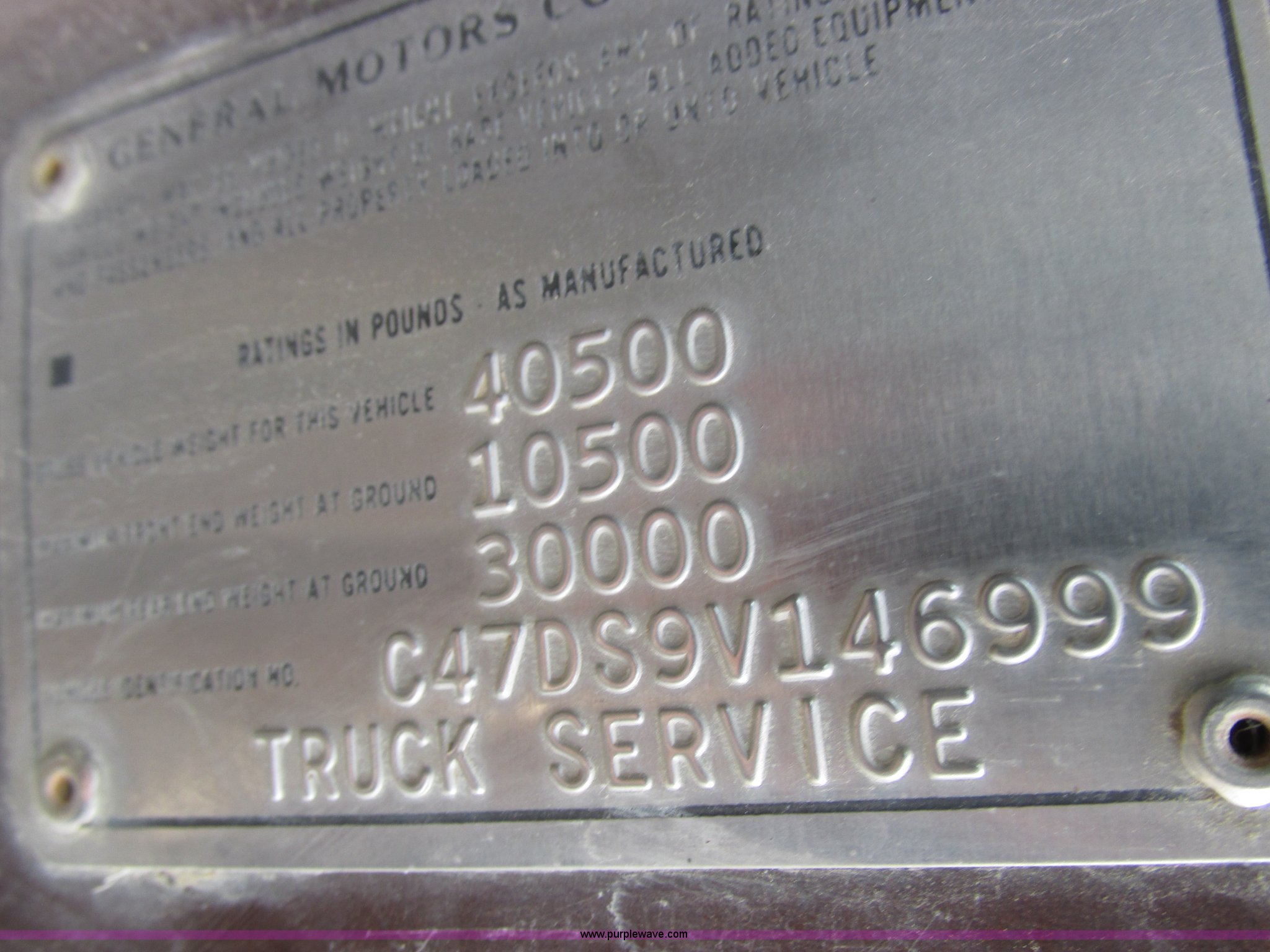 Purple Wave is selling a used Grain Truck in Missouri. This item is a 1979 Chevrolet C70 grain truck with the following: 86,715 miles on odometer, Eight cylinder gas engine, Five speed manual transmission, Tandem axle, Heat, AM, Suspension seat, PTO, 18'L x 8'W aluminum grain bed, 70" side height, Rollover tarp, Manual end gate, Dual fuel tanks, Pin hitch, Trailer wiring, Spring suspension, Hydraulic brakes, 11R22.5 tires, GVWR 40,500 lbs