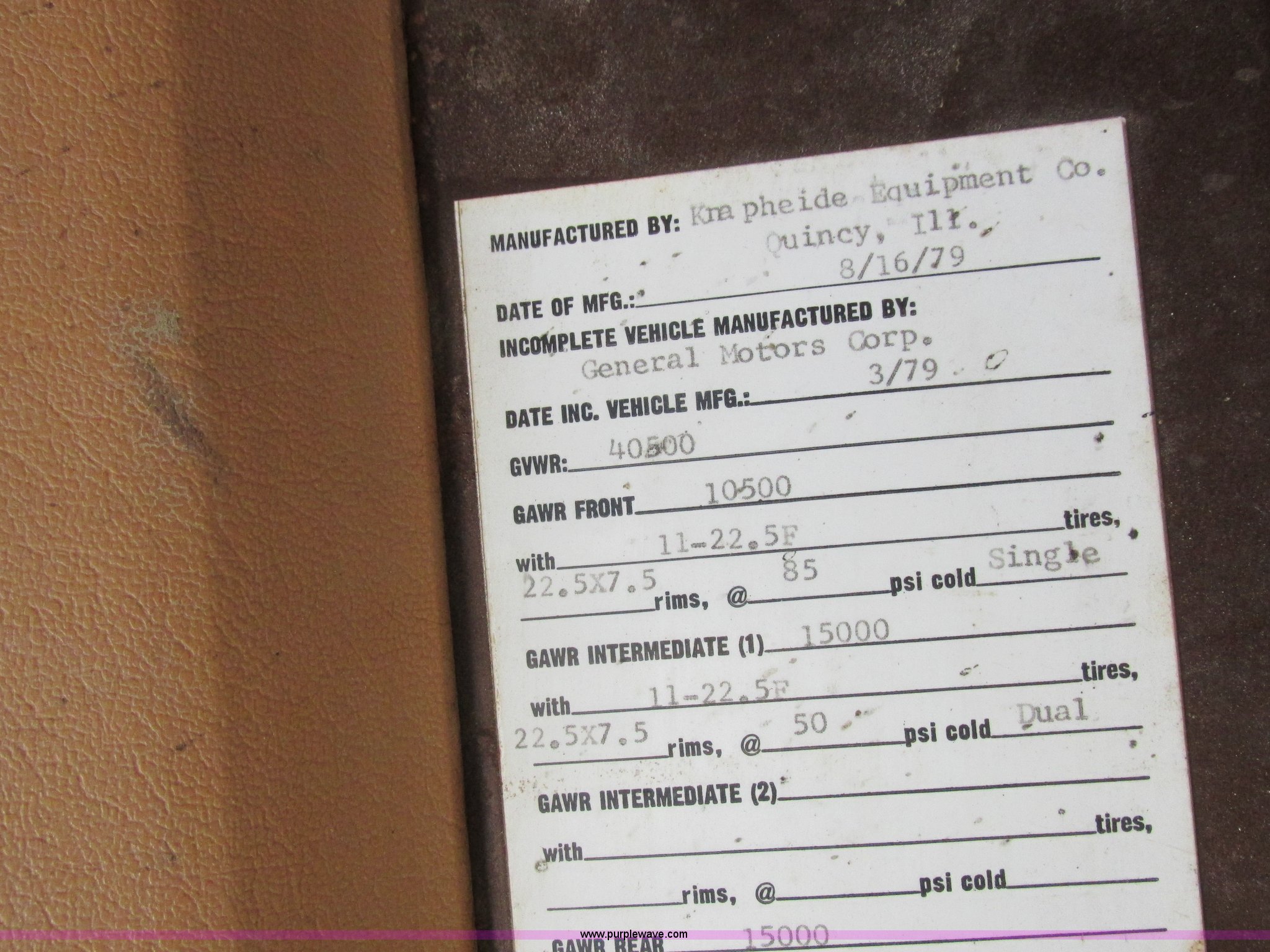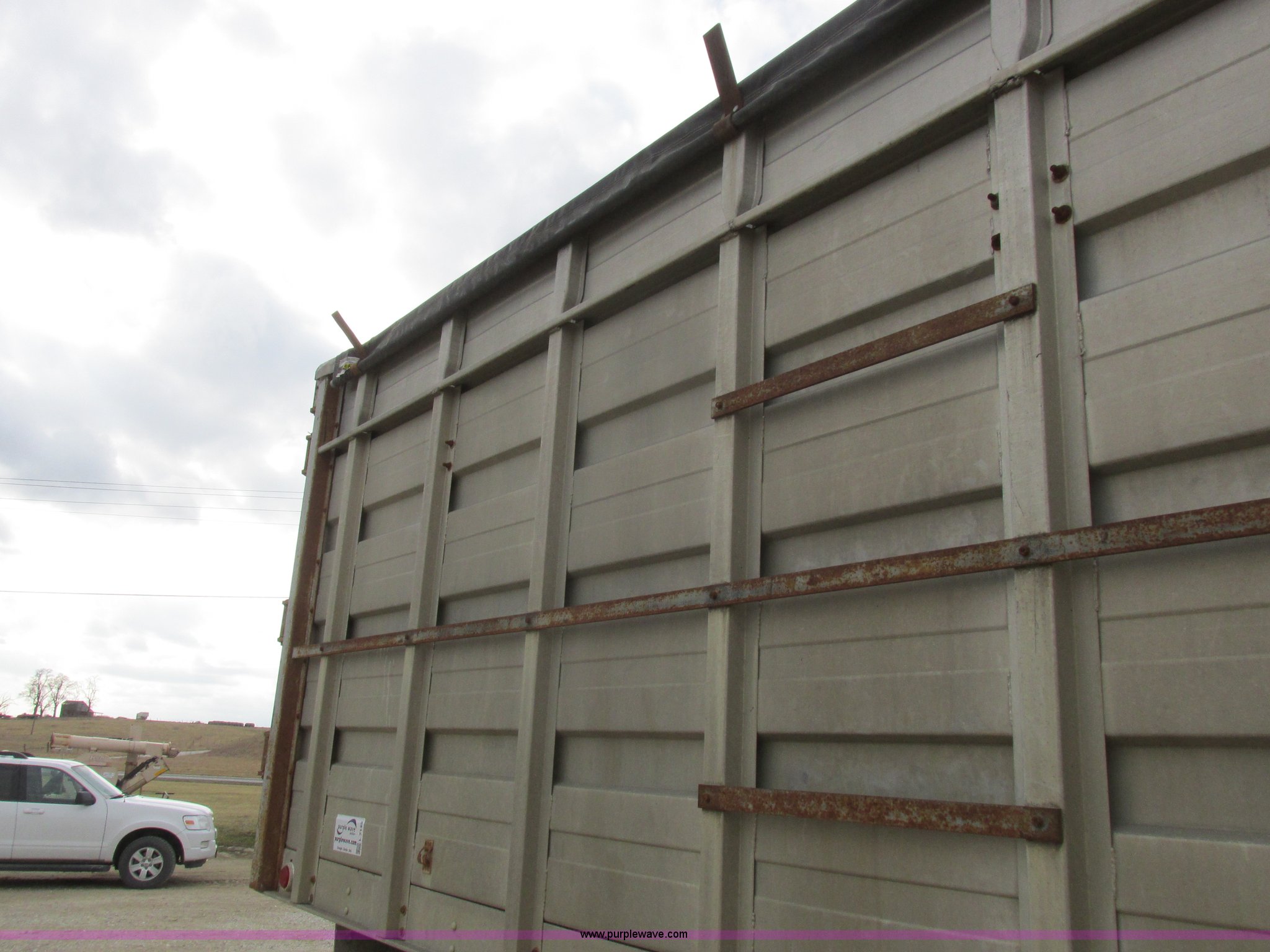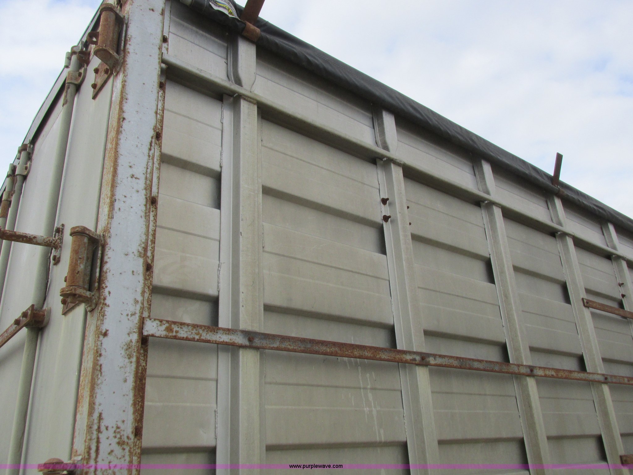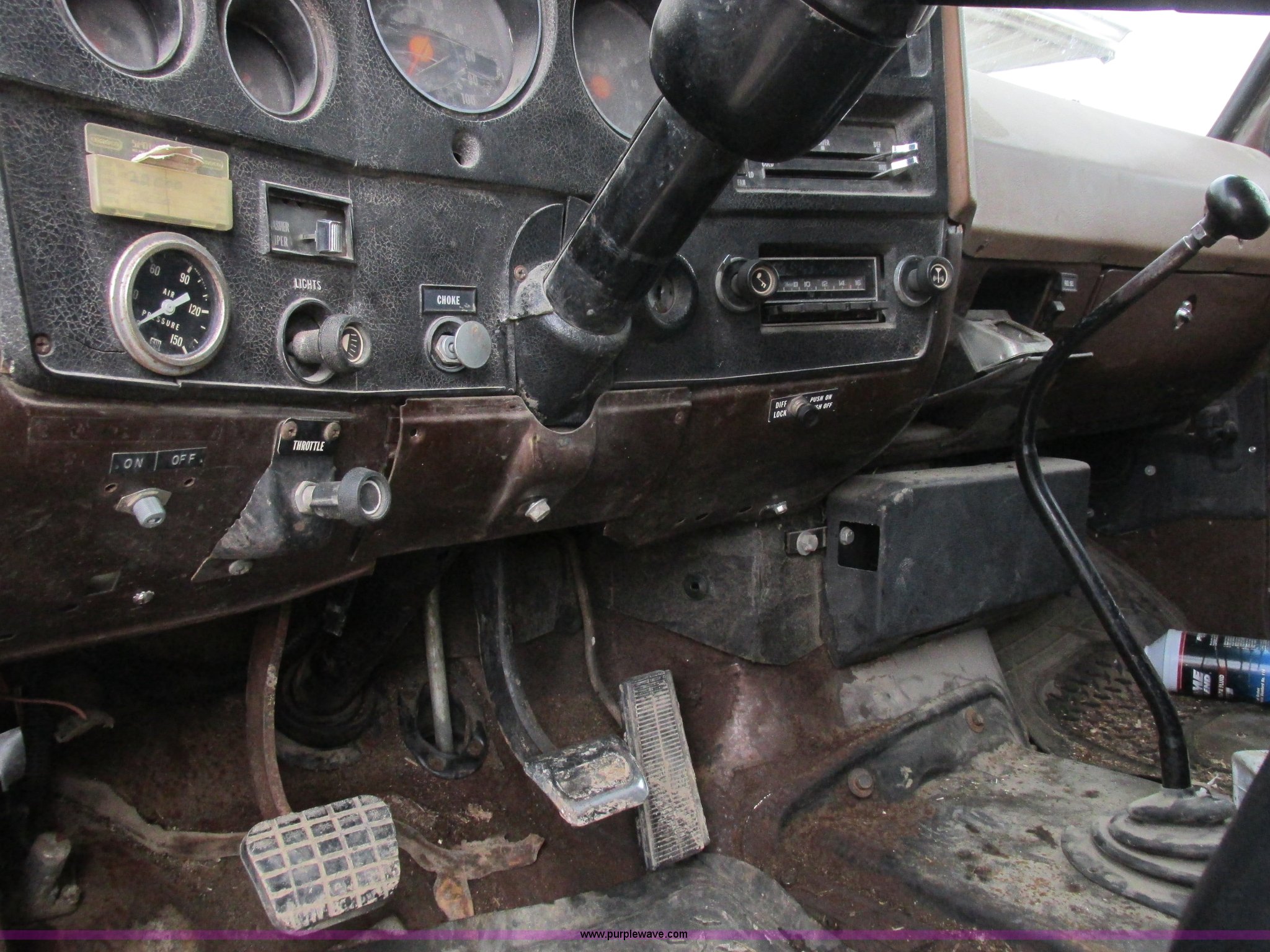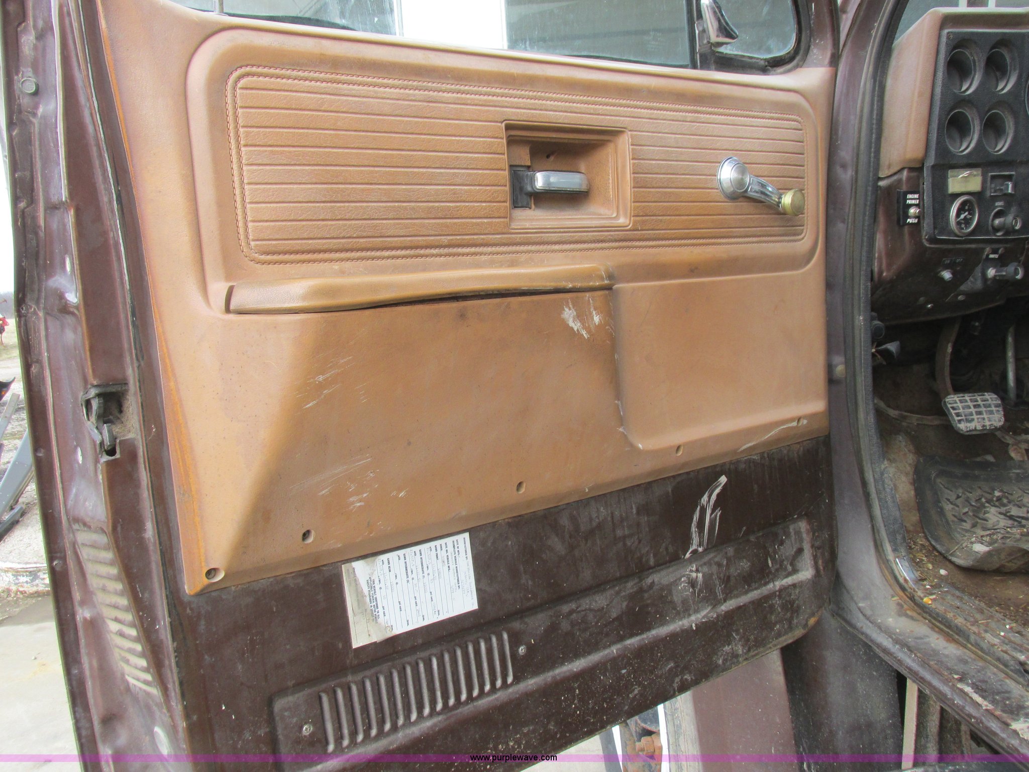 Purple Wave is selling a used Grain Truck in Missouri. This item is a 1979 Chevrolet C70 grain truck with the following: 86,715 miles on odometer, Eight cylinder gas engine, Five speed manual transmission, Tandem axle, Heat, AM, Suspension seat, PTO, 18'L x 8'W aluminum grain bed, 70" side height, Rollover tarp, Manual end gate, Dual fuel tanks, Pin hitch, Trailer wiring, Spring suspension, Hydraulic brakes, 11R22.5 tires, GVWR 40,500 lbs