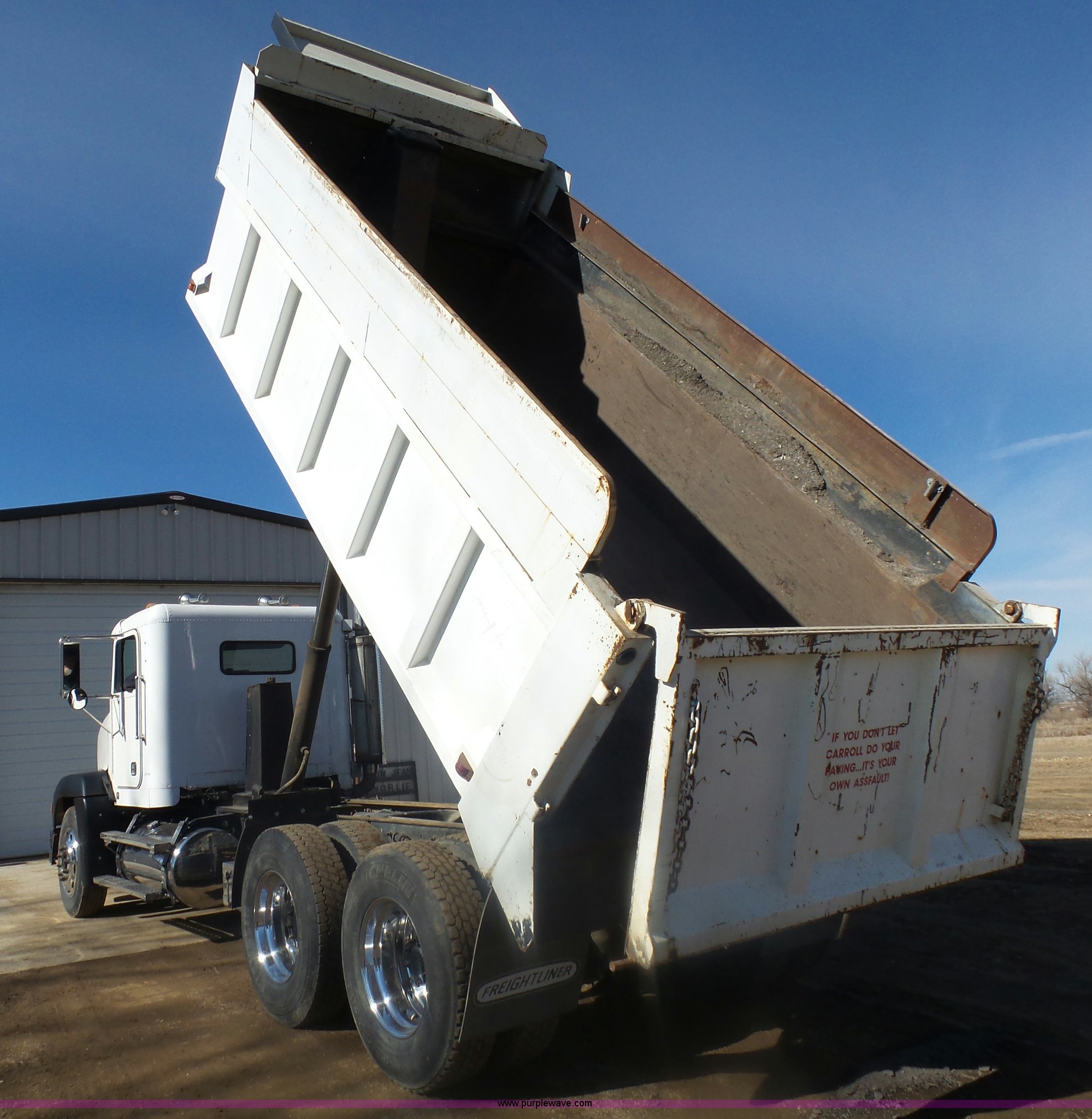 Purple Wave is selling a used Construction Dump Truck in South Dakota. This item is a 2000 Freightliner FLD dump truck with the following: 674,744 miles on odometer, 22,509 hours on meter, Detroit Diesel Series 60 12.7L L6 turbo diesel engine, 430 HP, Eaton Fuller 10 speed manual transmission, Tandem axle, Inter-axle differential lock, Heat, AM/FM/cassette, Power windows, Heated mirrors, Air suspension seat, Air ride cab, Block heater, Exterior visor, PTO, 16'L x 97"W steel dump bed, 37" side height, 20" side board height, Single ram hoist, Air operated end gate, Air suspension, Air brakes, Engine brake, 285/75R24.5 front tires, 11R22.5 rear tires, View Diagnostic Report