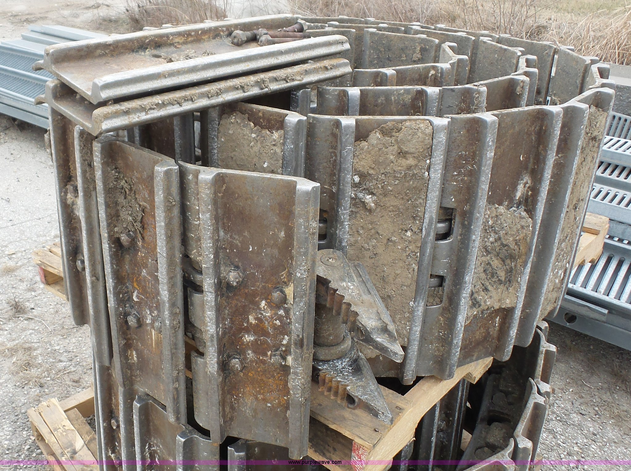 Purple Wave is selling a used Crawler Attach. in Kansas. This item is a Caterpillar 953C track loader tracks with the following: 20"W, (37) pads, Left and right OAT IR7, Used