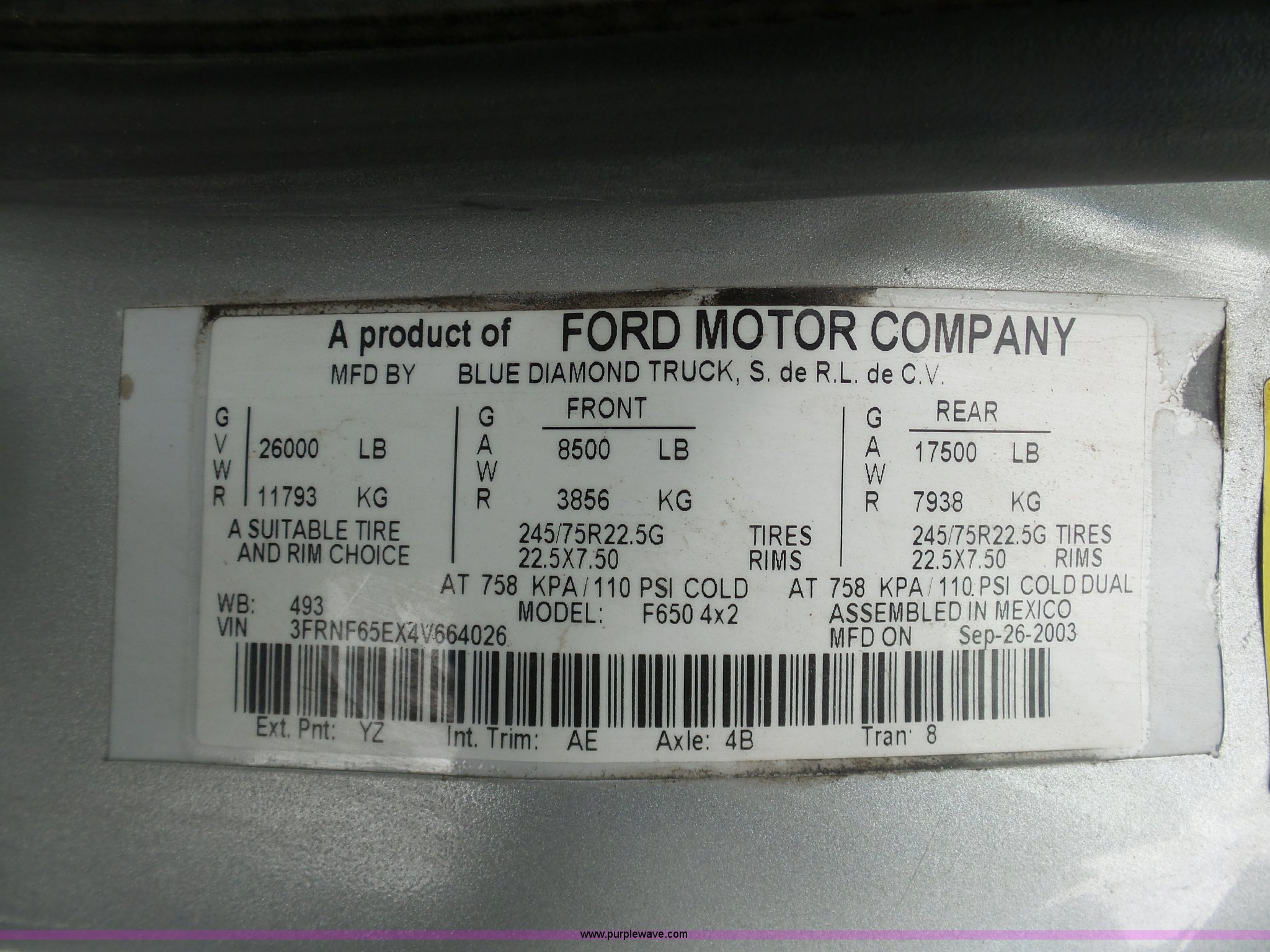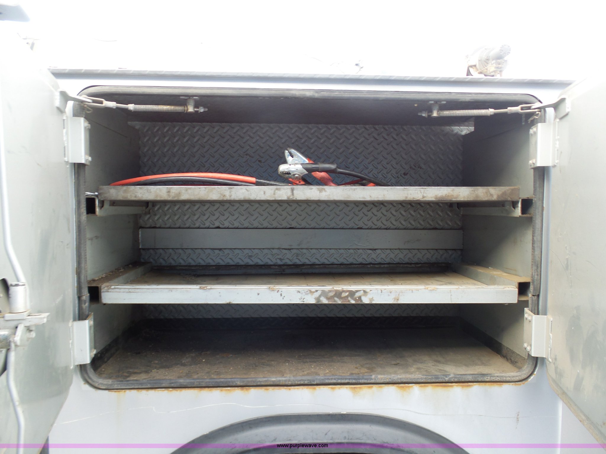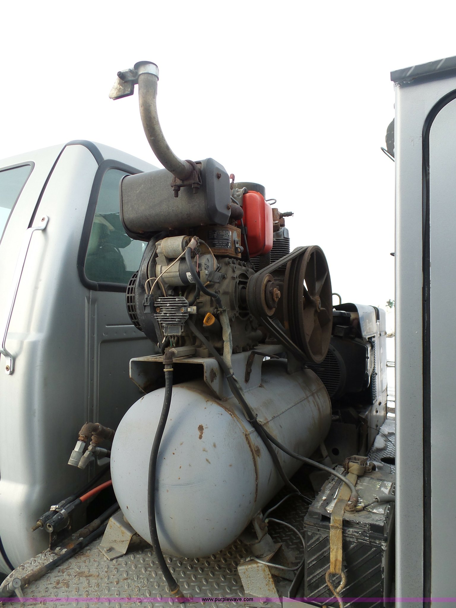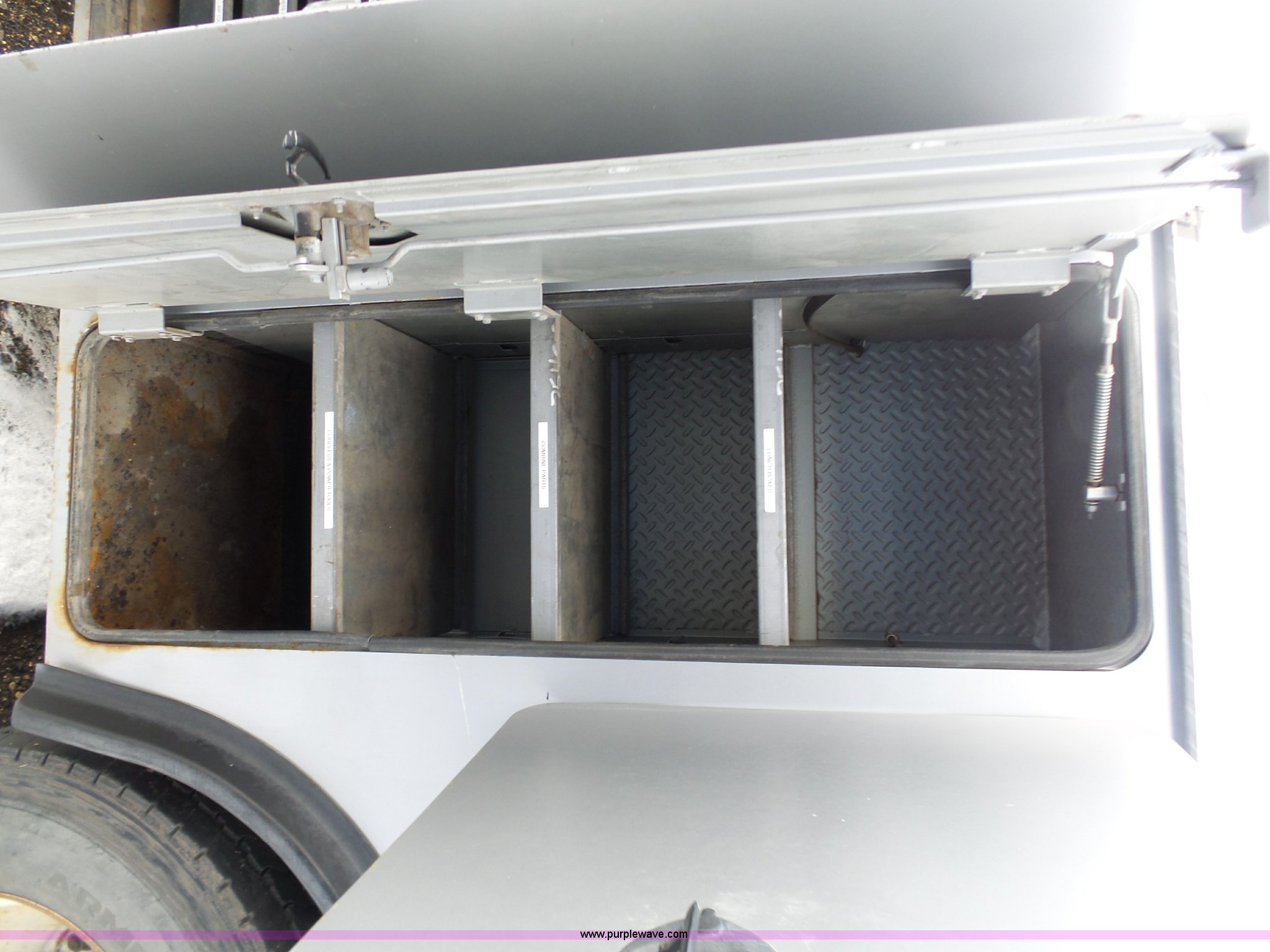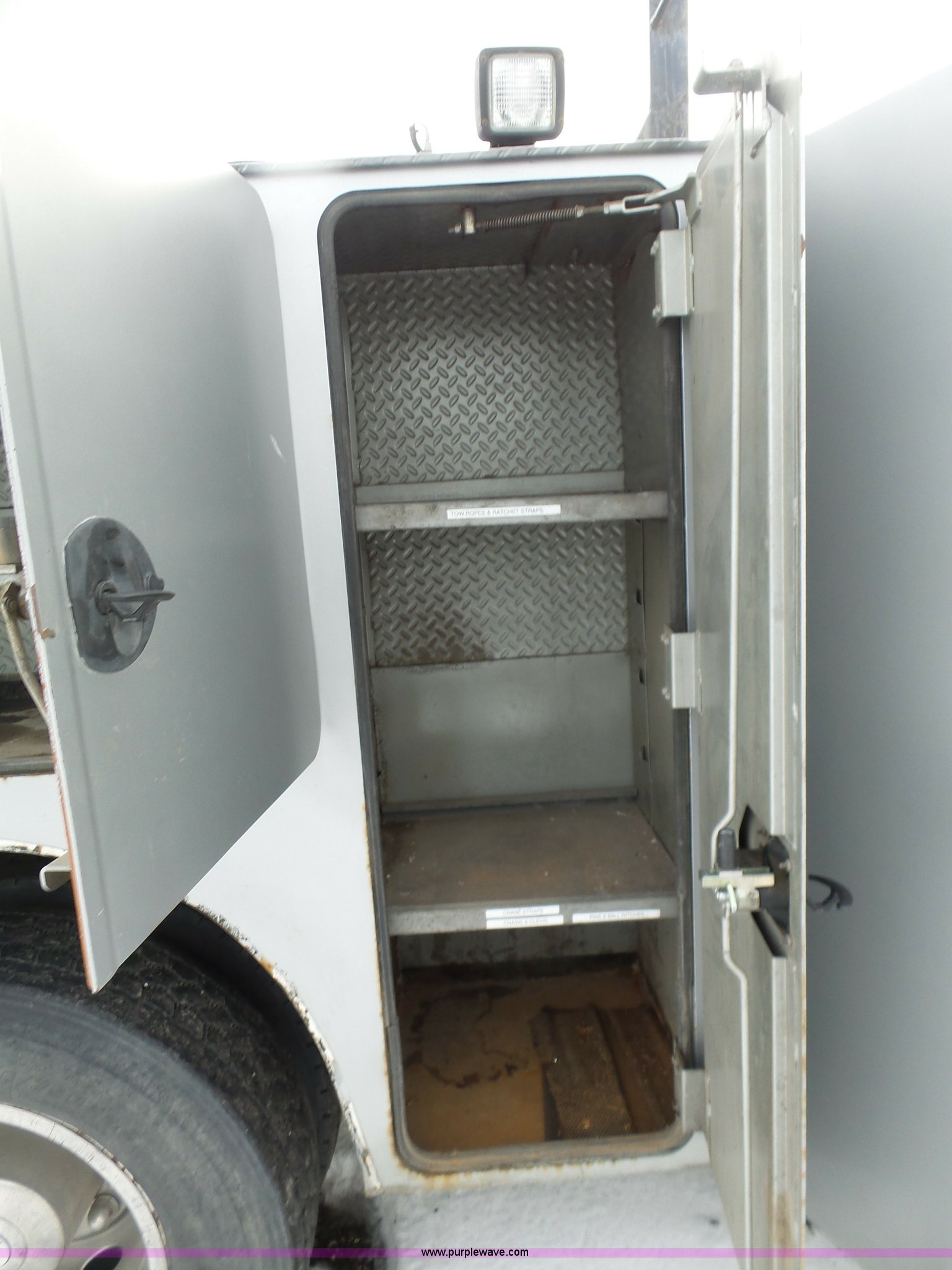 Purple Wave is selling a used Service Truck in South Dakota. This item is a 2004 Ford F650 Super Duty service truck with crane with the following: 270,071 miles on odometer, Cummins ISB 5.9L L6 turbo diesel engine, Six speed manual transmission, AC and heat, Cruise, AM/FM, Spring suspension seat, PTO, Service bed, Shelving, Slide out drawers, Work lights, Miller Bobcat 225NT welder/generator, 328 hours on meter, 240V outlet, (4) 120V outlets, Gardner Denver air compressor, Auto Crane 8406H crane, 8,000 lbs maximum lift capacity, Remote control, Outriggers, Receiver hitch, Spring suspension, Hydraulic brakes, 295/75R22.5 tires