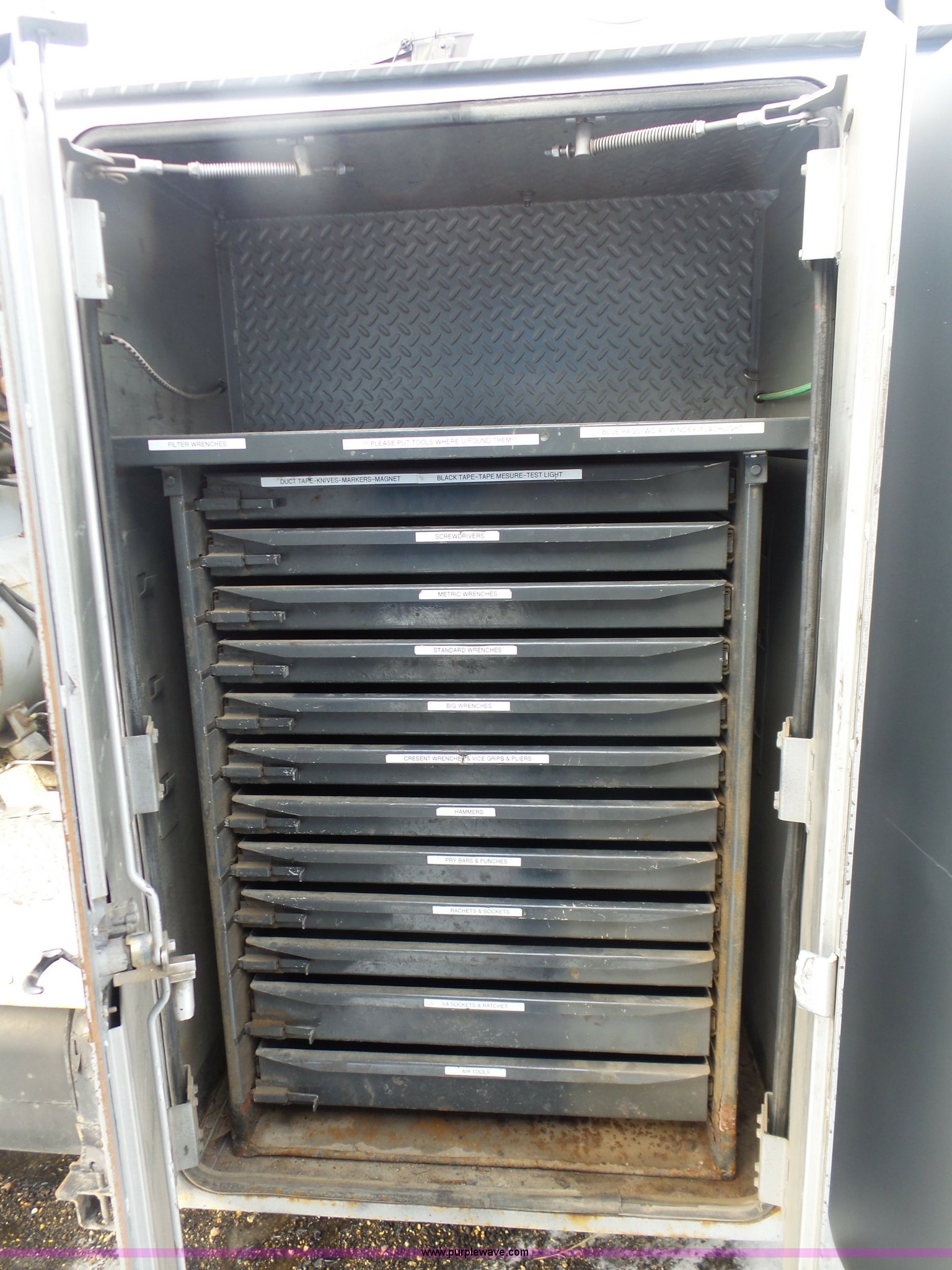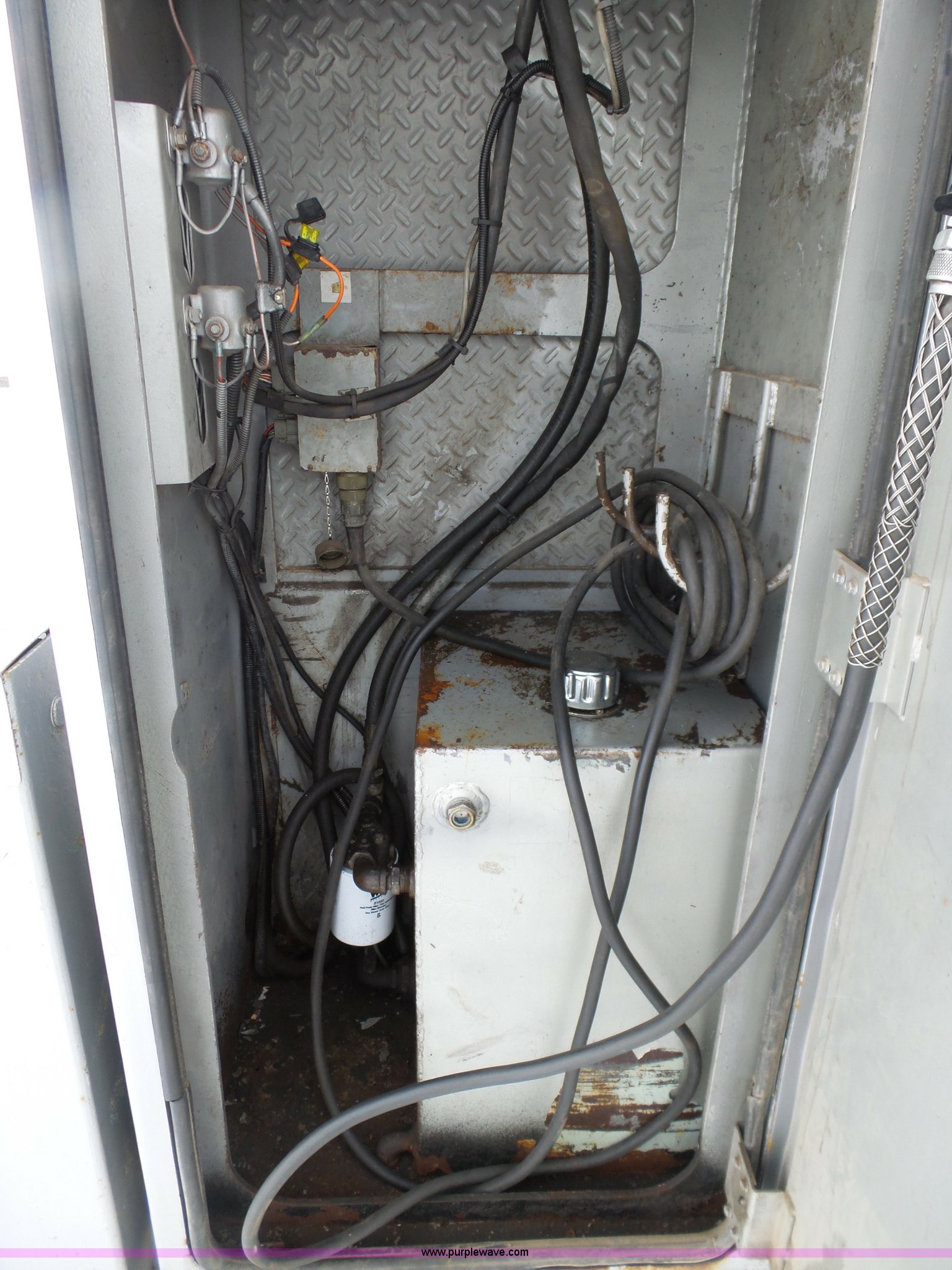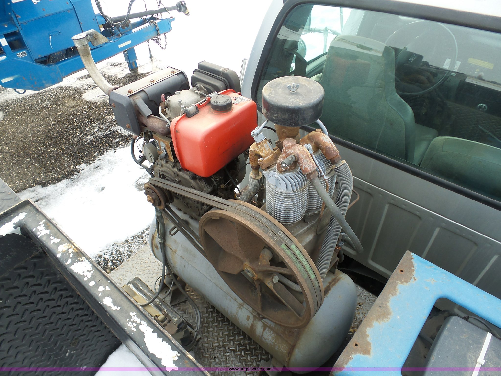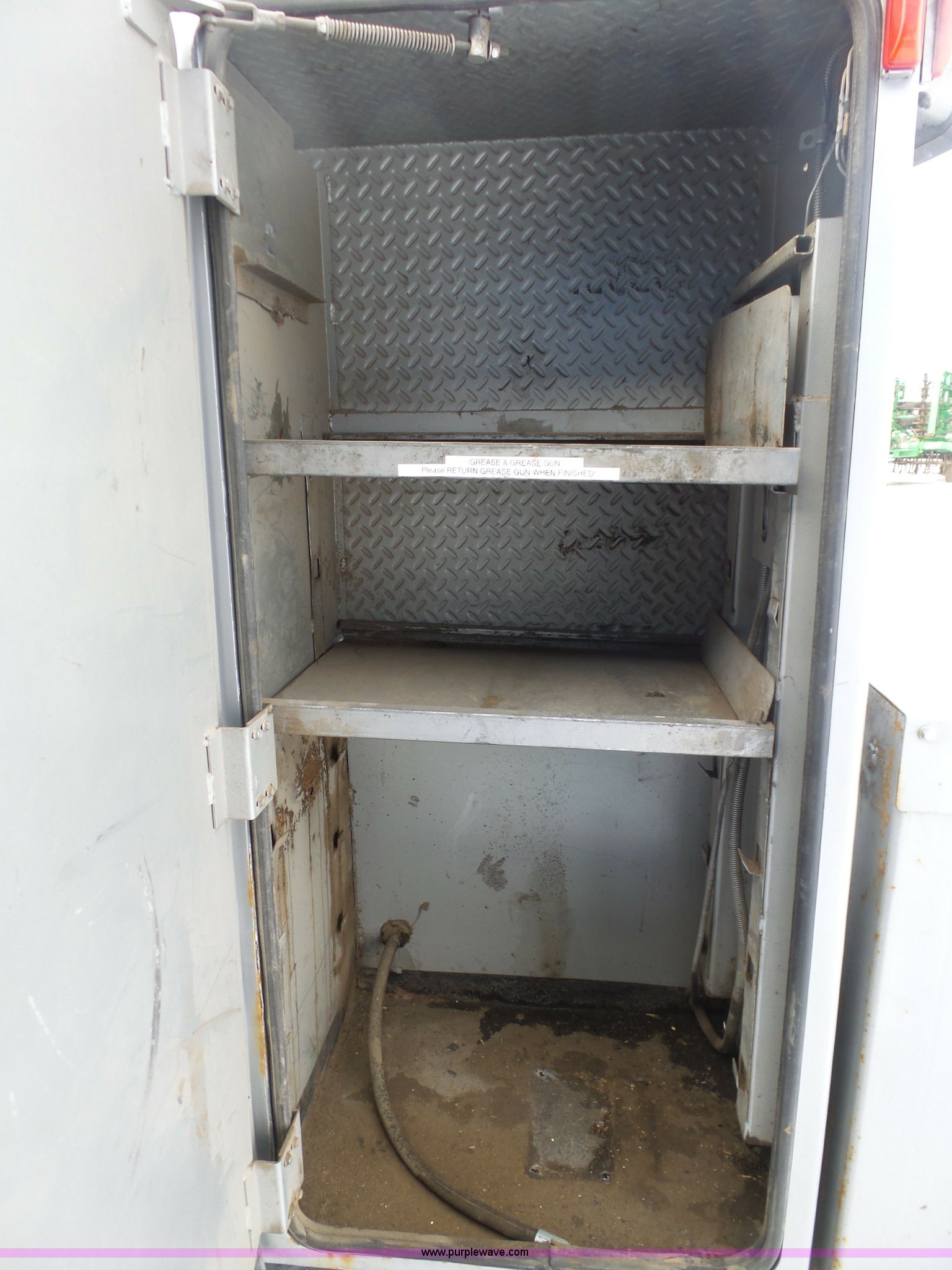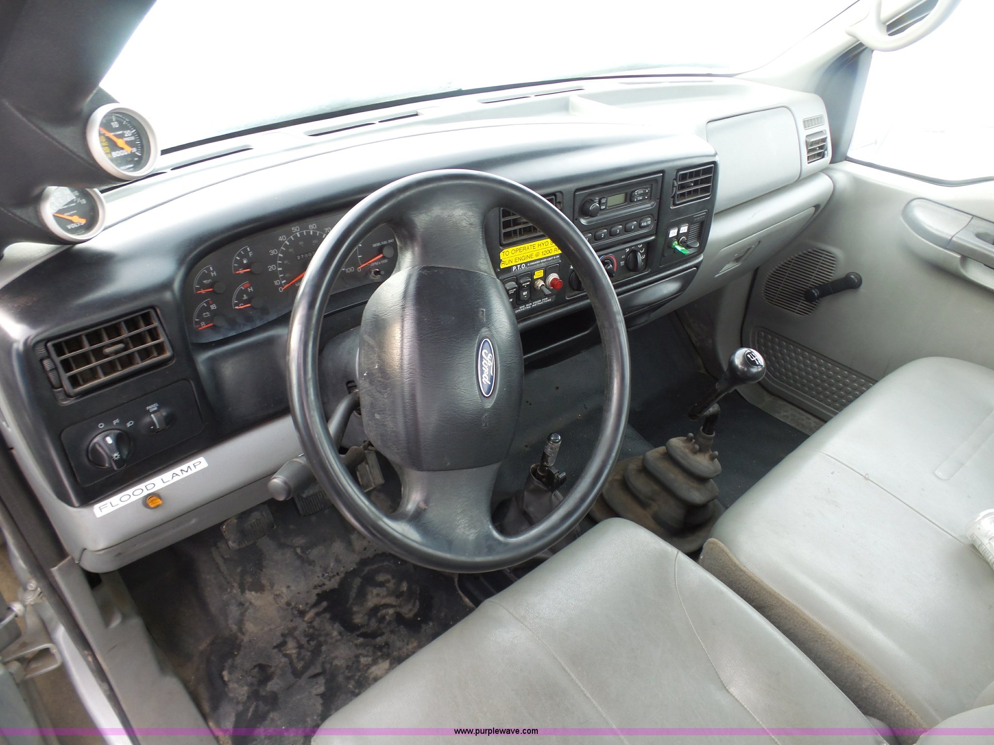 Purple Wave is selling a used Service Truck in South Dakota. This item is a 2004 Ford F650 Super Duty service truck with crane with the following: 270,071 miles on odometer, Cummins ISB 5.9L L6 turbo diesel engine, Six speed manual transmission, AC and heat, Cruise, AM/FM, Spring suspension seat, PTO, Service bed, Shelving, Slide out drawers, Work lights, Miller Bobcat 225NT welder/generator, 328 hours on meter, 240V outlet, (4) 120V outlets, Gardner Denver air compressor, Auto Crane 8406H crane, 8,000 lbs maximum lift capacity, Remote control, Outriggers, Receiver hitch, Spring suspension, Hydraulic brakes, 295/75R22.5 tires