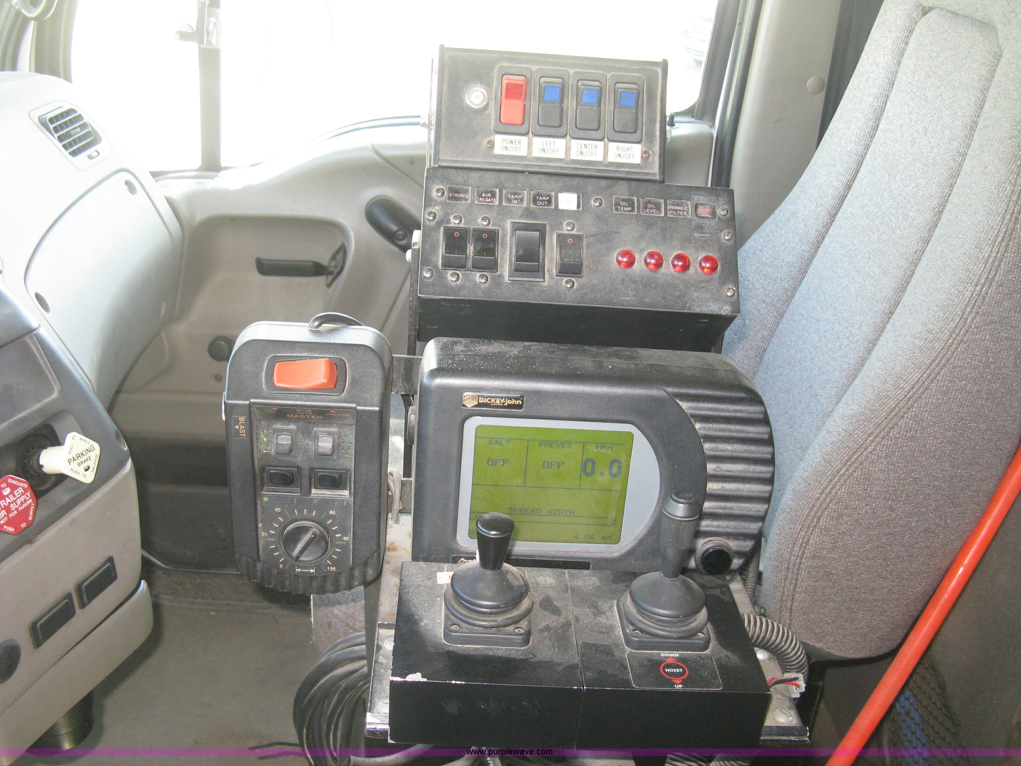 2008 Sterling L8500 dump truck. 69,055 miles on odometer, Cummins ISC 8.3L L6 turbo diesel engine, Automatic transmission, Tandem axle, Full screw, AC and heat, Tilt, Telescoping steering wheel, Cruise, AM/FM, Air suspension seat, Air ride cab, Block heater, Exterior visor, PTO, Trailer brake controller, Dicky John Controls Joystick hoist control, Joystick plow control, Spreader control, Strobe, tarp, and tailgate control, Mabar DB153659 steel dump bed 15'L x 8'W, 36" side height, 12" side board height, Single ram hoist, Air operated end gate, Roll-over tarp, Plow frame, Single fuel tank, Double frame, Air suspension, Air brakes, 315/80R22.5 front tires, 11R22.5 rear tires, GVWR 58,000 lbs, FAWR 18,000 lbs, IAWR 20,000 lbs, RAWR 20,000 lbs, Windshield chipped, Side boards damaged Missing one side, Unit# 0051. 2FZHAWBS78AZ09566. Sedgwick County. 1021 Stillwell. Wichita, KS 67213