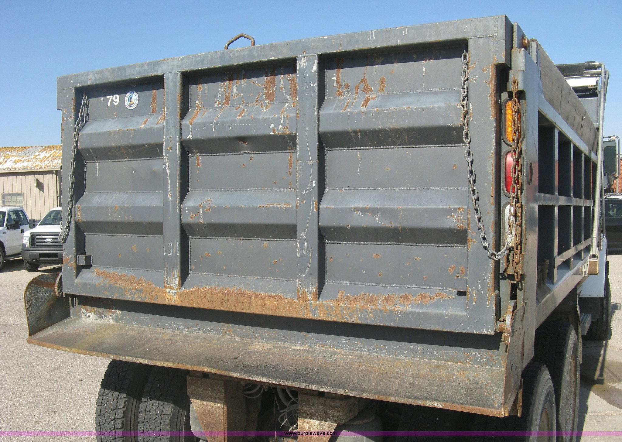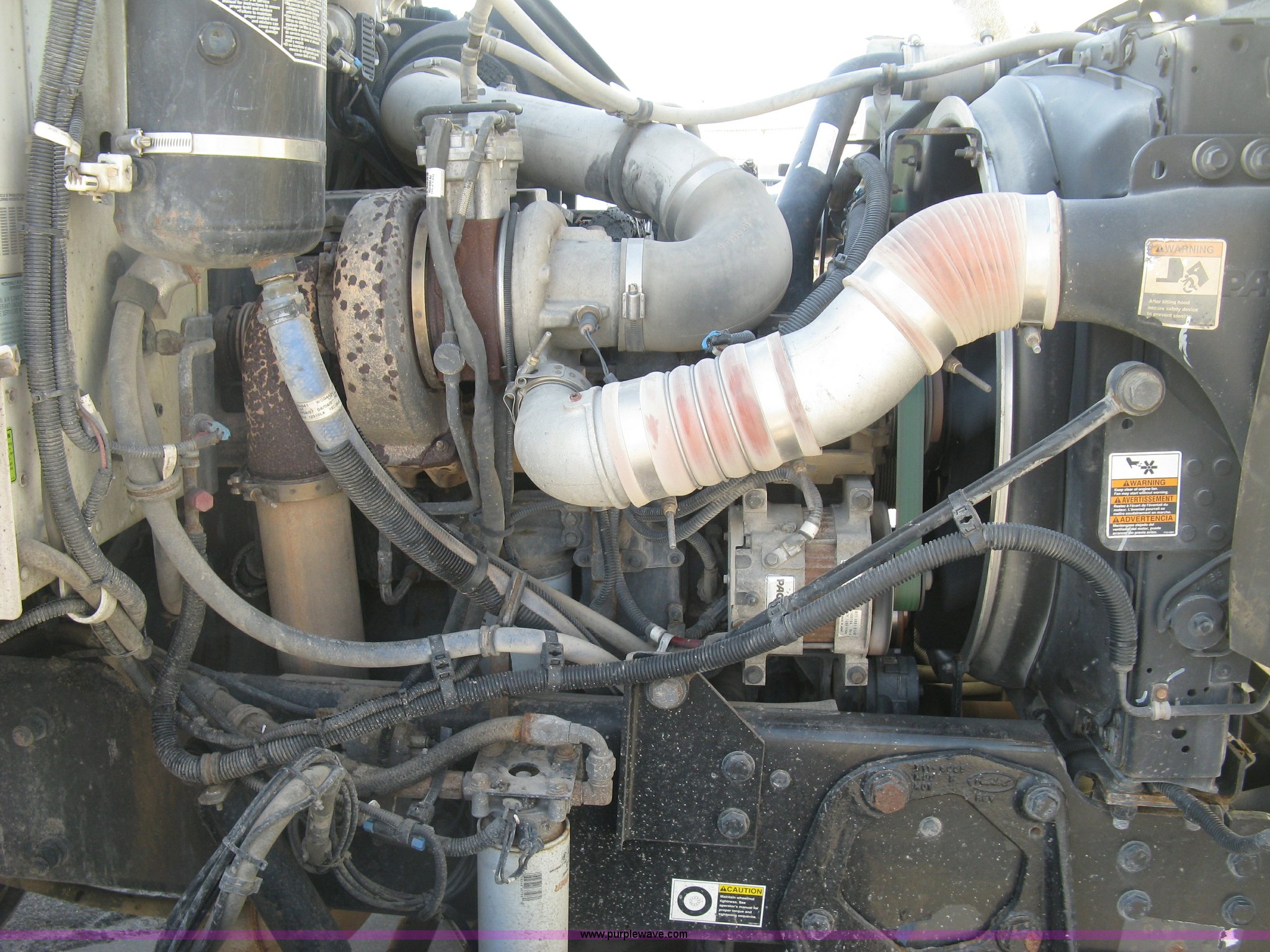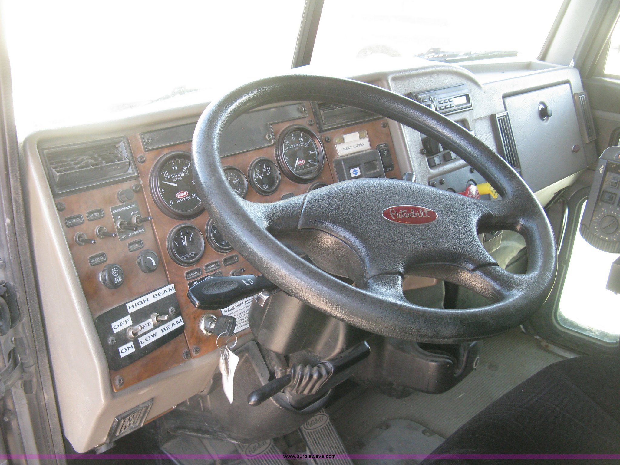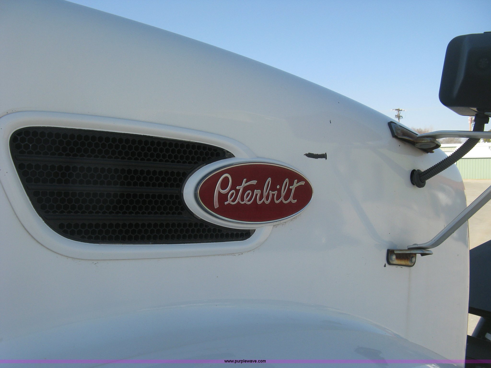 Purple Wave is selling a used Construction Dump Truck in Kansas. This item is a 2008 Peterbilt 340 dump truck with the following: 103,292 miles on odometer, 4,335 hours on meter, Paccac PX-8 8.3L L6 turbo diesel engine, Automatic transmission, Tandem axle, Full screw, AC and heat, Tilt, Telescoping steering wheel, Cruise, AM/FM, Heated mirrors, Air suspension seat, Block heater, Exterior visor, PTO, Dickey John controls, Joystick hoist control, Joystick plow control, Spreader control, Strobe, tarp, and tailgate control, Mabar DB153659 steel dump bed, 15'L x 8'W, 36" side height, 10" side board height, Single ram hoist, Air operated end gate, Roll-over tarp, Toolboxes, Single fuel tank, Rear air valve, Double frame, 210" wheelbase, Air suspension, Air brakes, Engine brake, 315/80R22.5 front tires, 11R22.5 rear tires, GVWR 58,000 lbs, FAWR 18,000 lbs, IAWR 20,000 lbs, RAWR 20,000 lbs, Recently installed plow frame, Unit# 0079