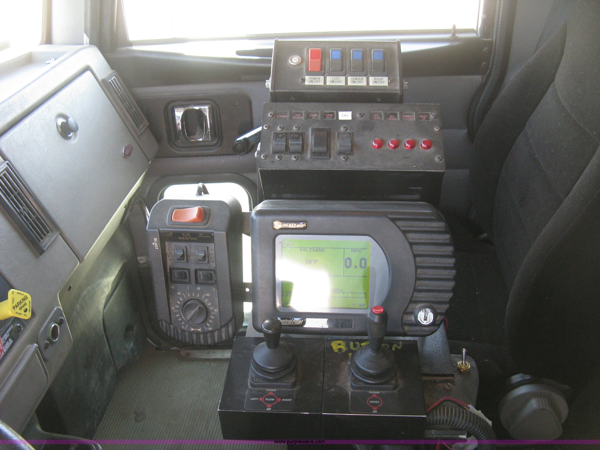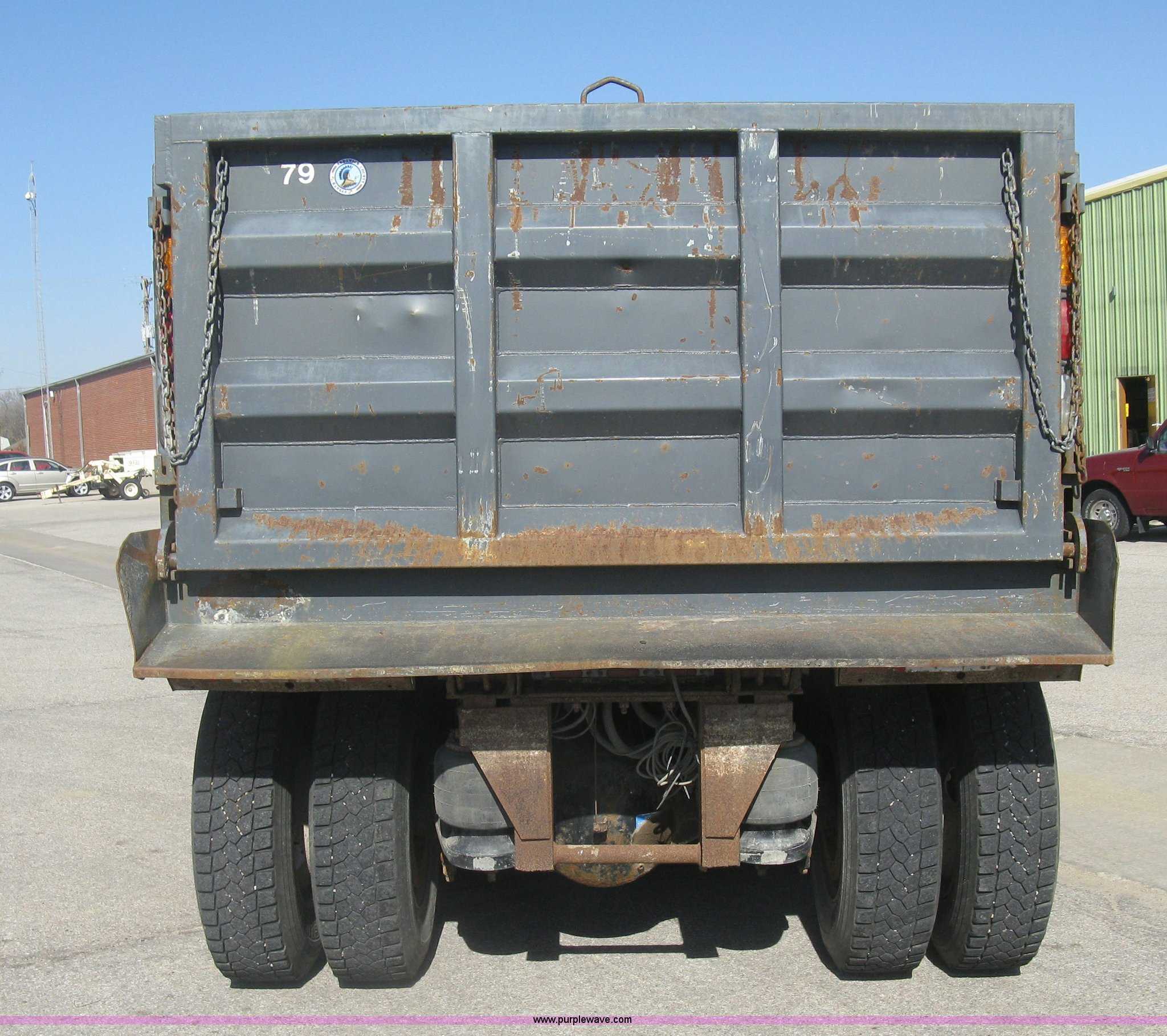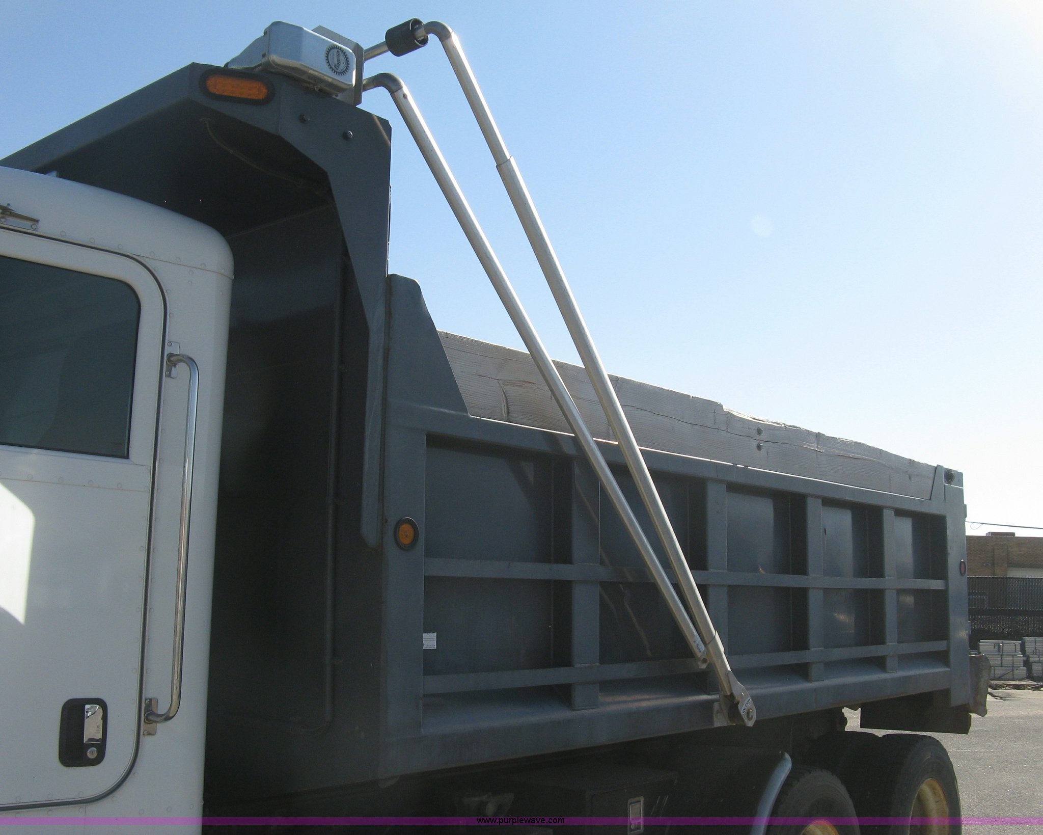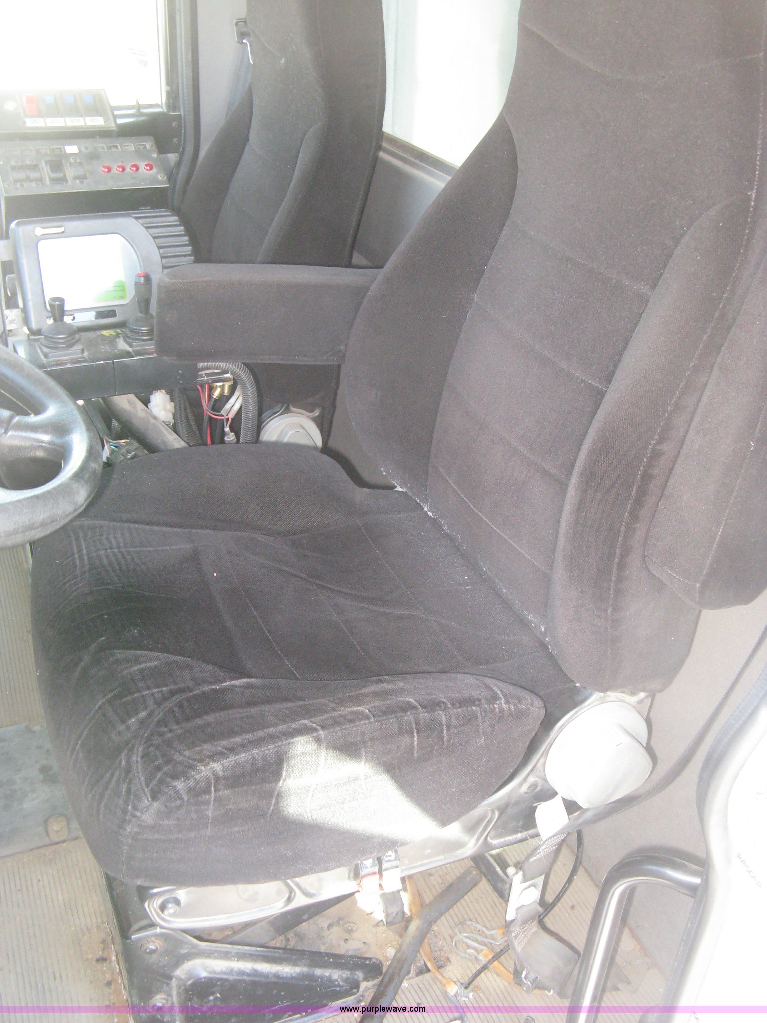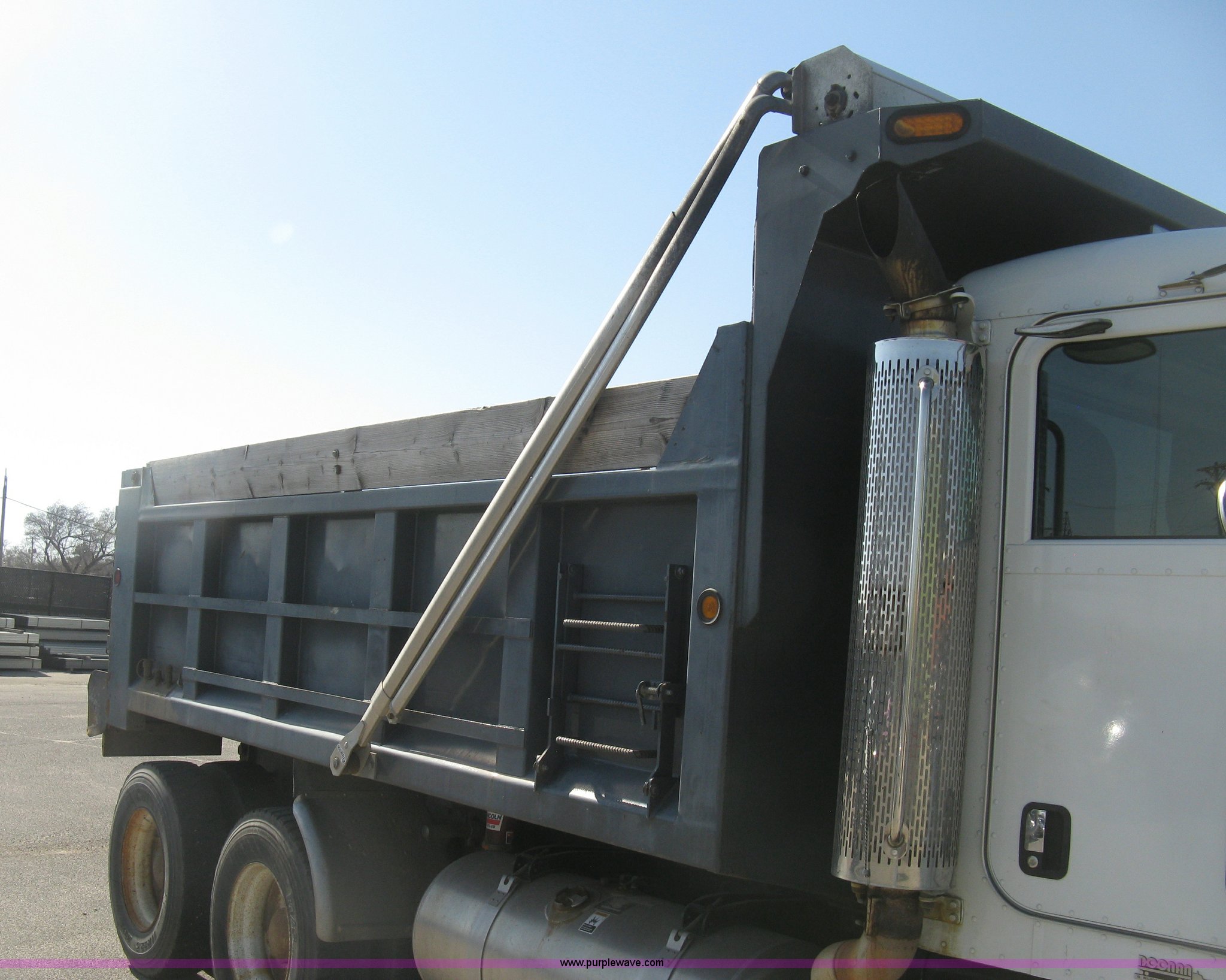 Purple Wave is selling a used Construction Dump Truck in Kansas. This item is a 2008 Peterbilt 340 dump truck with the following: 103,292 miles on odometer, 4,335 hours on meter, Paccac PX-8 8.3L L6 turbo diesel engine, Automatic transmission, Tandem axle, Full screw, AC and heat, Tilt, Telescoping steering wheel, Cruise, AM/FM, Heated mirrors, Air suspension seat, Block heater, Exterior visor, PTO, Dickey John controls, Joystick hoist control, Joystick plow control, Spreader control, Strobe, tarp, and tailgate control, Mabar DB153659 steel dump bed, 15'L x 8'W, 36" side height, 10" side board height, Single ram hoist, Air operated end gate, Roll-over tarp, Toolboxes, Single fuel tank, Rear air valve, Double frame, 210" wheelbase, Air suspension, Air brakes, Engine brake, 315/80R22.5 front tires, 11R22.5 rear tires, GVWR 58,000 lbs, FAWR 18,000 lbs, IAWR 20,000 lbs, RAWR 20,000 lbs, Recently installed plow frame, Unit# 0079