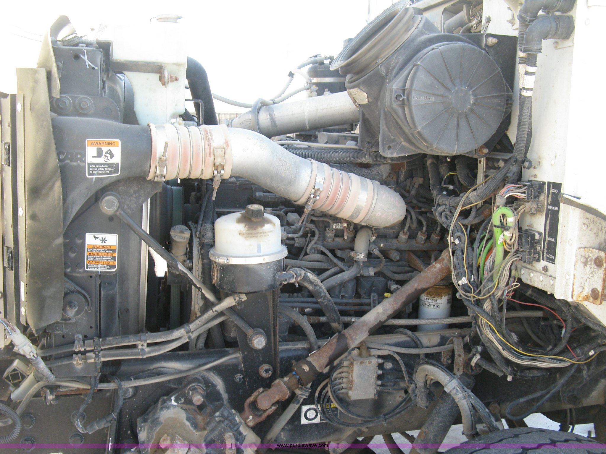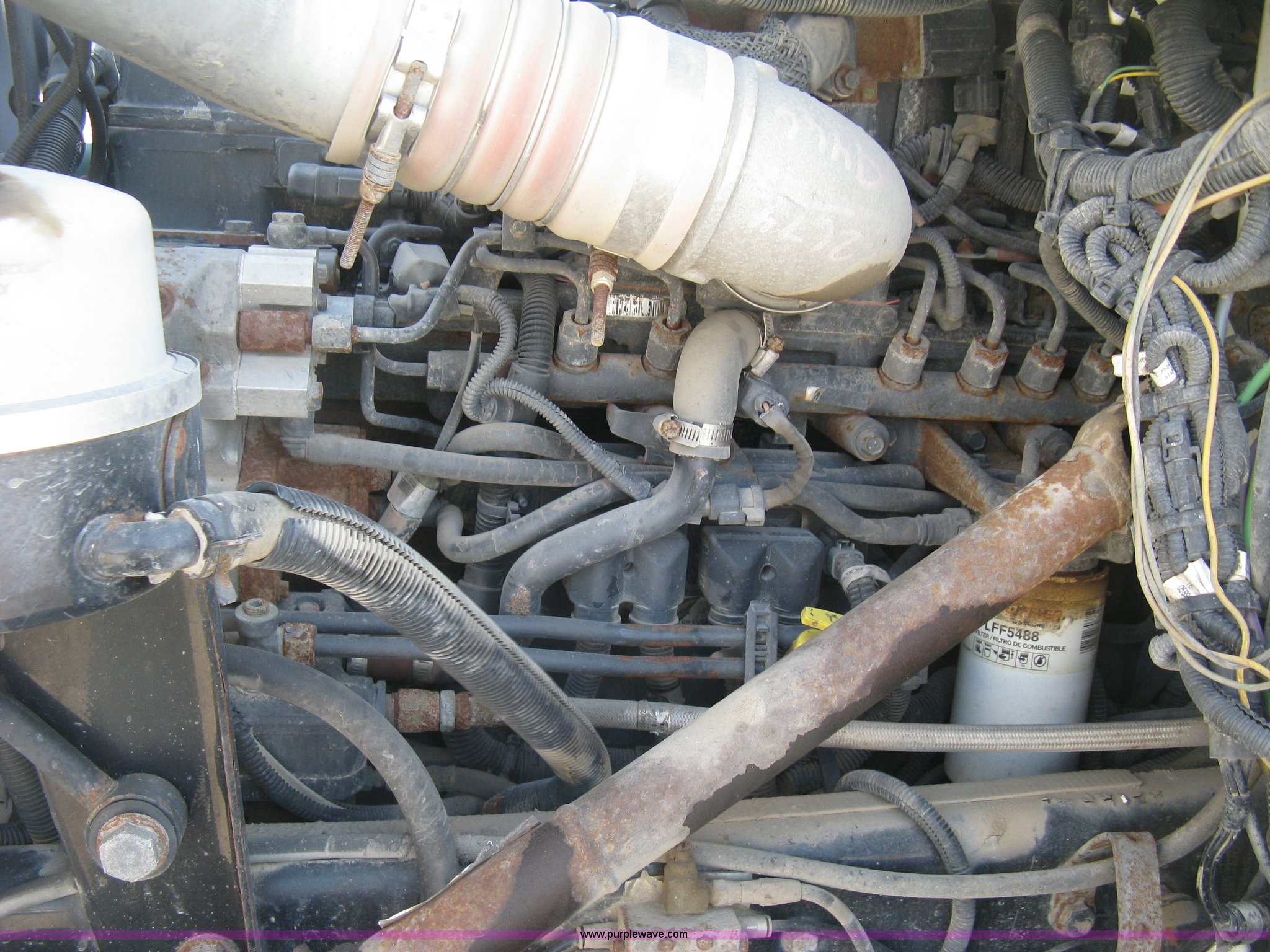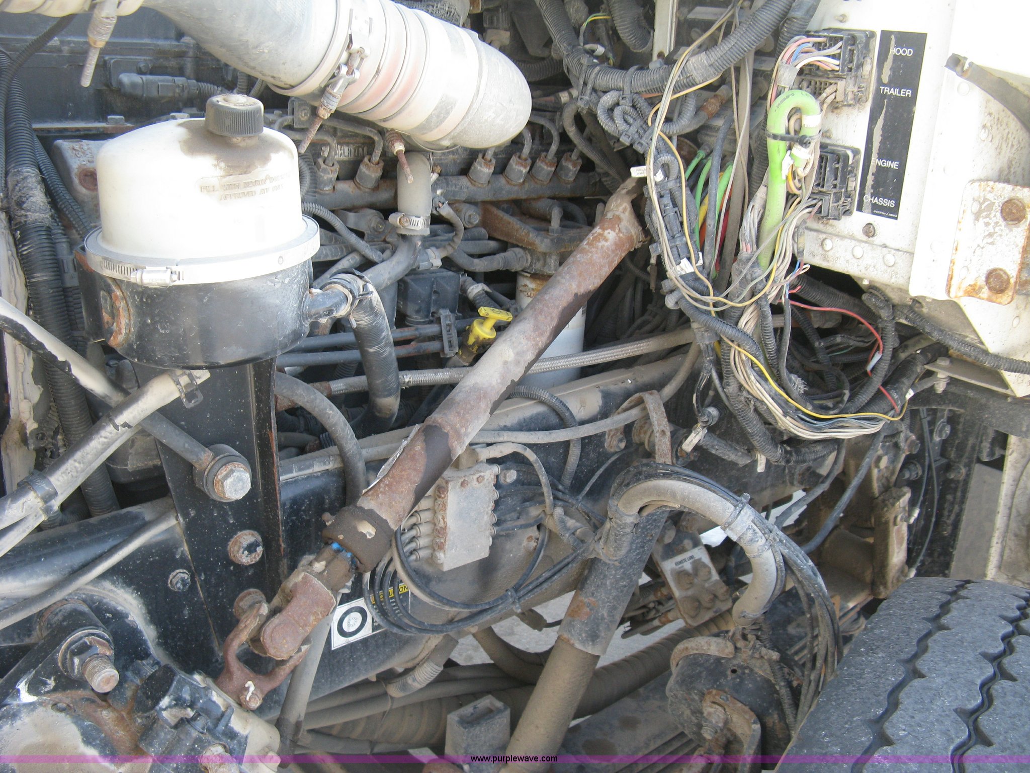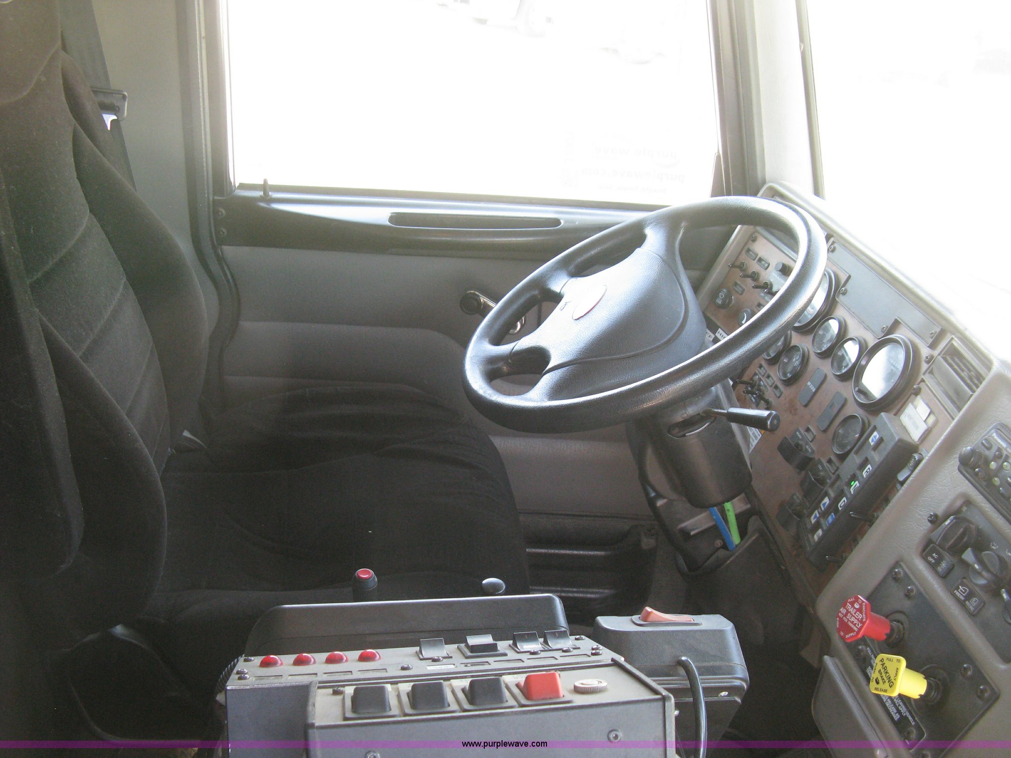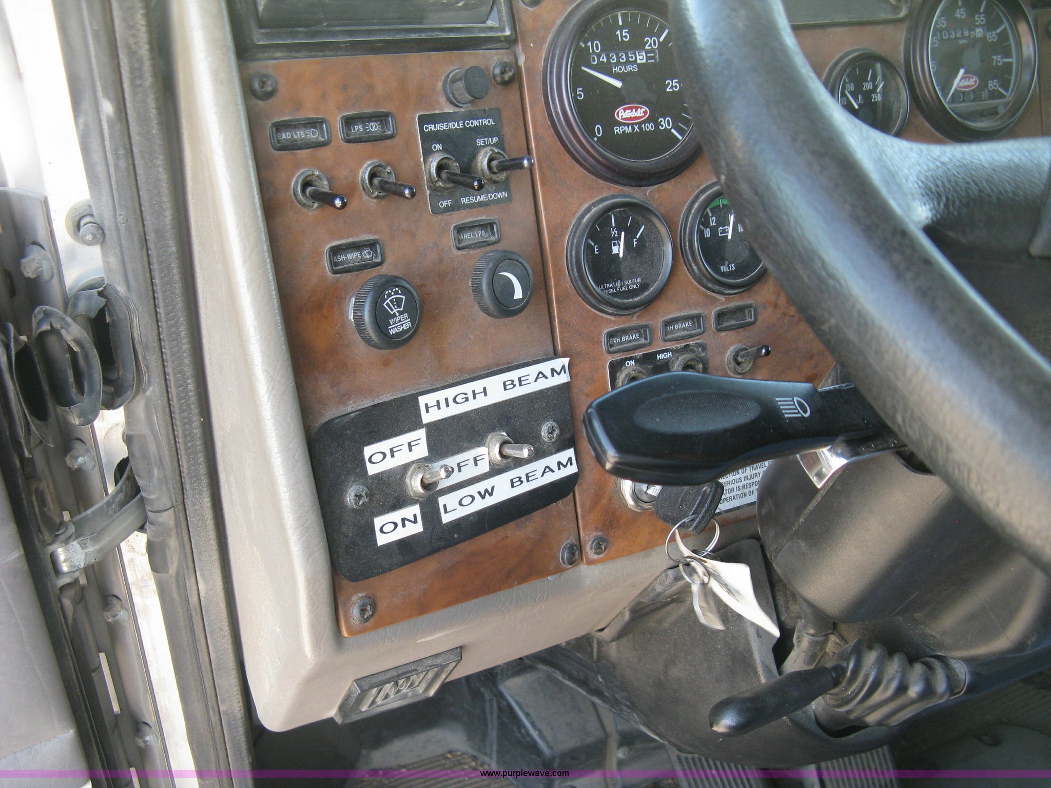 Purple Wave is selling a used Construction Dump Truck in Kansas. This item is a 2008 Peterbilt 340 dump truck with the following: 103,292 miles on odometer, 4,335 hours on meter, Paccac PX-8 8.3L L6 turbo diesel engine, Automatic transmission, Tandem axle, Full screw, AC and heat, Tilt, Telescoping steering wheel, Cruise, AM/FM, Heated mirrors, Air suspension seat, Block heater, Exterior visor, PTO, Dickey John controls, Joystick hoist control, Joystick plow control, Spreader control, Strobe, tarp, and tailgate control, Mabar DB153659 steel dump bed, 15'L x 8'W, 36" side height, 10" side board height, Single ram hoist, Air operated end gate, Roll-over tarp, Toolboxes, Single fuel tank, Rear air valve, Double frame, 210" wheelbase, Air suspension, Air brakes, Engine brake, 315/80R22.5 front tires, 11R22.5 rear tires, GVWR 58,000 lbs, FAWR 18,000 lbs, IAWR 20,000 lbs, RAWR 20,000 lbs, Recently installed plow frame, Unit# 0079