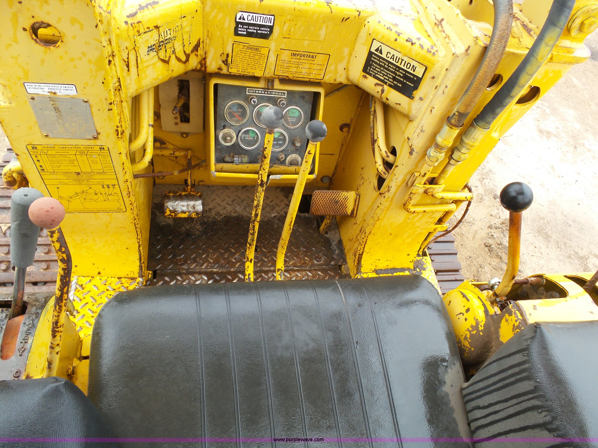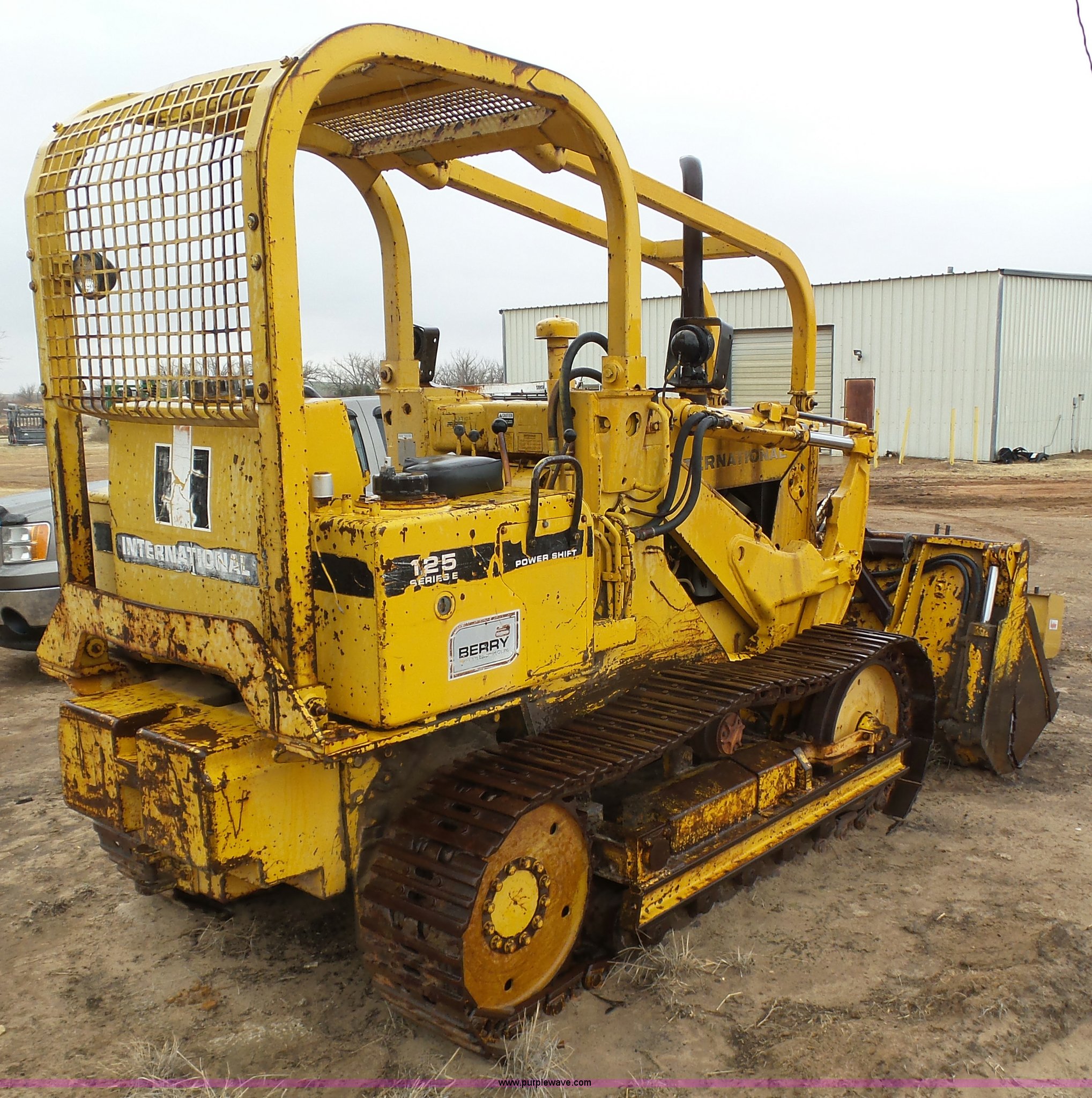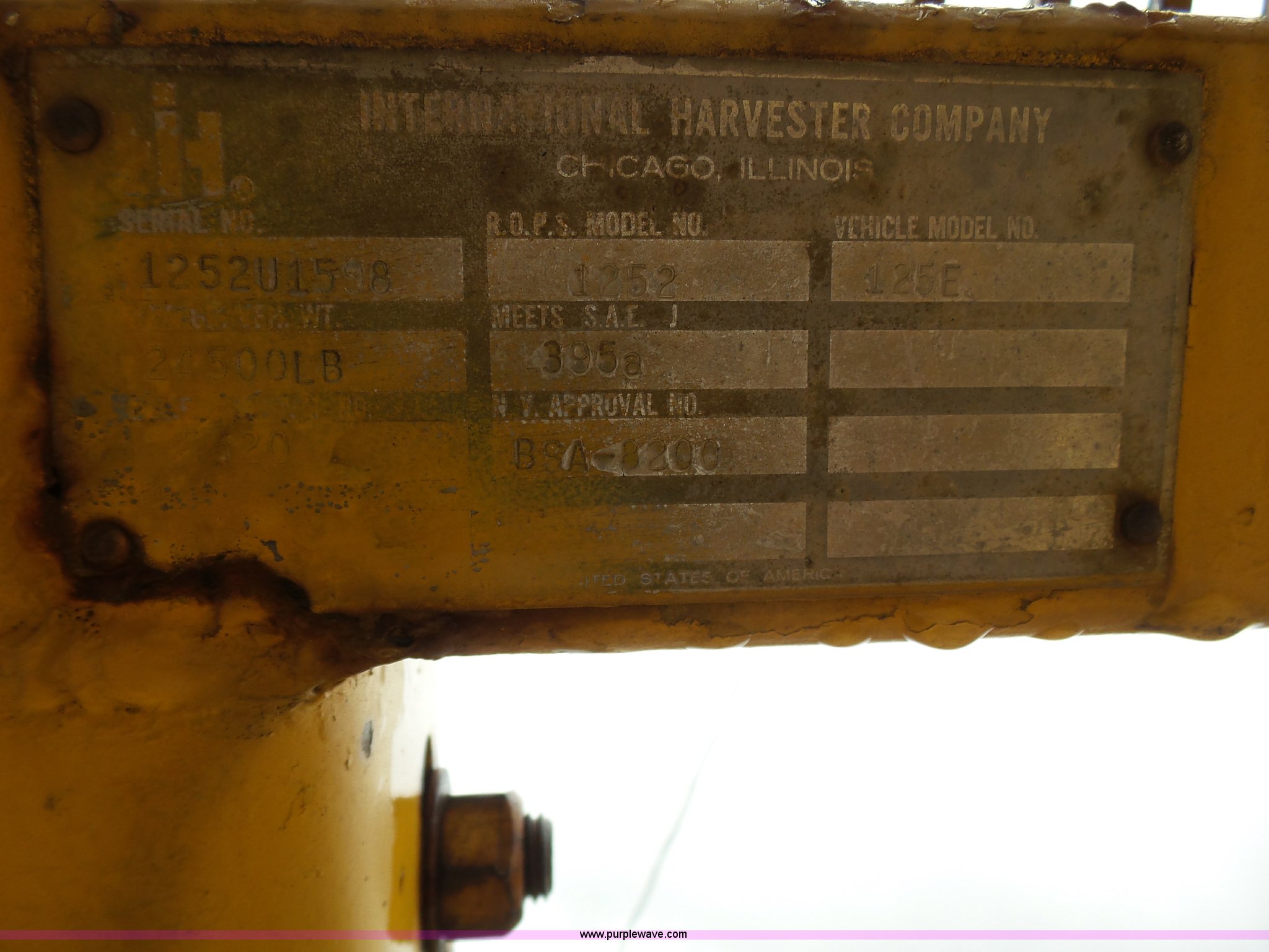 Purple Wave is selling a used Crawler Loader in Oklahoma. This item is a 1976 International 125E loader with the following: Four cylinder turbo diesel engine, Serial 44487031, Powershift transmission, 3F-3R gears, OROPS, Suspension seat, Two-lever bucket controls, Front work lights, Block heater, 72"W clamshell loader bucket, Bolt-on cutting edge, (7) teeth, Counterweight, Single grouser track pads, 19,767 lbs. base operating weight, Interior/exterior cosmetic damage, Weld repairs, Non-operational unit, Serial 4500008U006654