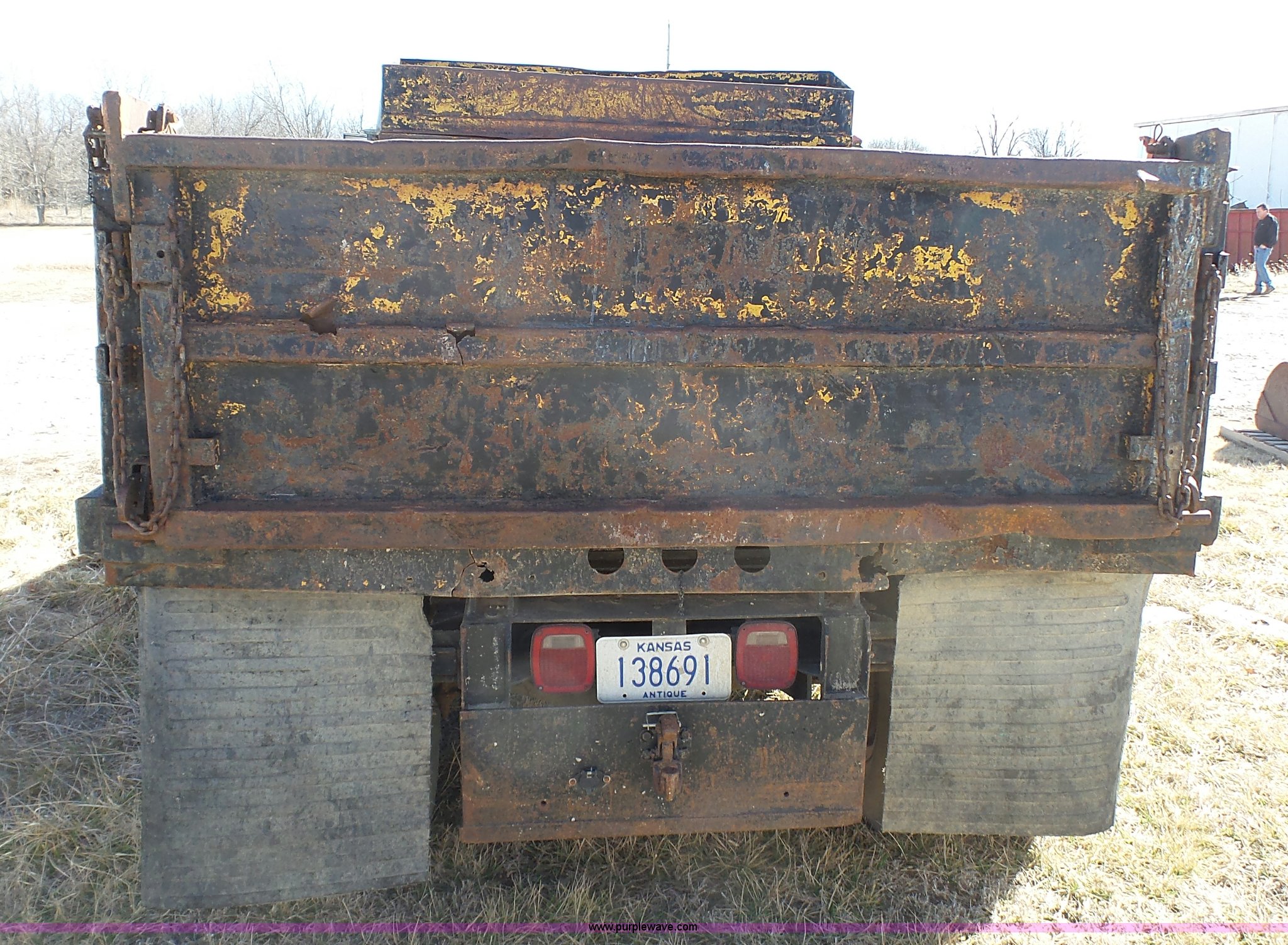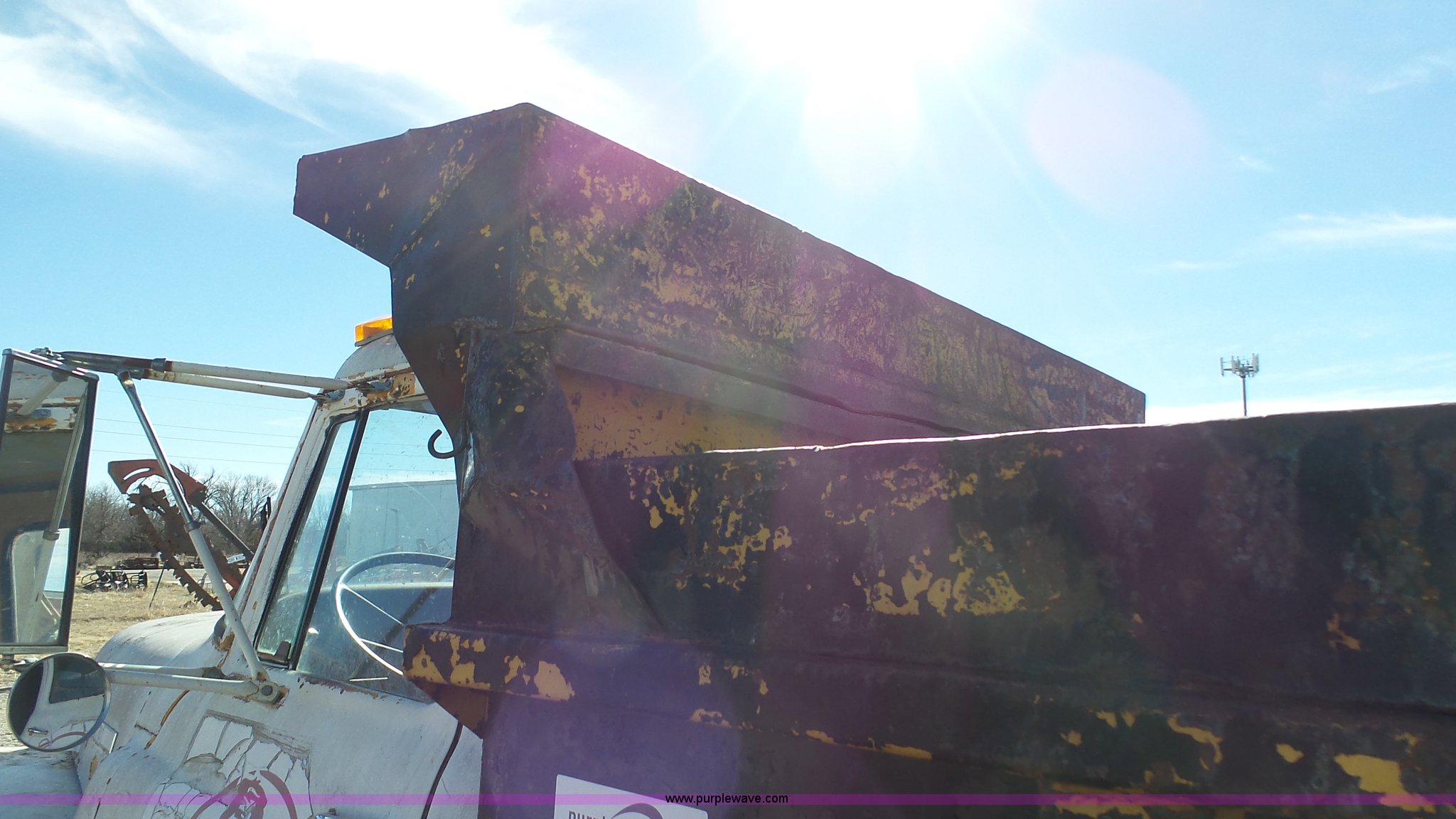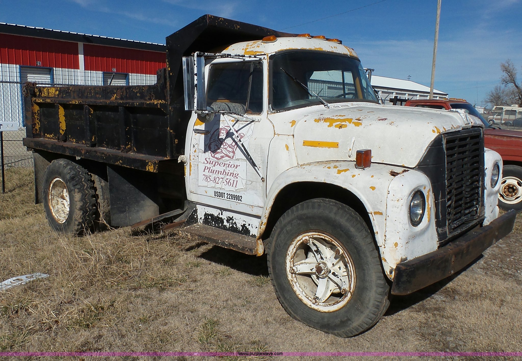 Purple Wave is selling a used Construction Dump Truck in Kansas. This item is a 1972 International Loadstar dump truck with the following: 76,982 miles on odometer, Eight cylinder gas engine, Manual transmission, Spring suspension seat, Cloth interior, PTO, 10'L x 88"W steel dump bed, 28" side height, Manual operated end gate, Spring suspension, Hydraulic brakes, 9.00-20 tires, Battery dead, Transmission needs replaced, Brakes leak, Steering weak