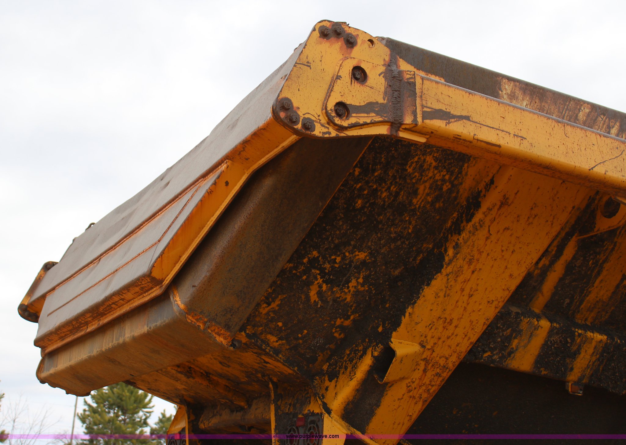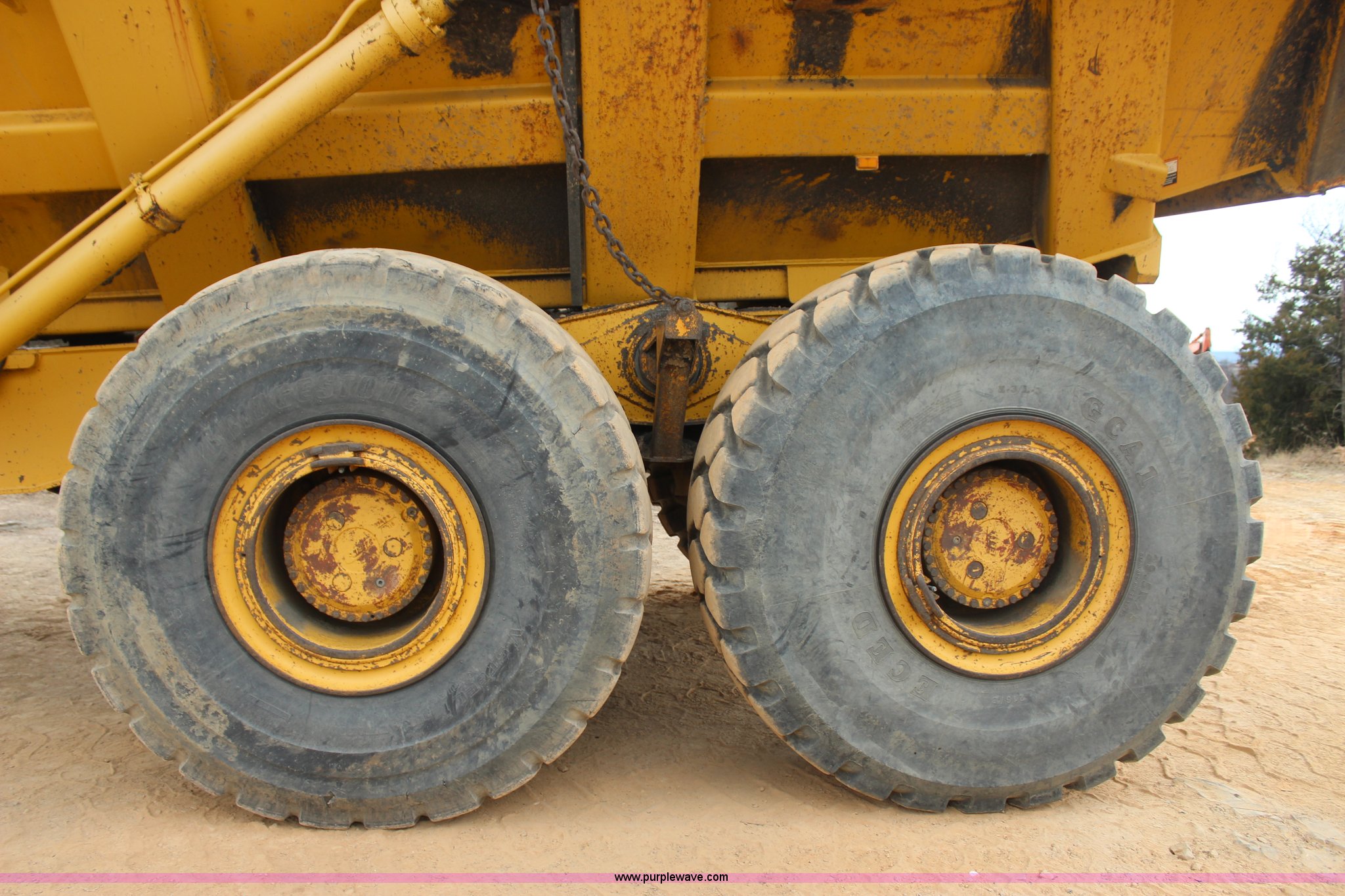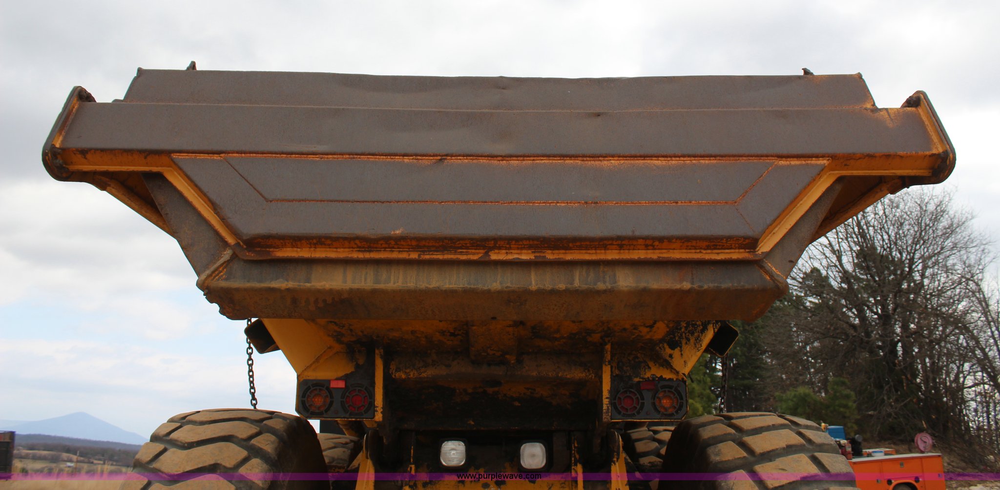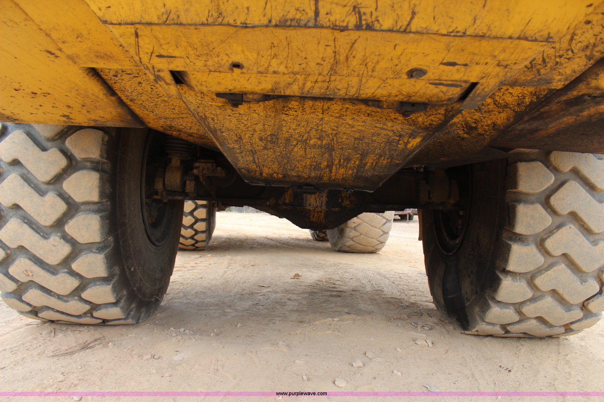 Purple Wave is selling a used Articulated Haul Truck in Oklahoma. This item is a 2003 John Deere 400D articulated haul truck with the following: 16,027 hours on meter, Mercedes-Benz six cylinder turbo diesel engine, Block heater, Automatic transmission, AC and heat, AM/FM, Tilt, Telescoping steering wheel, Air suspension seat, Power and heated mirrors, Engine brake, John Deere bed, 40 ton capacity, Steel construction, Mechanical end gate, Wheel weights, Pin hitch, Single fuel tank, Tandem axle, 29.5R25 tires, 65,960 lbs. base operating weight, (5) tires recently replaced, Serial BE400DT200656