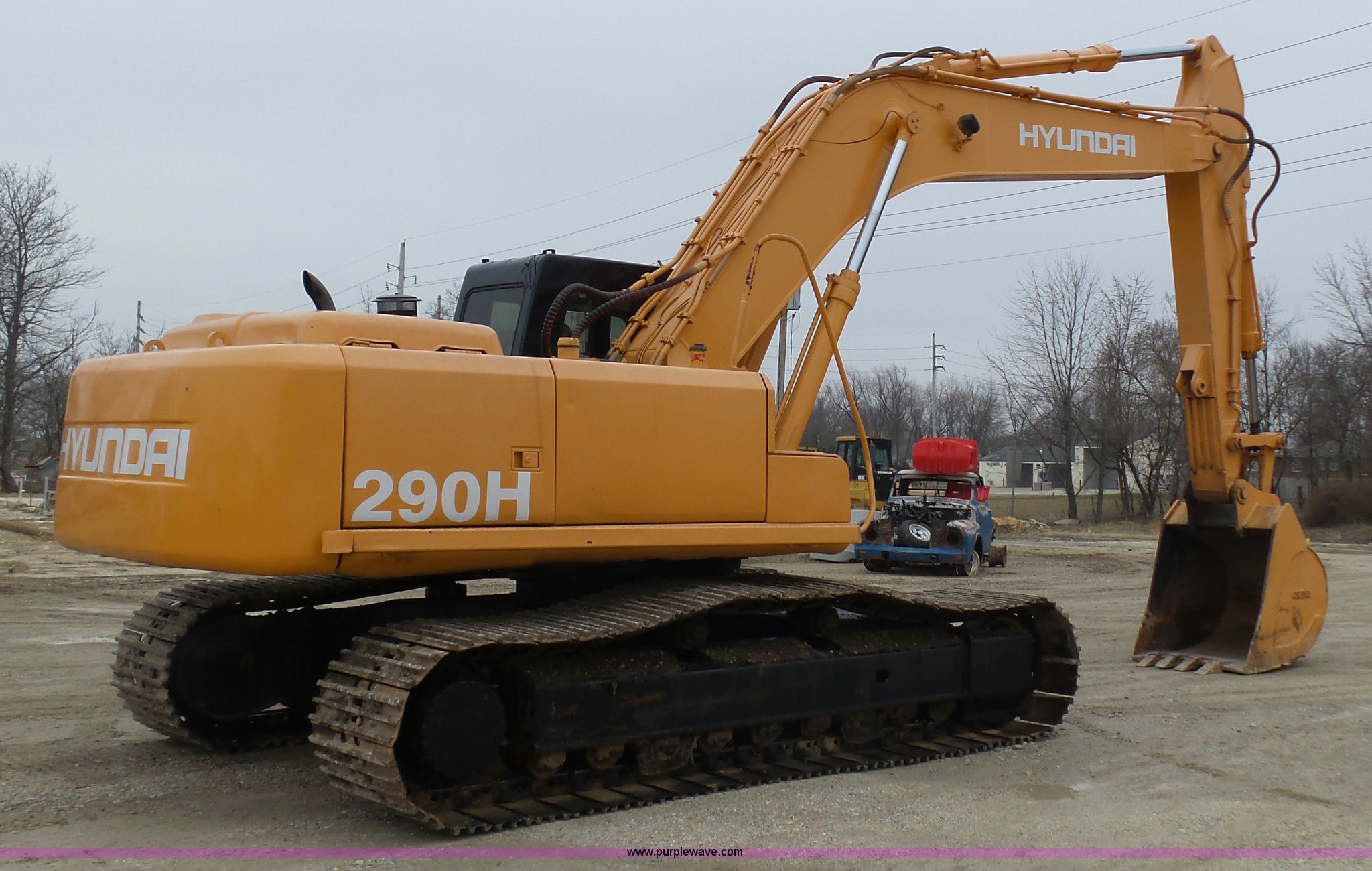 Purple Wave is selling a used Hydraulic Excavator in Missouri. This item is a 2004 Hyundai 290 LC-7 excavator with the following: 8,580 hours on meter, Cummins six cylinder turbo diesel engine, Hydrostatic transmission, EROPS, Heat, Suspension seat, Wipers, Front work lights, Standard boom, 46"W bucket, (4) bolt-on teeth, Auxiliary hydraulics, Steel tracks