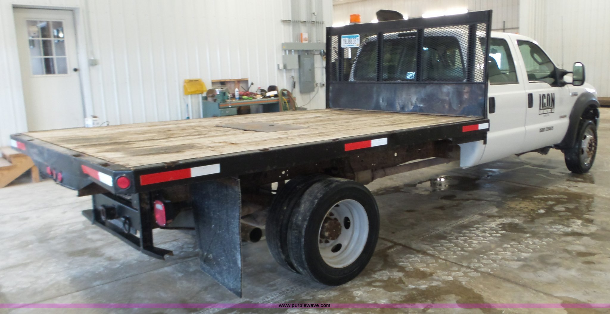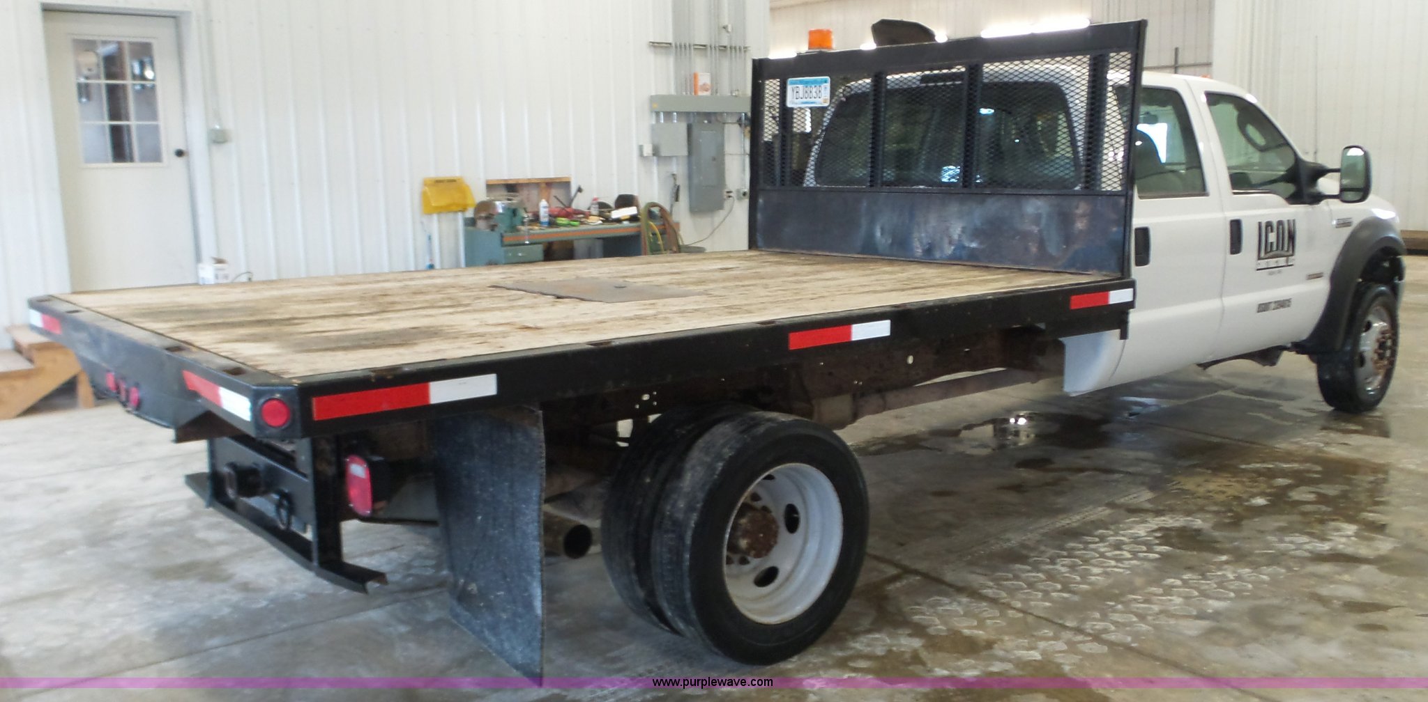 Purple Wave is selling a used Flat Bed Truck in Minnesota. This item is a 2007 Ford F550 Super Duty Crew Cab flatbed truck with the following: 114,056 miles on odometer, 6.0L V8 OHV 32V turbo diesel engine, Automatic transmission, Four wheel drive, AC and heat, Tilt, Cruise, AM/FM/CD, Manual windows and locks, Cloth interior, Front tow hooks, 12'L x 8'W flatbed, Gooseneck ball, Receiver hitch, 225/75R19.5 tires