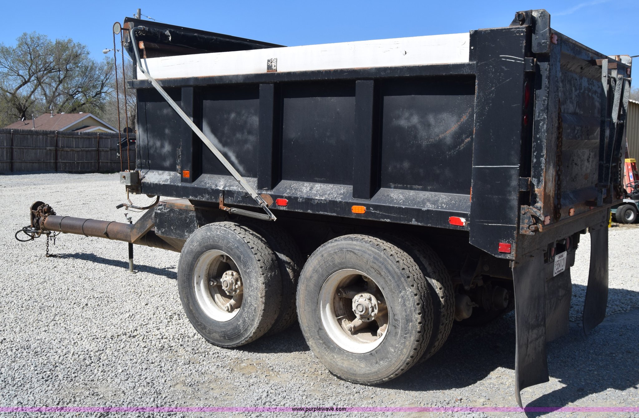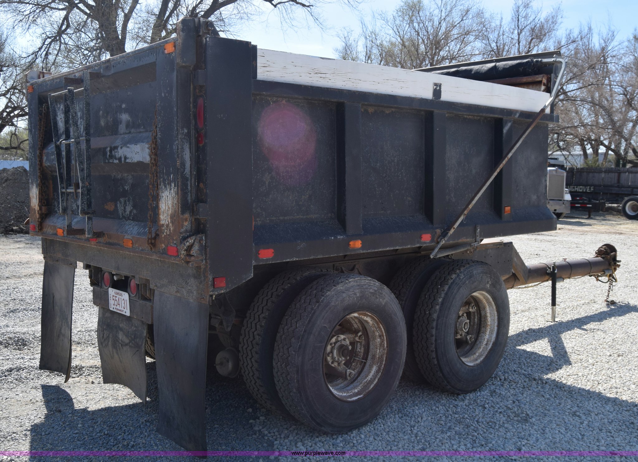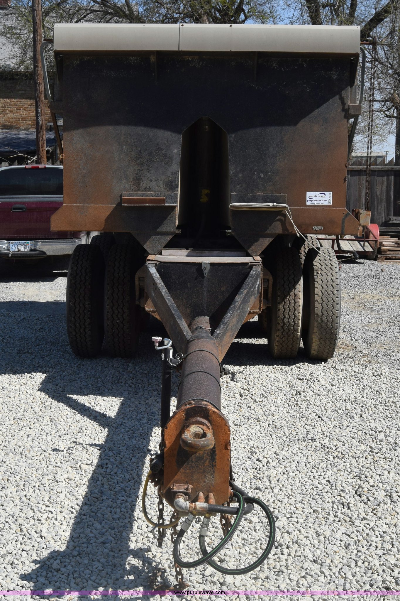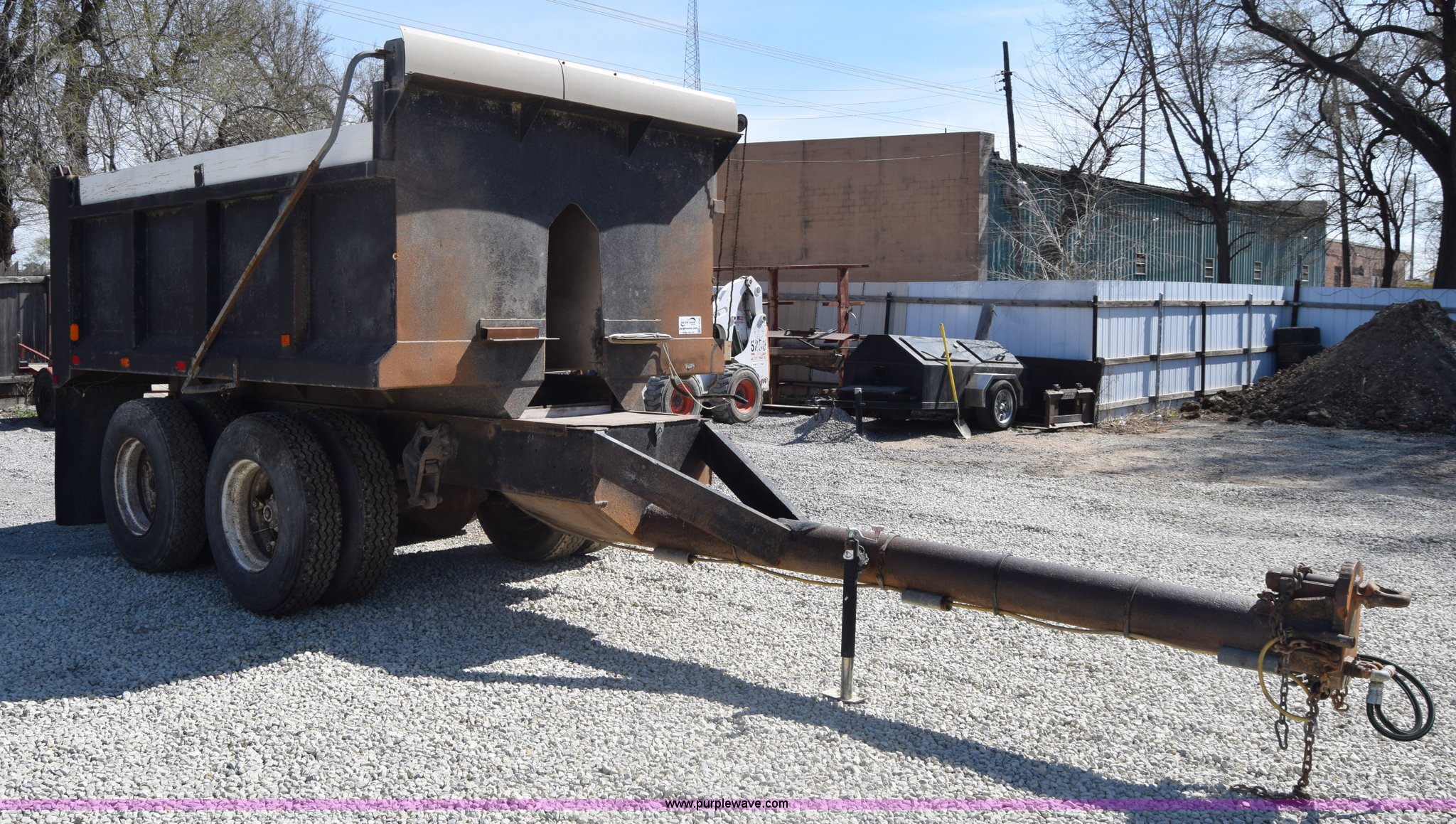 Purple Wave is selling a used End Dump Rock Trailer in Kansas. This item is a 1993 shop built pup trailer with the following: 12'L x 8'W, Roll-over tarp, Hist, Pintle hitch, Spring suspension, Air brakes, Oil bath hubs, 11R22.5 tires
