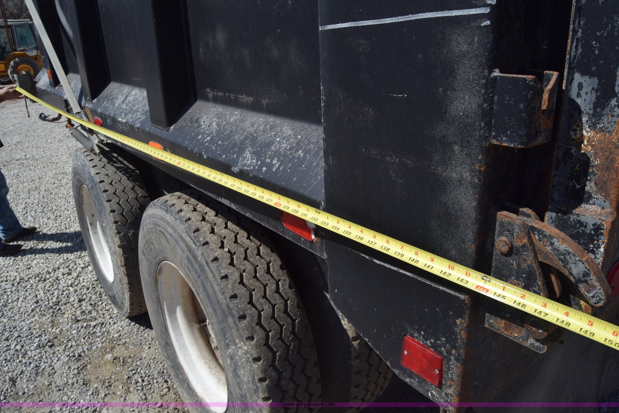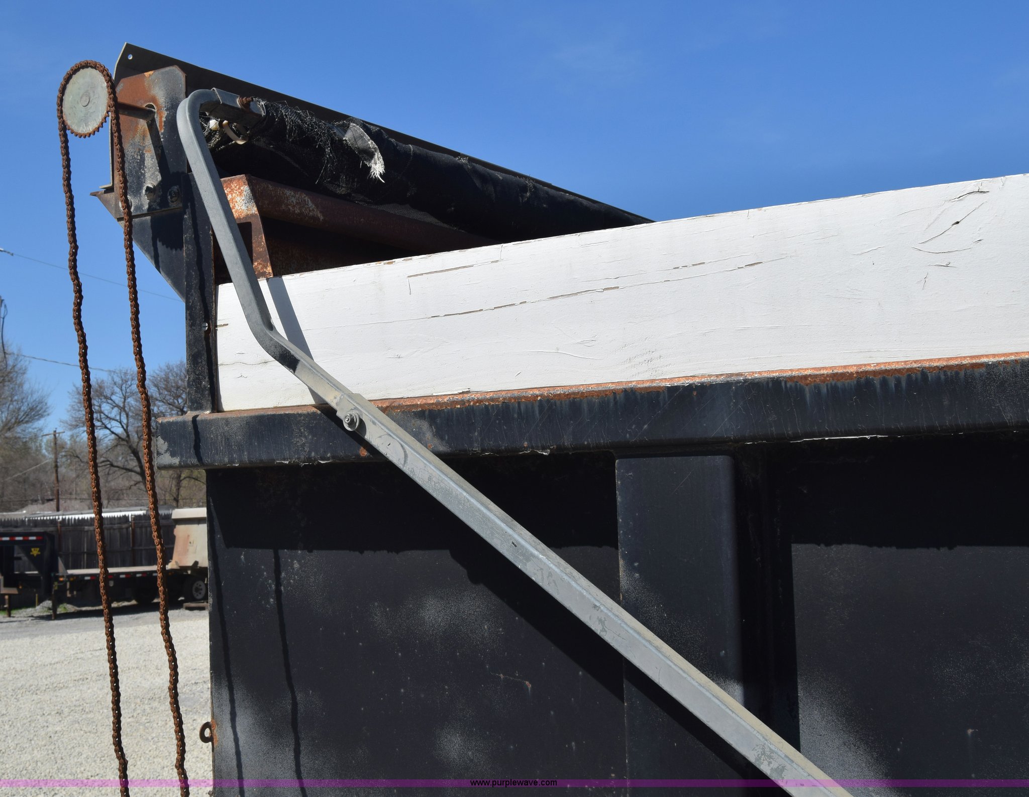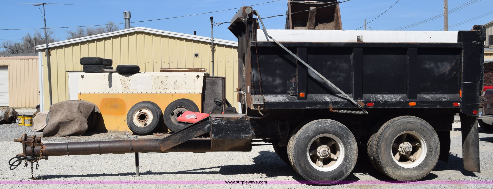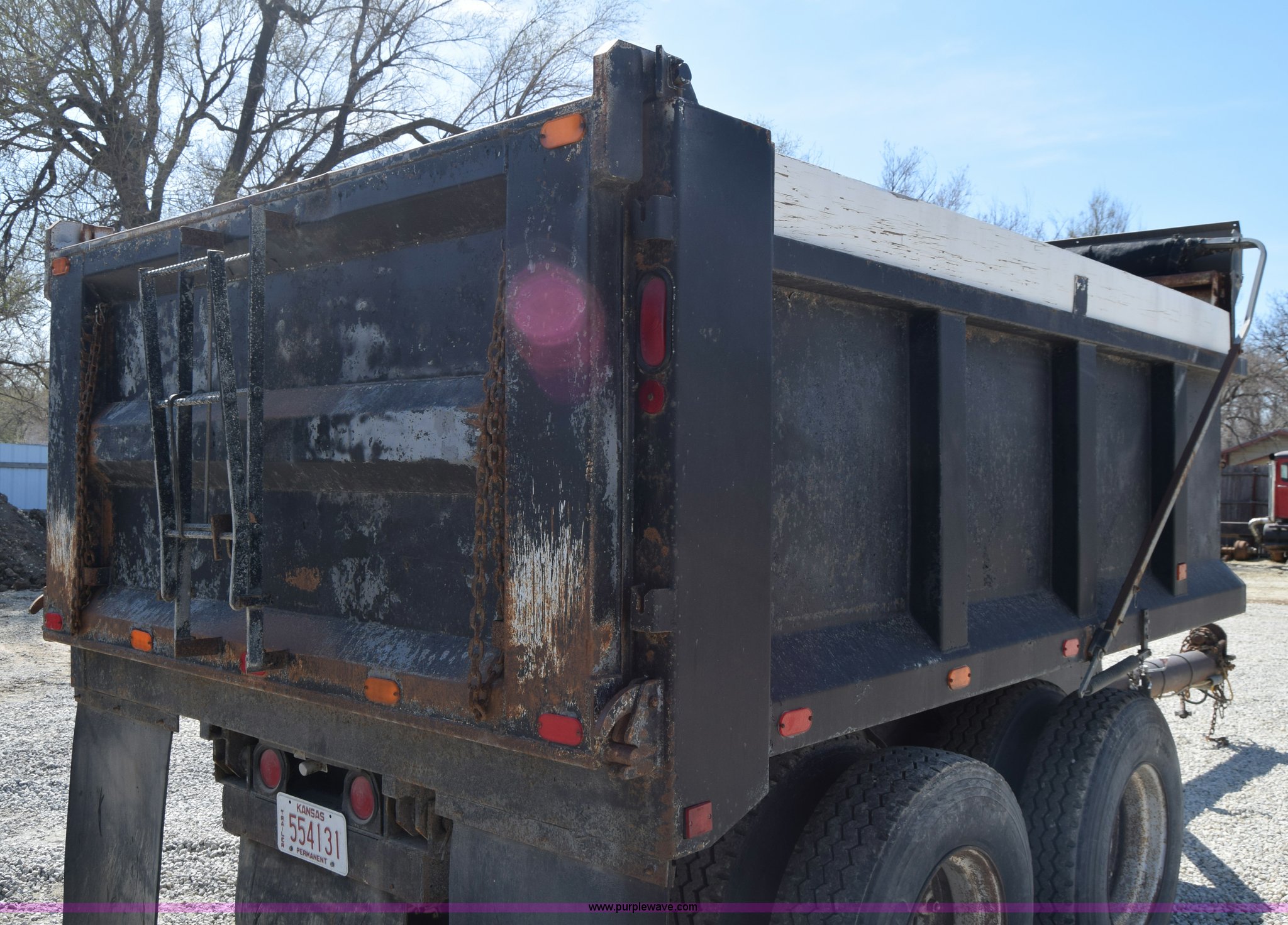 Purple Wave is selling a used End Dump Rock Trailer in Kansas. This item is a 1993 shop built pup trailer with the following: 12'L x 8'W, Roll-over tarp, Hist, Pintle hitch, Spring suspension, Air brakes, Oil bath hubs, 11R22.5 tires