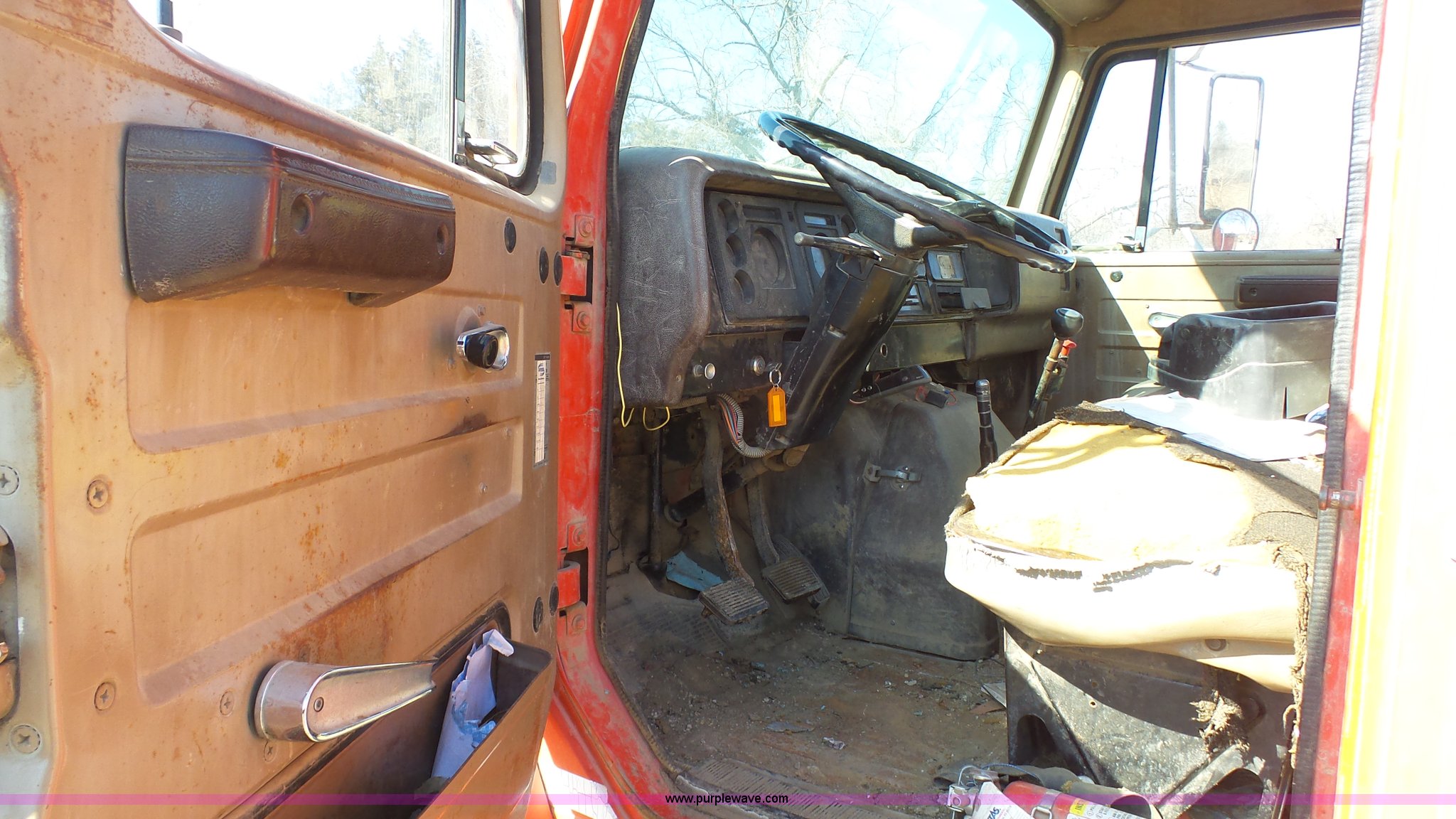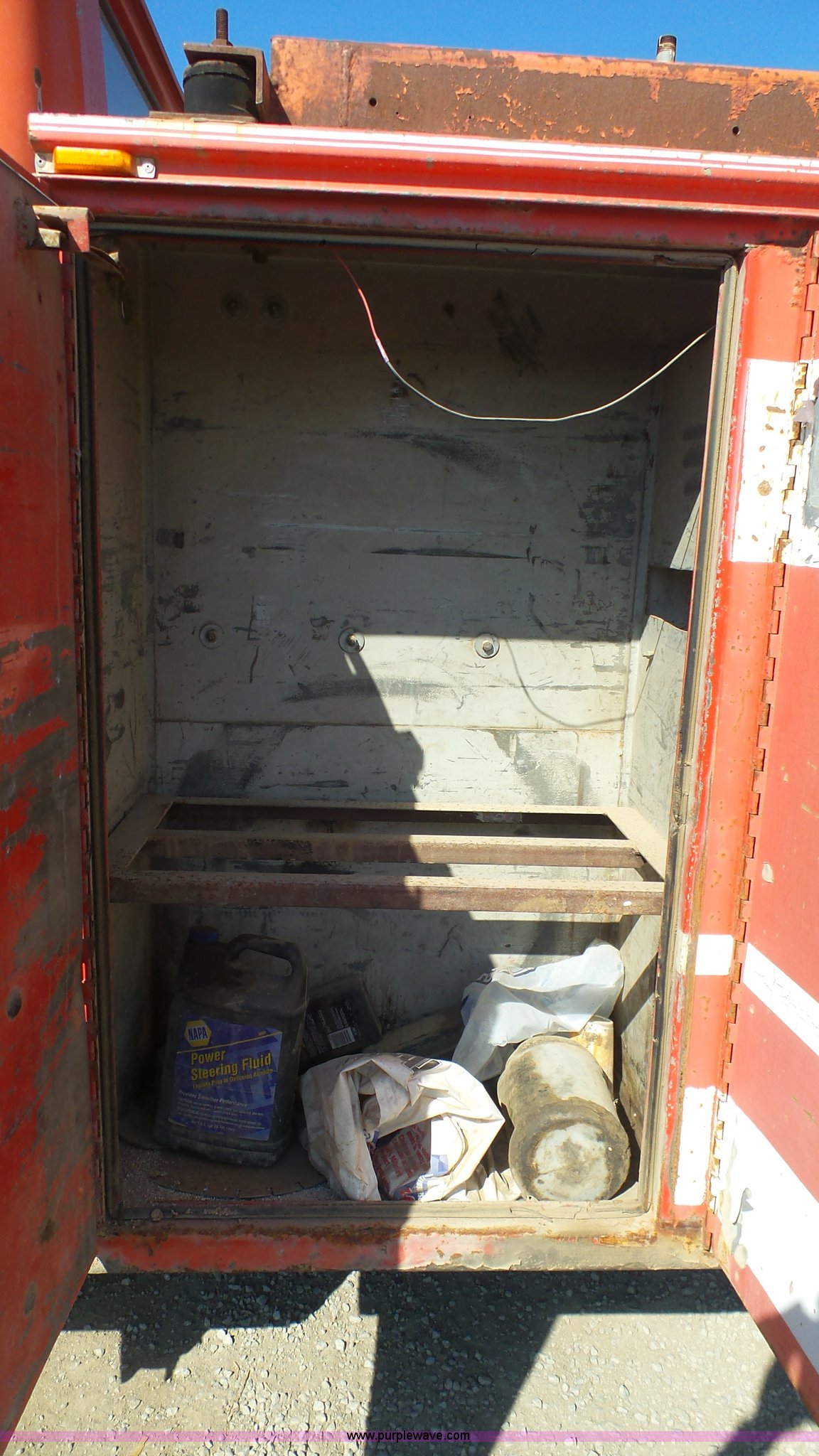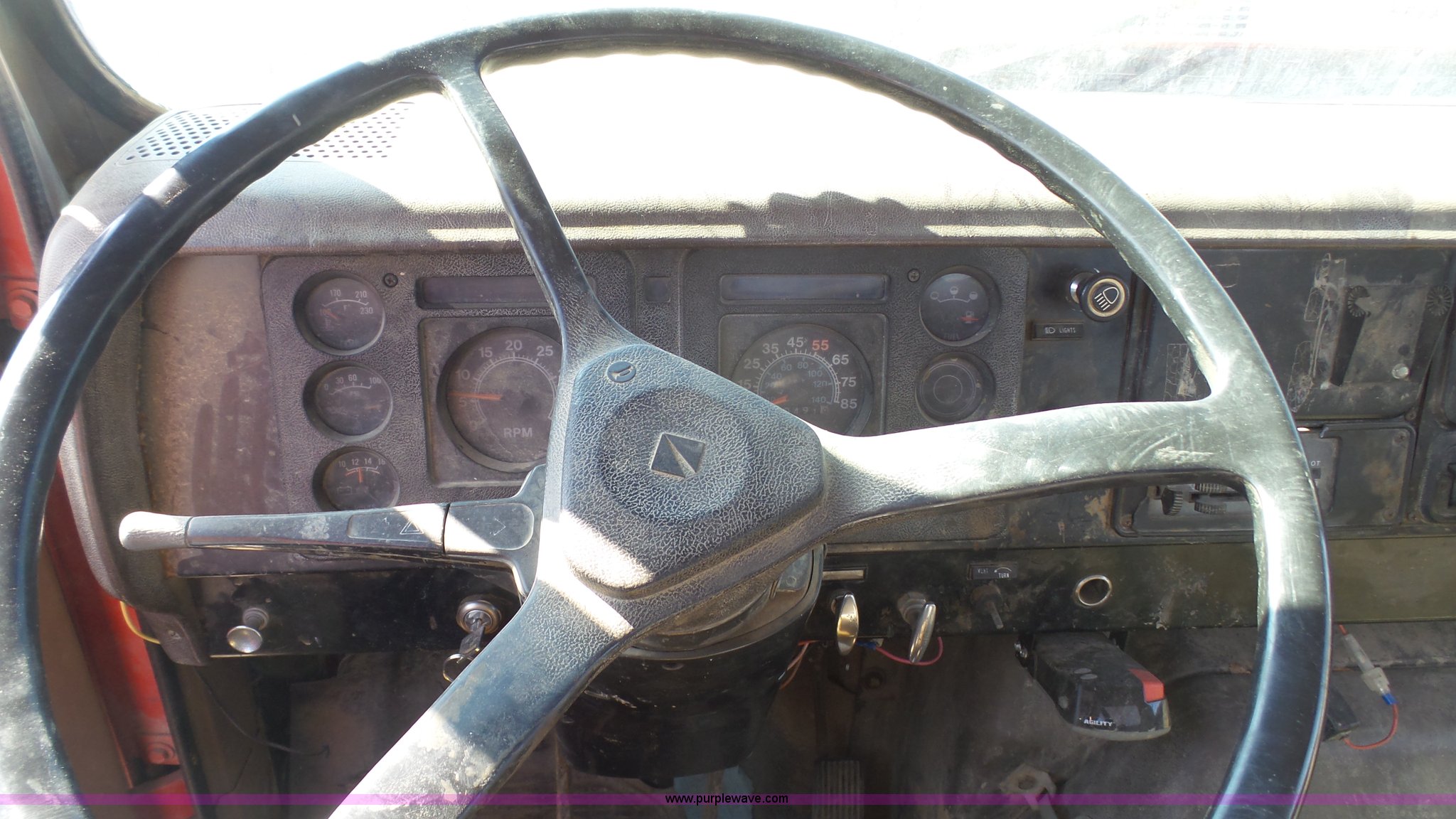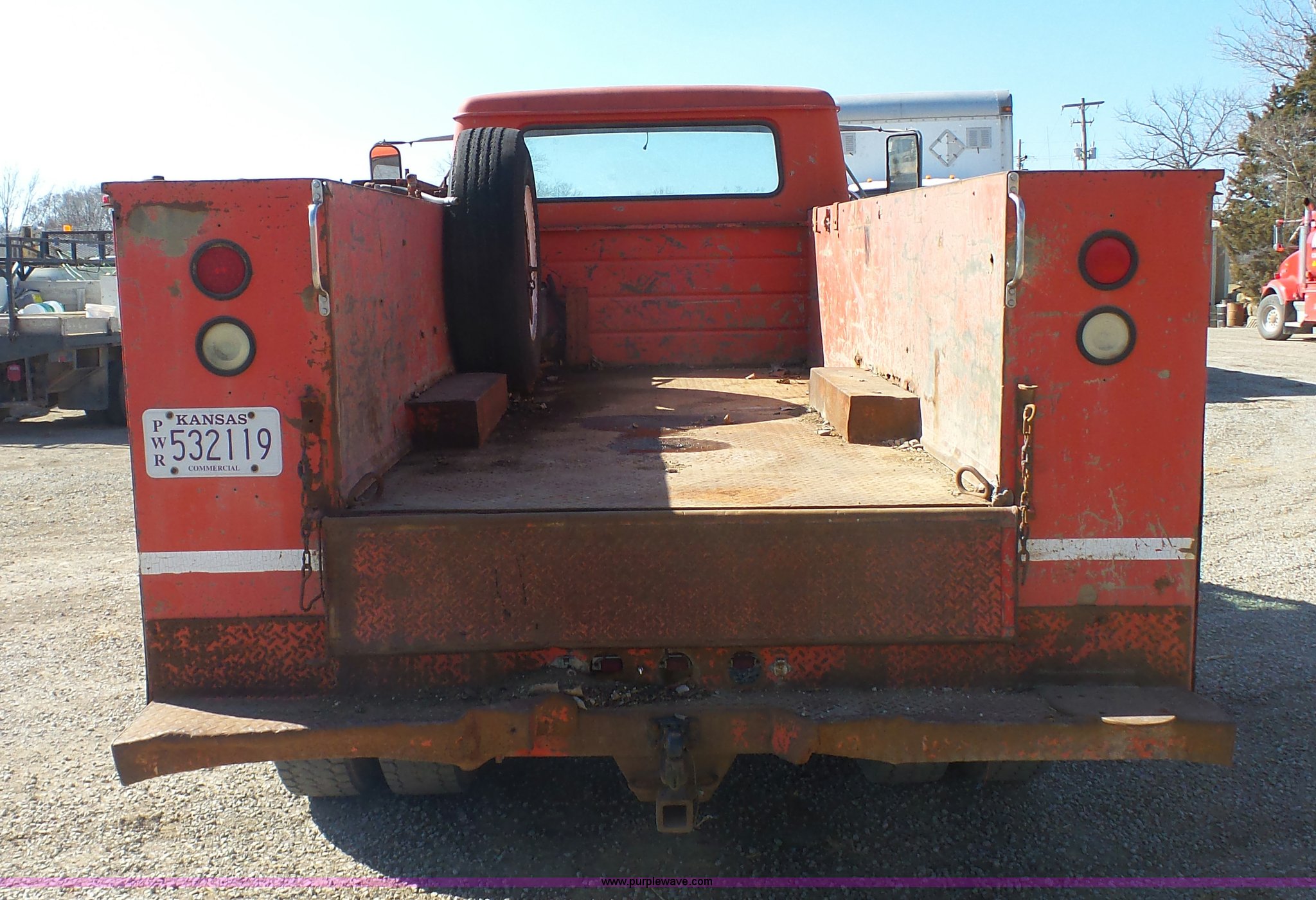 Purple Wave is selling a used Service Truck in Kansas. This item is a 1987 International S1900 service truck with the following: 340,491 miles on odometer, International DT466 7.6L L6 diesel engine, Five speed manual transmission, Two speed rear end, Heat, AM/FM/CD, Suspension seat, Knapheide service bed, 11'L x 95"W, Shelving, Pintle hitch, Receiver hitch, Spring suspension, Hydraulic brakes, 10.00R20 tires, Rust