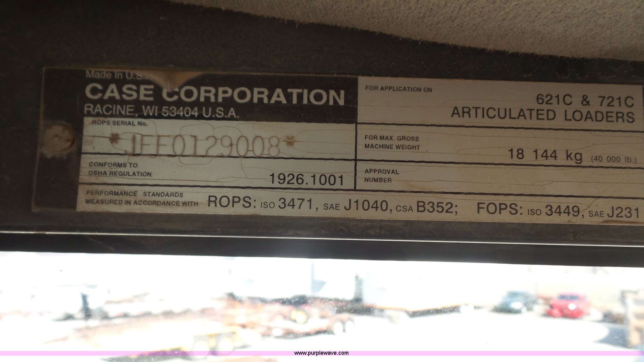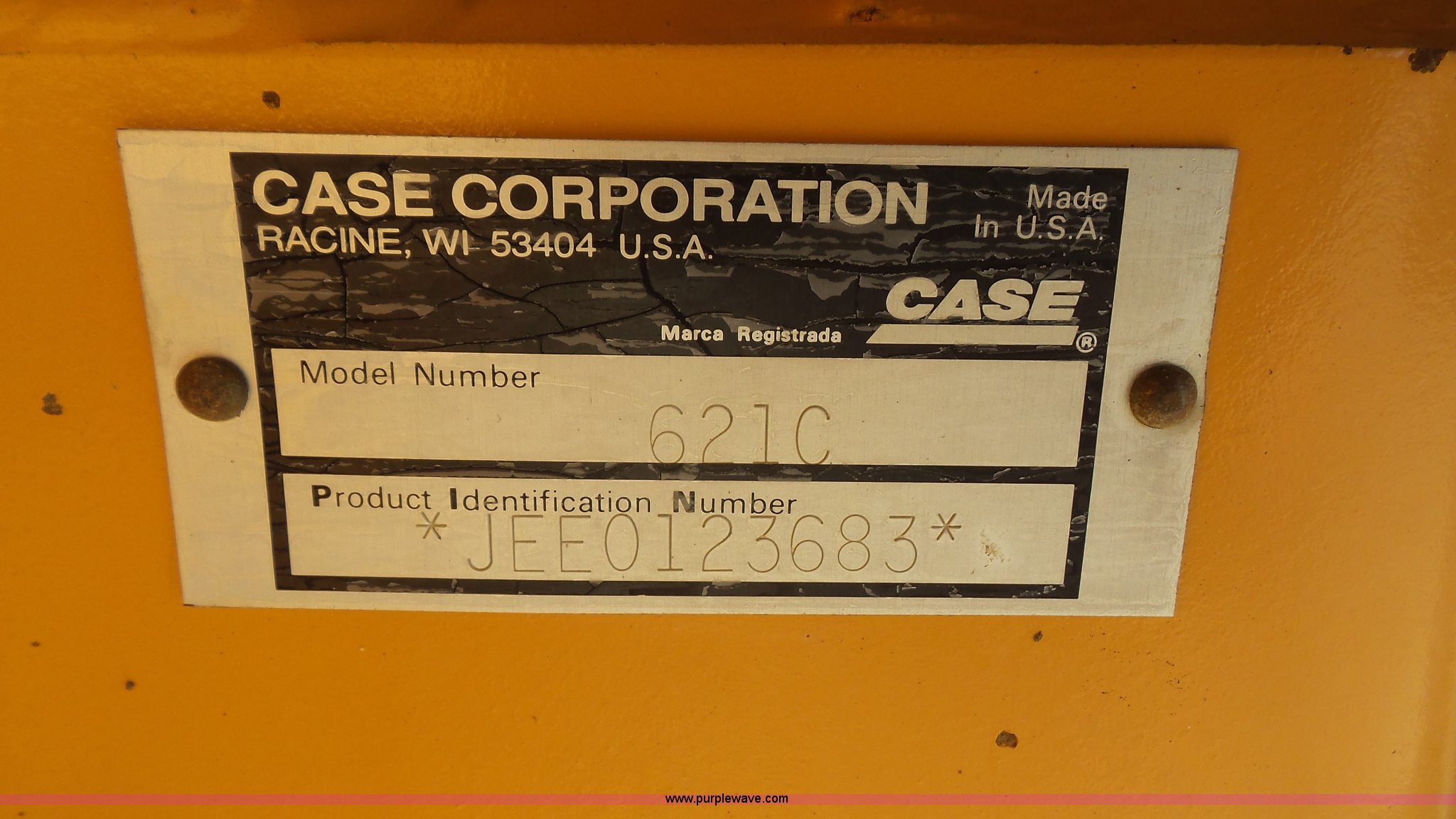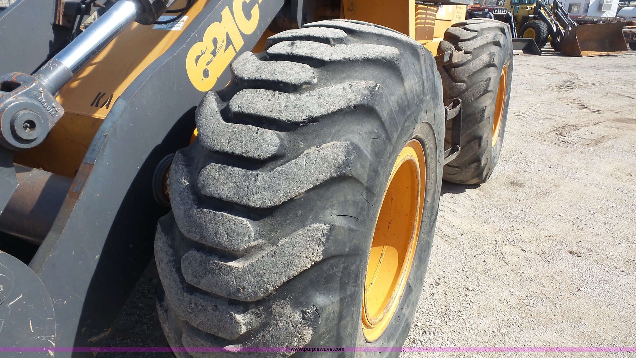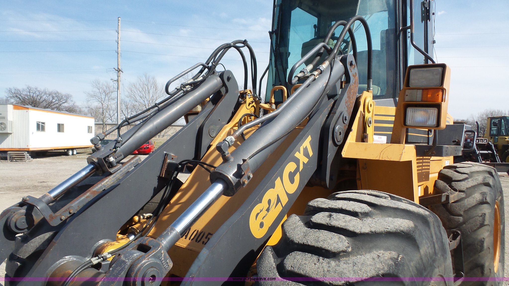 Purple Wave is selling a used Wheel Loader in Kansas. This item is a 2000 Case 621C wheel loader with the following: 8,800 hours on meter, Case 359/5.9 six cylinder diesel engine, 130 HP, Powershift transmission, 4F-3R gears, EROPS, Serial JFF0129008, AC and heat, Tilt steering wheel, Suspension seat, Joystick bucket controls, Wipers, Front and rear work lights, General purpose bucket, JRB hydraulic quick coupler, Counterweights, 20.5-25 tires, 26,714 lbs. base operating weight, Serial JEE0123683