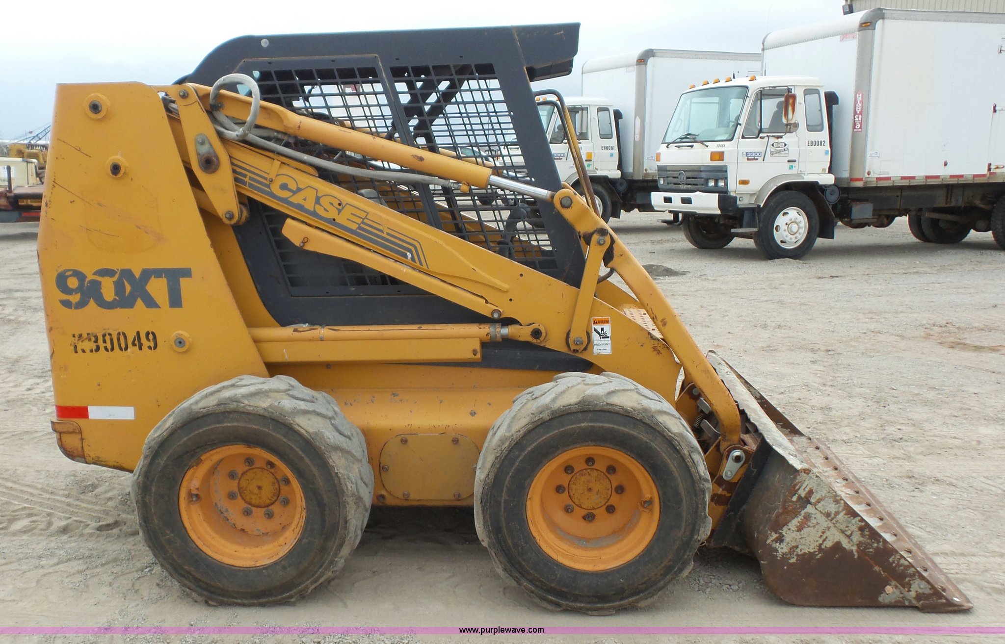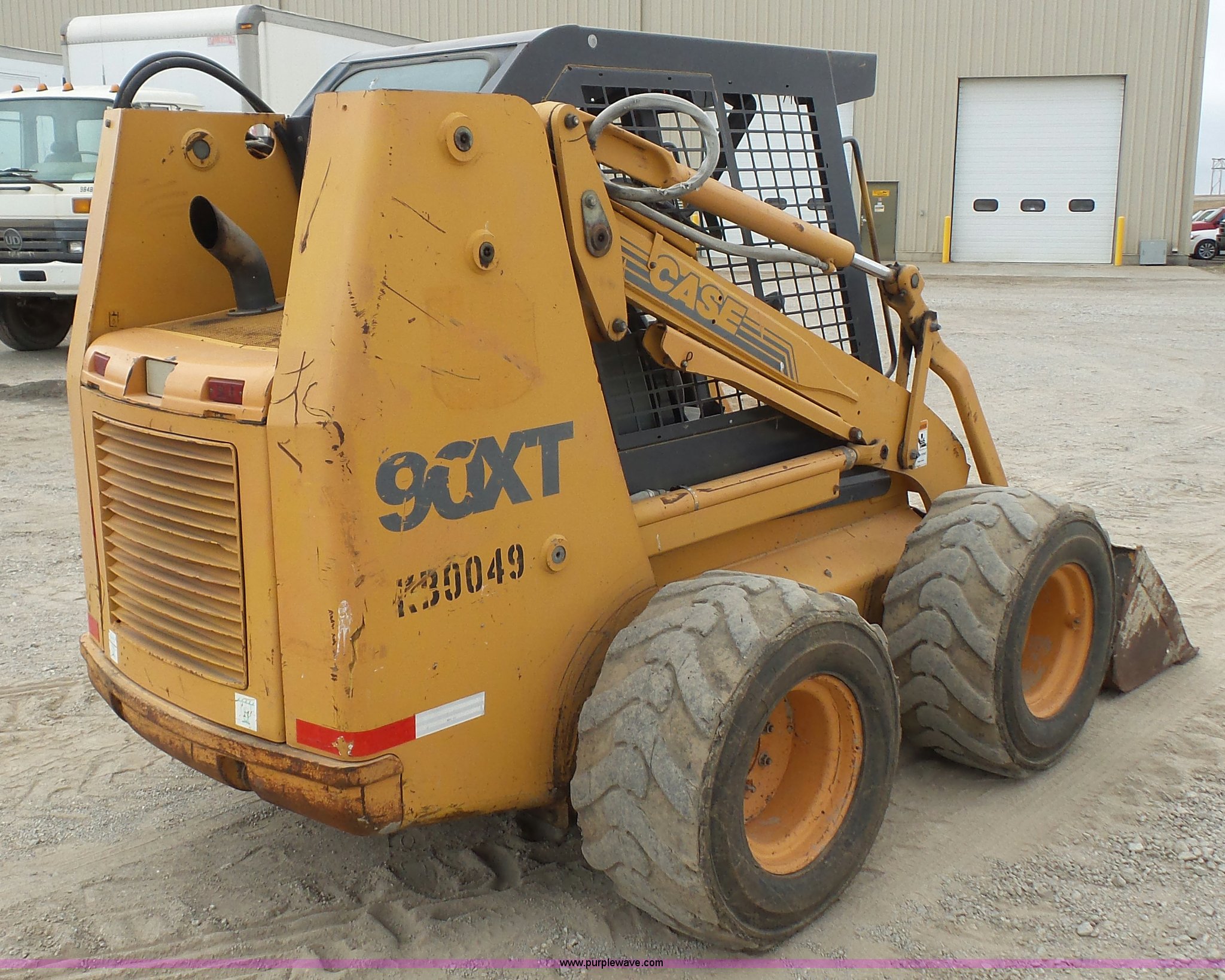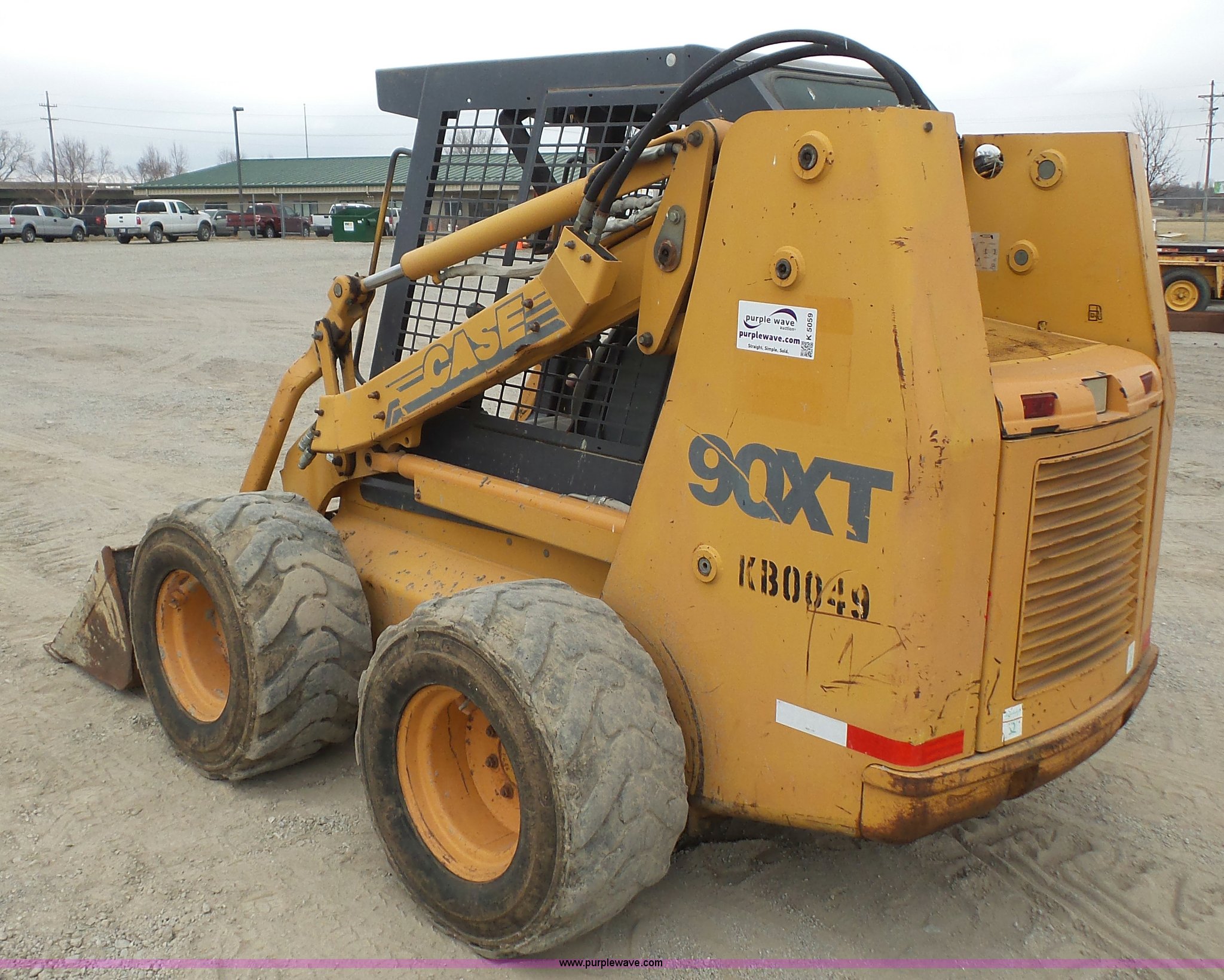 Purple Wave is selling a used Skid Steer Loader in Kansas. This item is a Case 90XT skid steer with the following: 5,184 hours on meter, Case 4T-390 3.9L four cylinder diesel engine, 85 HP, Hydrostatic transmission, Open station/canopy, Joystick controls, Spring suspension seat, 72"W bucket, Bolt-on cutting edge, Auxiliary hydraulics, 33 x 15.50-16.5 tires, 8,950 lbs. base operating weight, Serial JAF0245828