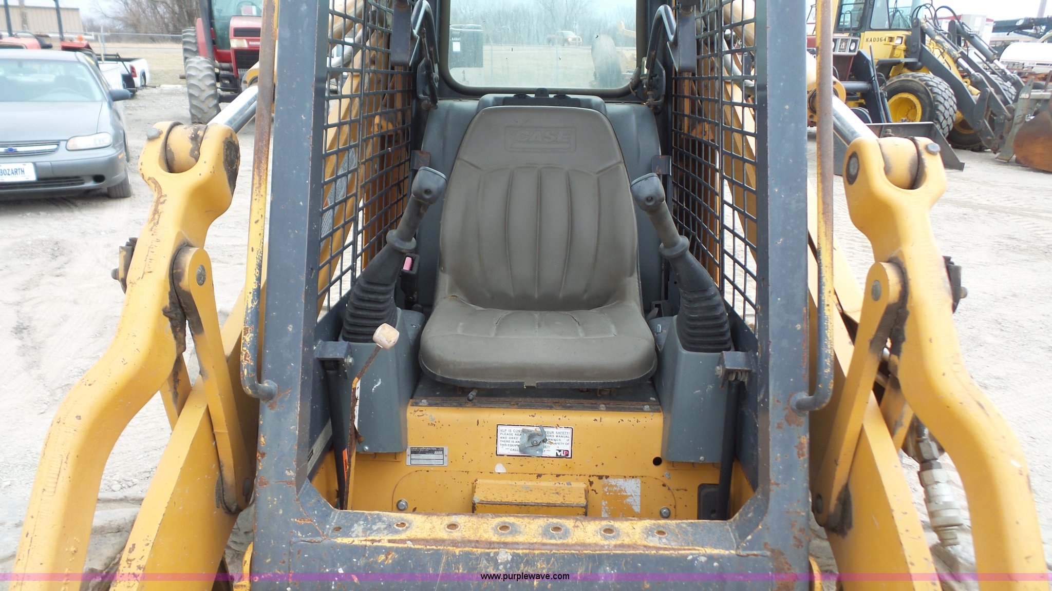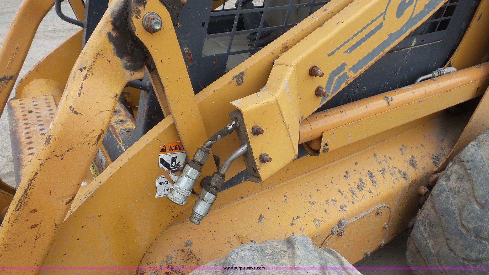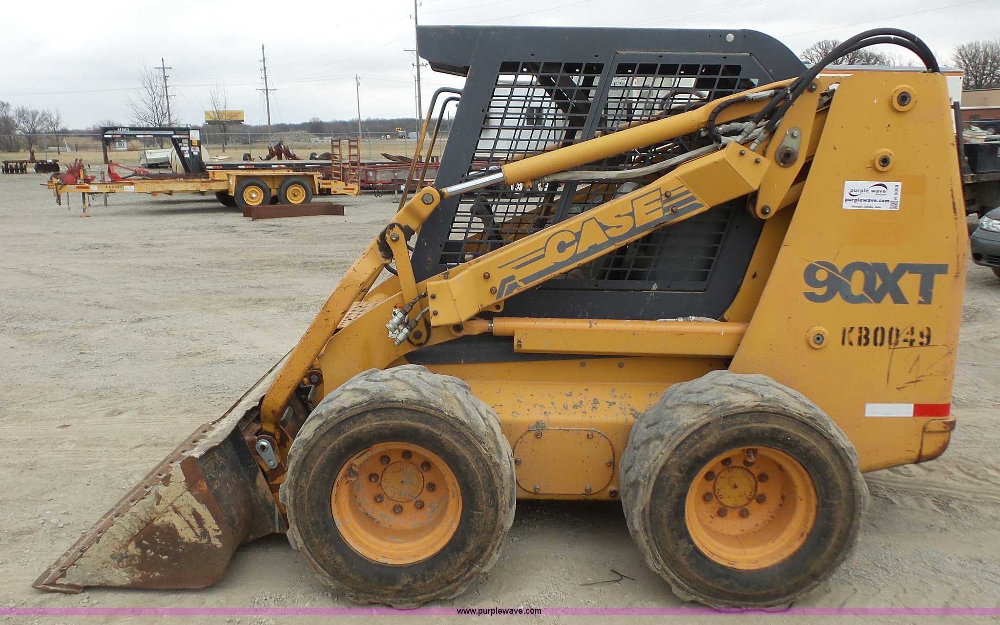 Purple Wave is selling a used Skid Steer Loader in Kansas. This item is a Case 90XT skid steer with the following: 5,184 hours on meter, Case 4T-390 3.9L four cylinder diesel engine, 85 HP, Hydrostatic transmission, Open station/canopy, Joystick controls, Spring suspension seat, 72"W bucket, Bolt-on cutting edge, Auxiliary hydraulics, 33 x 15.50-16.5 tires, 8,950 lbs. base operating weight, Serial JAF0245828