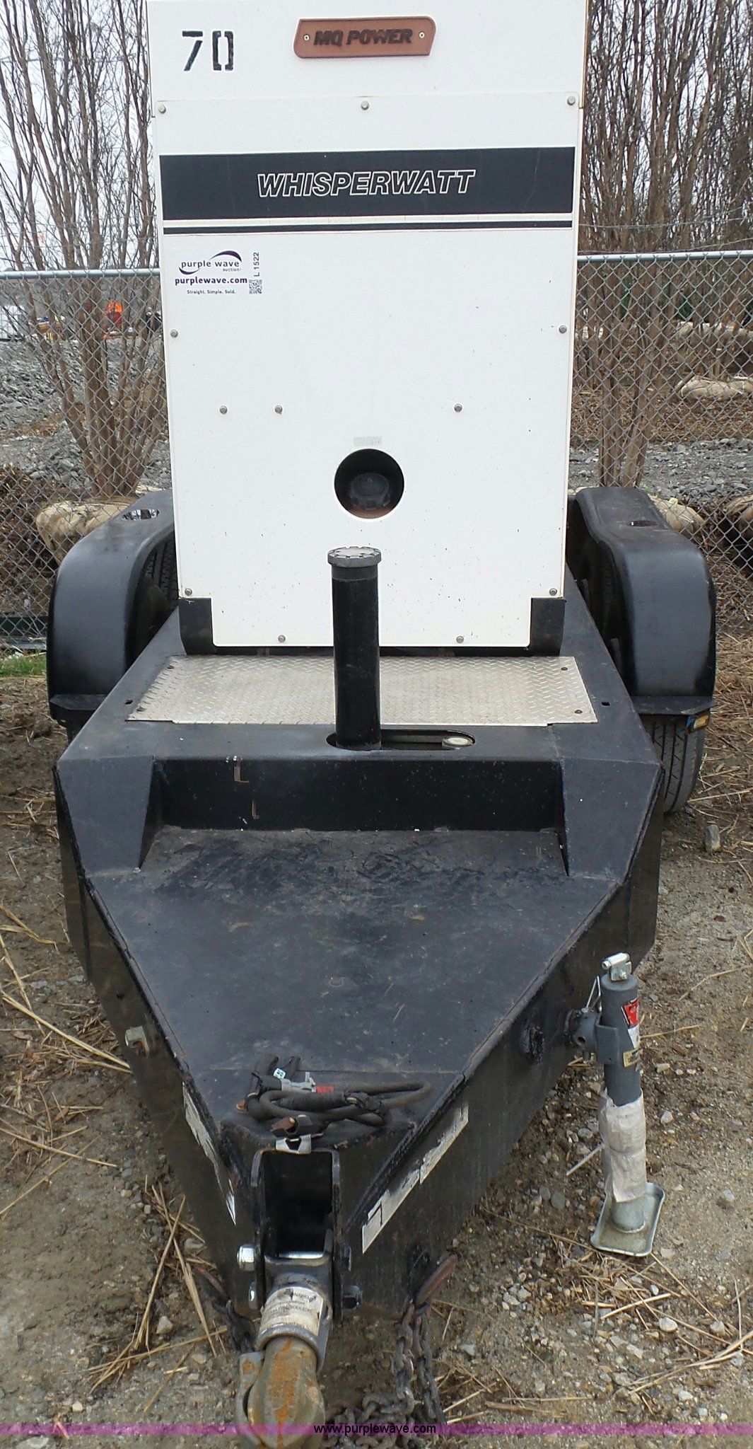 Purple Wave is selling a used Generator Set in Texas. This item is a Multiquip DCA70 generator with the following: John Deere 404STF275 4.5L four cylinder turbo diesel engine, 105 HP, 120/240V, Three phase, Denyo DB-0831J2 generator, Control panel, Electric start, 70 kVA, Single and three phase, MQ trailer, 300 gallon fuel capacity, 2 5/16" ball hitch, ST225/75R15 tires, Serial 7304145, Unit# 100987