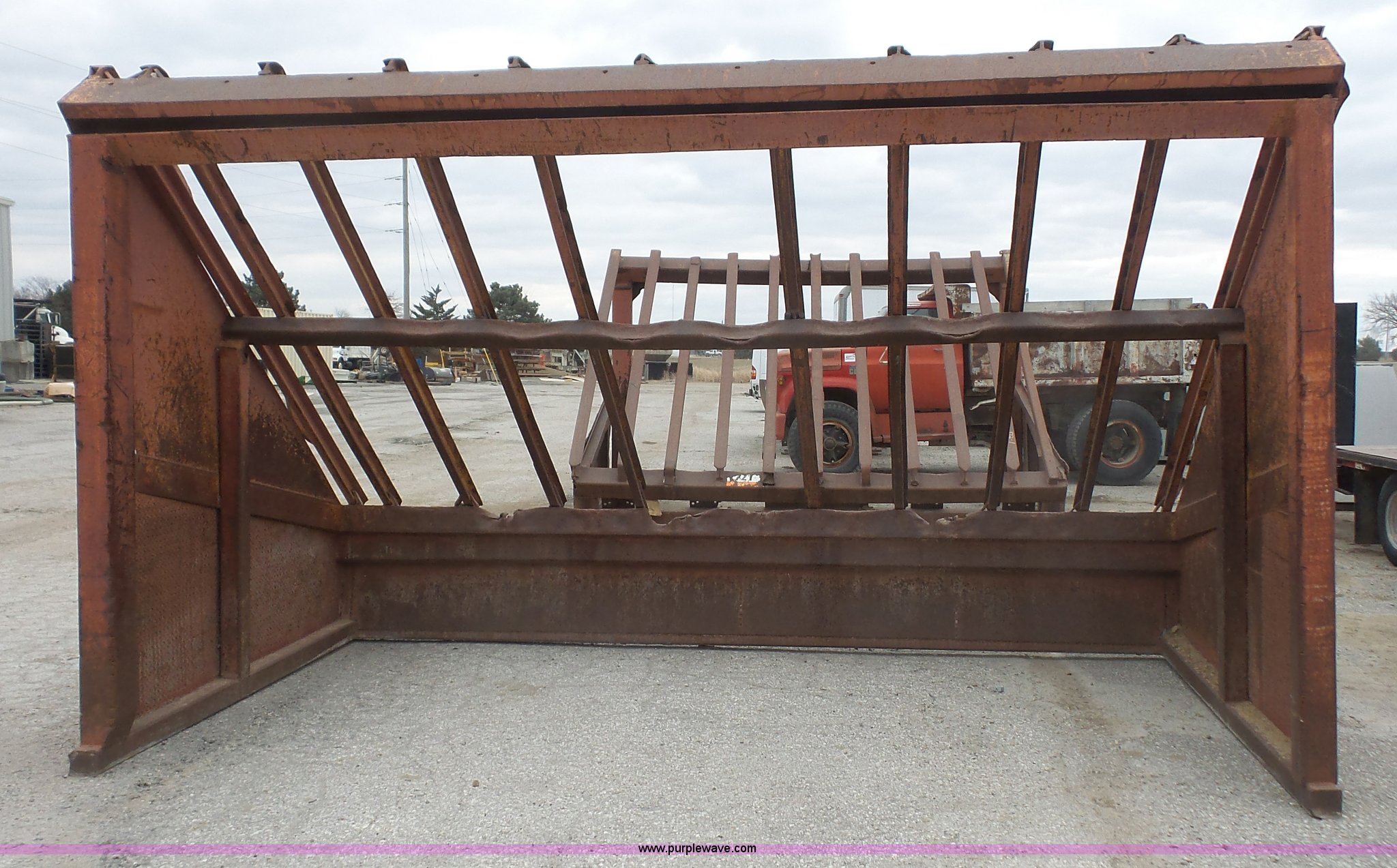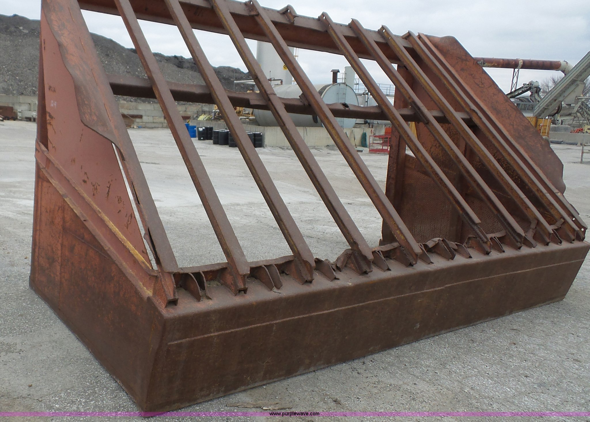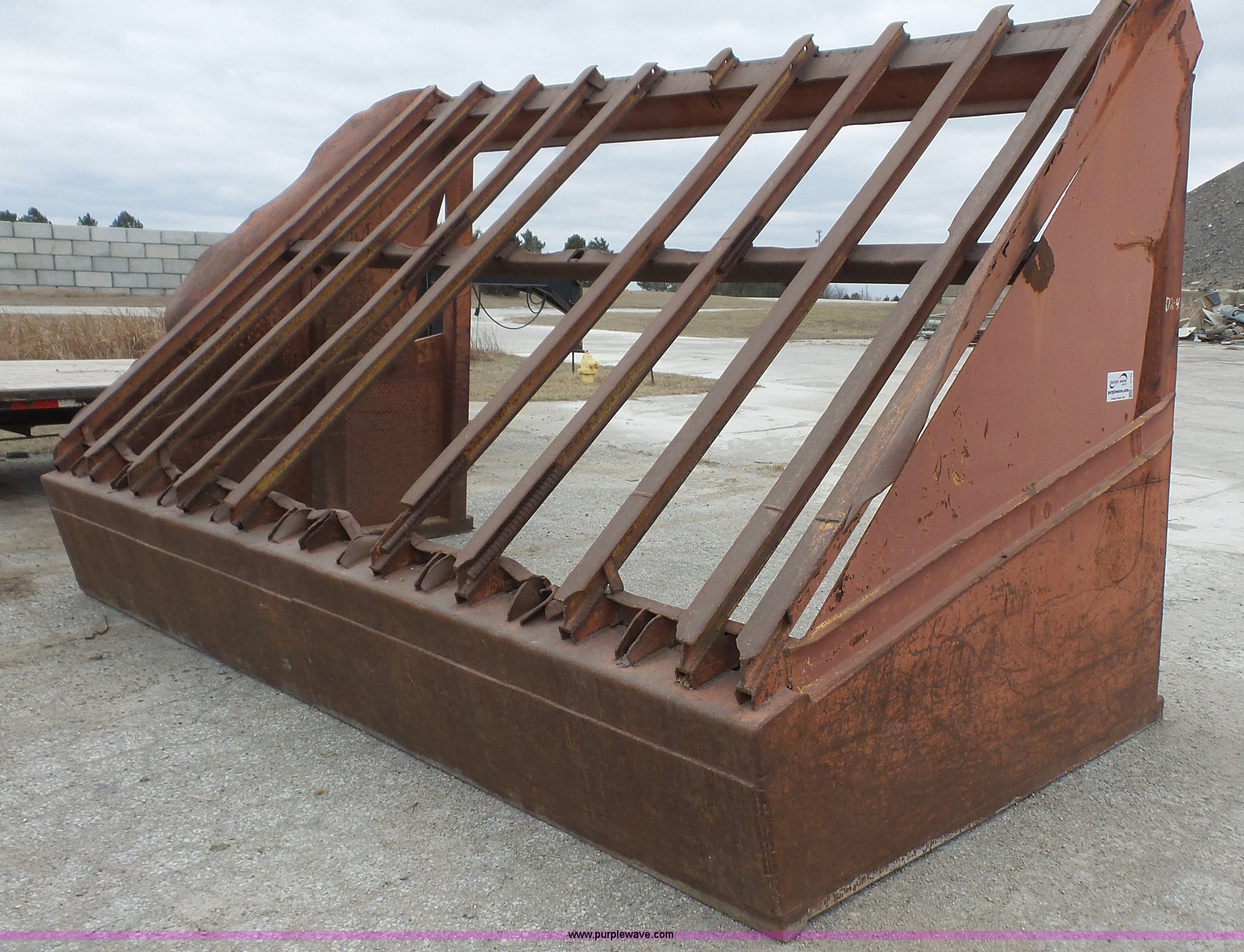 Grizzly screen. 15.5'W x 8'D x 9'H, 15" bar spacing, One bar missing. RD Johnson Excavating. 1705 N 1399 Rd. Lawrence, KS 66046
