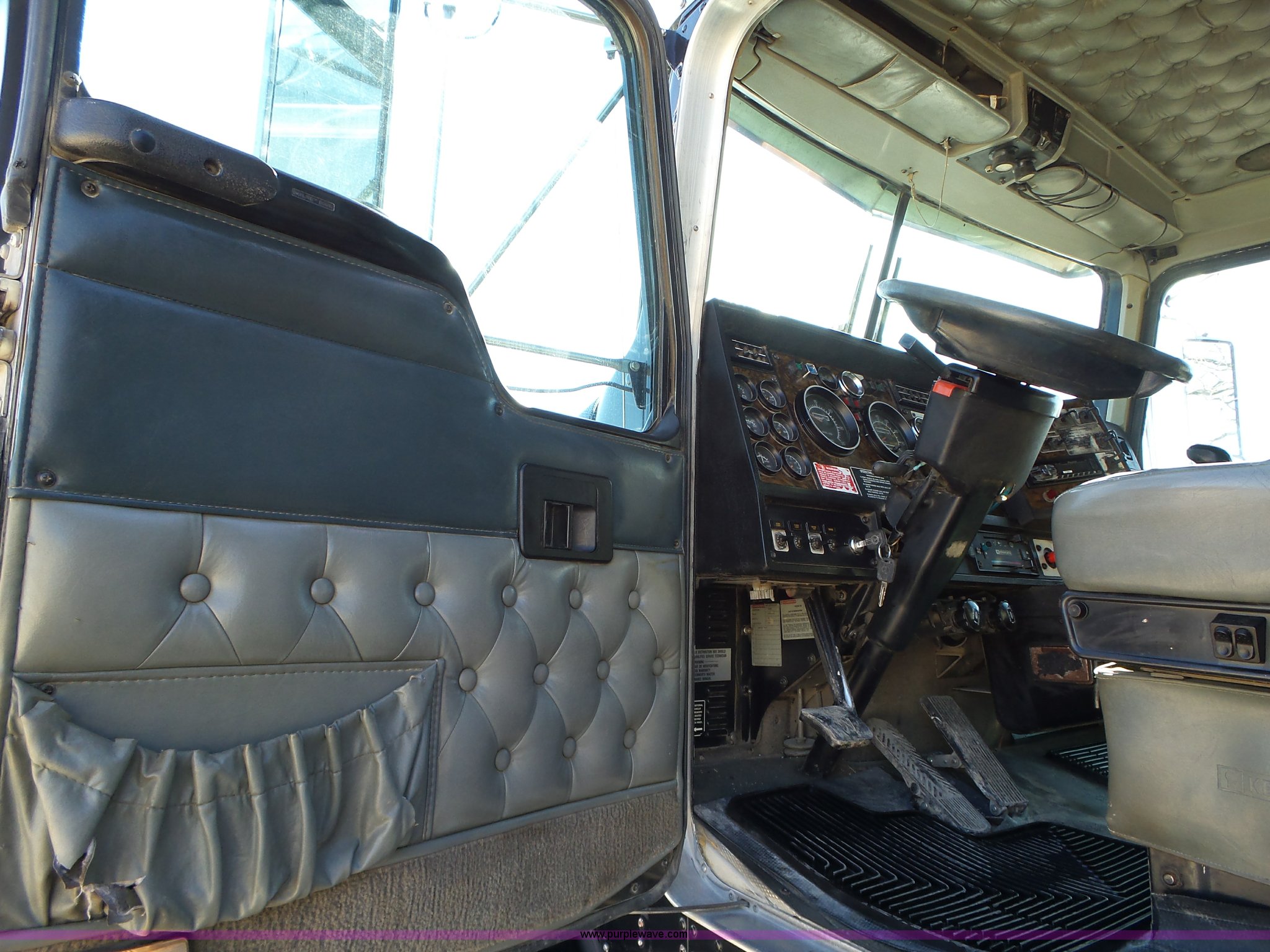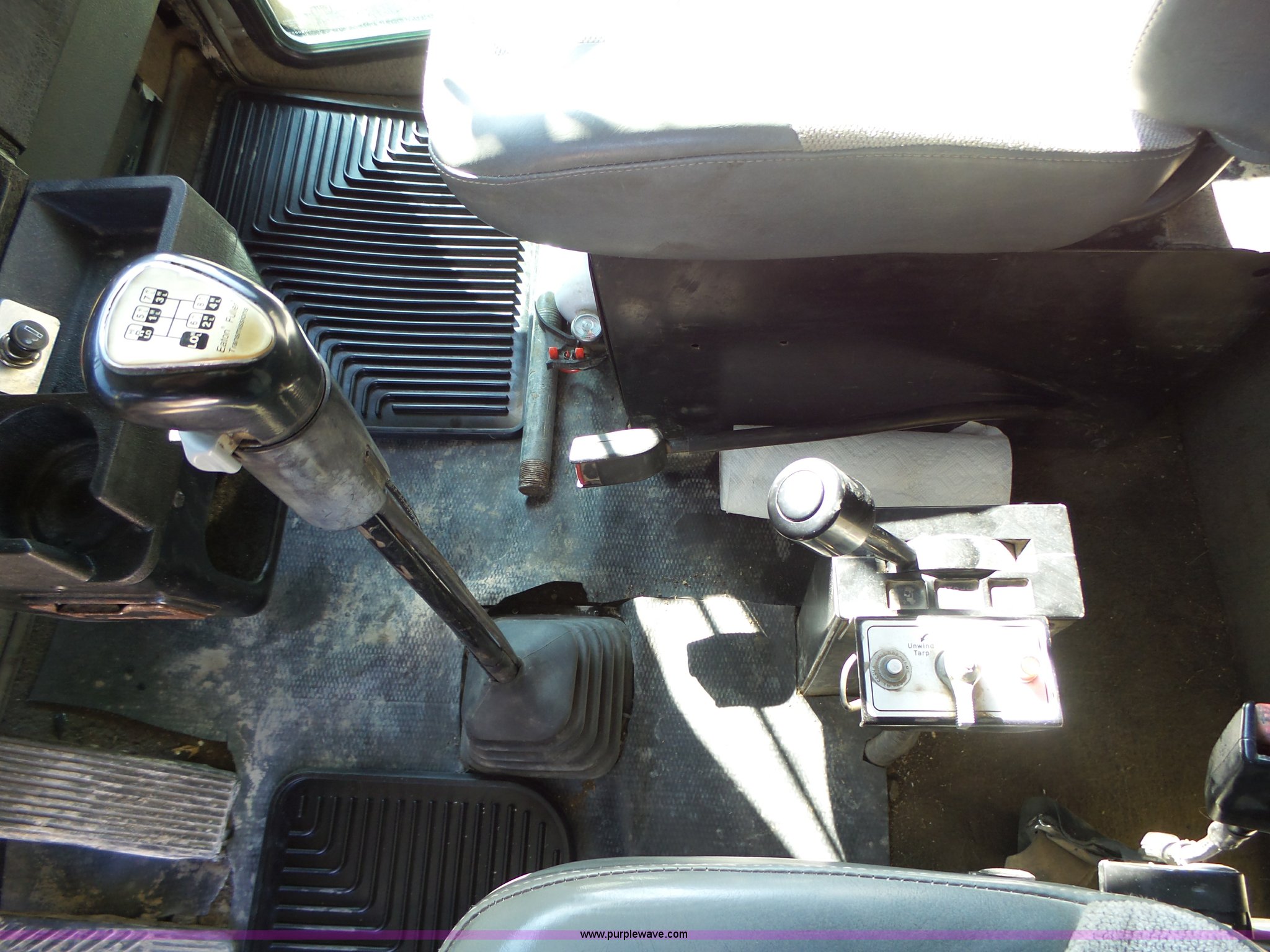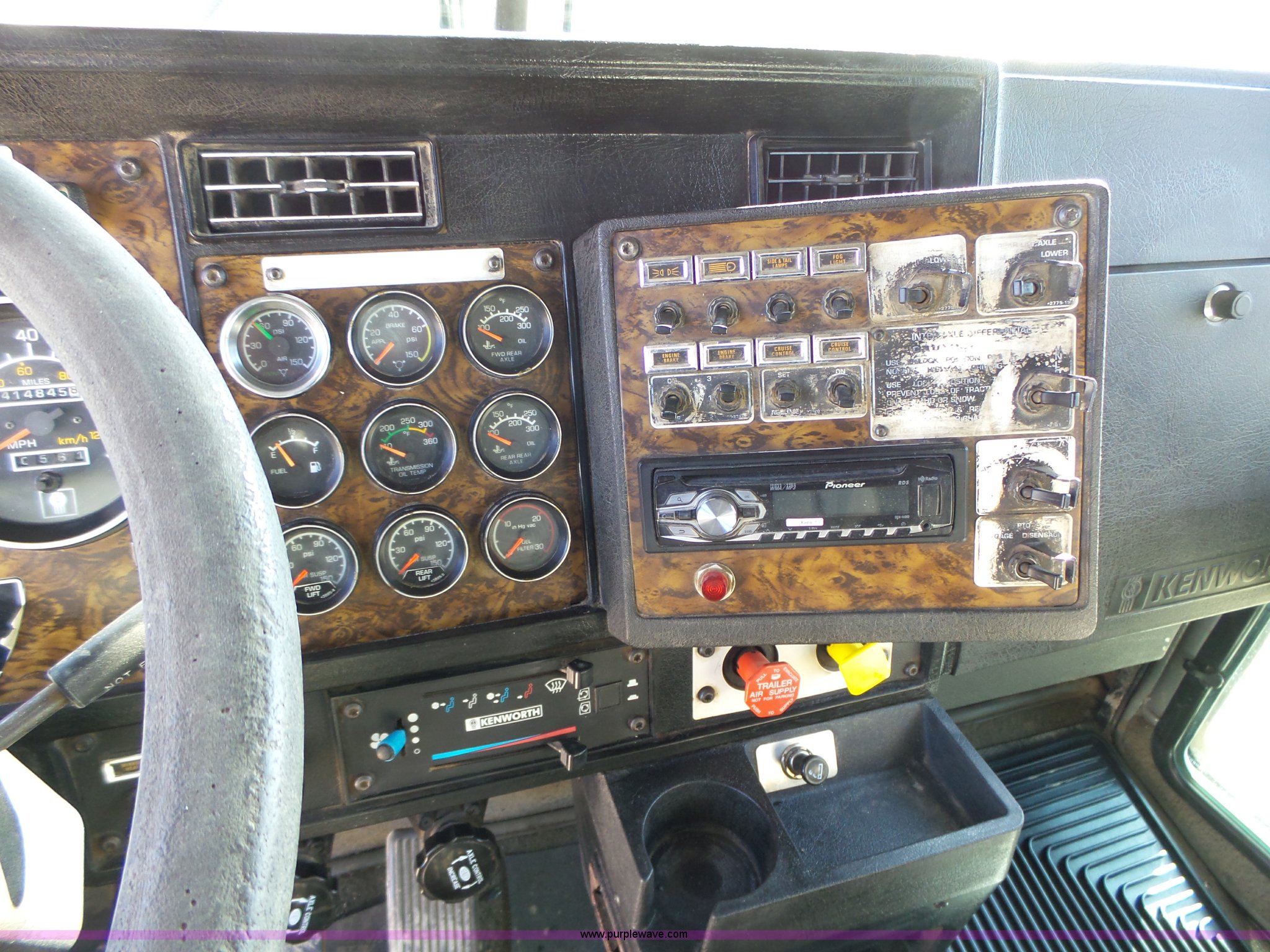 Purple Wave is selling a used Construction Dump Truck in Iowa. This item is a 1998 Kenworth T800 dump truck with the following: 414,845 miles on odometer, 19,092 hours on meter, Caterpillar 3406 14.6L L6 turbo diesel engine, 475 HP, Block heater, Eaton Fuller 18 speed manual transmission, Quad axle, Inter-axle differential lock, AC and heat, Tilt, Cruise, AM/FM/CD, Heated mirrors, Exterior visor, PTO, Heil steel dump bed, 18'L x 96"W, 18 cubic yard capacity, 44" side height, 12" side board height, Single ram hoist, Air operated end gate, Single fuel tank, Steerable pusher axle, Air to rear of frame, 240" wheelbase, Walking beam suspension, Air brakes, Engine brake, 315/85R22.5 front tires, 295/75R22.5 pusher axle tires, 11R22.5 rear tires, GVWR 89,000 lbs, FAWR 20,000 lbs, RAWR 20,000 lbs, GAWR 12,000 lbs pusher axle