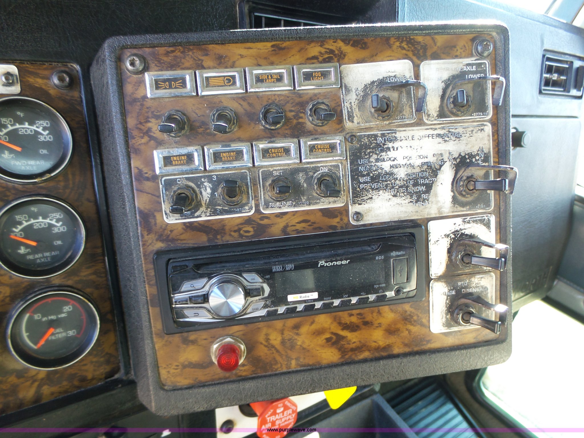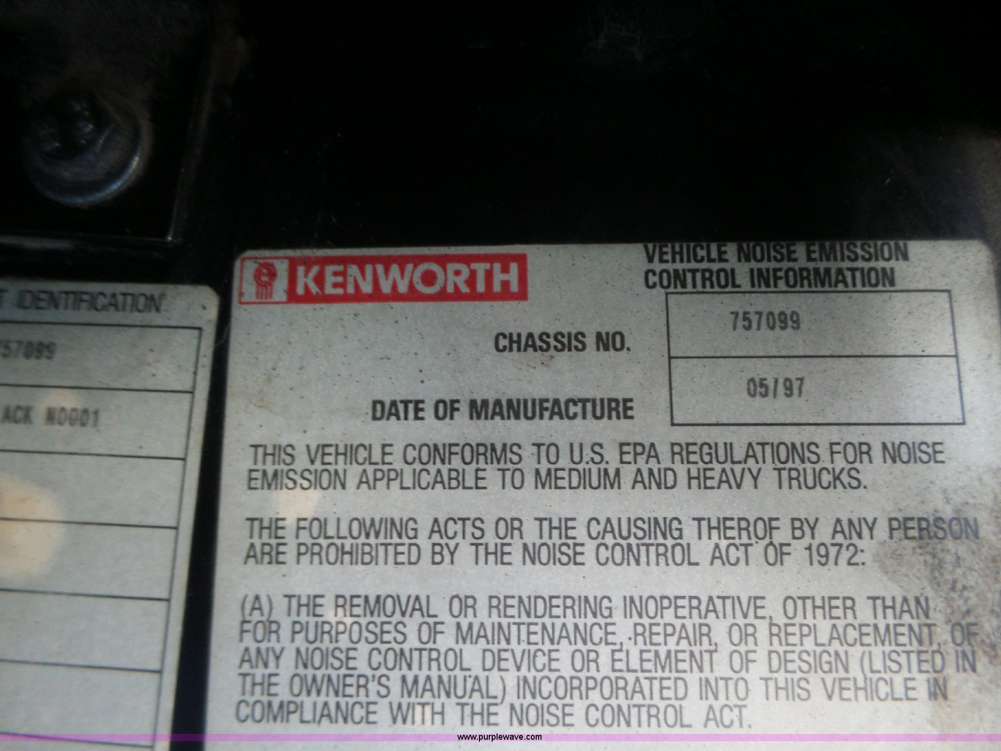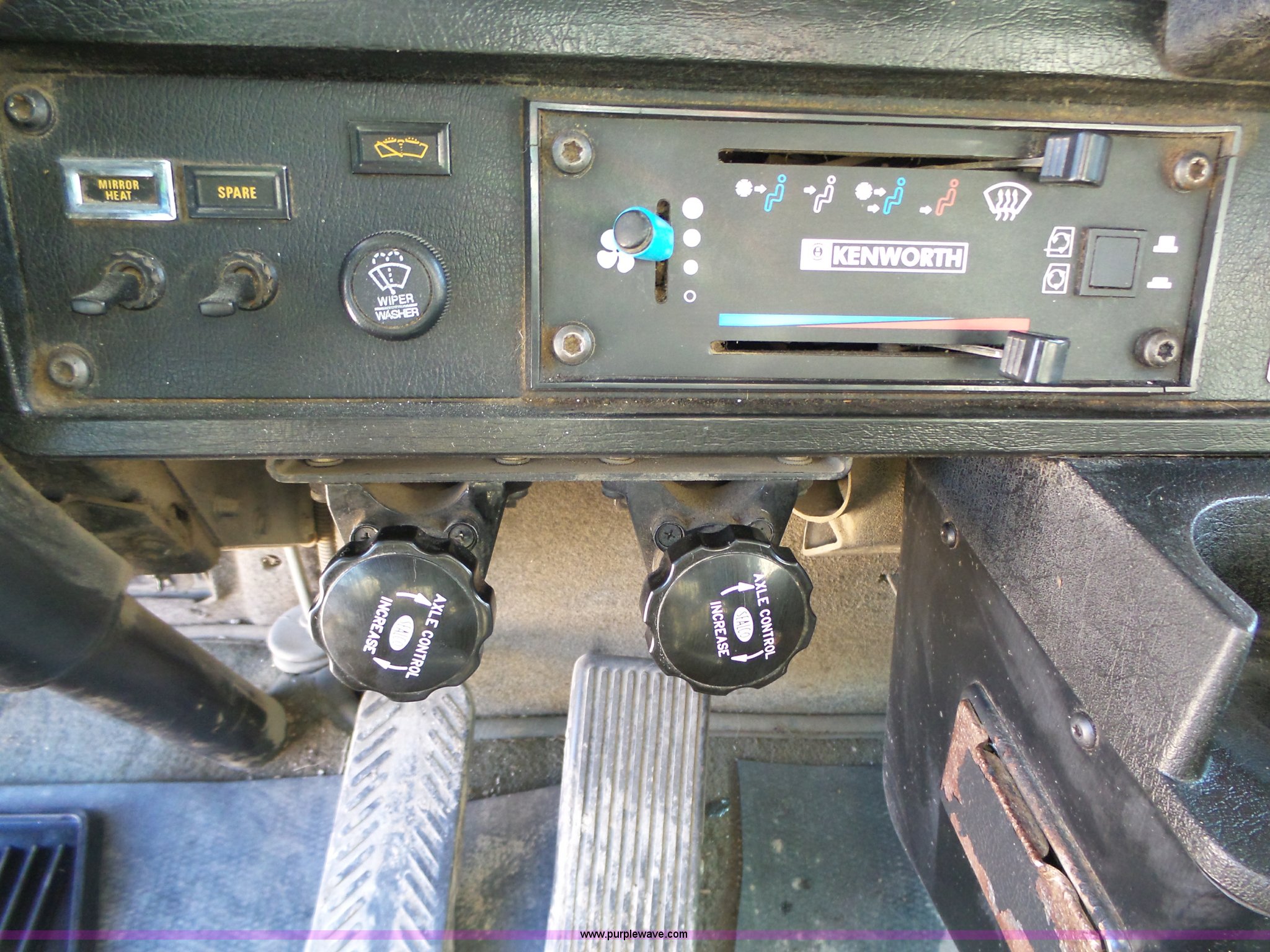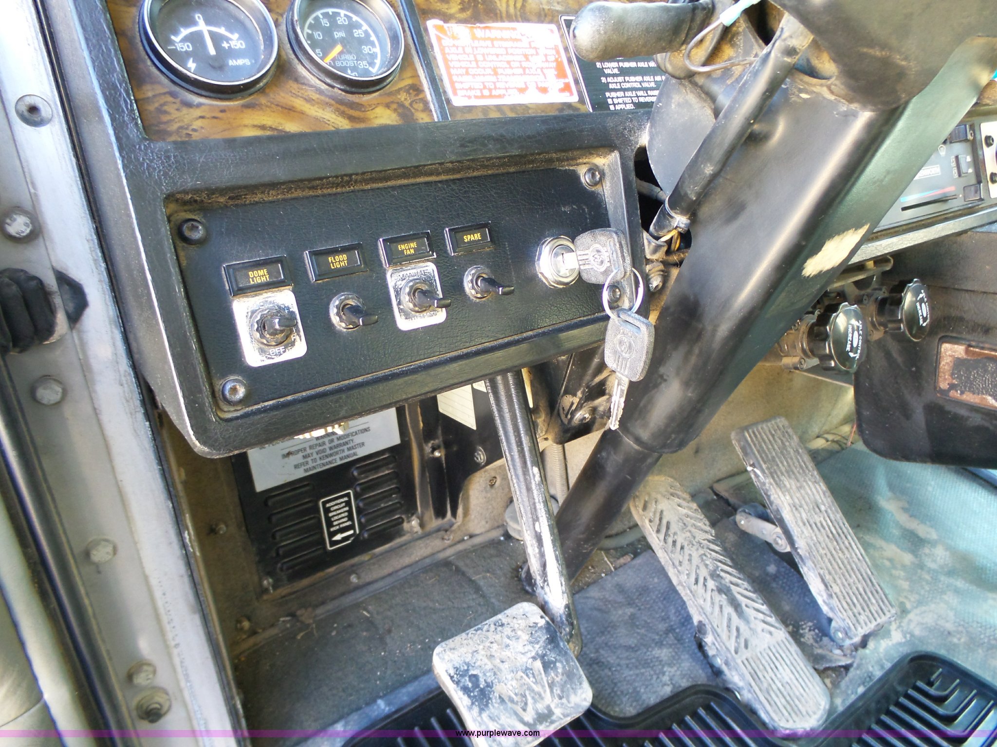 Purple Wave is selling a used Construction Dump Truck in Iowa. This item is a 1998 Kenworth T800 dump truck with the following: 414,845 miles on odometer, 19,092 hours on meter, Caterpillar 3406 14.6L L6 turbo diesel engine, 475 HP, Block heater, Eaton Fuller 18 speed manual transmission, Quad axle, Inter-axle differential lock, AC and heat, Tilt, Cruise, AM/FM/CD, Heated mirrors, Exterior visor, PTO, Heil steel dump bed, 18'L x 96"W, 18 cubic yard capacity, 44" side height, 12" side board height, Single ram hoist, Air operated end gate, Single fuel tank, Steerable pusher axle, Air to rear of frame, 240" wheelbase, Walking beam suspension, Air brakes, Engine brake, 315/85R22.5 front tires, 295/75R22.5 pusher axle tires, 11R22.5 rear tires, GVWR 89,000 lbs, FAWR 20,000 lbs, RAWR 20,000 lbs, GAWR 12,000 lbs pusher axle