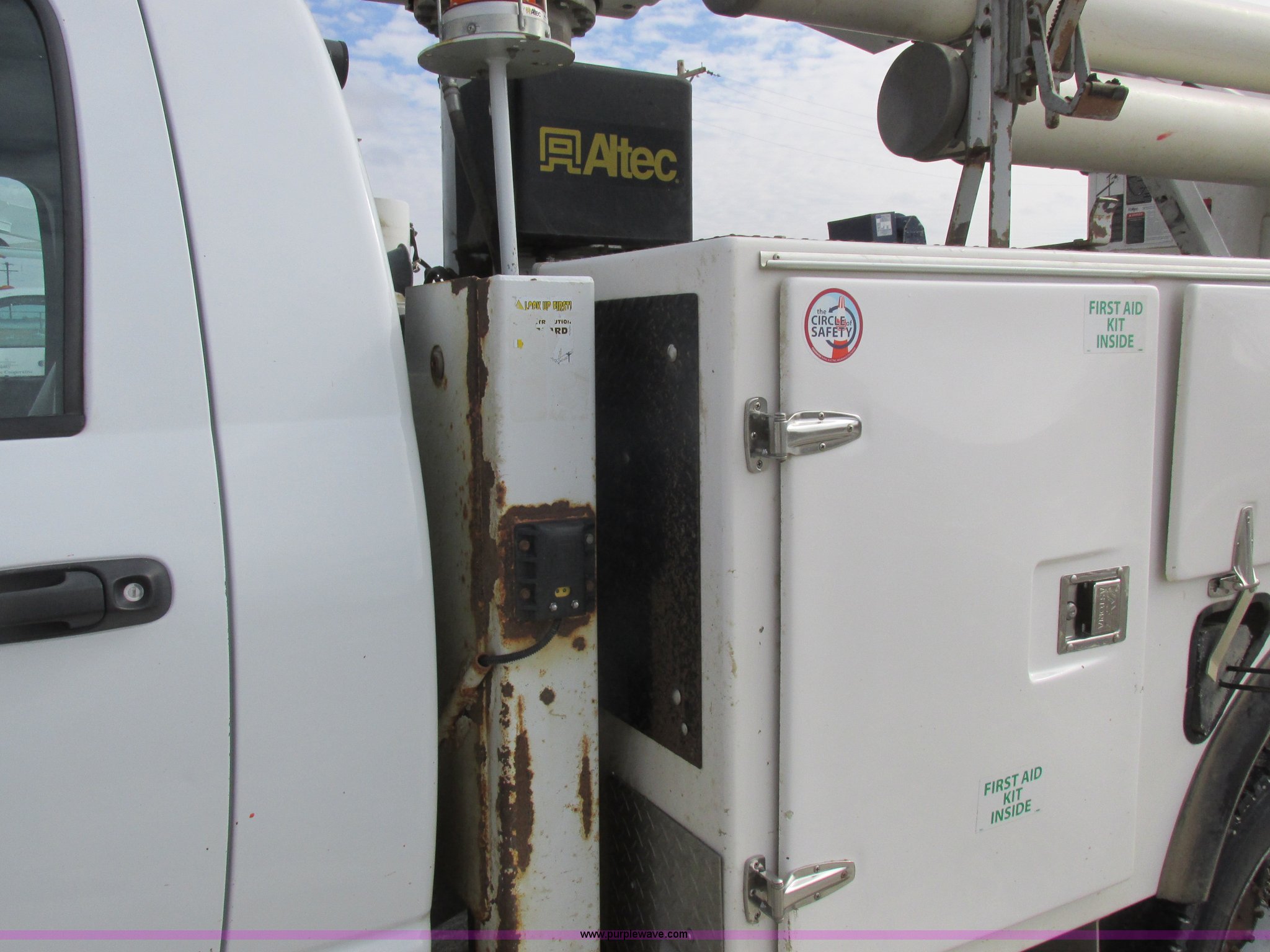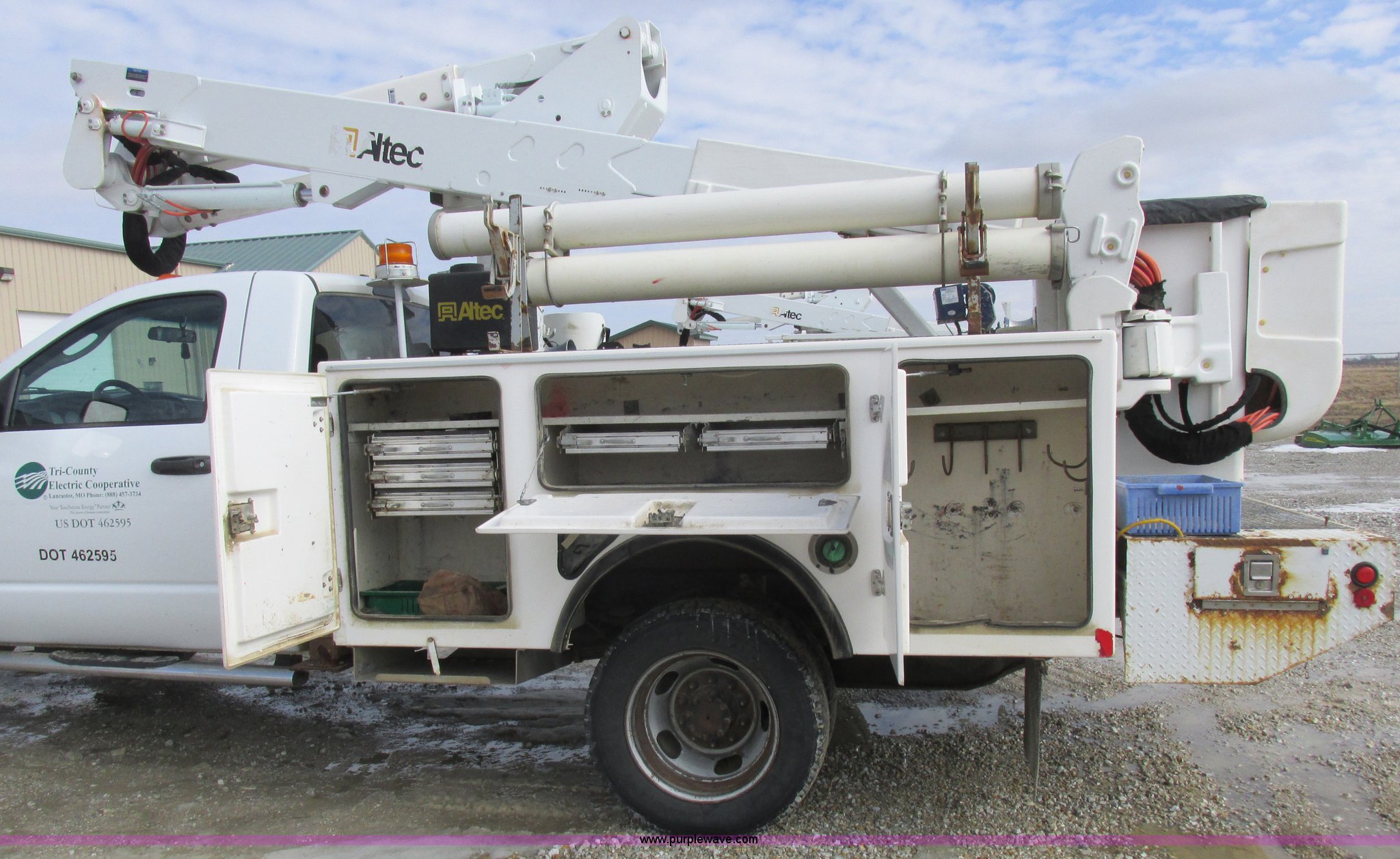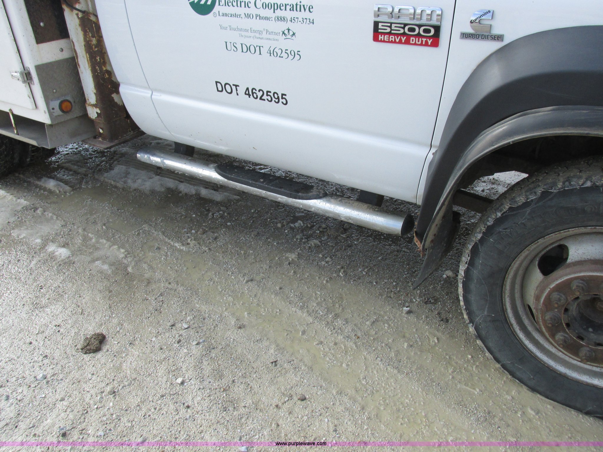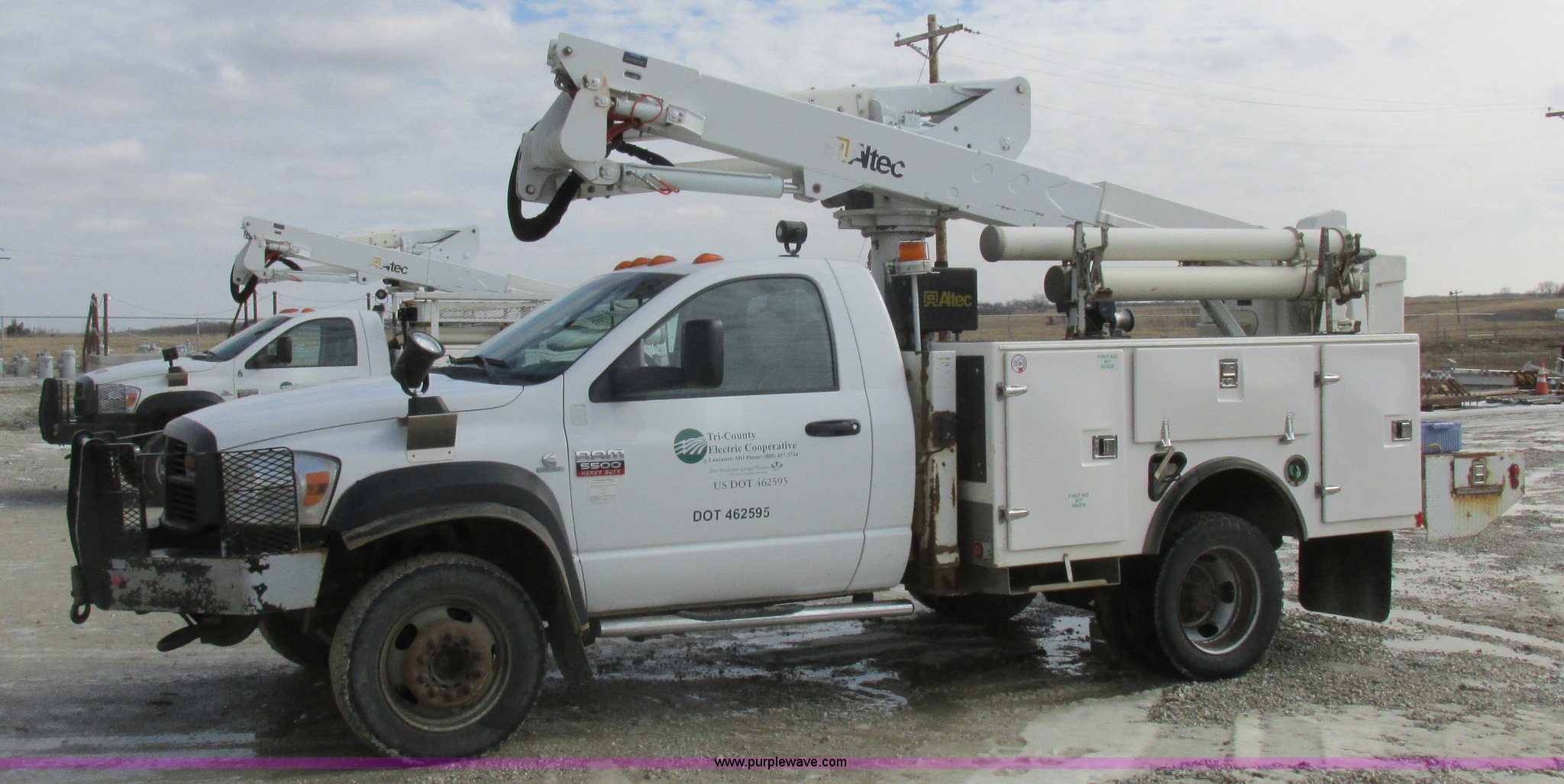 Purple Wave is selling a used Bucket Truck in Missouri. This item is a 2009 Dodge Ram 5500 bucket truck with the following: 180,112 miles on odometer, 10,783 hours on meter, Cummins 6.7L L6 turbo diesel engine, Automatic transmission, AC and heat, AM/FM, Spring suspension seat, Beacon light, Front tow hooks, PTO, Altec 11'L bed, Shelving, Slide out drawers, Serial 14598701, Pintle hitch, Trailer wiring, Altec AT37-G boom, Serial 0809DE11258, 400 lbs maximum lift capacity, 37' maximum lift height, Man basket, Ground and platform controls, Boom rotation, Articulating insulated telescopic boom, Outriggers, Warren winch, 15,000 lbs maximum capacity, My-te 30-12 hoist, 800 lbs maximum single line capacity, Serial E882189, Single fuel tank, Spring suspension, Hydraulic brakes, 225/70R19.5 tires, GVWR 18,750 lbs, View aerial device test report
