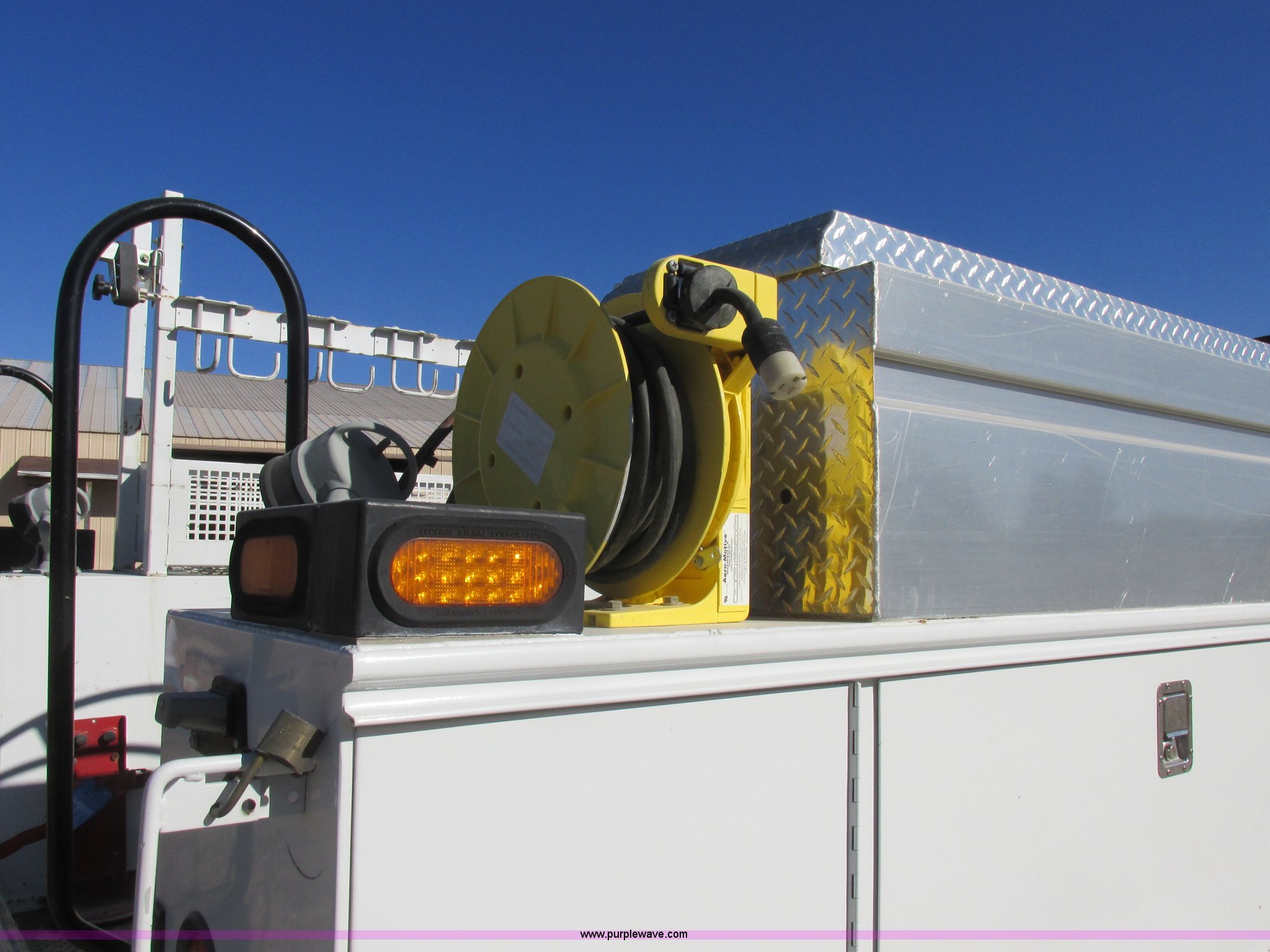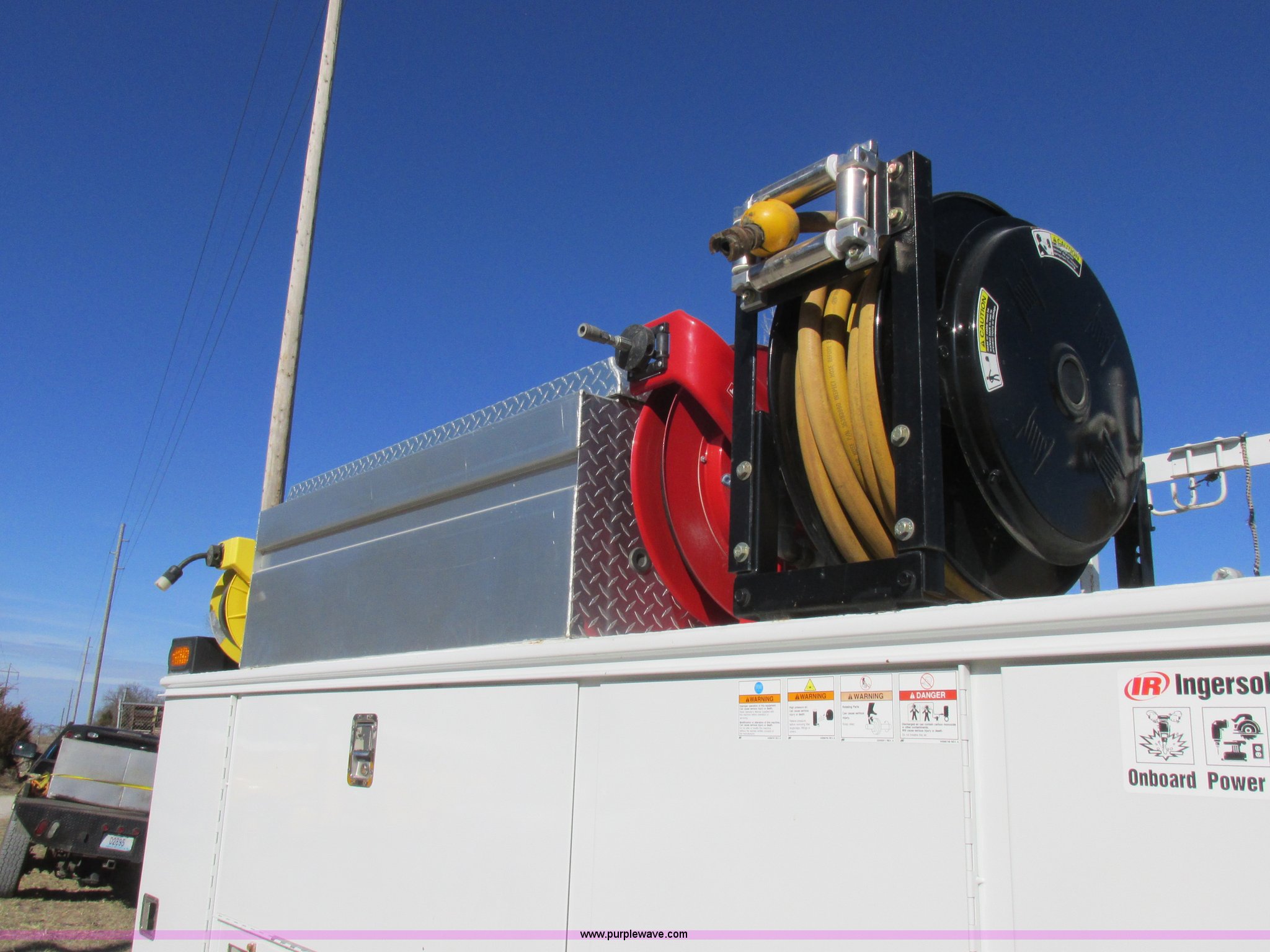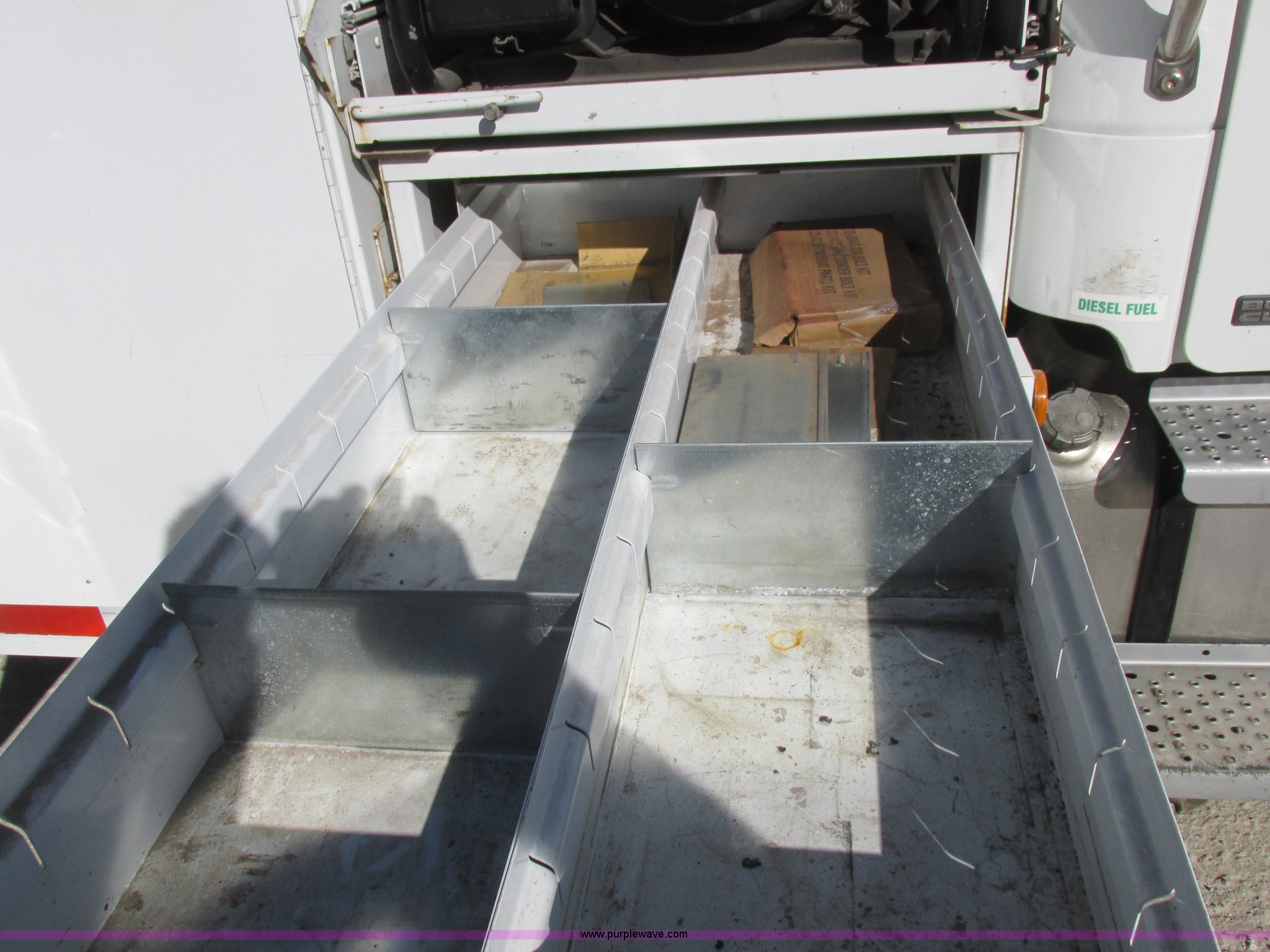 Purple Wave is selling a used Service Truck in Missouri. This item is a 2007 Freightliner Business Class M2 service truck with the following: 51,298 miles on odometer, Caterpillar C7 7.2L L6 turbo diesel engine, Automatic transmission, Single axle, AC and heat, AM/FM, Air suspension seat, Beacon light, Backup alarm, Front tow hooks, PTO, Knapheide 6133HC service bed, 13'L, Shelving, Slide out drawers, Utility rack, Compartment lights, Enclosed body, Work lights, Torch bottle racks, Weatherguard 654-0-01 toolbox, Serial 0707418871, Generator, Honda GX340 gas engine, 11 HP,, Ingersoll Rand air compressor, Model 376913UARA10, 104 hours on meter, Hannay hose reel, Pintle hitch, Trailer wiring, Air brakes, 11R22.5 tires, GVWR 29,000 lbs