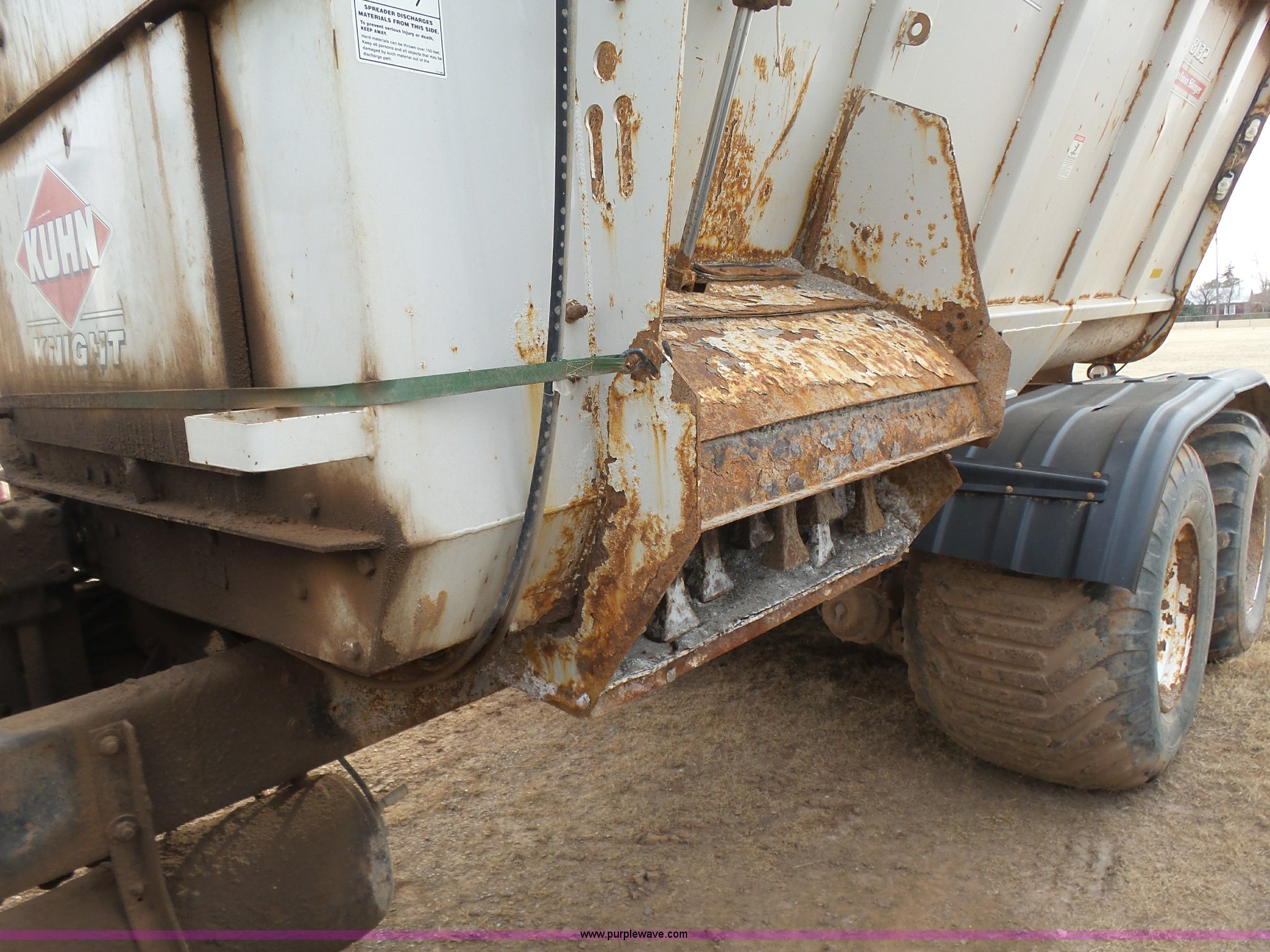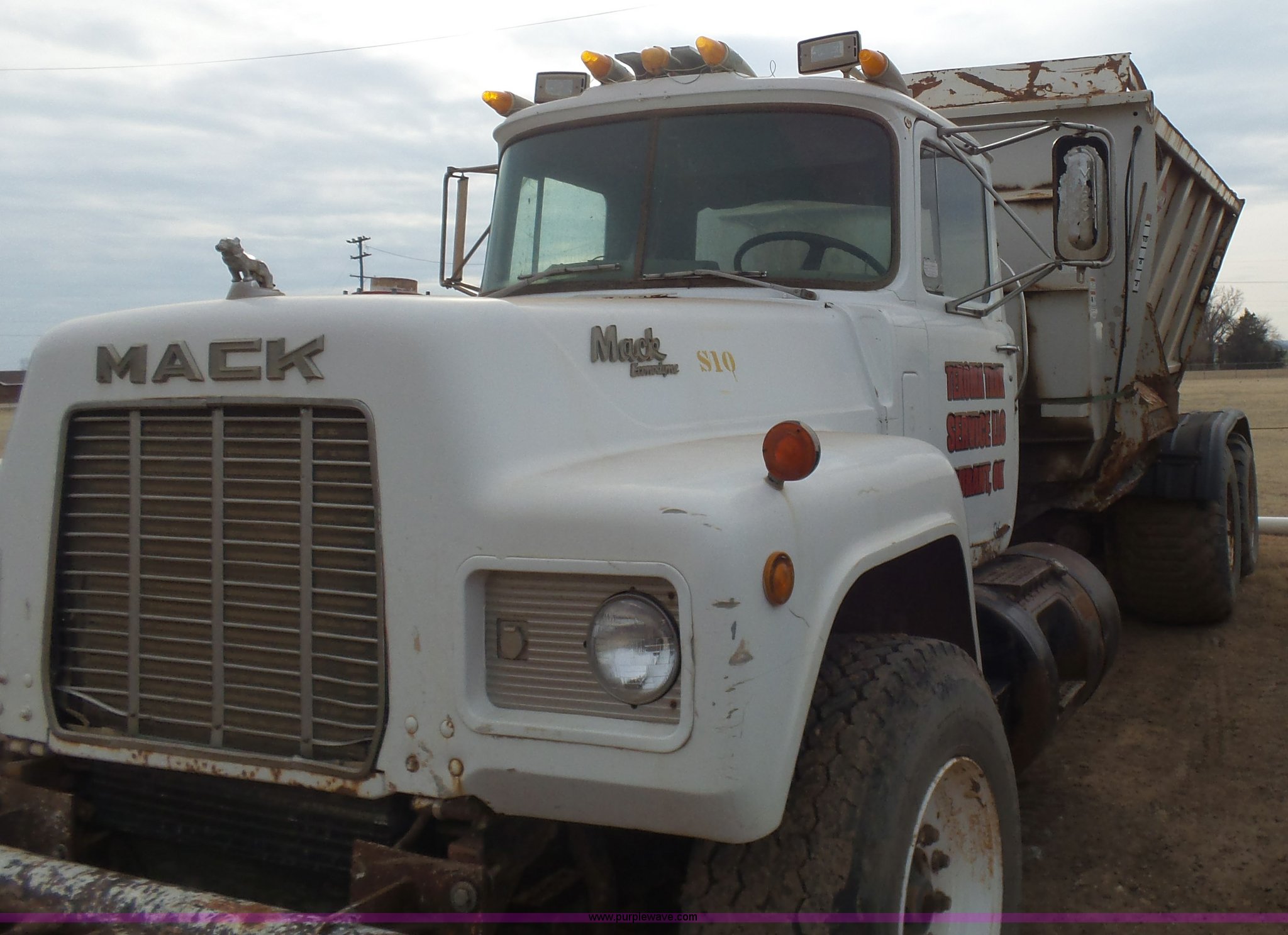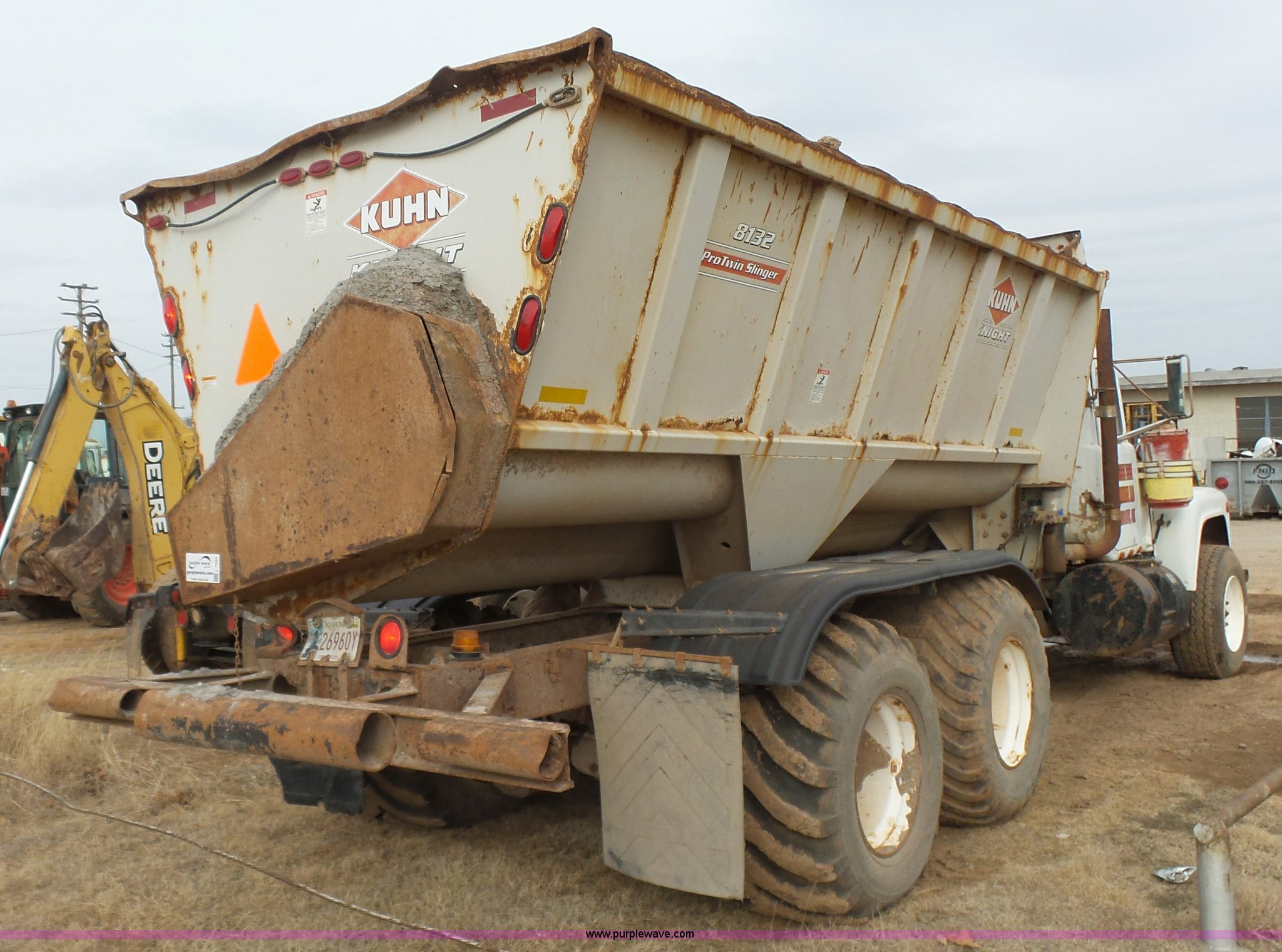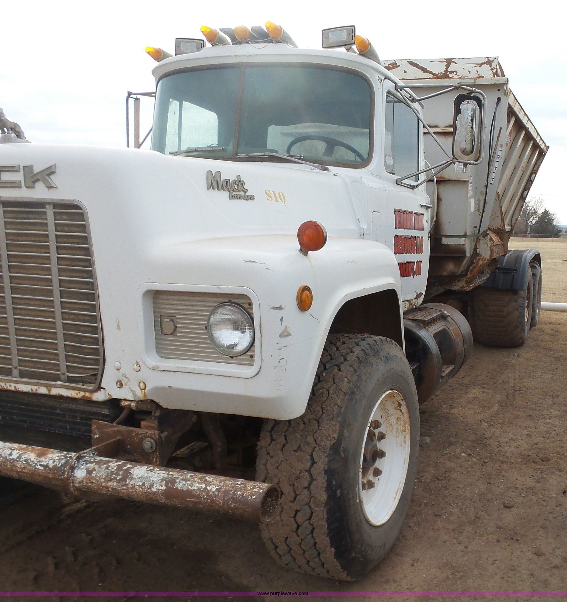 Purple Wave is selling a used Manure Spreader Truck in Oklahoma. This item is a 1986 Mack R688ST manure spreader truck with the following: 424,226 miles on odometer, 5,285 hours on meter, Diesel engine, Manual transmission, Tandem axle, Heat, Air suspension seat, PTO, Kuhn Knight Protwin 813 slinger bed, Single rear exhaust stack, Single fuel tank, Spring suspension, Air brakes, 395/85R22.5 front tires, 700/40-22.5 rear tires
