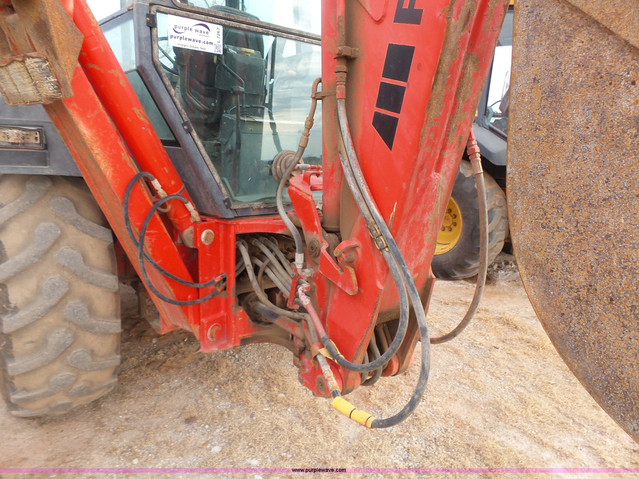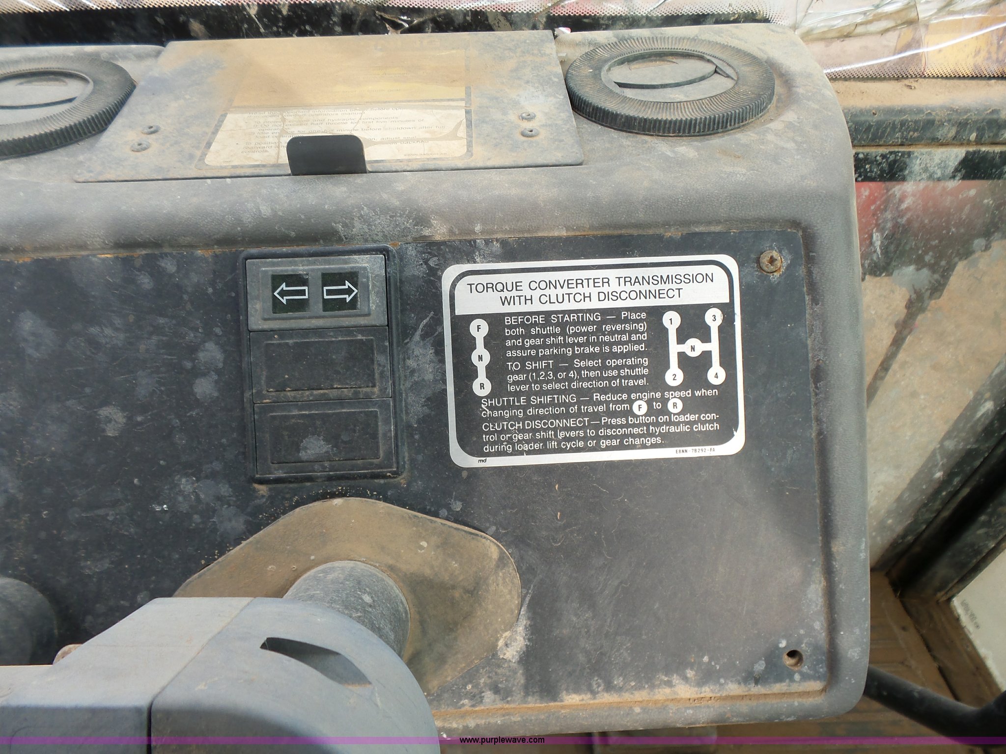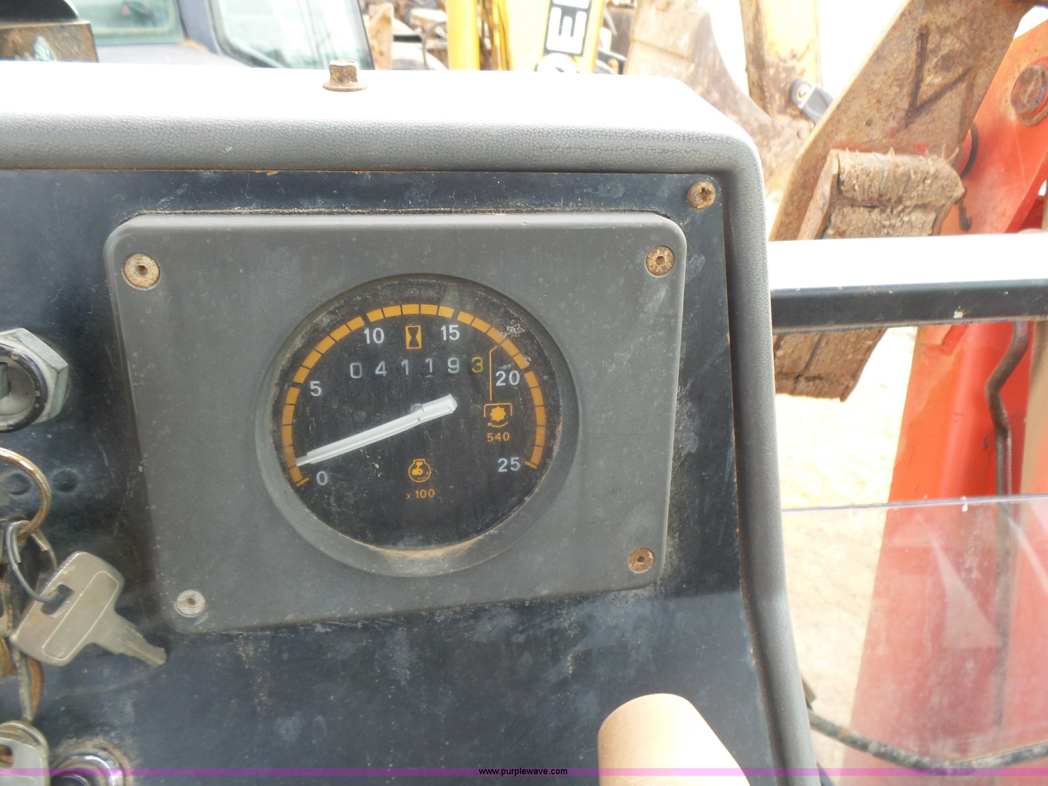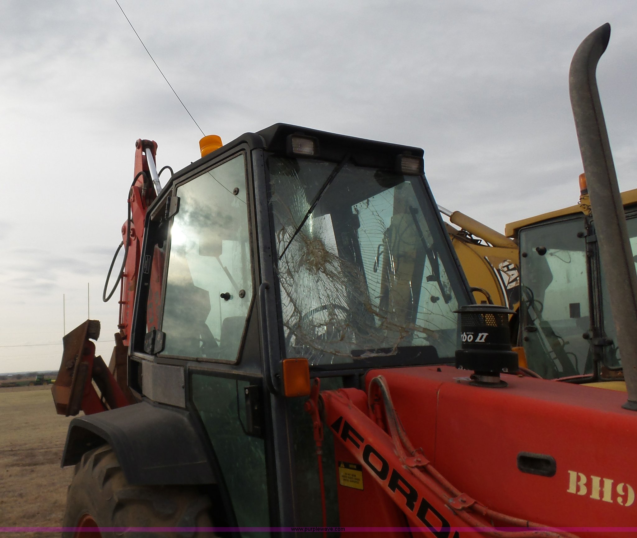 Purple Wave is selling a used Tractor Loader Backhoe in Oklahoma. This item is a Ford 555D backhoe with the following: 4,119 hours on meter, Diesel engine, Shuttle shift transmission, 4F-4R gears, EROPS, Wobble stick backhoe controls, Front and rear work lights, 88"W loader bucket, E-stick, 23"W backhoe bucket, (4) teeth, Auxiliary hydraulics, 11L-16SL front tires, 16.9-28 rear tires, Interior/exterior cosmetic damage, Serial A437046
