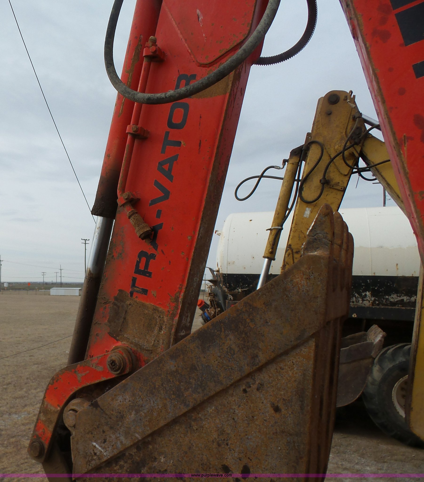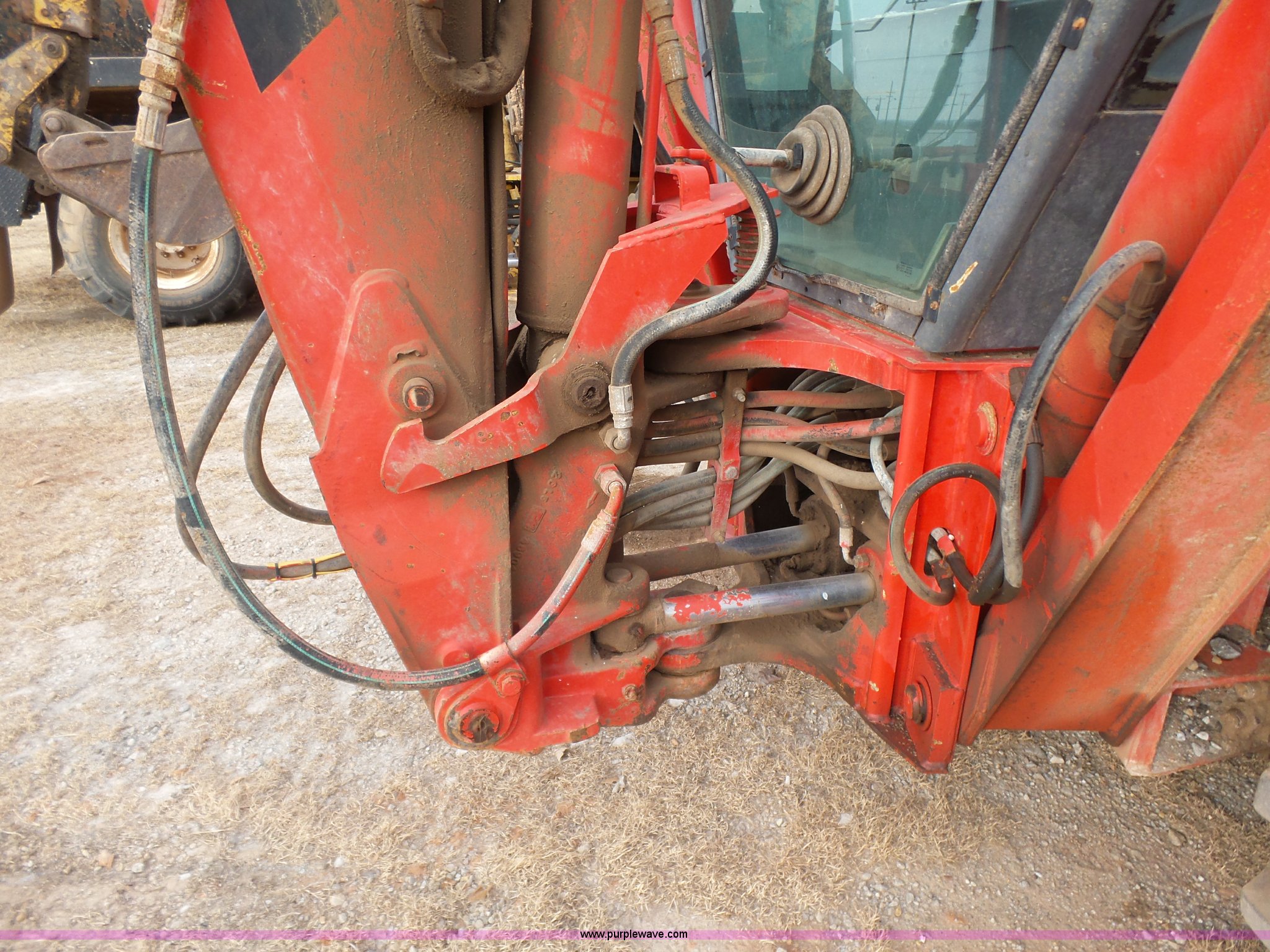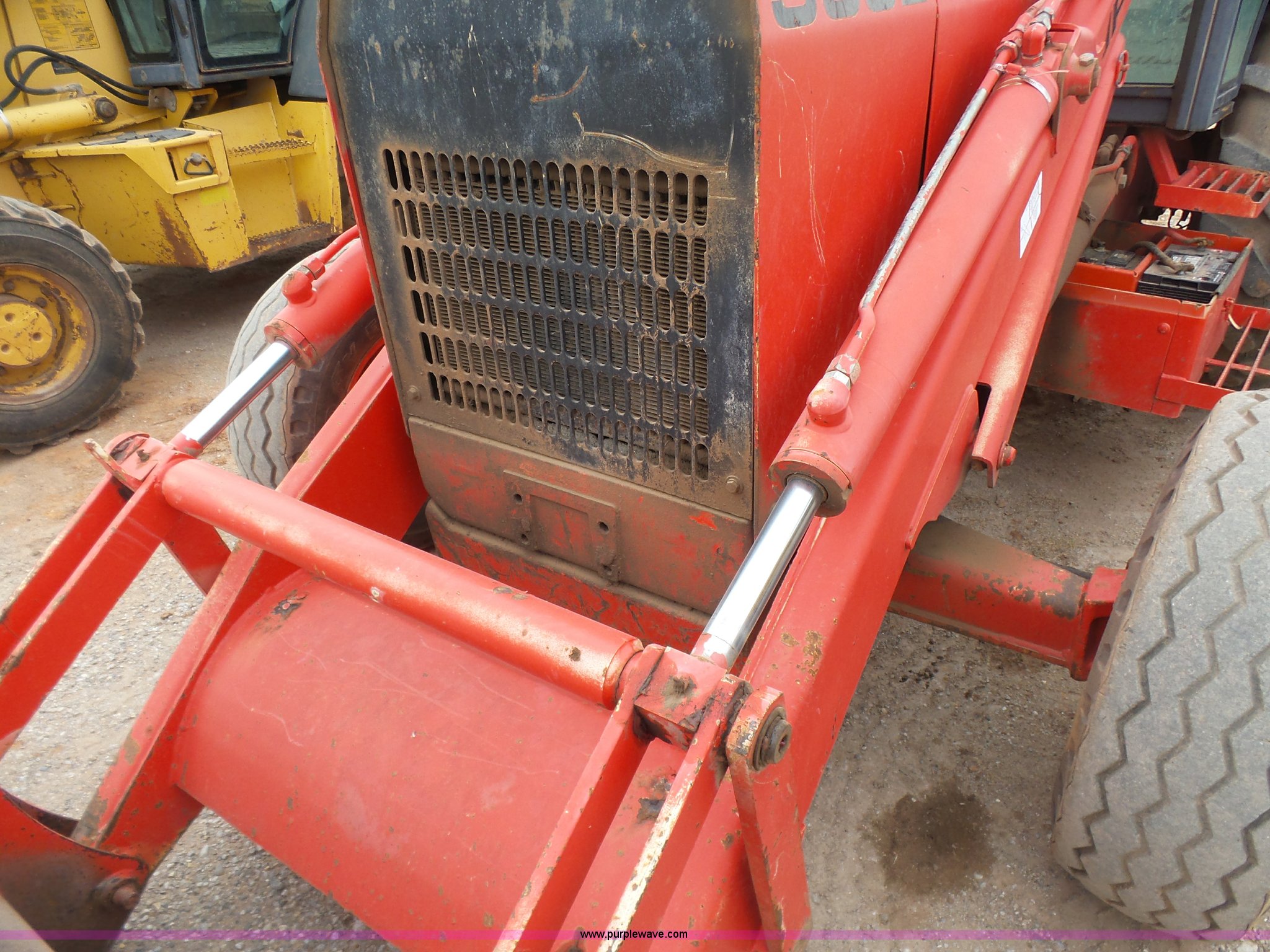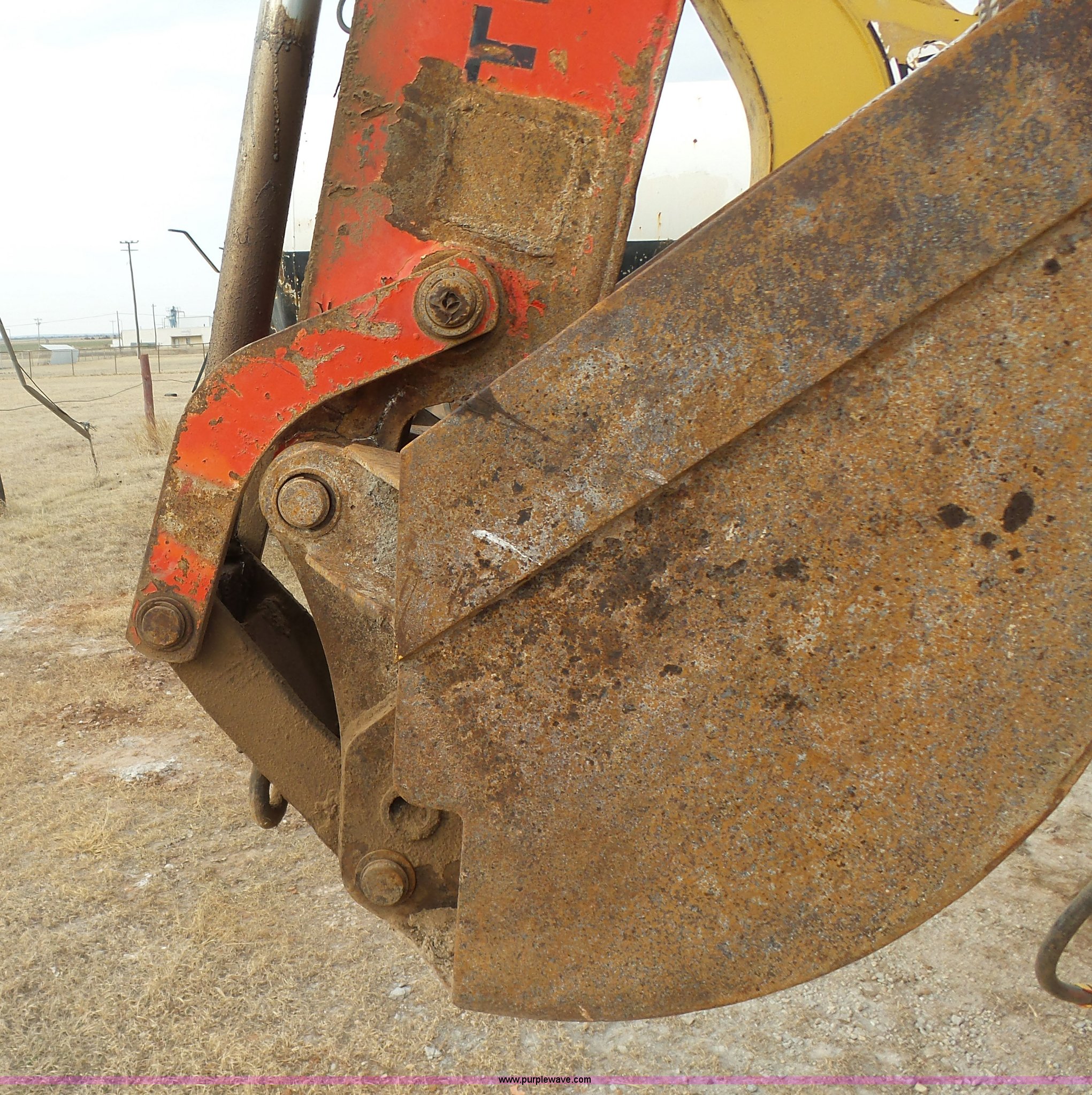 Purple Wave is selling a used Tractor Loader Backhoe in Oklahoma. This item is a Ford 555D backhoe with the following: 4,119 hours on meter, Diesel engine, Shuttle shift transmission, 4F-4R gears, EROPS, Wobble stick backhoe controls, Front and rear work lights, 88"W loader bucket, E-stick, 23"W backhoe bucket, (4) teeth, Auxiliary hydraulics, 11L-16SL front tires, 16.9-28 rear tires, Interior/exterior cosmetic damage, Serial A437046