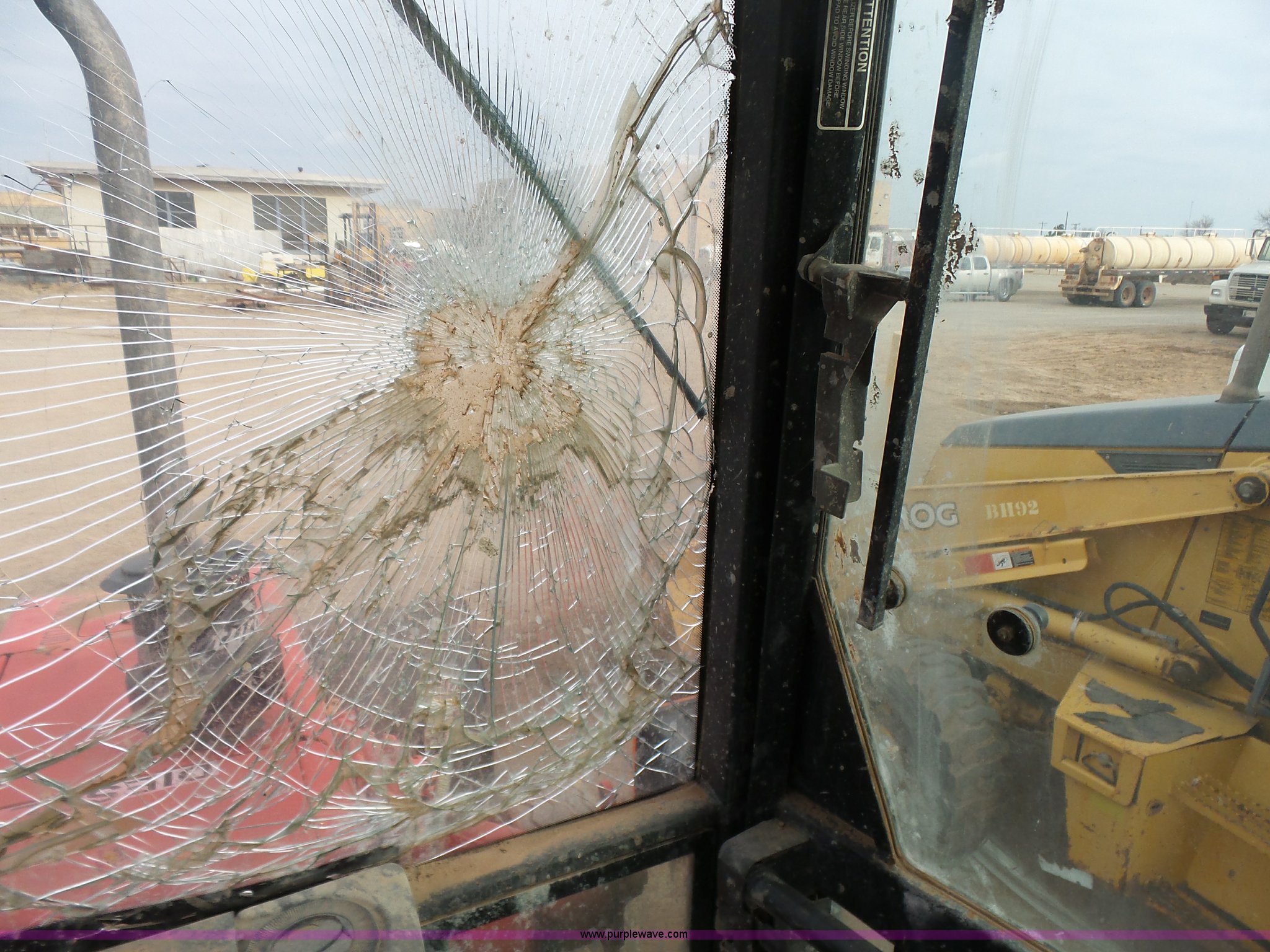 Ford 555D backhoe. 4,119 hours on meter, Diesel engine, Shuttle shift transmission 4F-4R gears, EROPS, Wobble stick backhoe controls, Front and rear work lights, 88"W loader bucket, E-stick, 23"W backhoe bucket (4) teeth, Auxiliary hydraulics, 11L-16SL front tires, 16.9-28 rear tires, Interior/exterior cosmetic damage, Serial A437046. Texoma Tank Service. Wakita, OK 73771