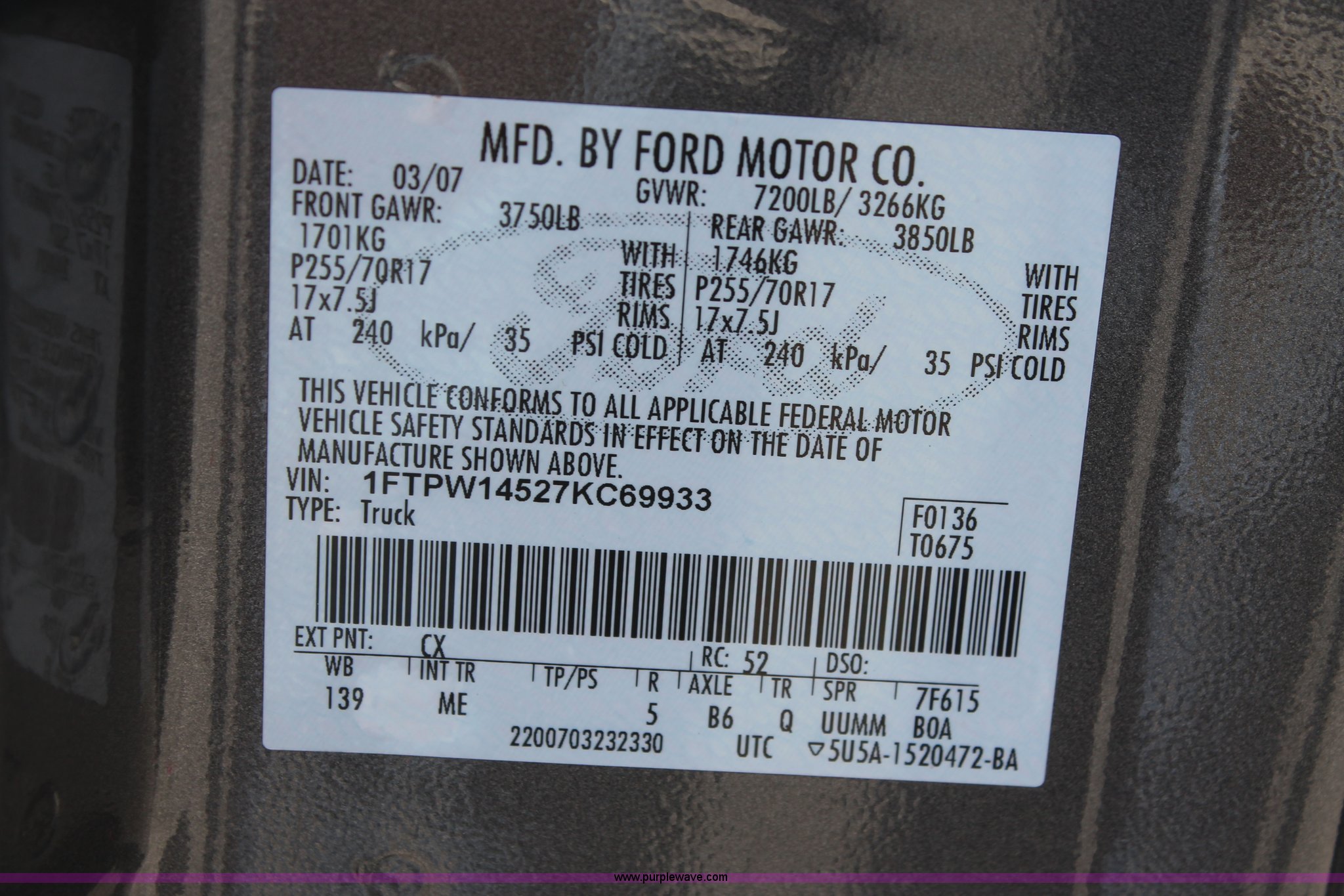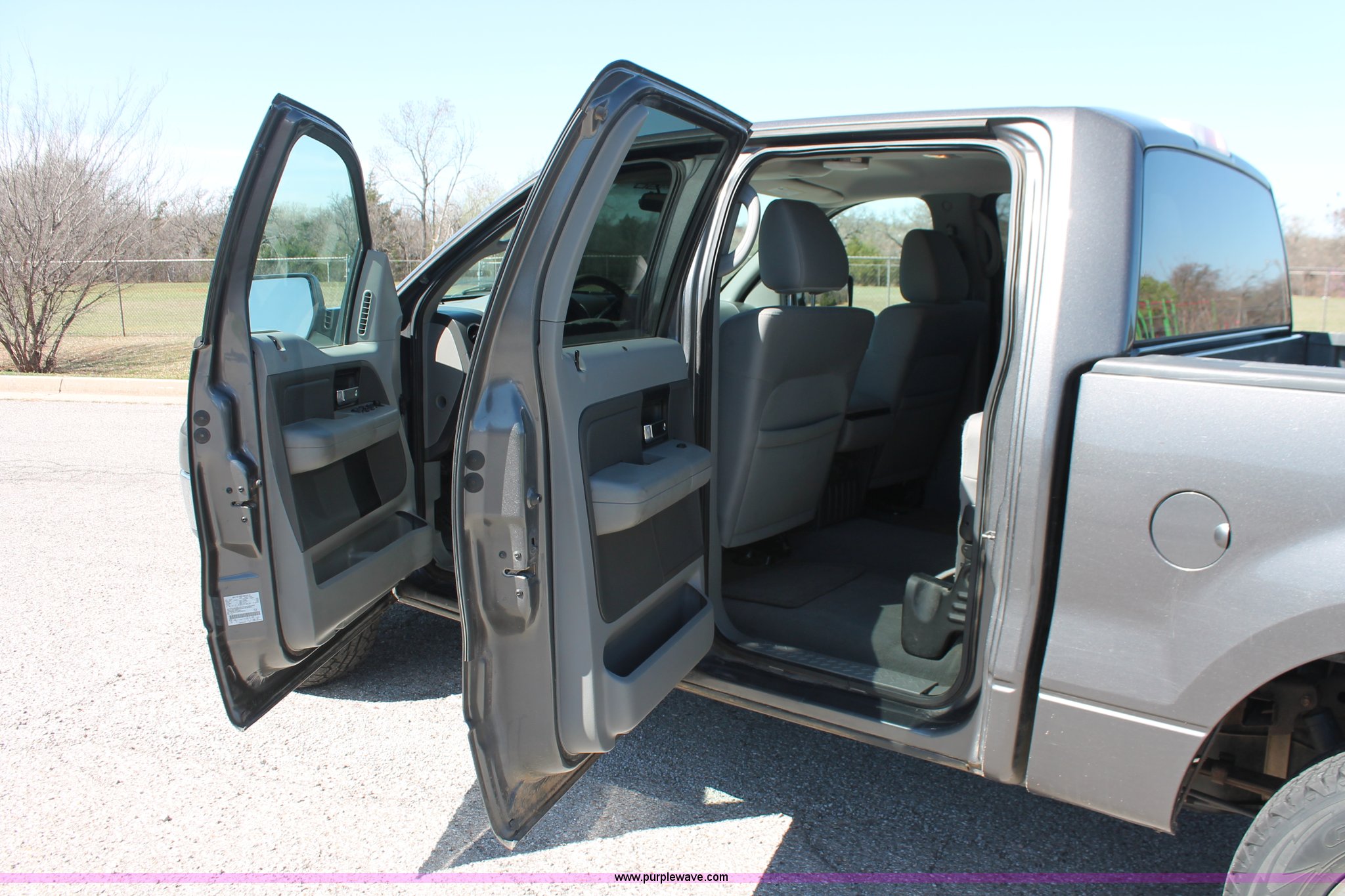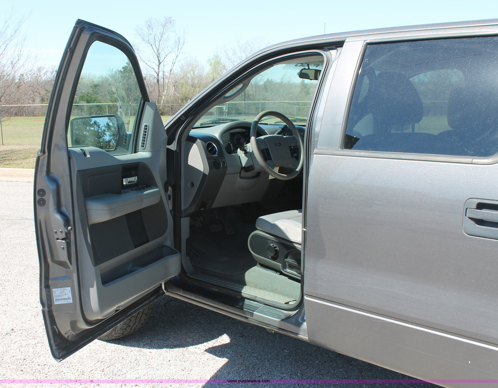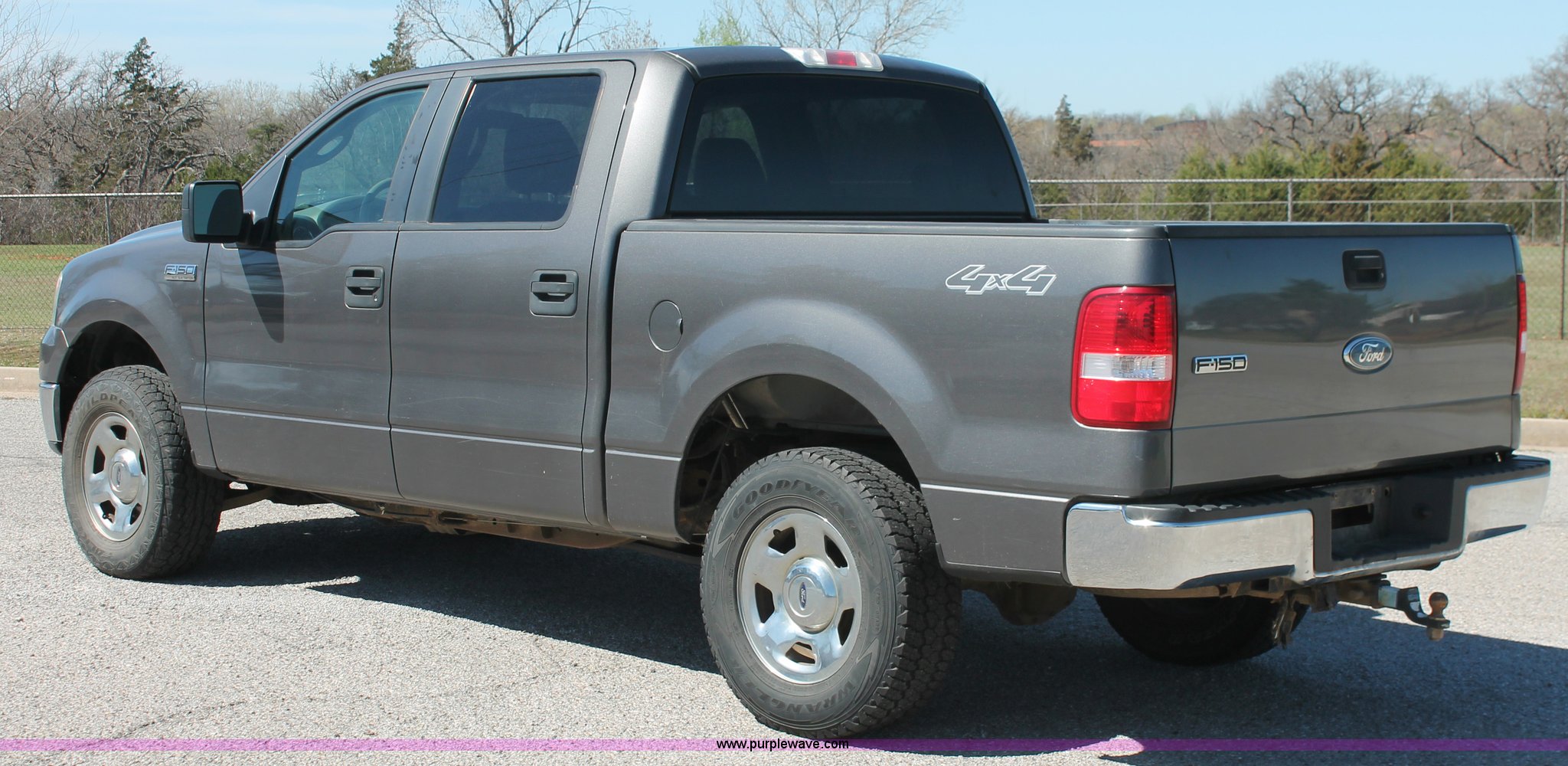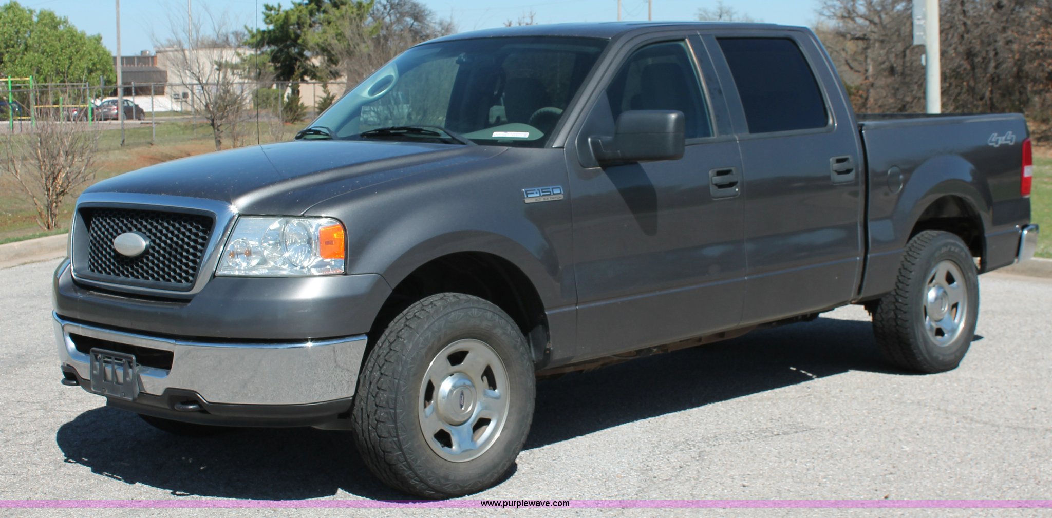 Purple Wave is selling a used 1/2 Ton Pickup or Van in Oklahoma. This item is a 2007 Ford F150 XLT Crew Cab pickup truck with the following: 136,804 miles on odometer, V-8 5.4L gas engine, Automatic transmission, Four wheel drive, AC and heat, Tilt, Cruise, AM/FM/CD, Power windows, locks, and mirrors, Cloth interior, Front tow hook, Receiver hitch, 2" ball, Trailer wiring, Cracked windshield, LT265/70R17 tires
