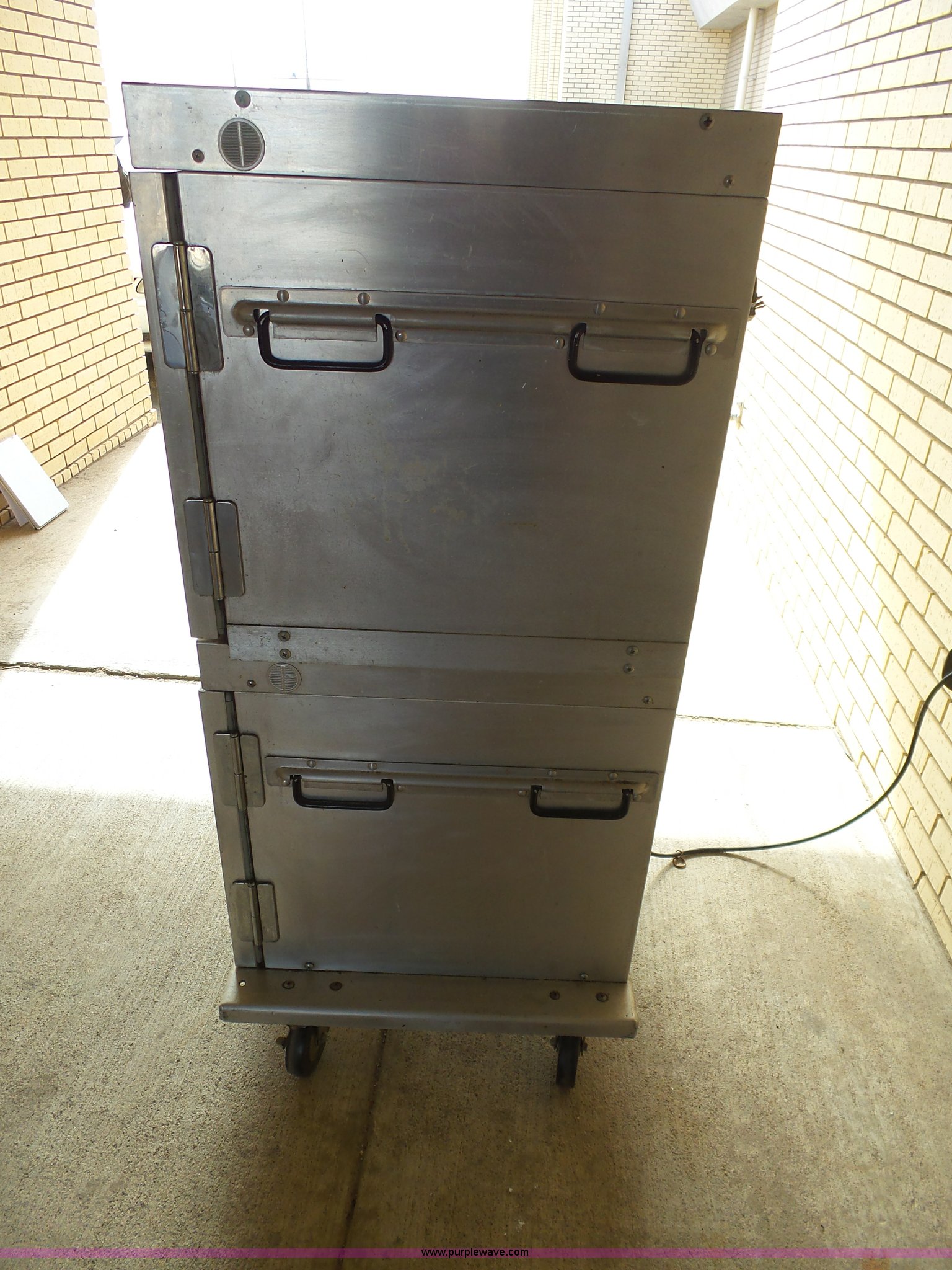 Purple Wave is selling a used Restaurant Equip. in Kansas. This item is a Crescor double stack warmer oven with the following: Model H339124, 120V, 900 watt, Stainless steel thermostat control with gauge, 16.5"W x 24.5"D x 21"H ovens, 53.5"H overall, Casters, Serial GJE-K3227C