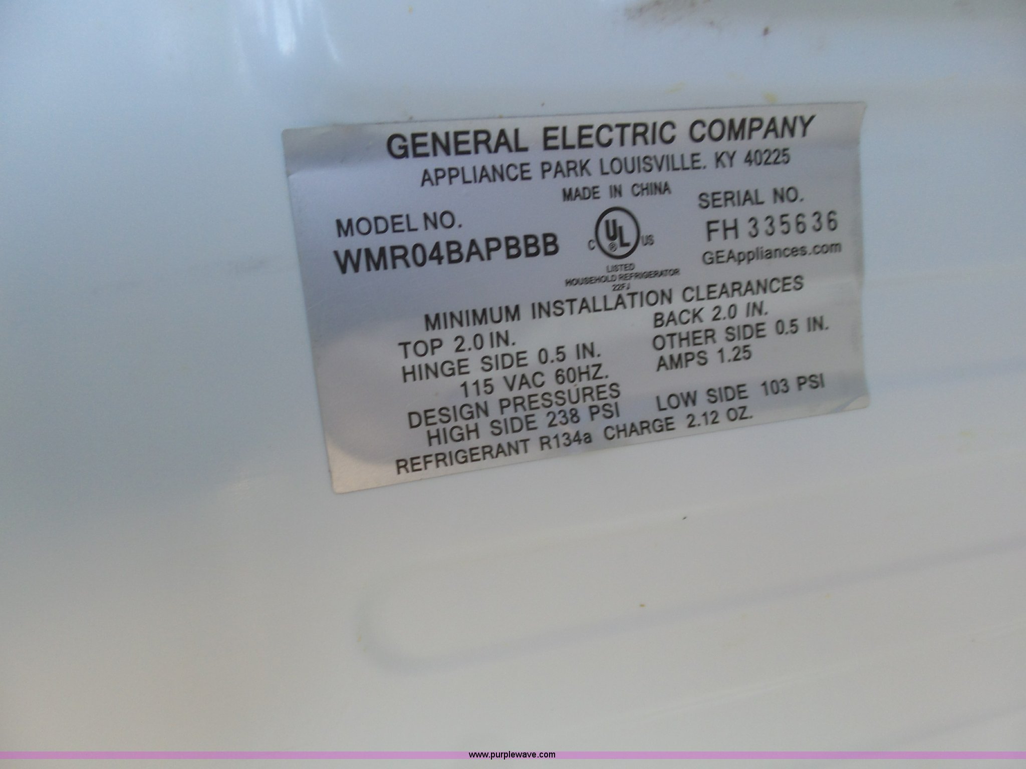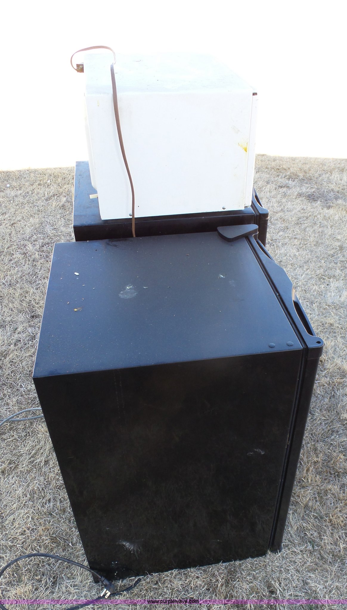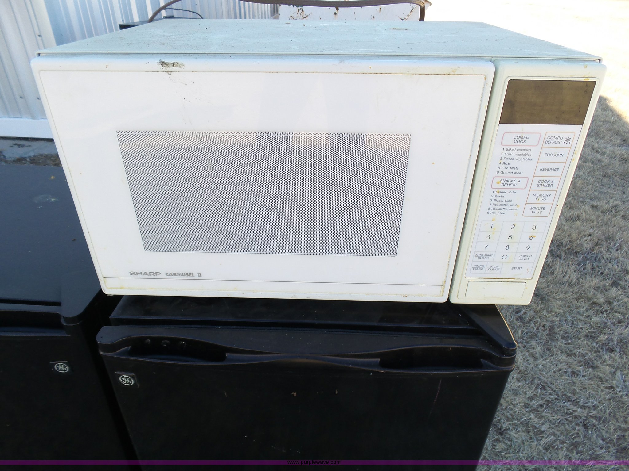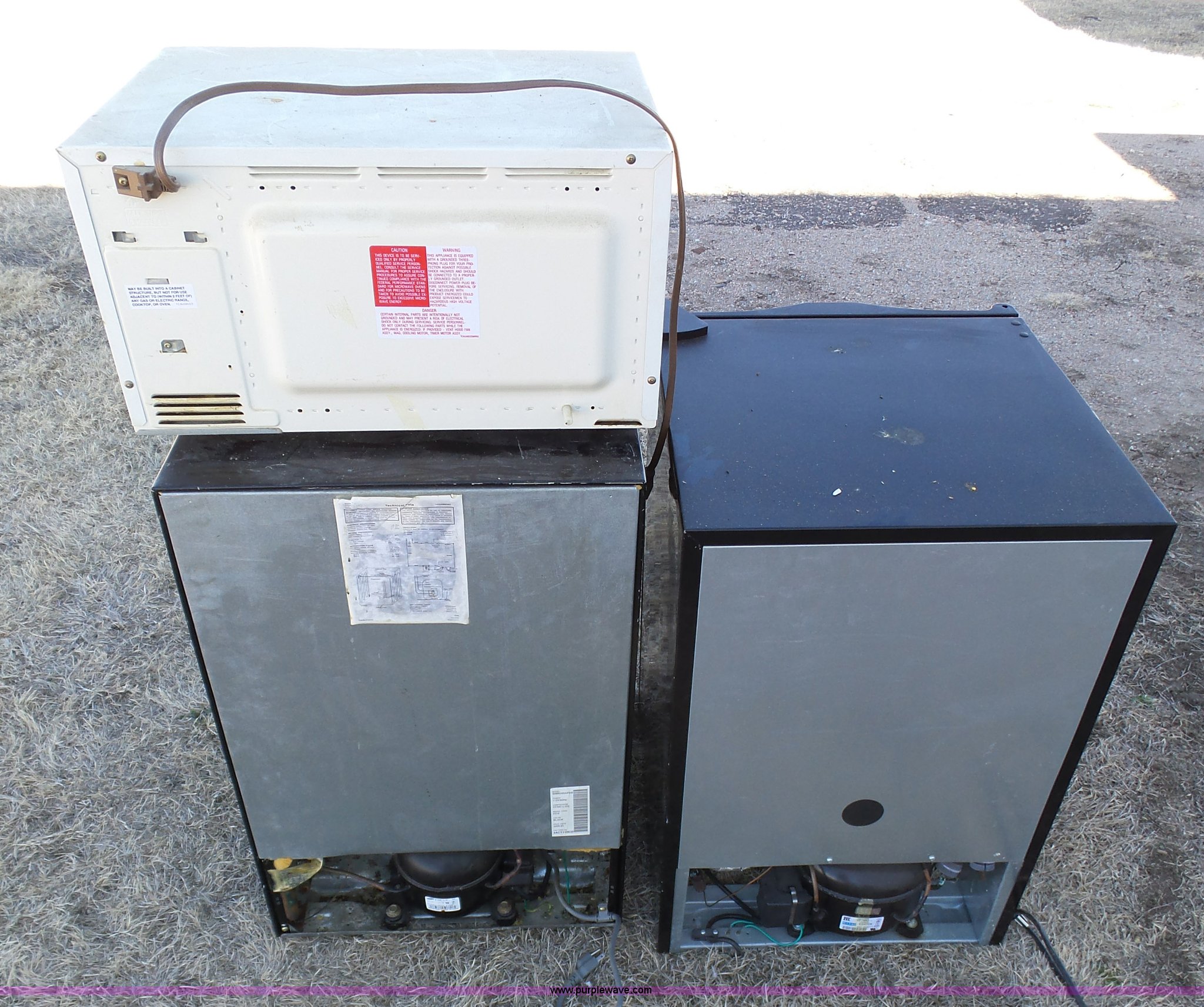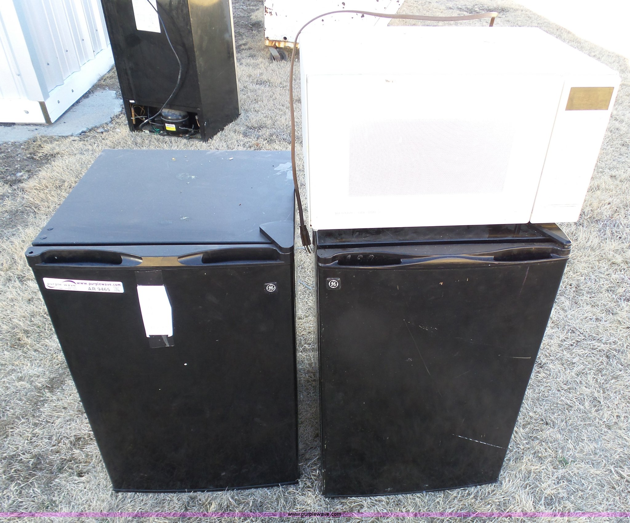 Purple Wave is selling a used Appliances in Kansas. This item is a Assorted appliances with the following: (2) General Electric miniature refrigerators, Model WMR04APBBB, Serial FH335636, GV691246, Sharp Carousel microwave
