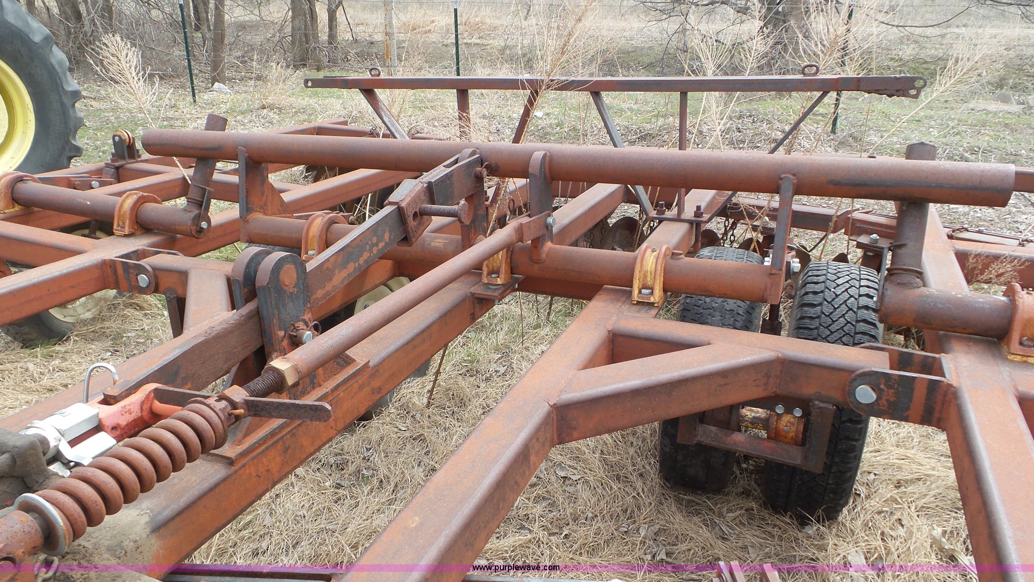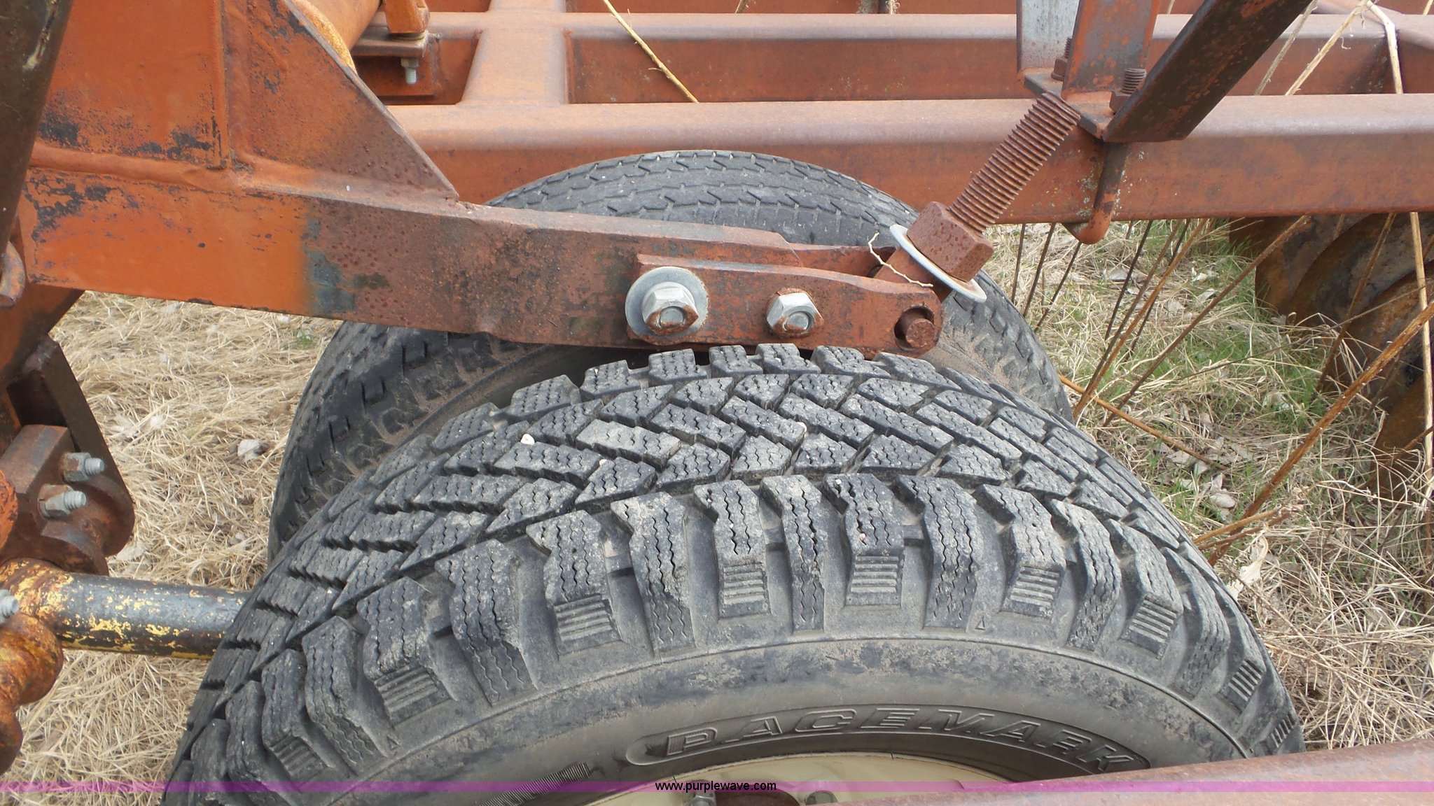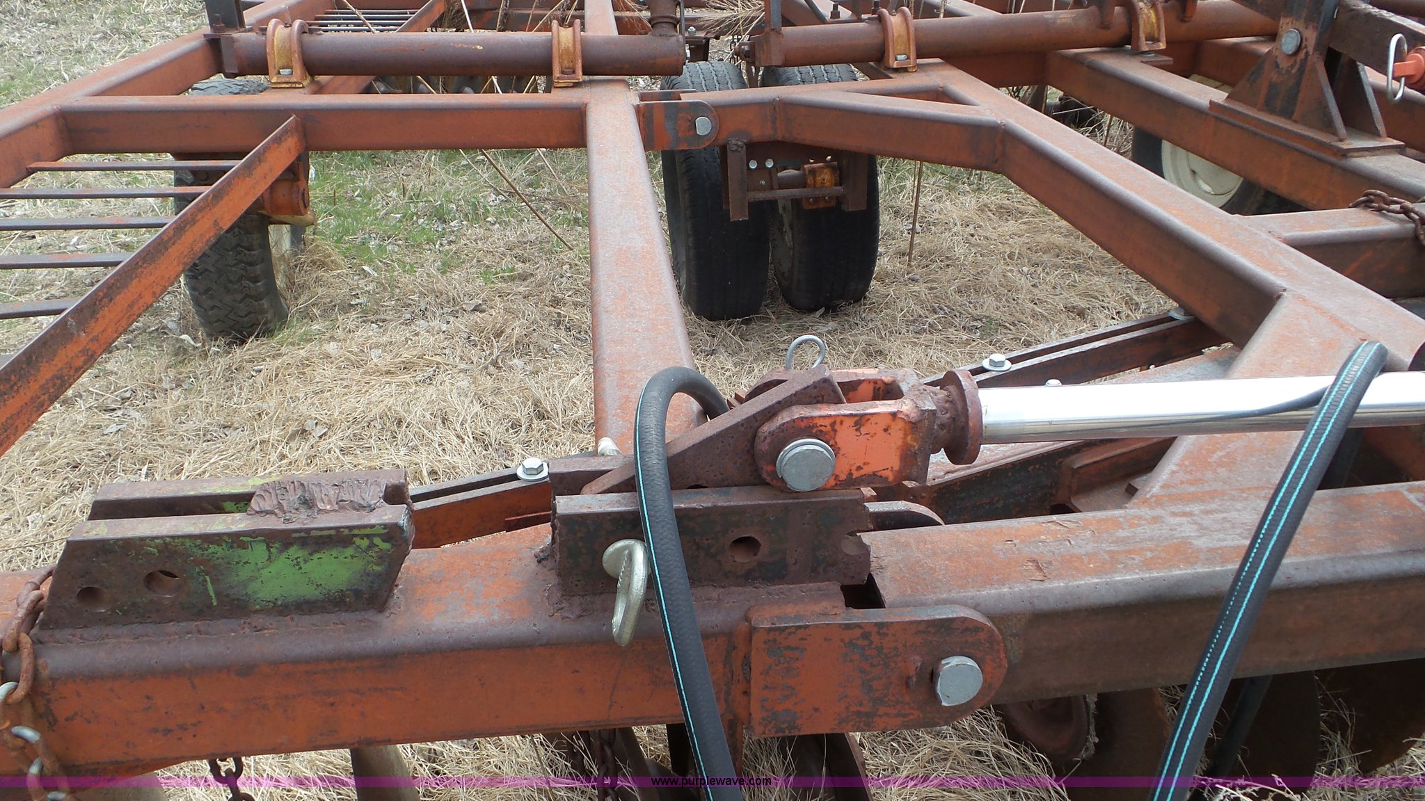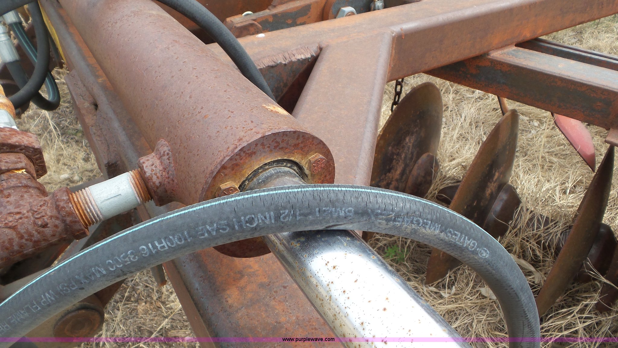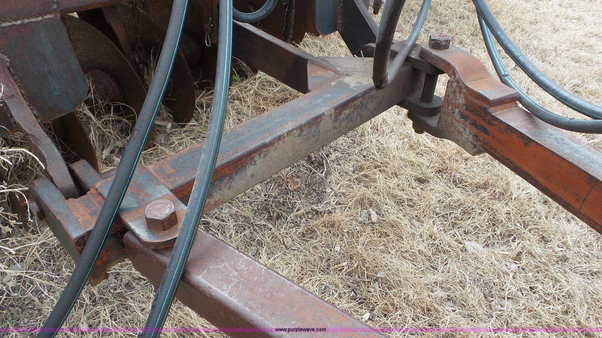 Purple Wave is selling a used Disk in Kansas. This item is a Sunflower disk with the following: 20'W, 21" diameter front disks, 18" diameter rear disks, Disk cleaners, Hydraulic fold, Pin hitch, 15" tires